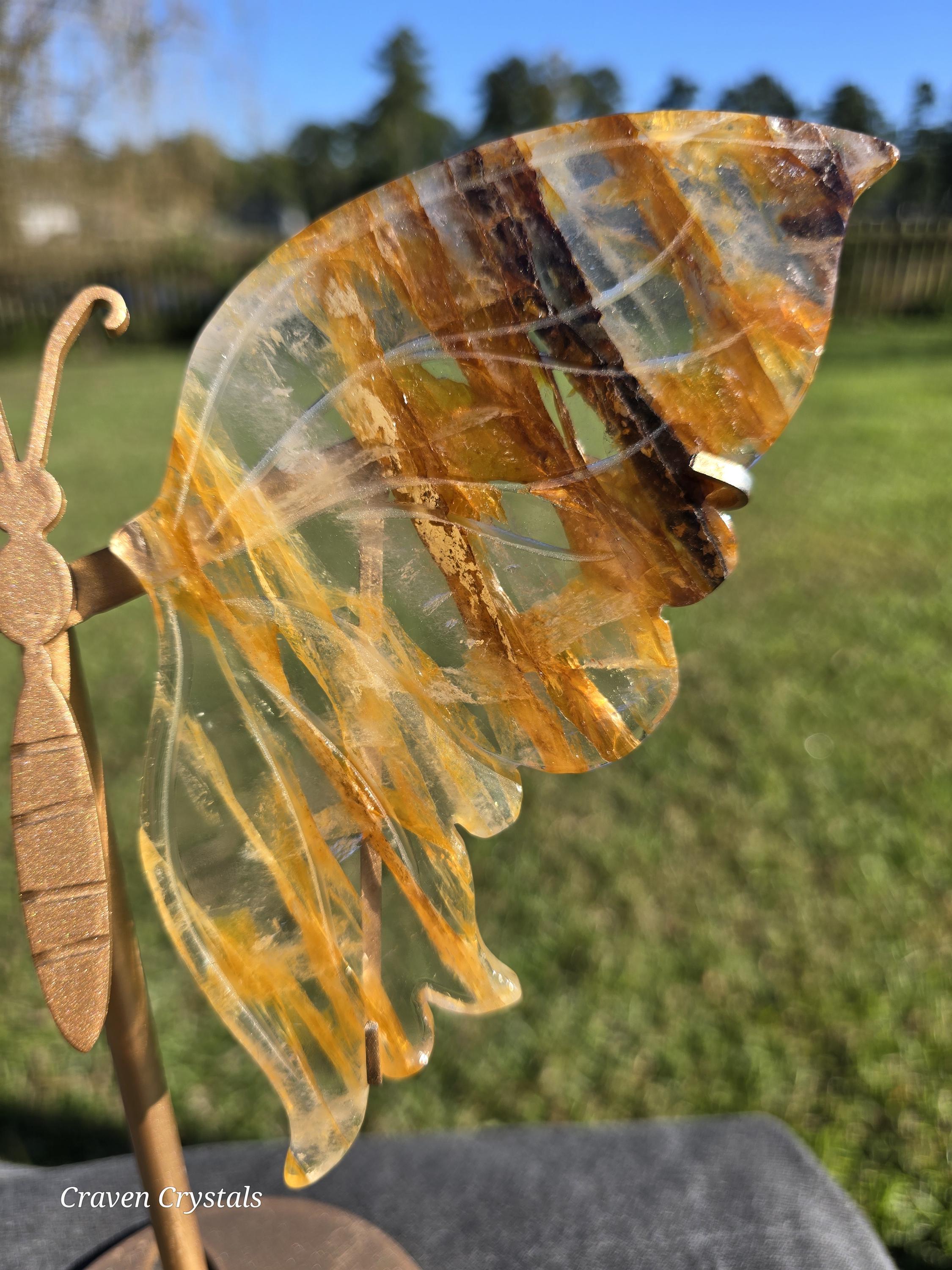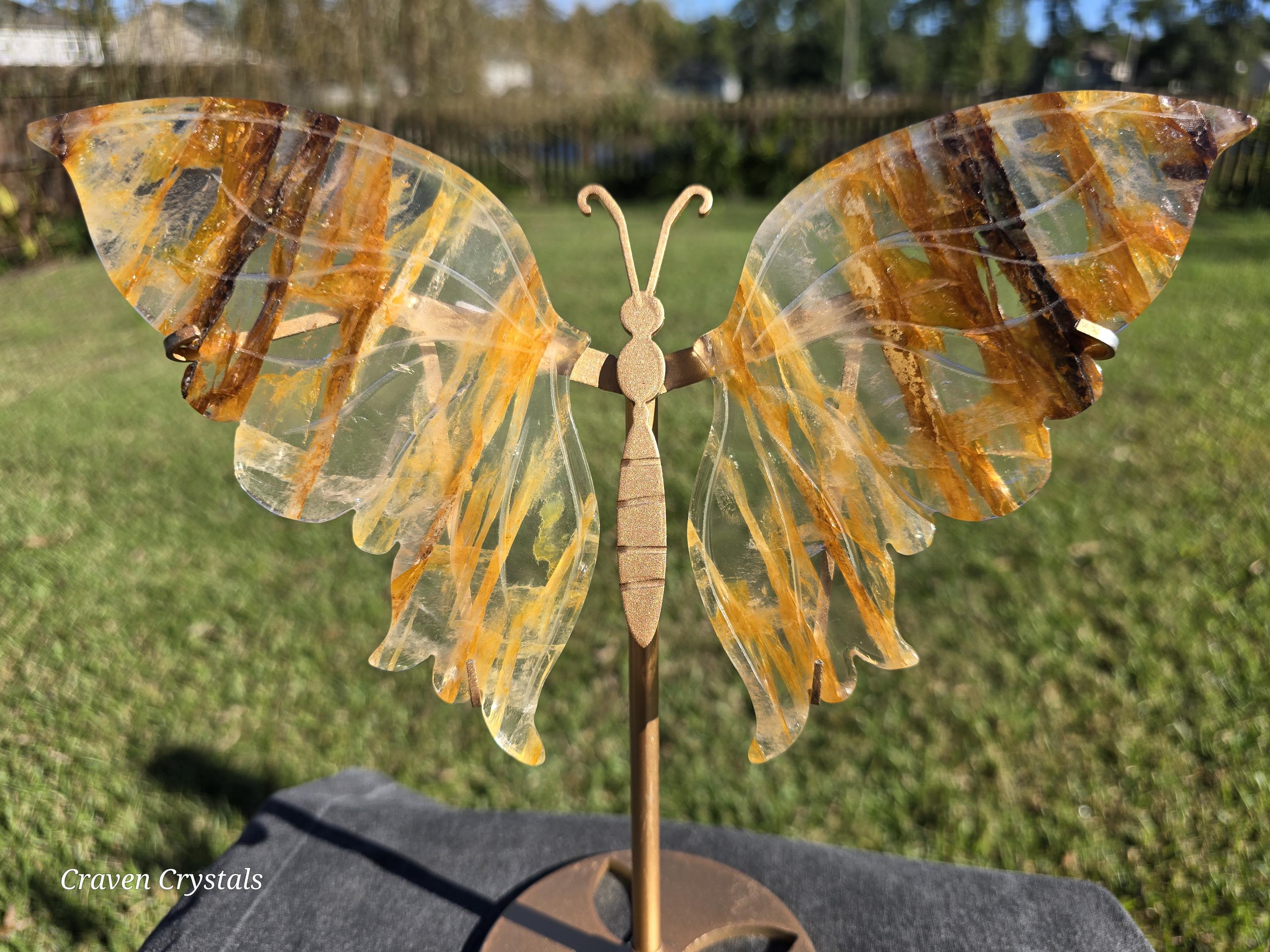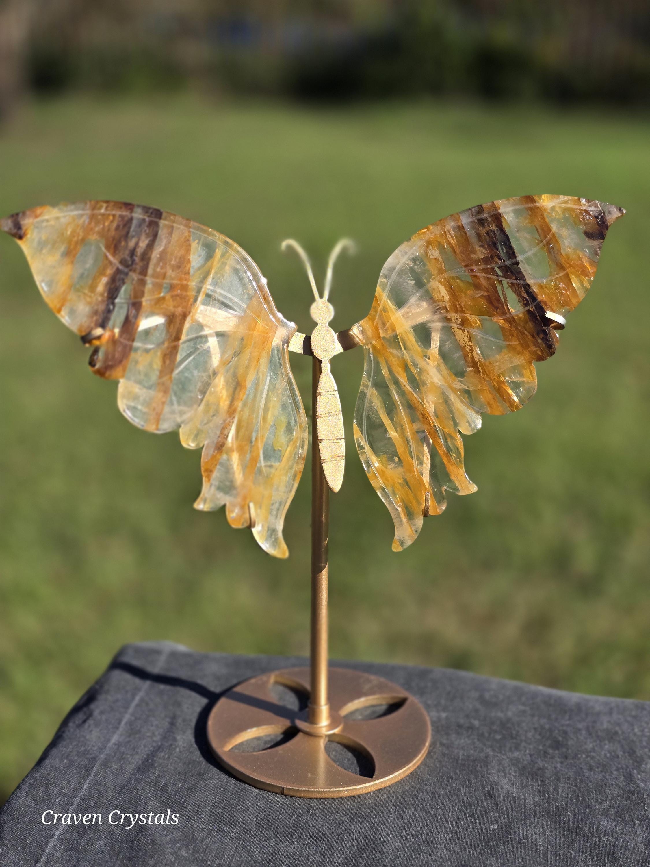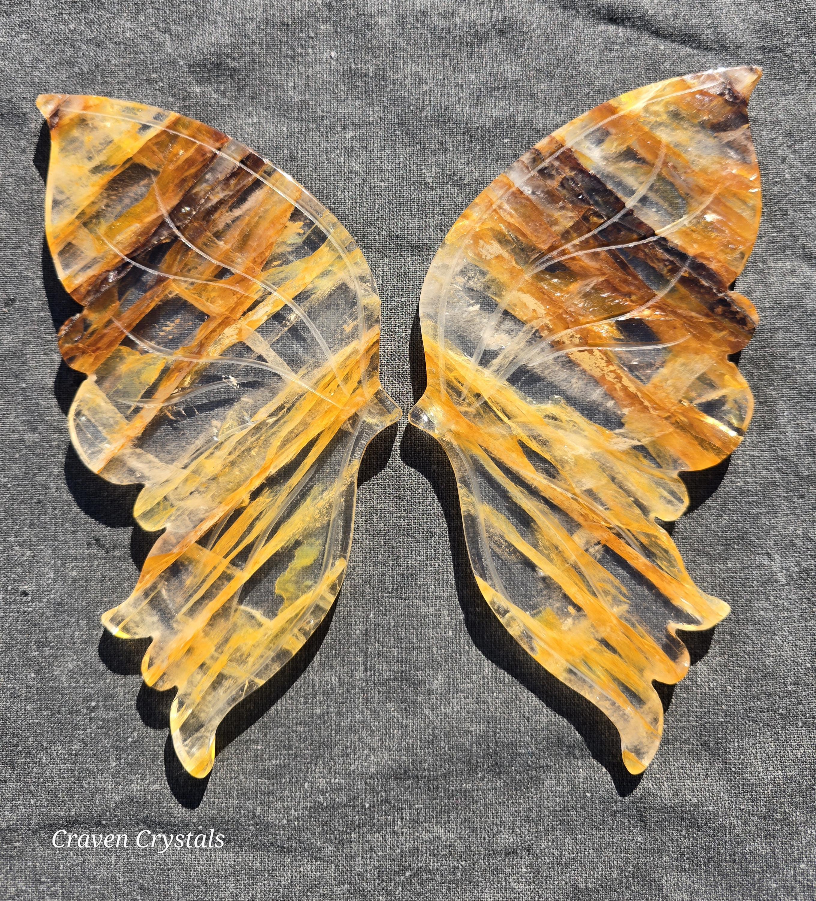Stunning, super clear, Golden Healer Crystal Butterfly Wings with striking golden caramel streaks.