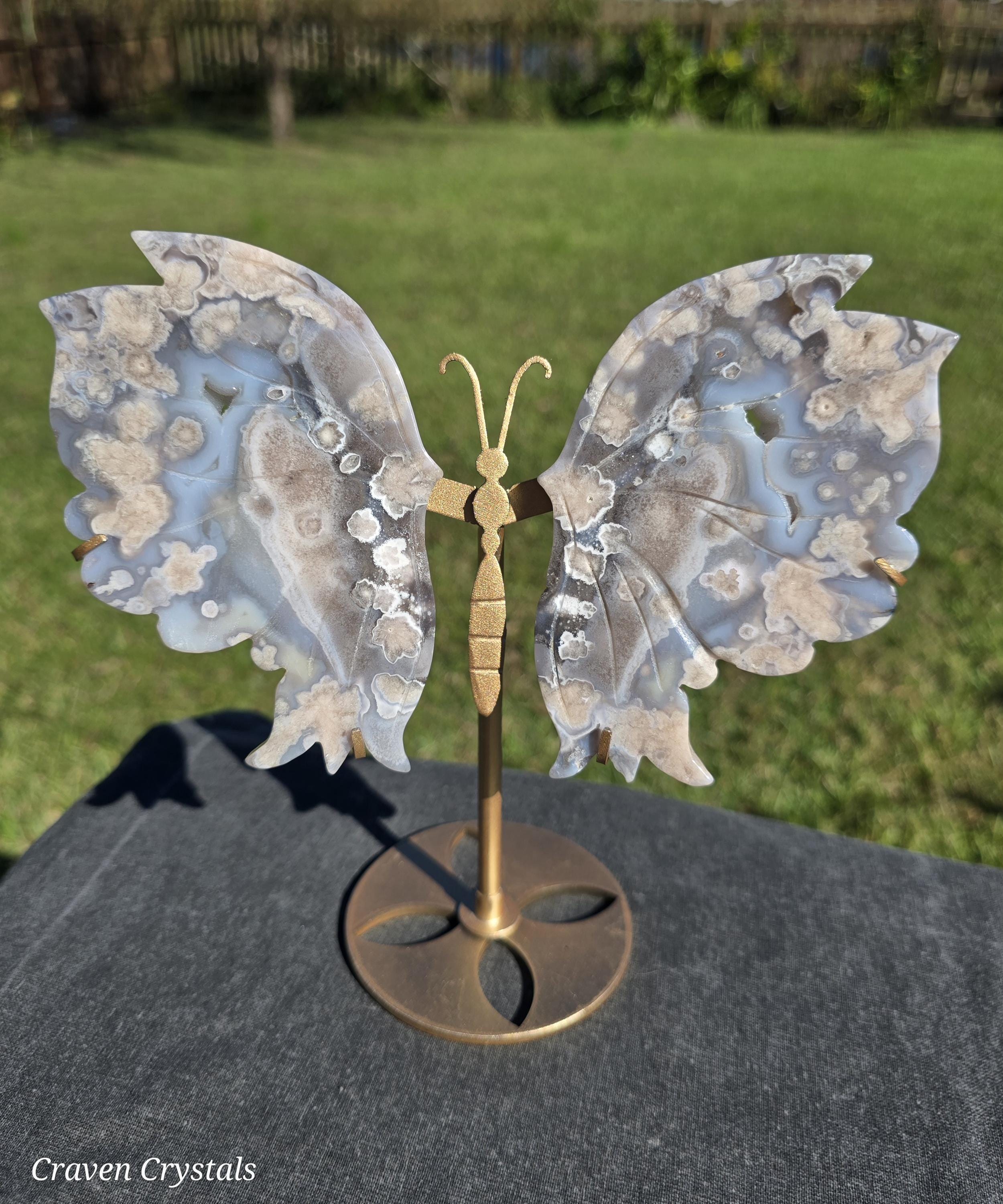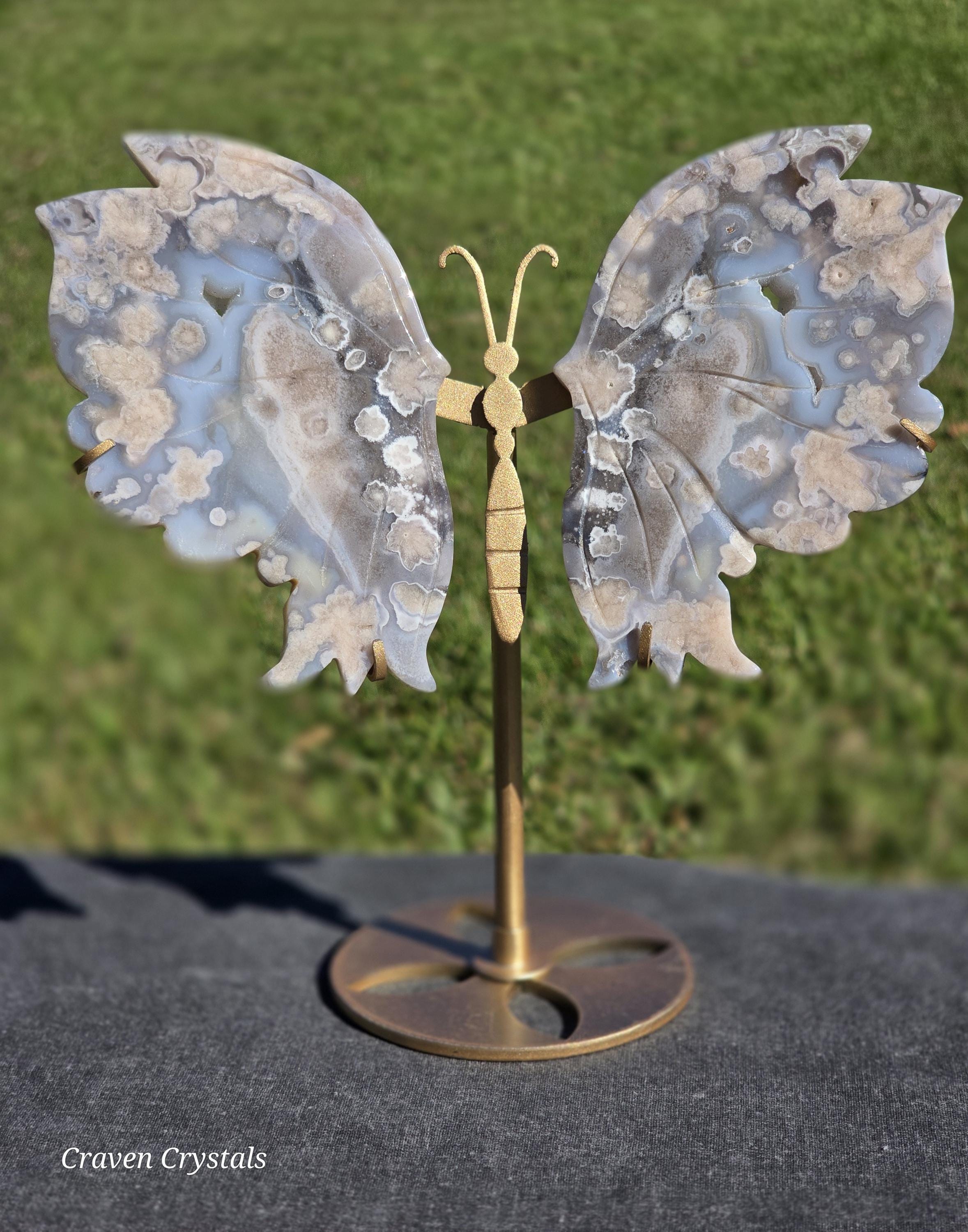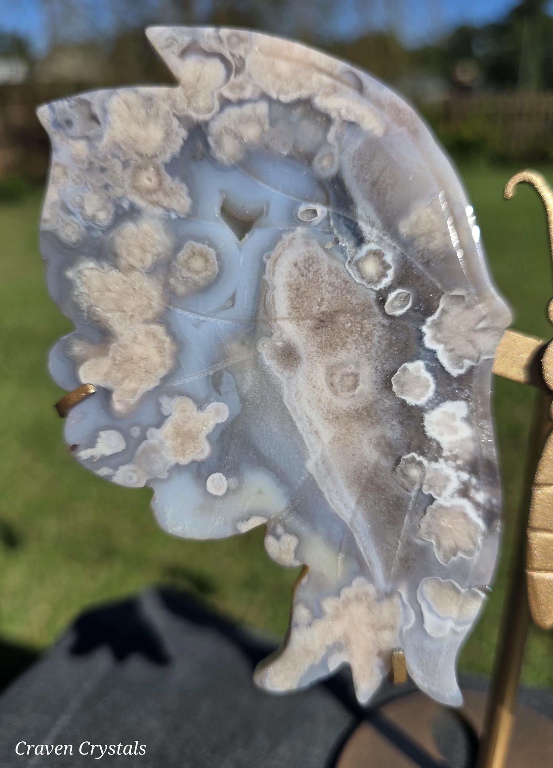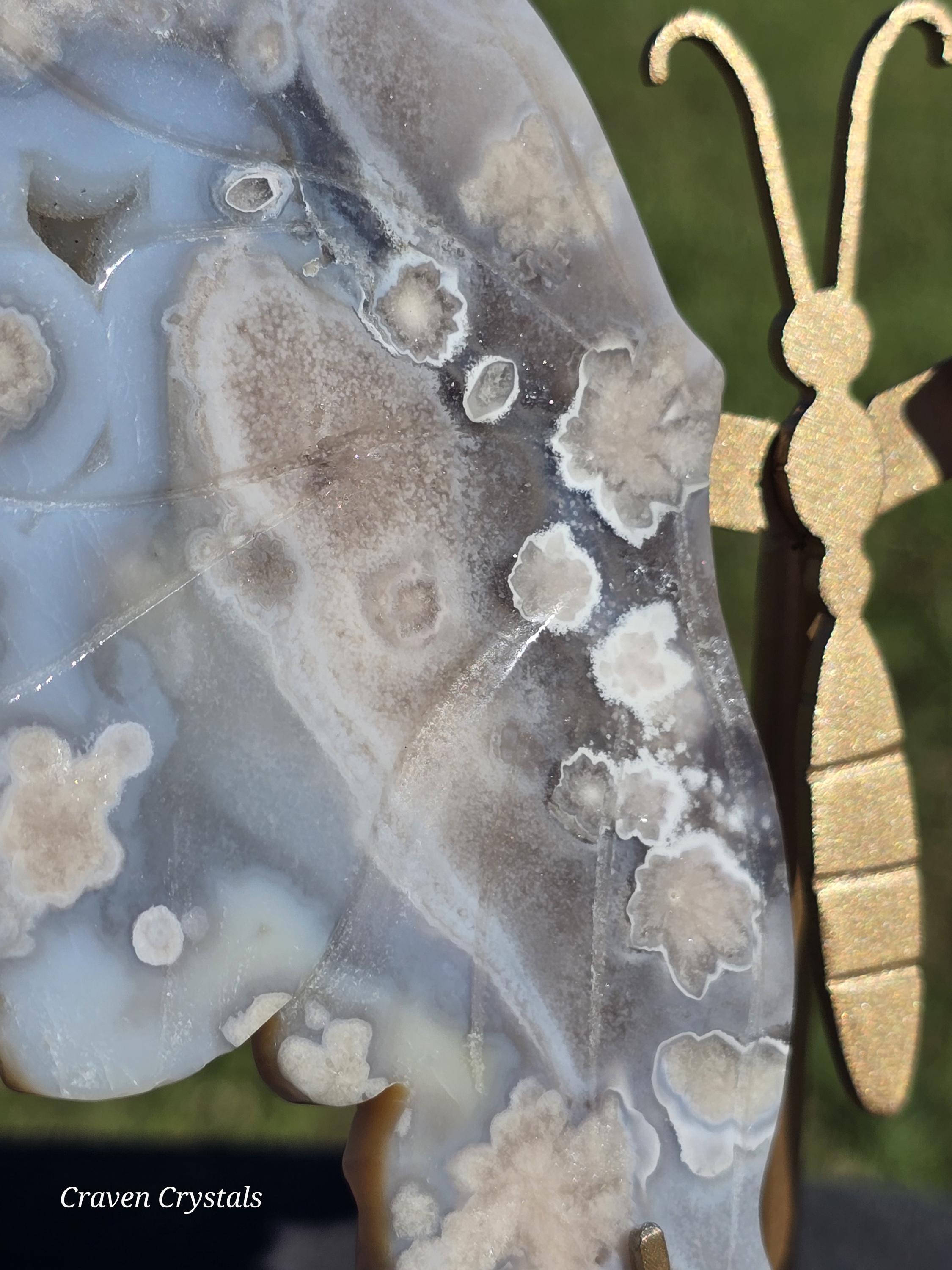 Beautiful sparkly Blue Flower Agate Crystal Butterfly Wings full of pink flowers