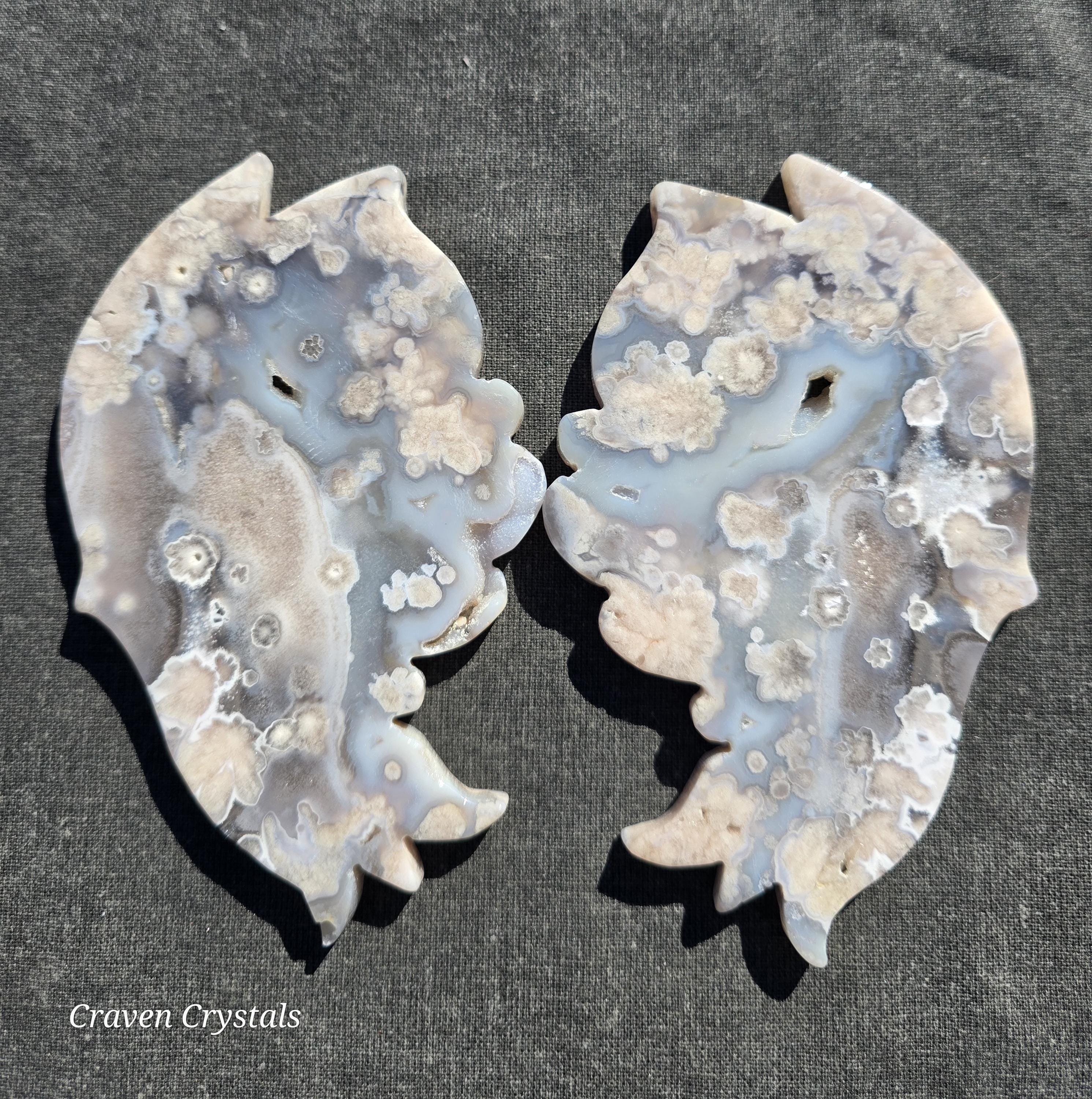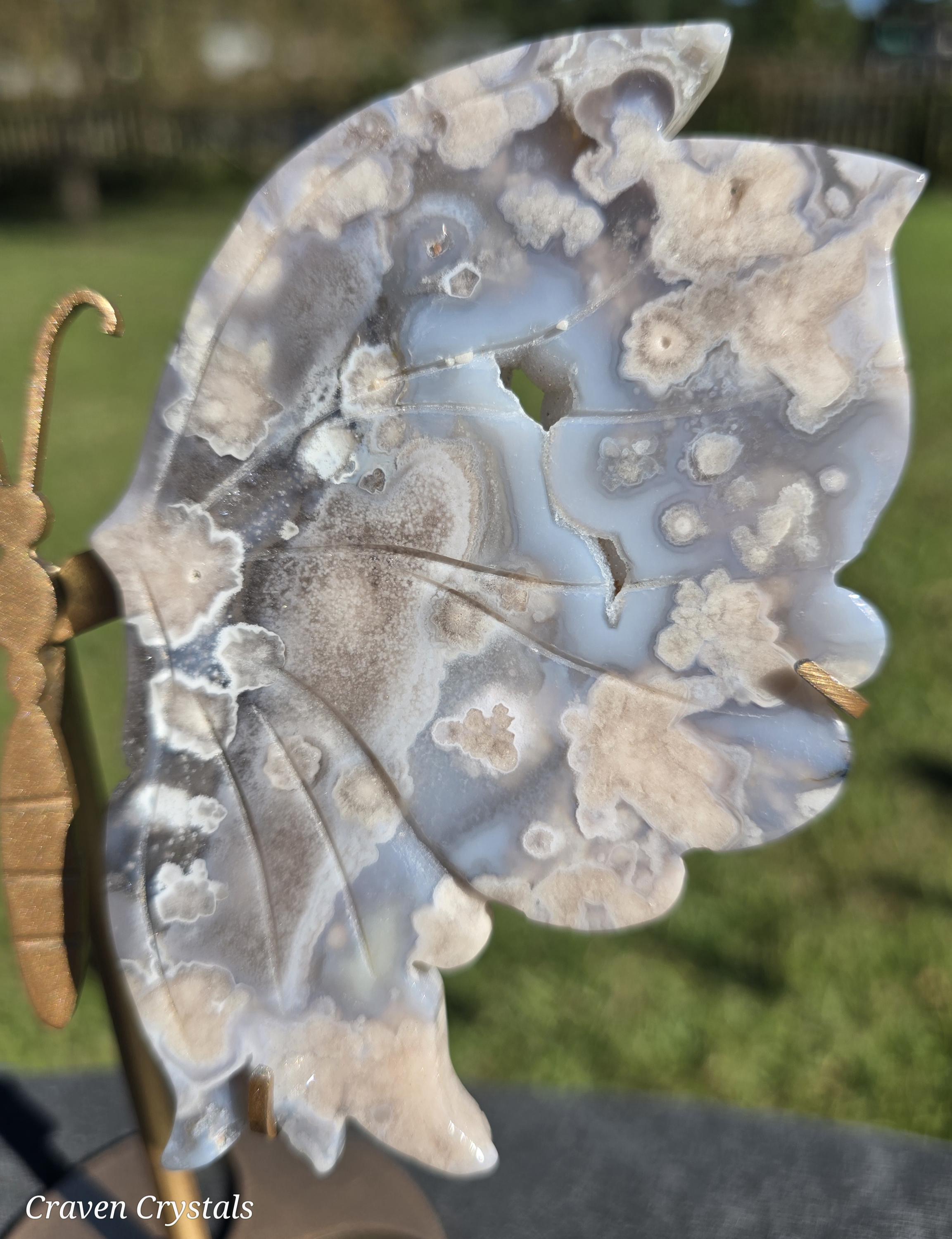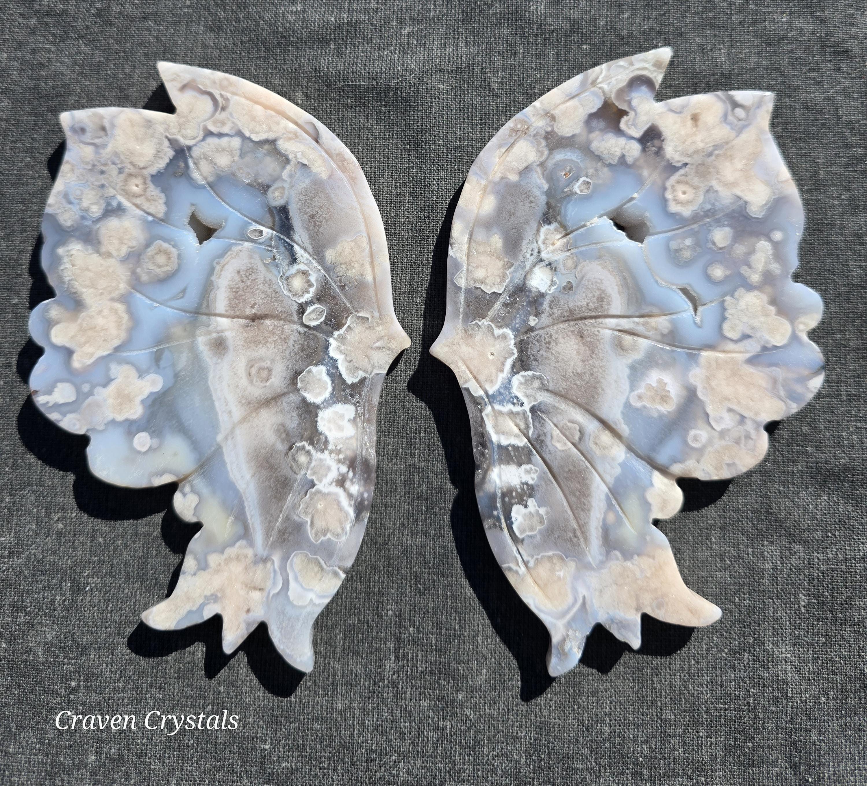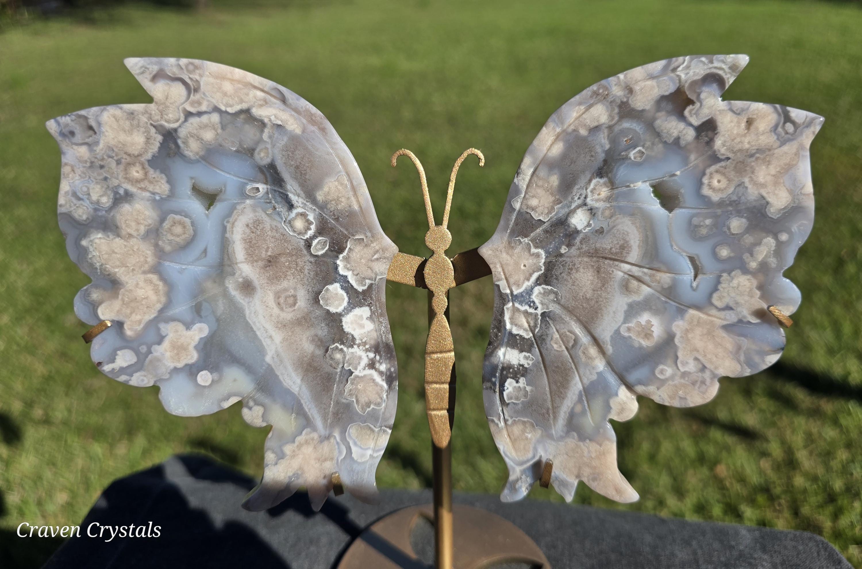 Beautiful sparkly Blue Flower Agate Crystal Butterfly Wings full of pink flowers