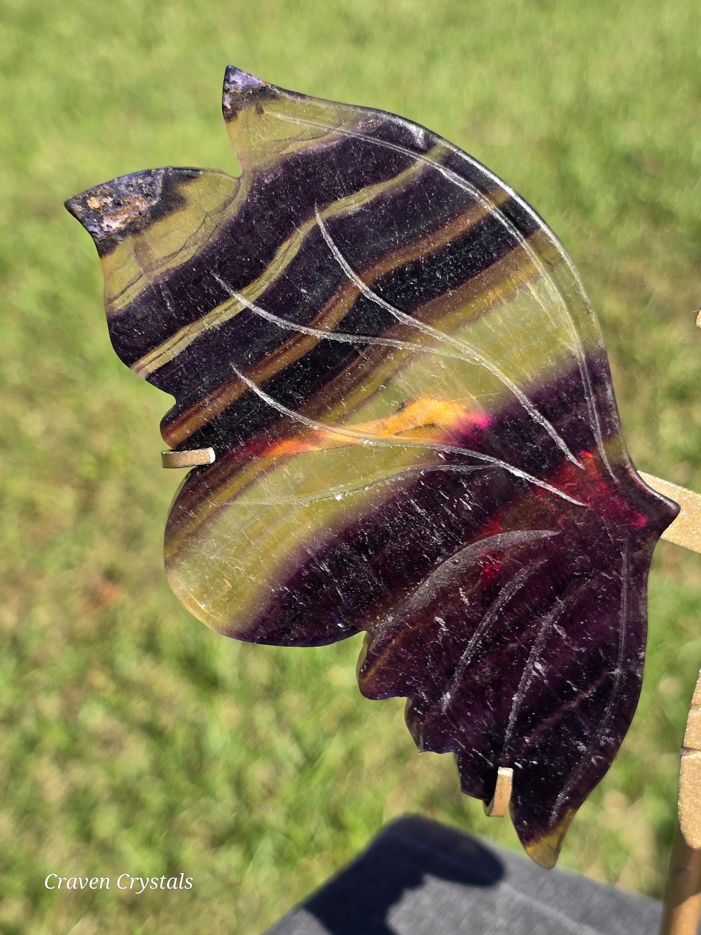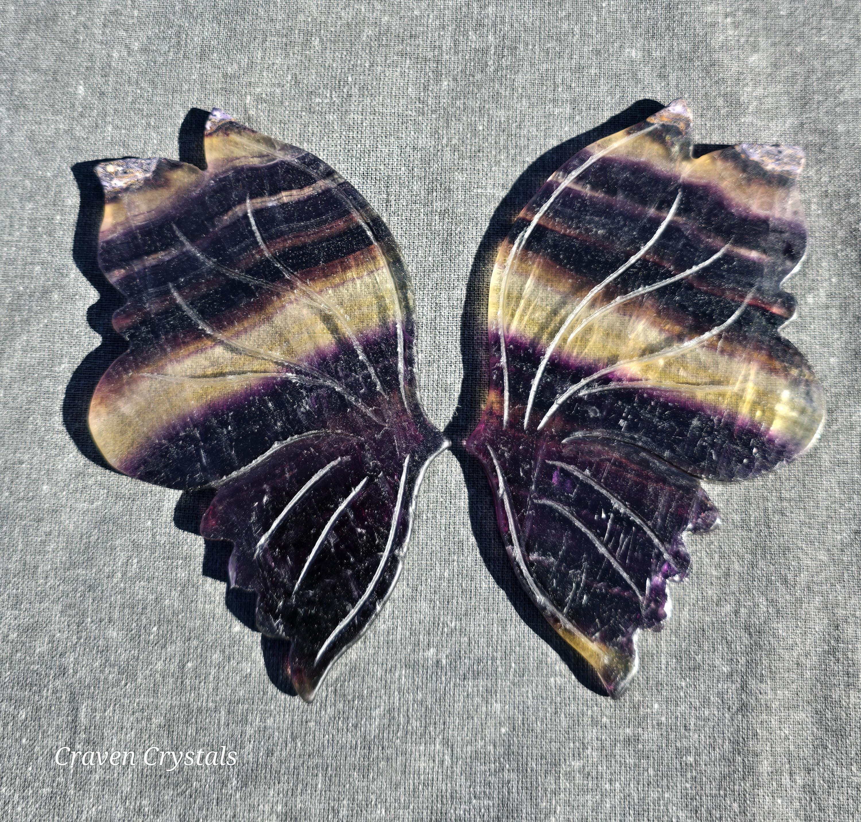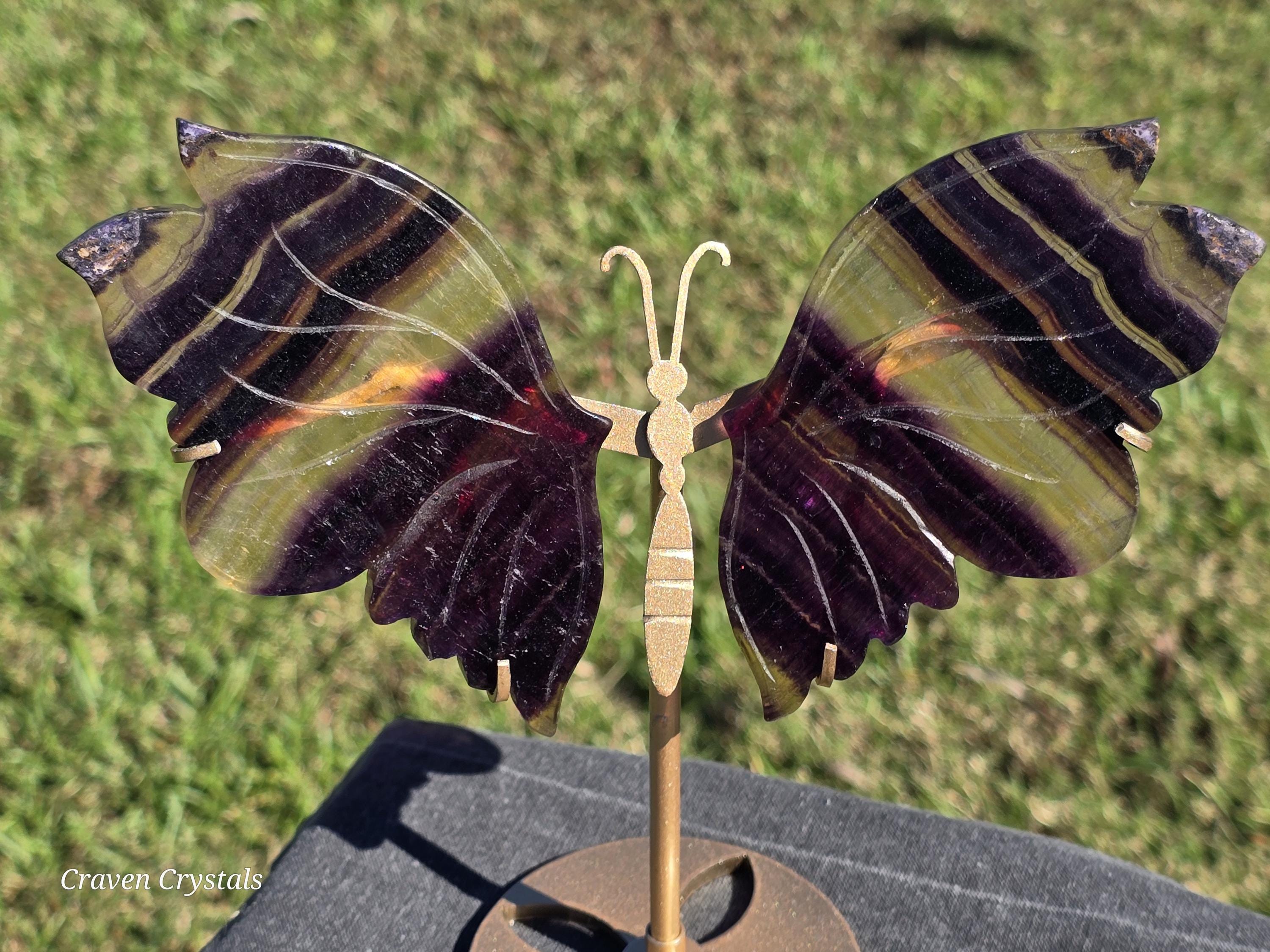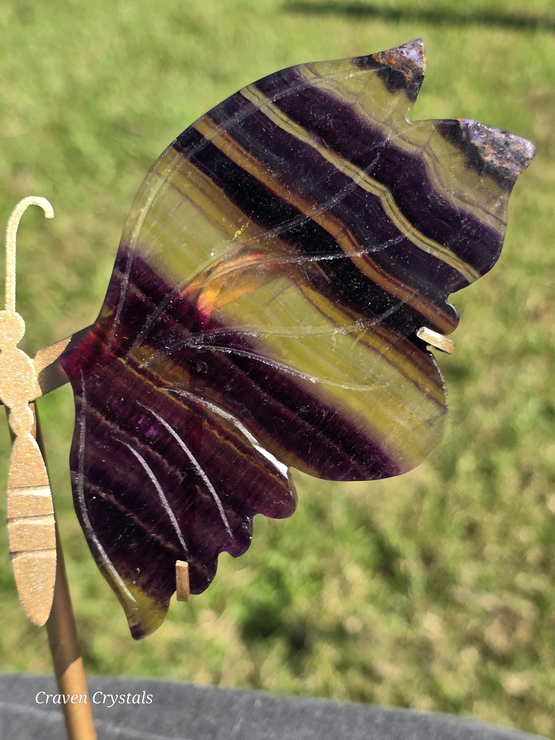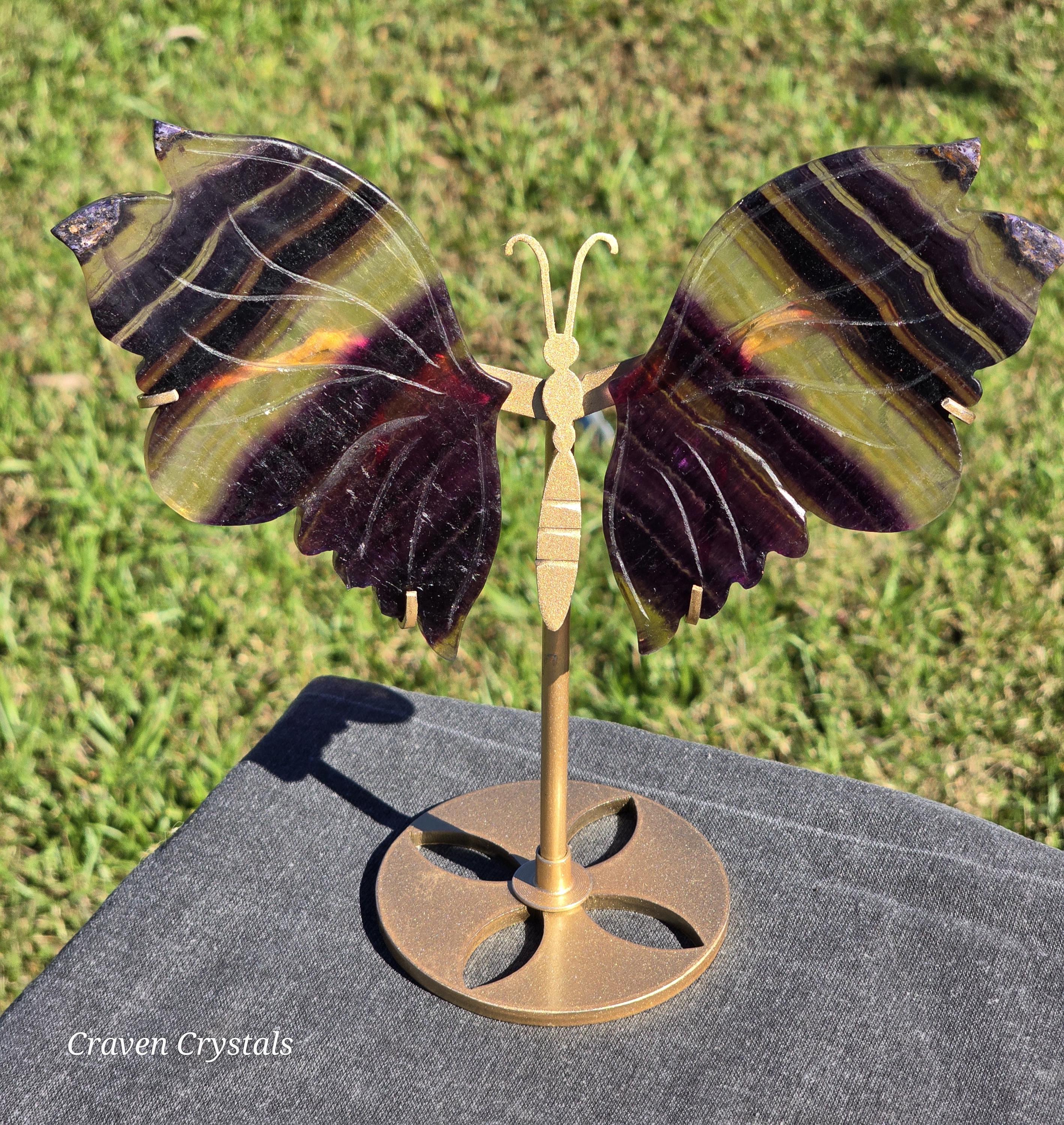 Deep purple & yellow banded Fluorite Crystal Butterfly Wings