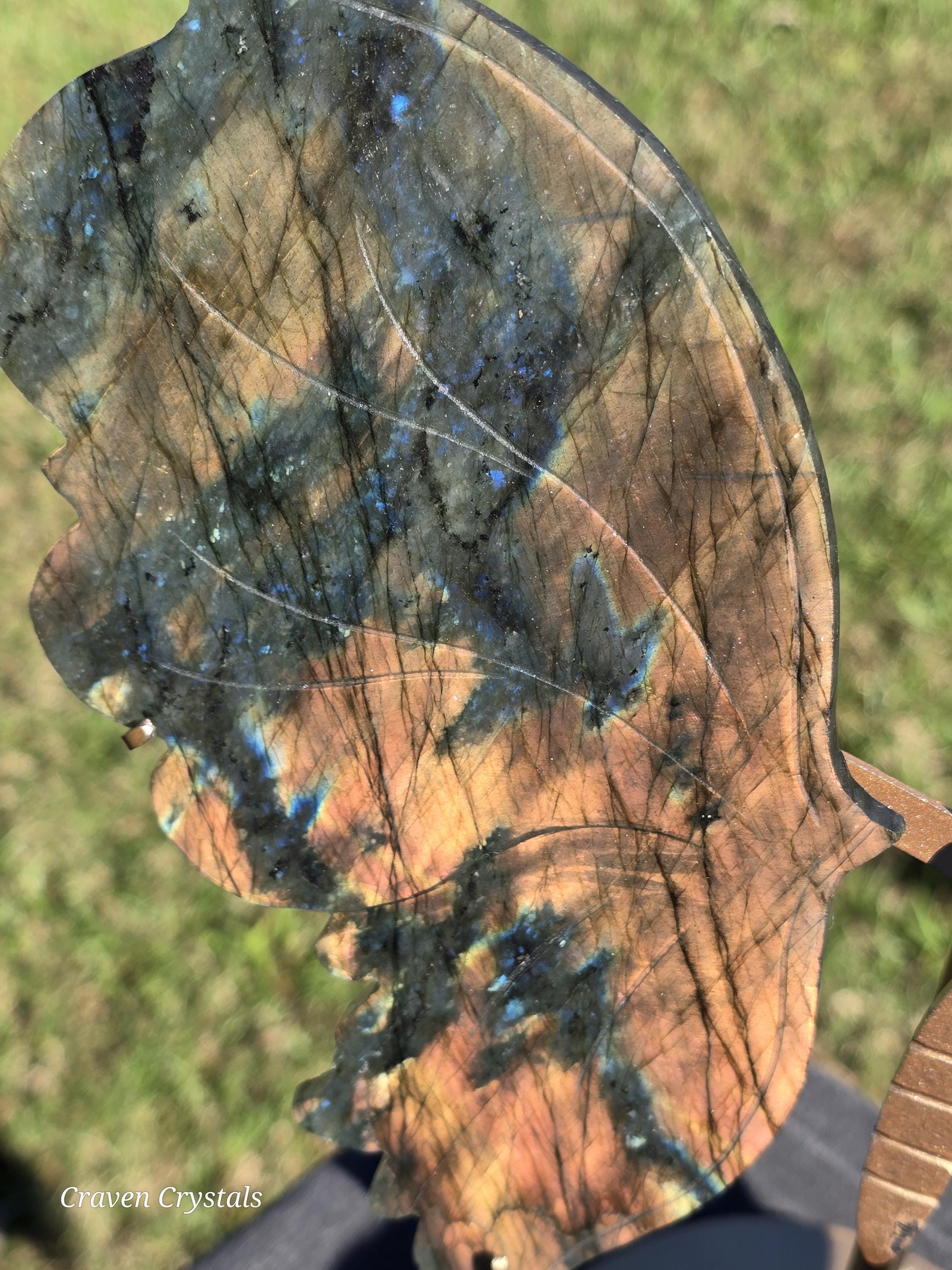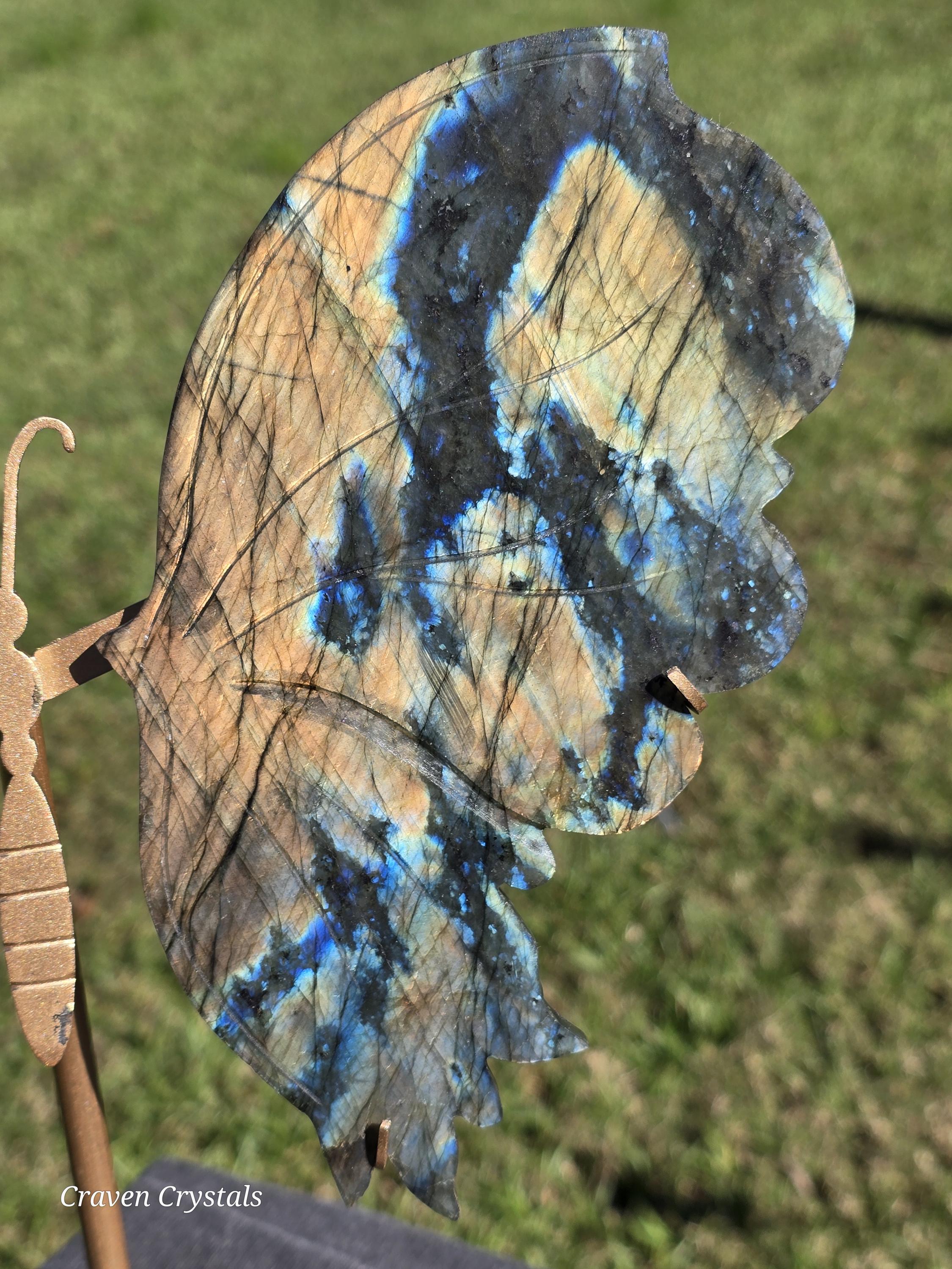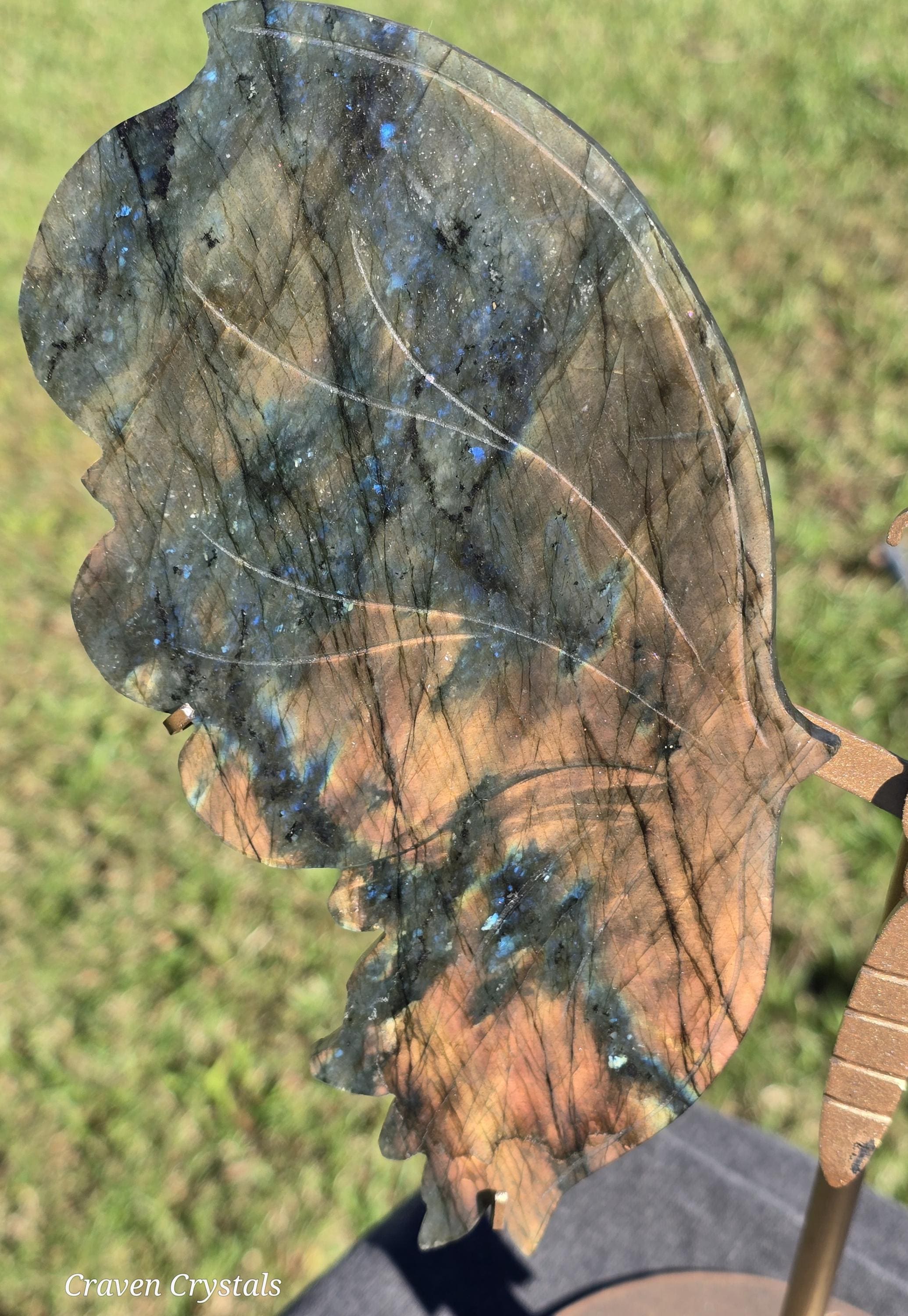 Large, flashy orange and blue Labradorite Crystal Butterfly Wings.