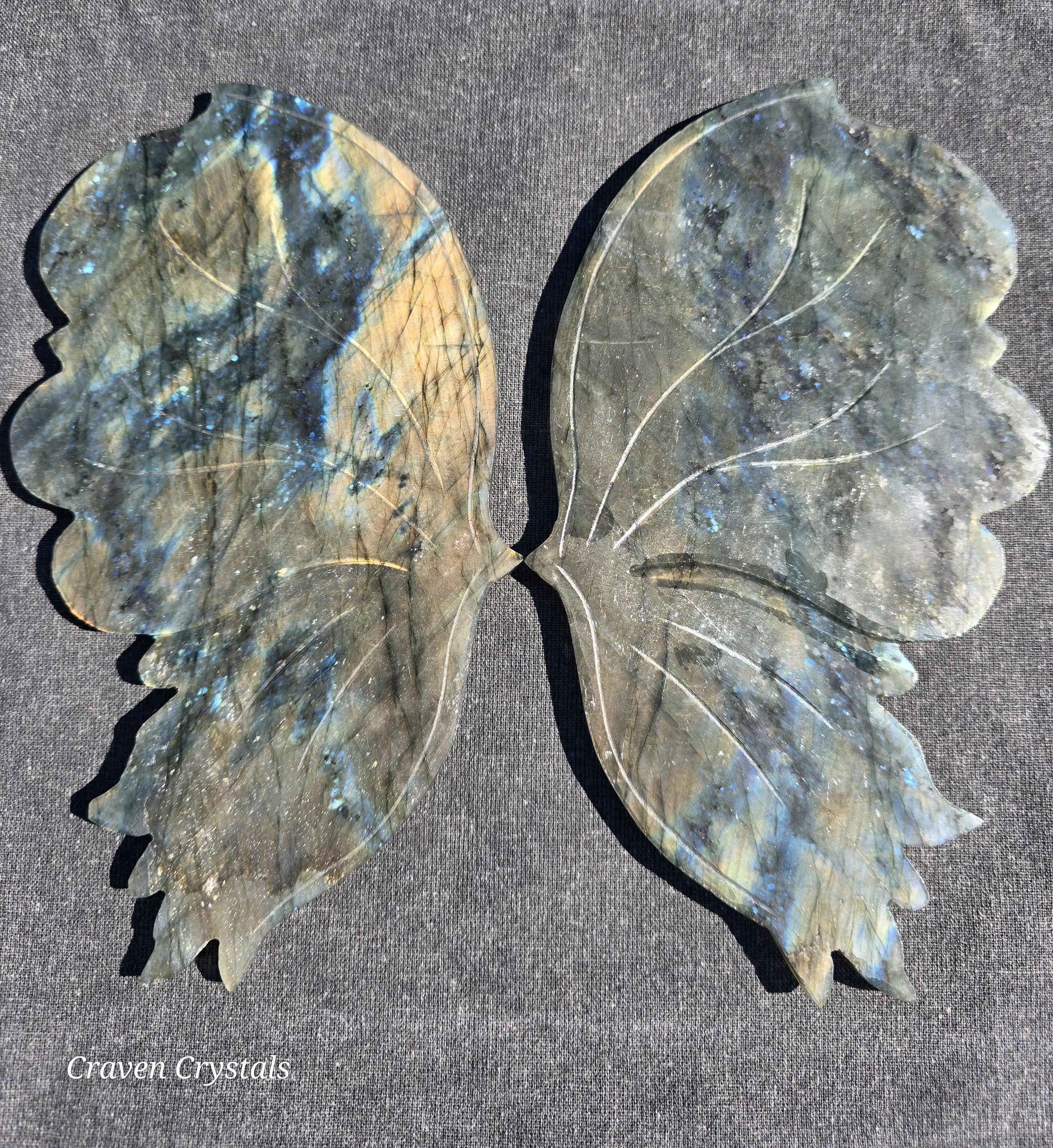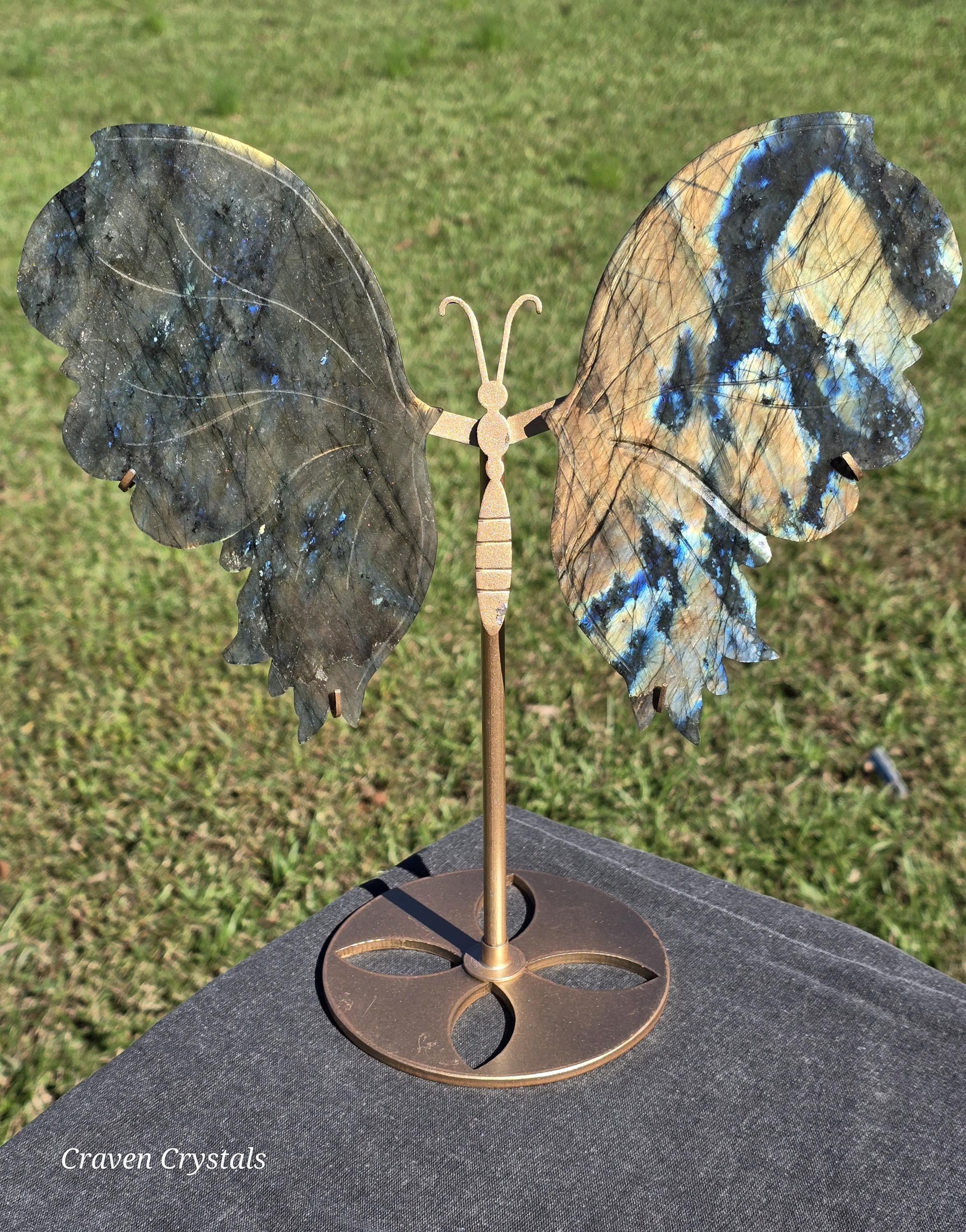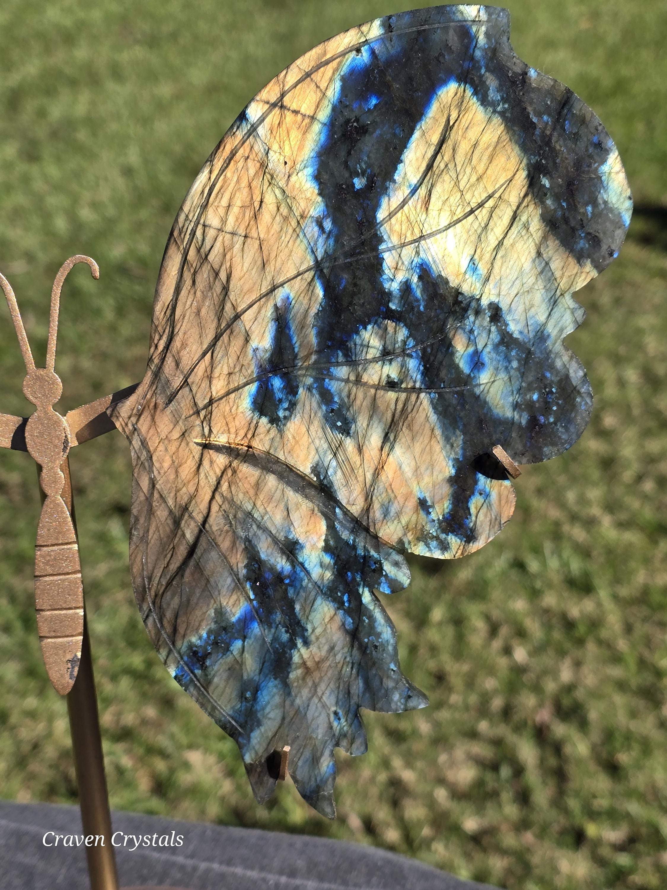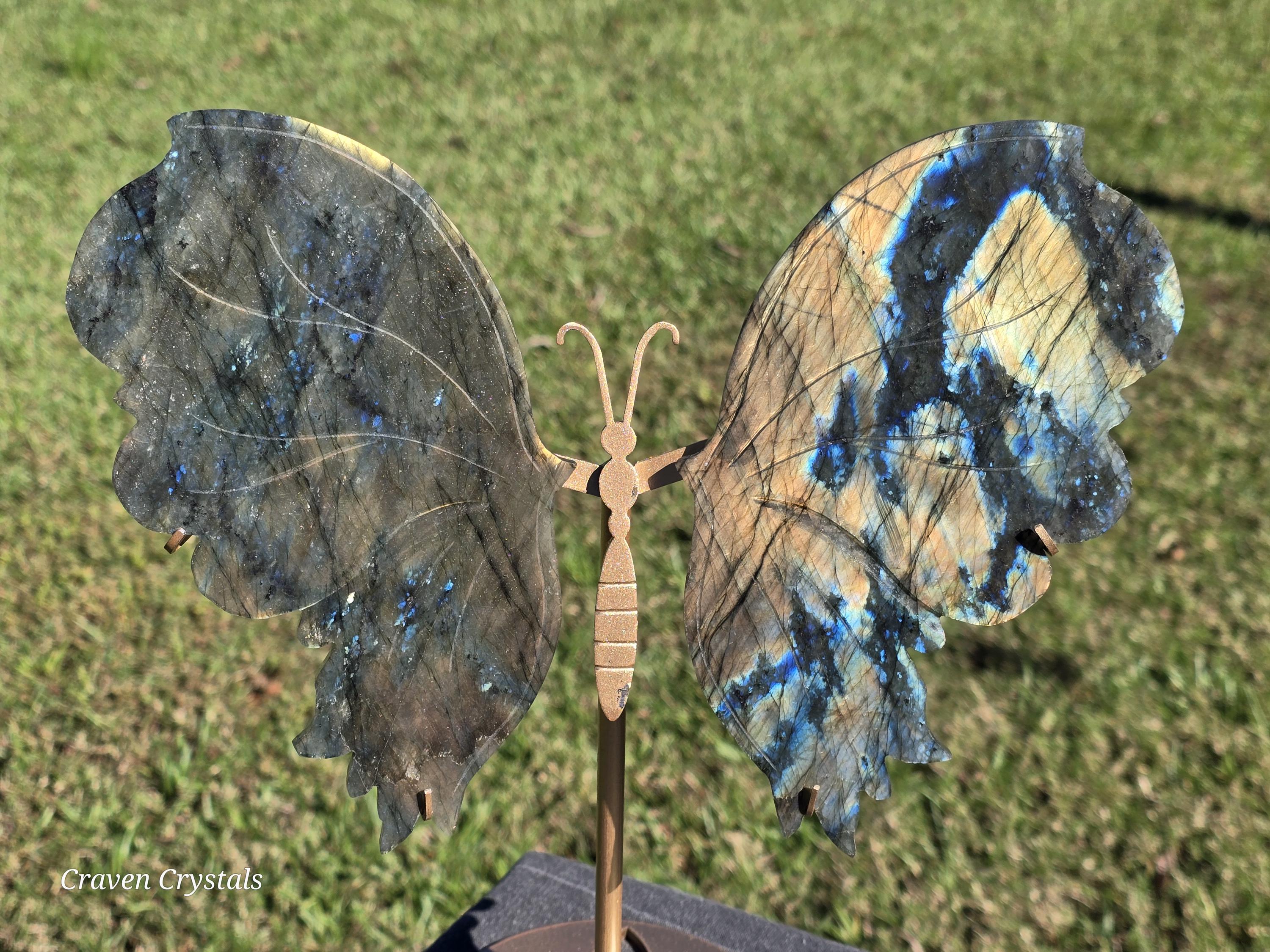 Large, flashy orange and blue Labradorite Crystal Butterfly Wings.