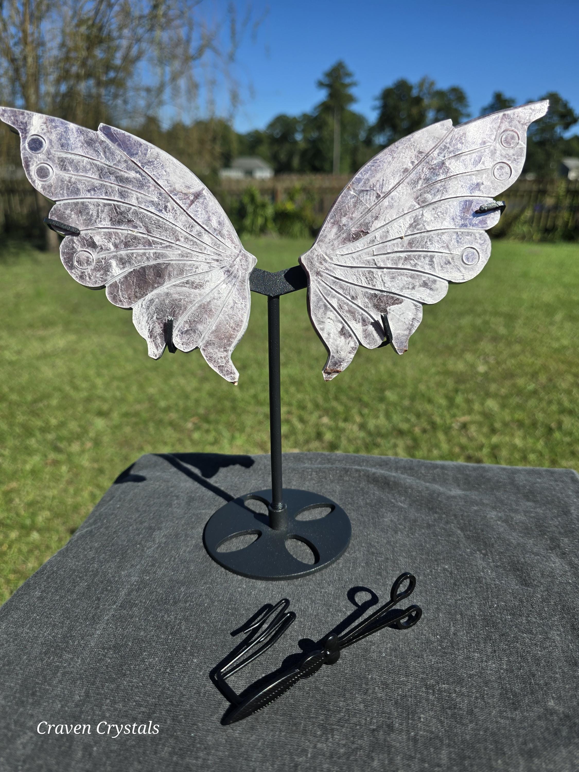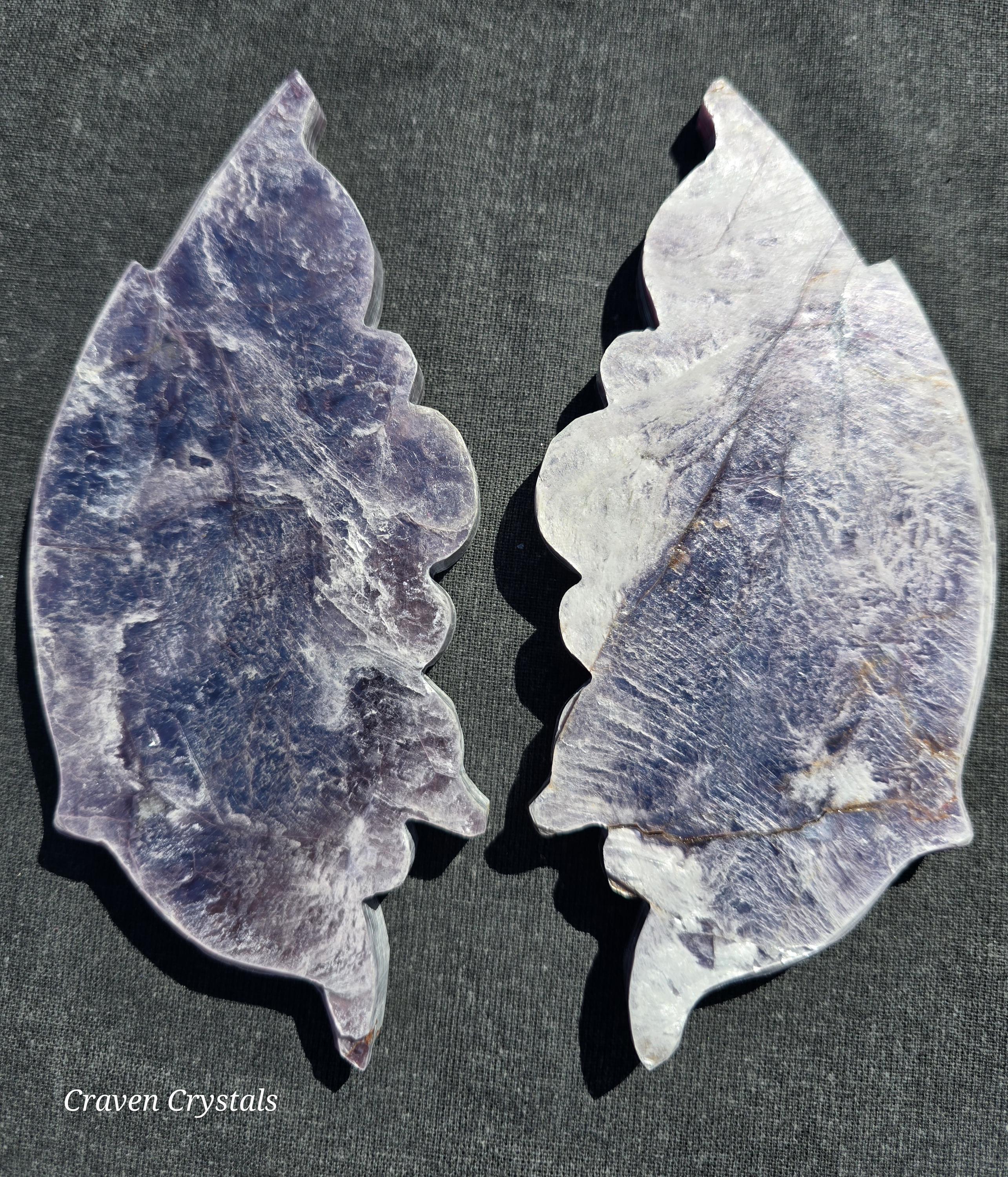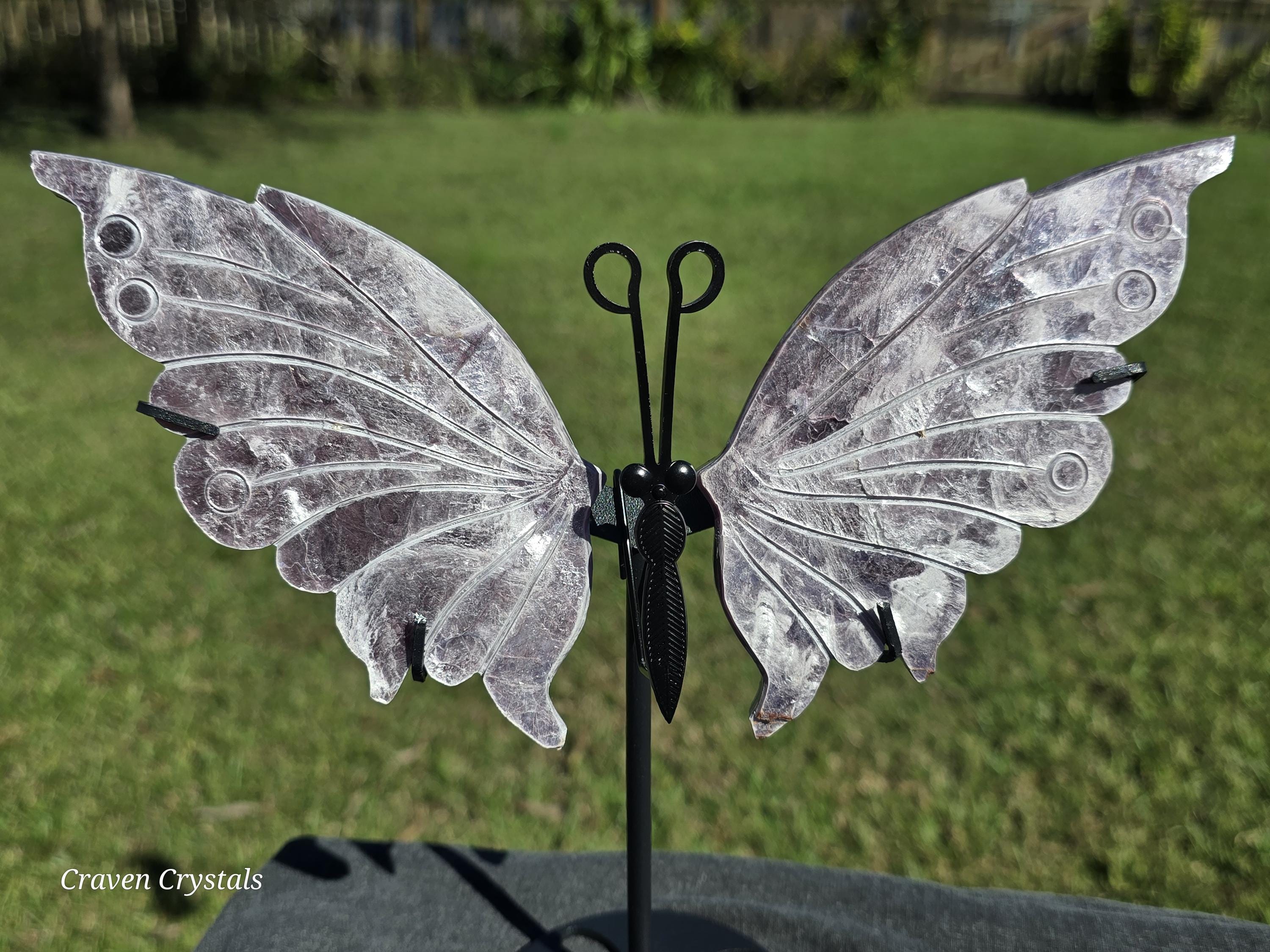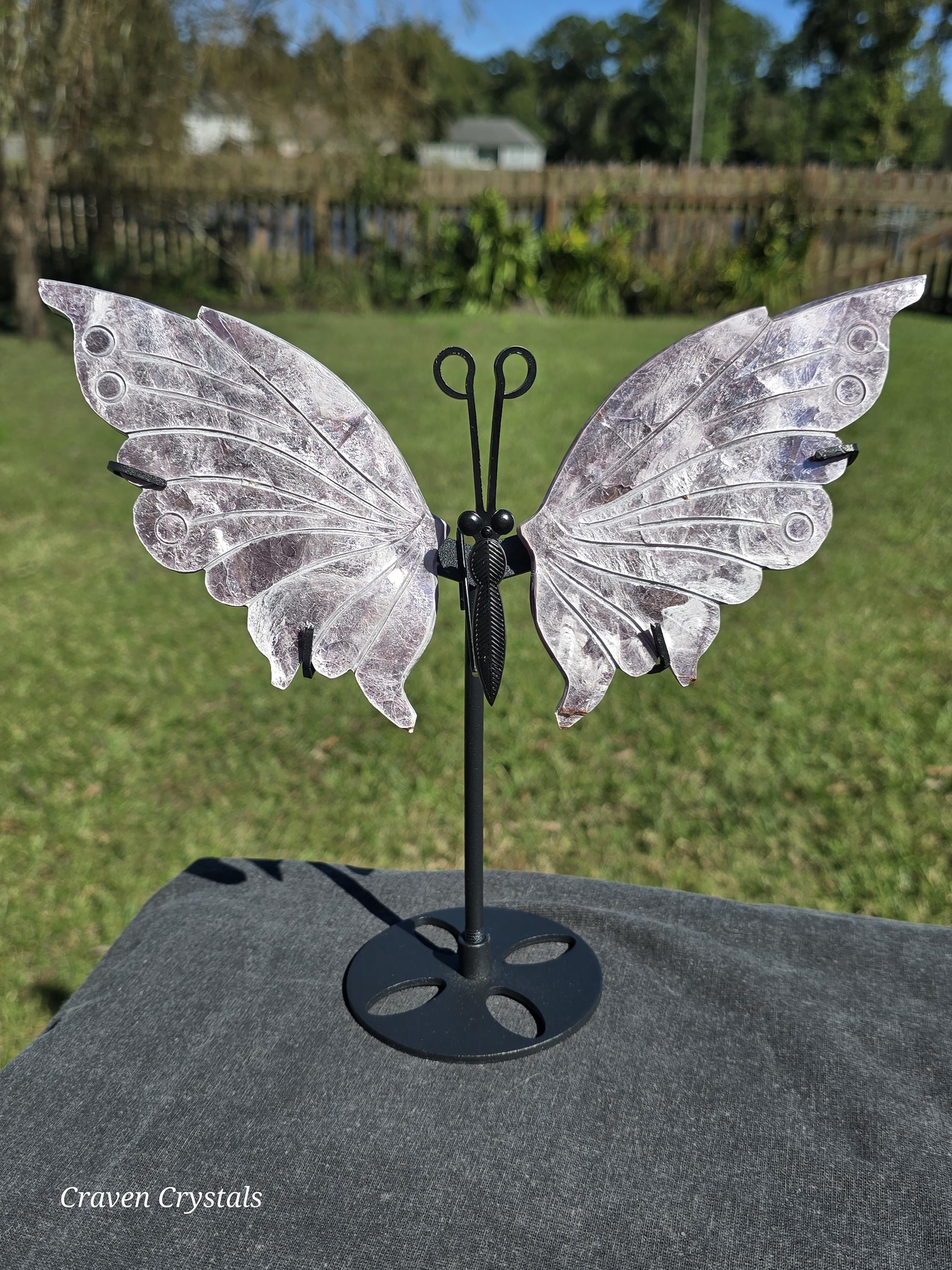 Stunning light lavender Purple Mica Crystal Butterfly Wings with silver flash. These are extremely delicate as mica is very soft and can peel or flake which makes them rare to see carved.