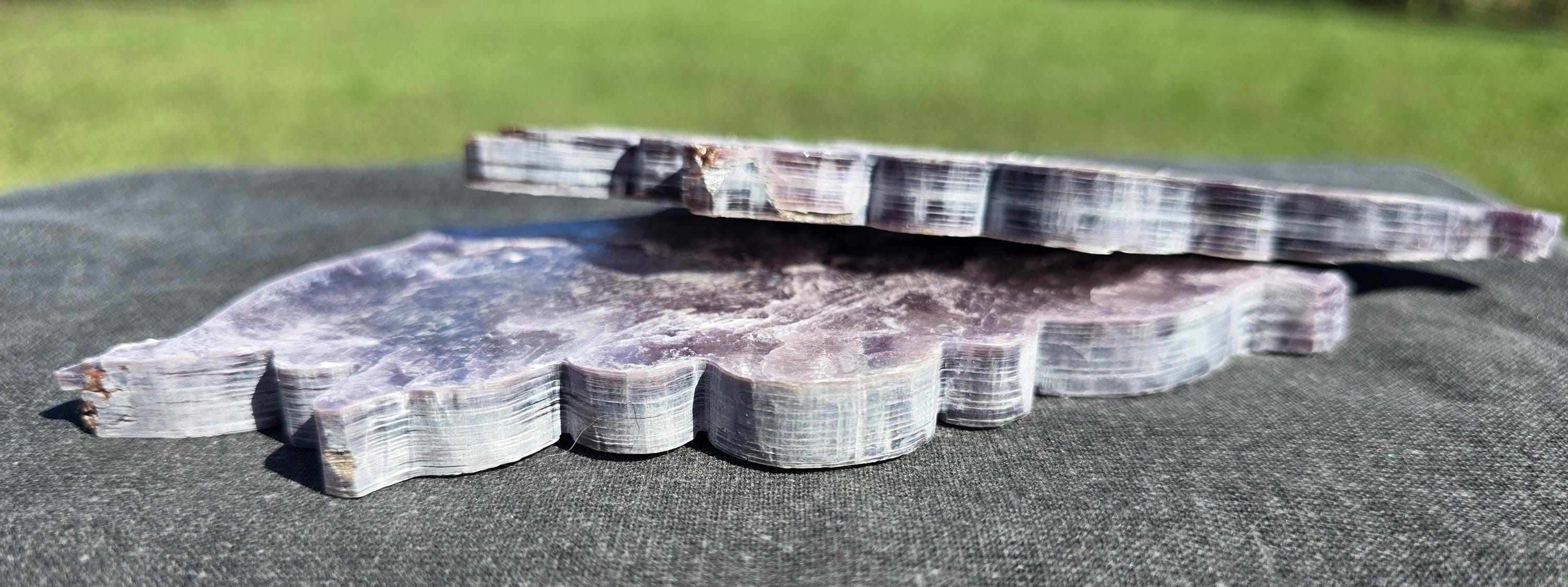 Purple Mica is believed to be a stone of peace, tranquility, awareness, and spiritual growth. It can help with stress relief, anxiety, insomnia, depression, and emotional healing. It can also enhance intuition, creativity, and self-love. Purple Mica is commonly associated with properties related to emotional well-being and stress relief. Some believe that its lithium content contributes to its calming and balancing effects on emotions and mood.
