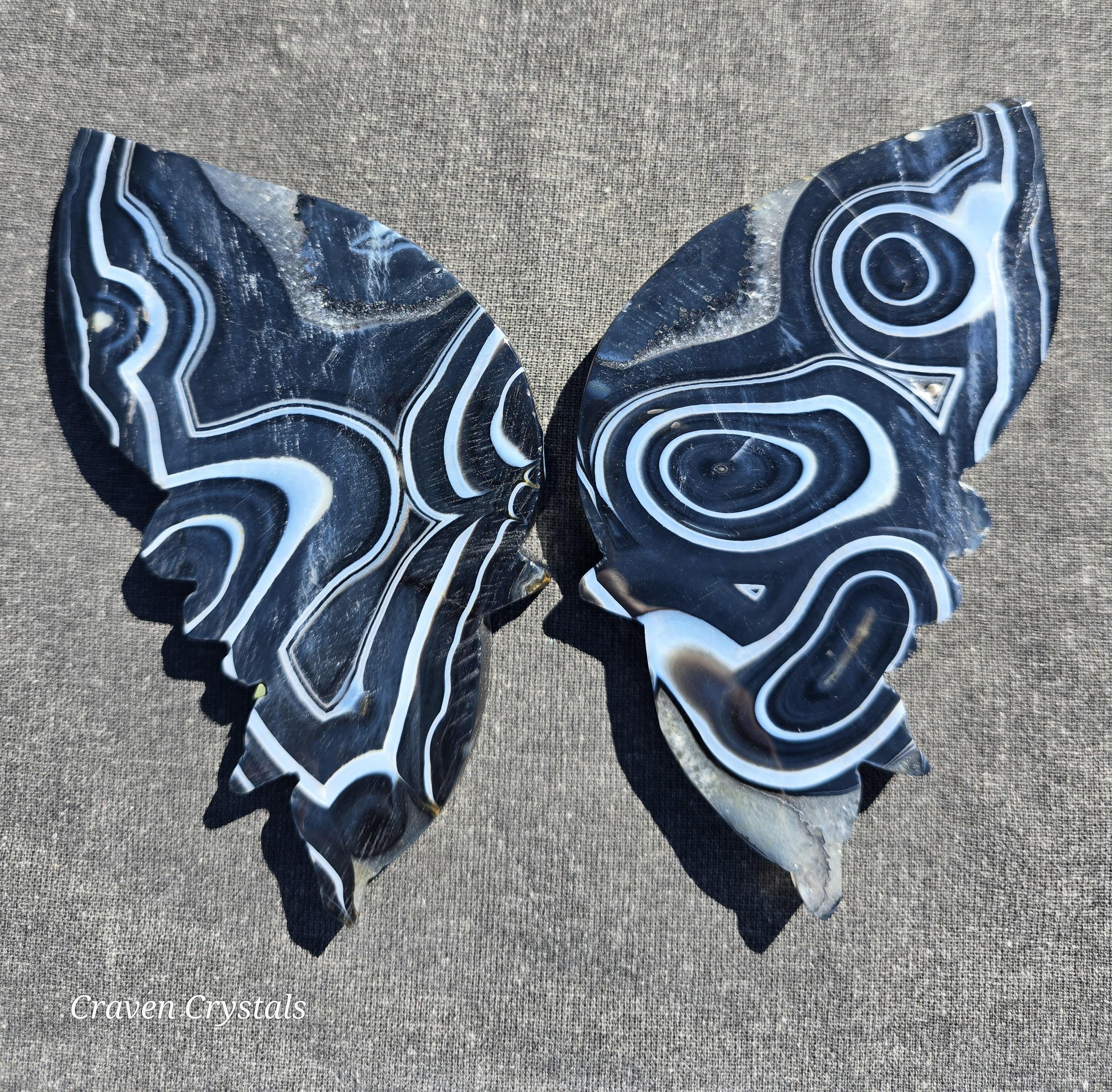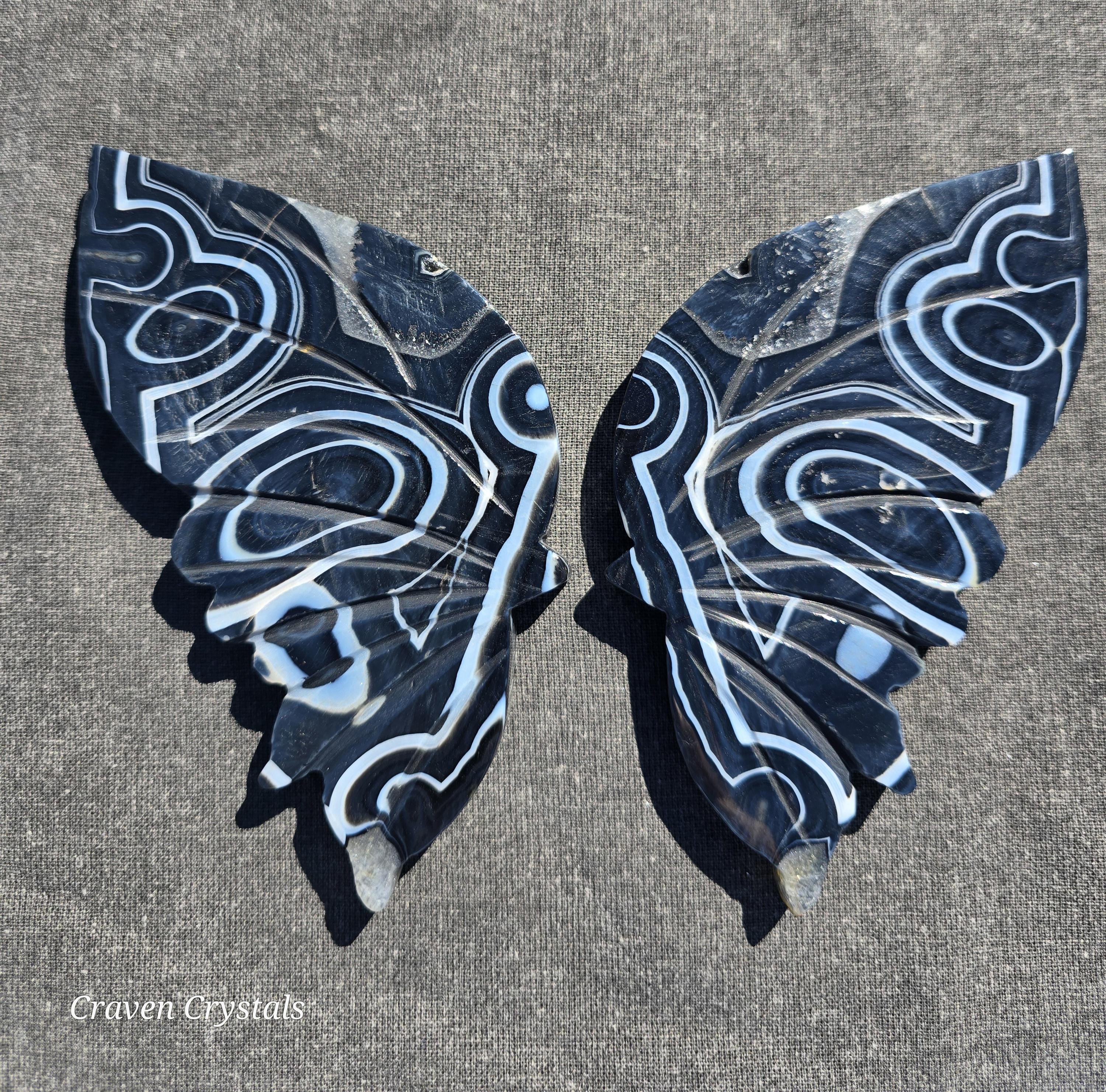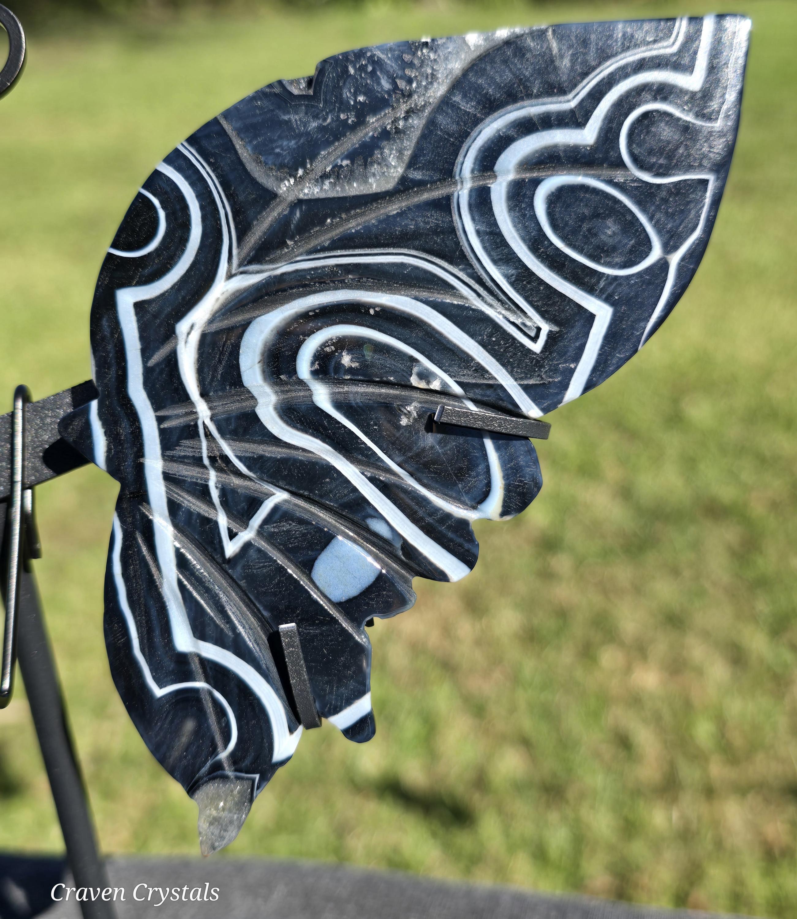 Black Agate Crystal Butterfly Wings with gorgeous swirling white banding