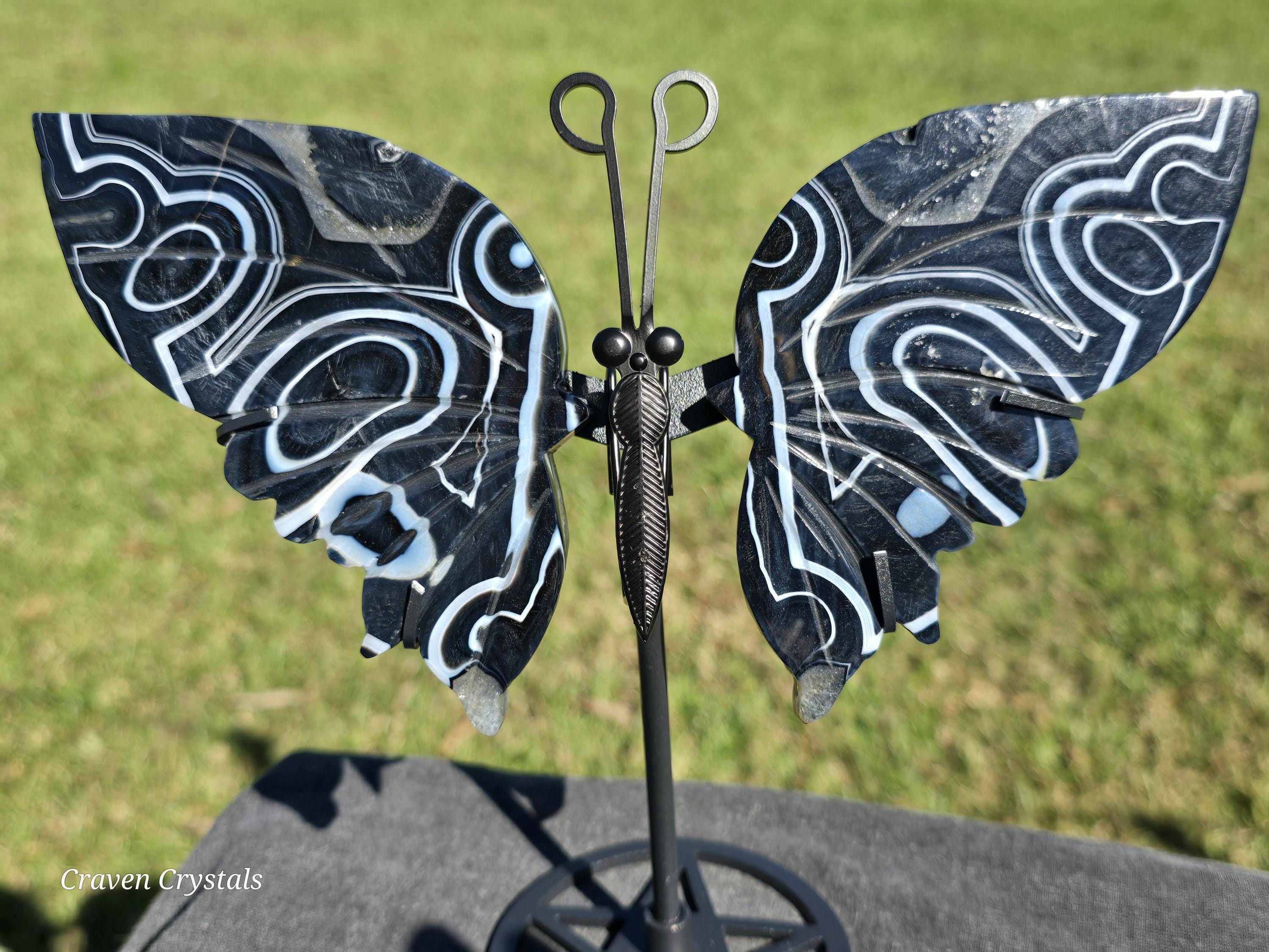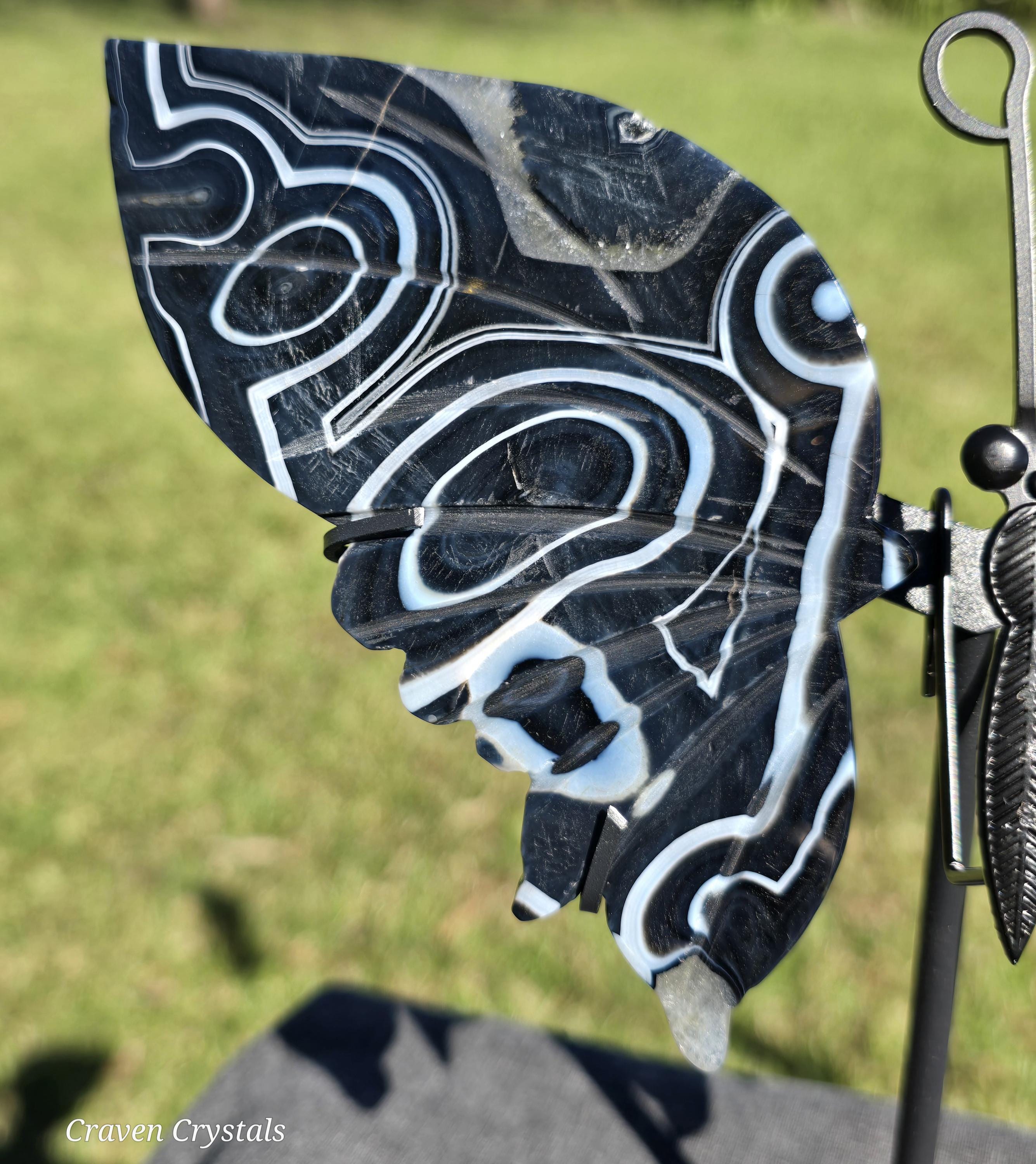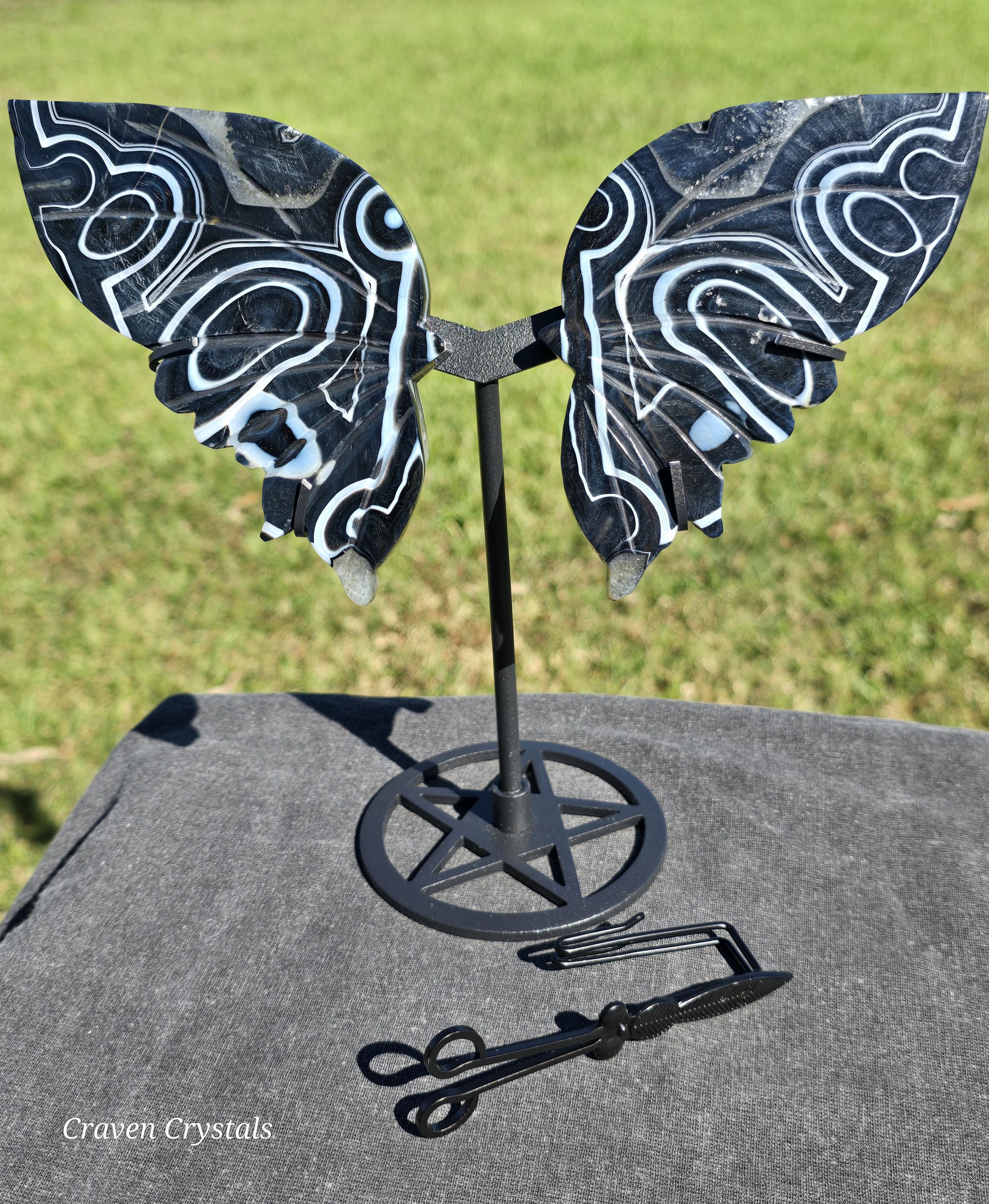 Black Agate Crystal Butterfly Wings with gorgeous swirling white banding