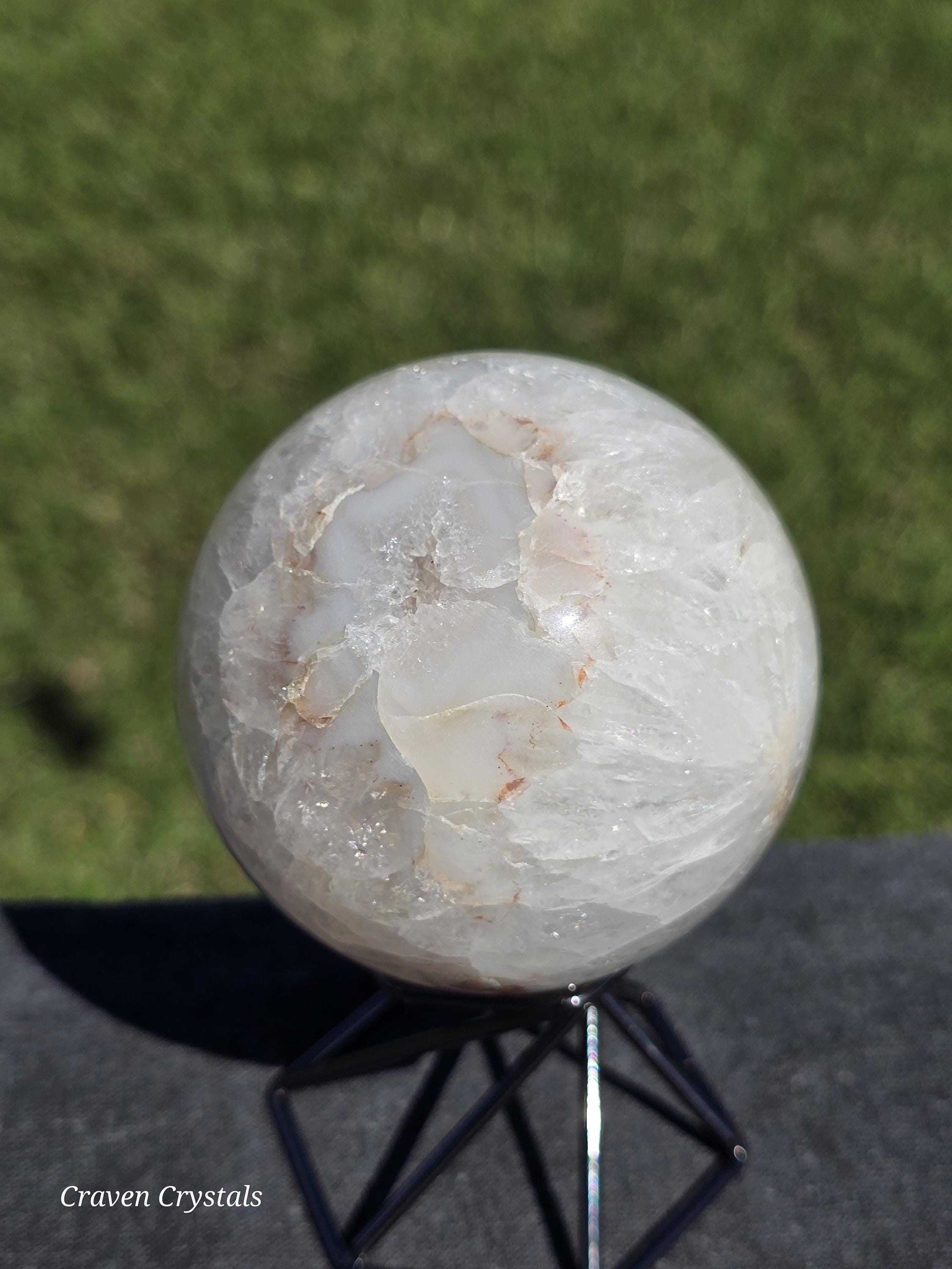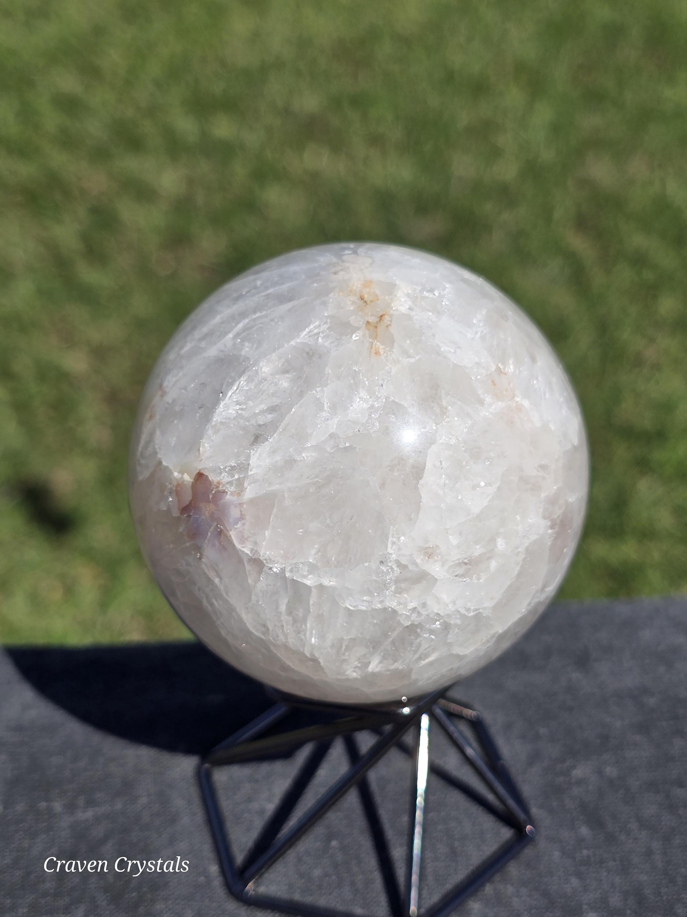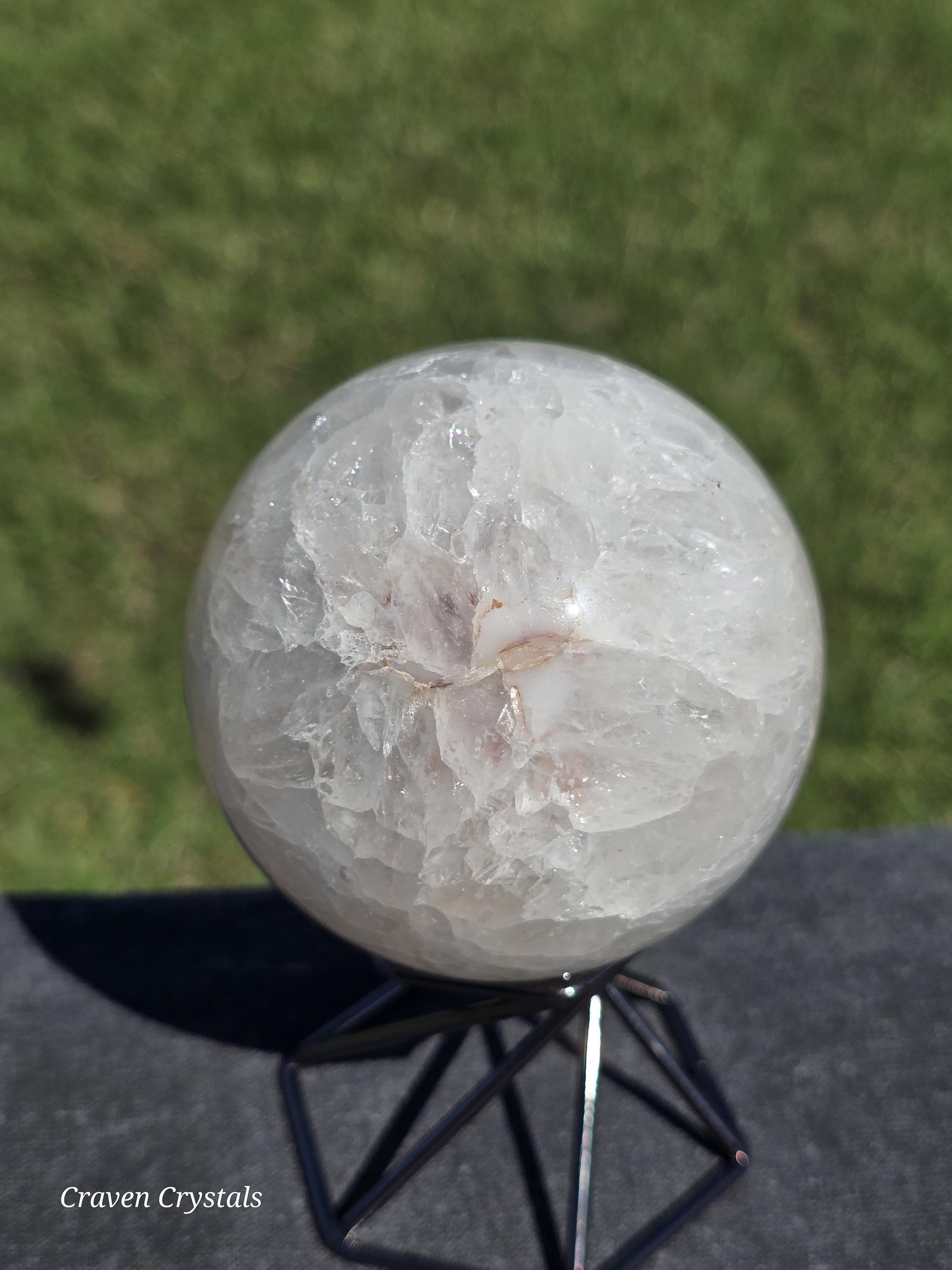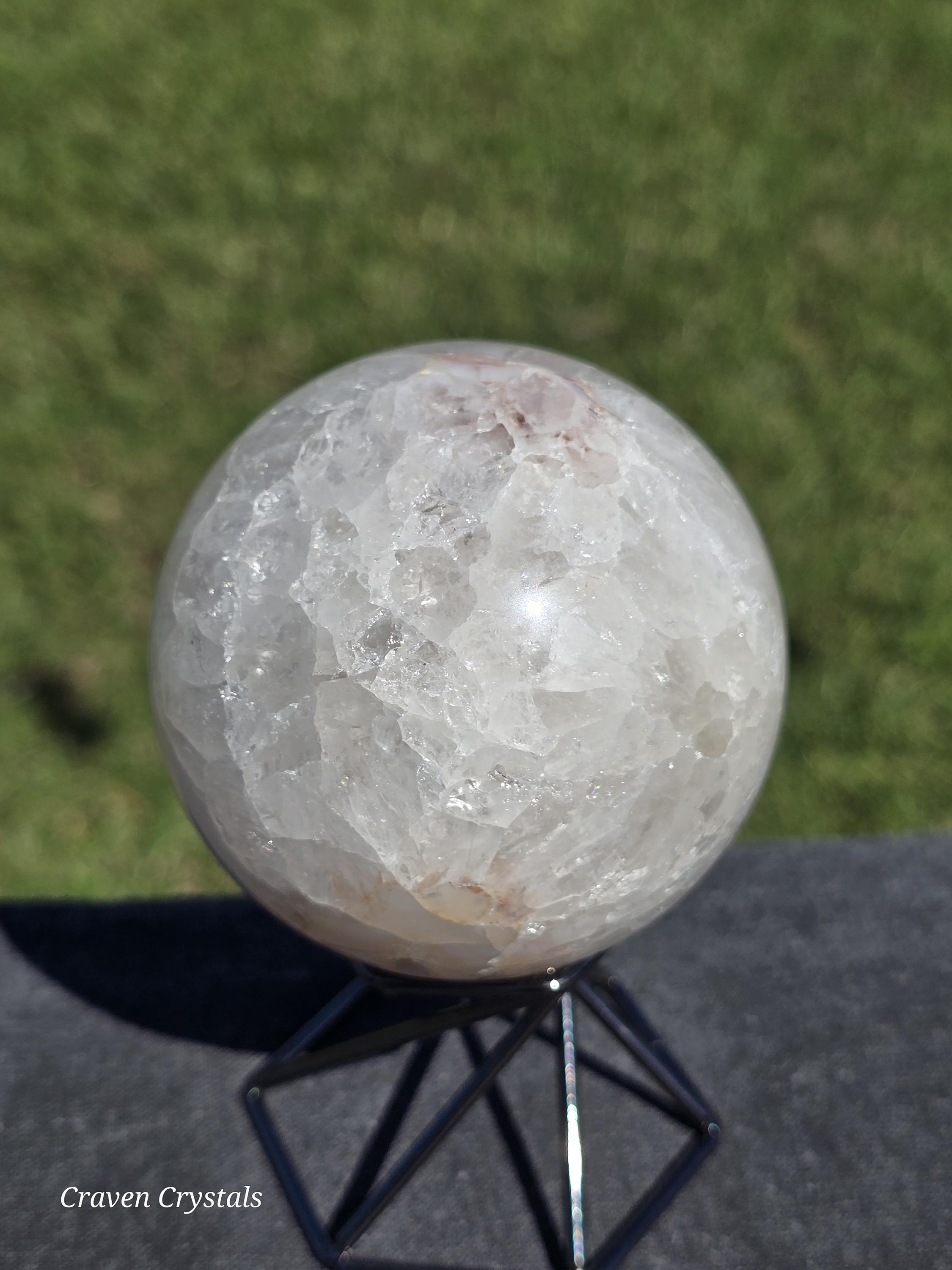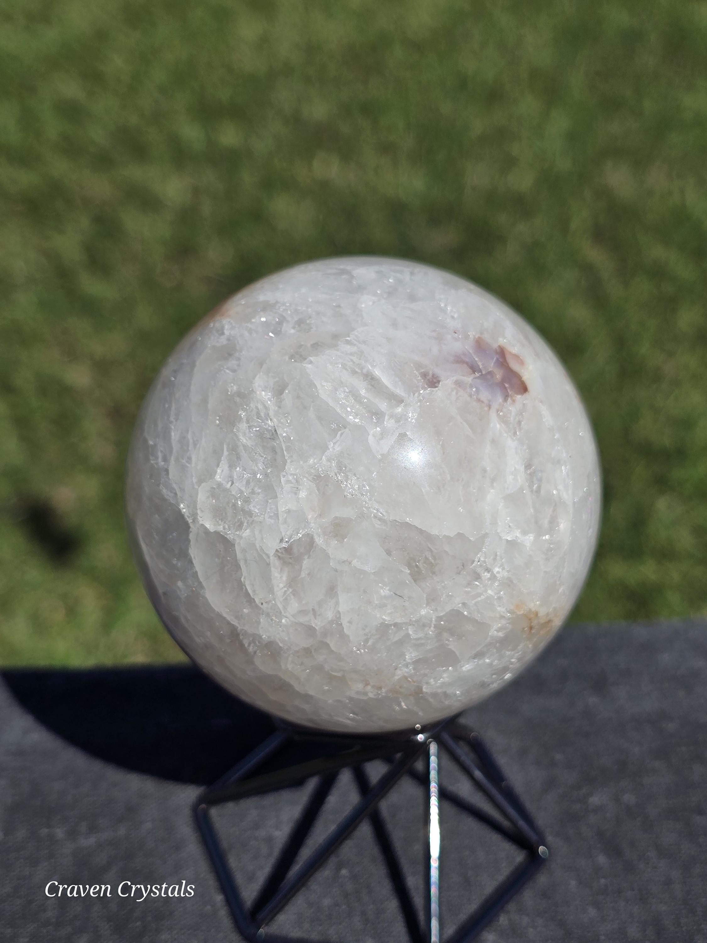 Amazing Clear Quartz with natural crackle and Fire Quartz inclusion Crystal Sphere, also known as Hematoid Quartz, Ferruginous Quartz, is a captivating and unique variety of quartz that exhibits a combination of clear quartz and hematite.