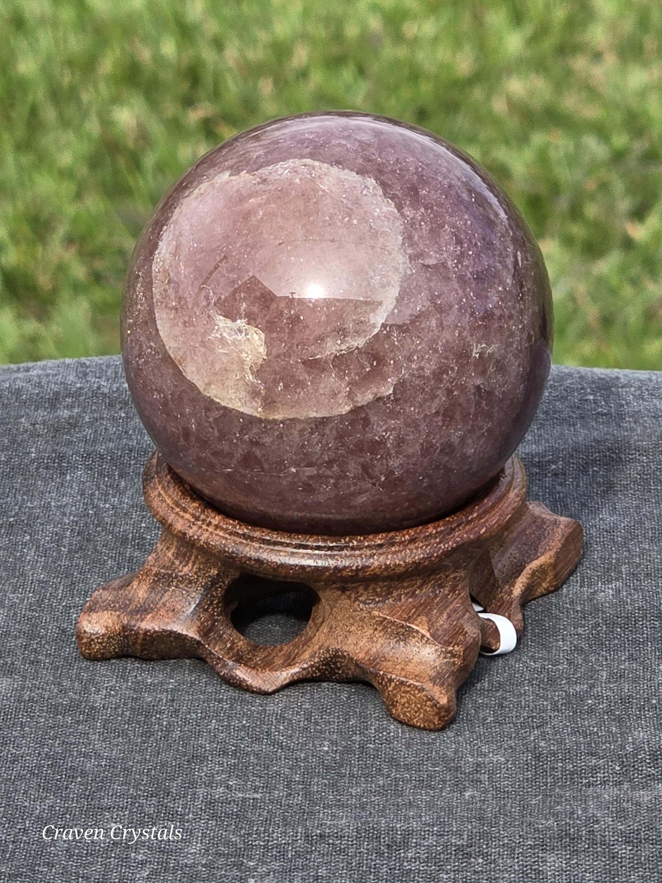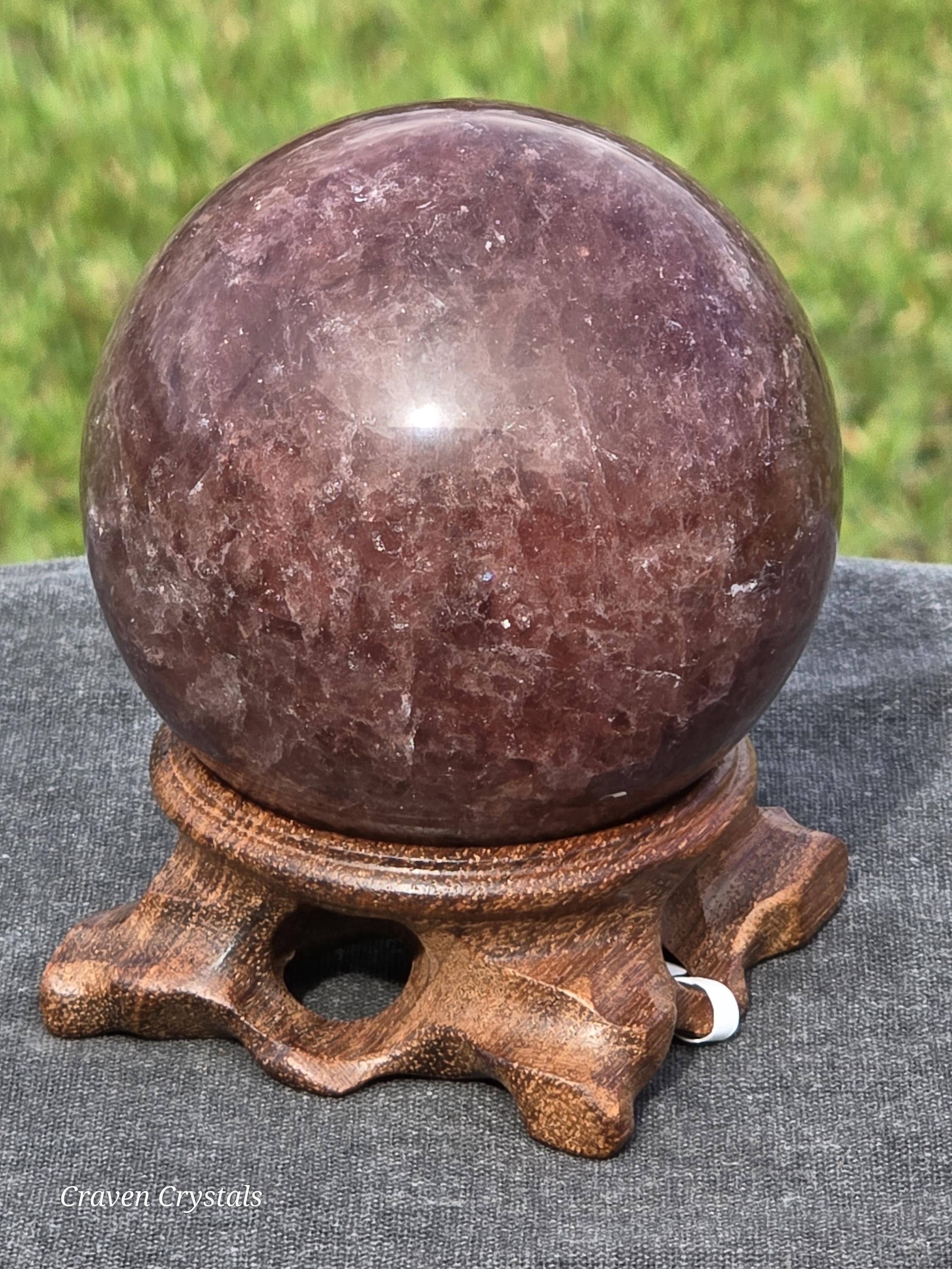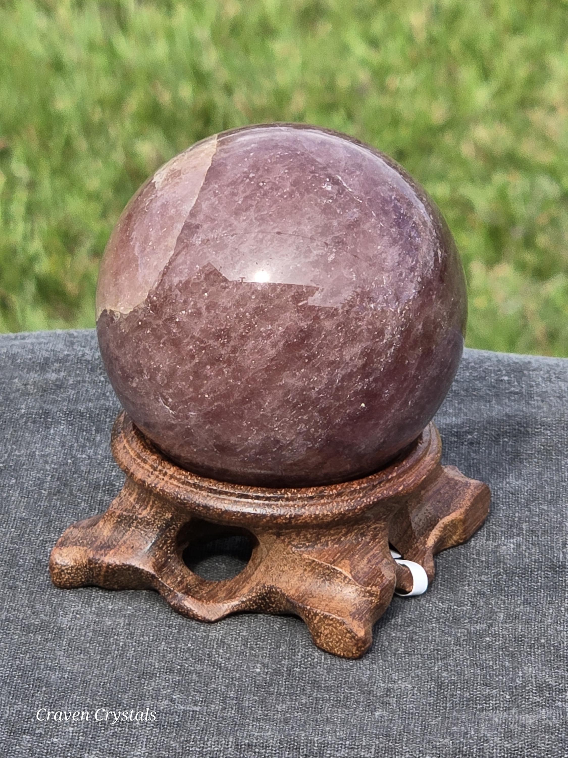 Strawberry Quartz Crystal Sphere a beautiful and unique variety of quartz that is known for its reddish-pink inclusions, which give it a distinct appearance resembling the color of ripe strawberries