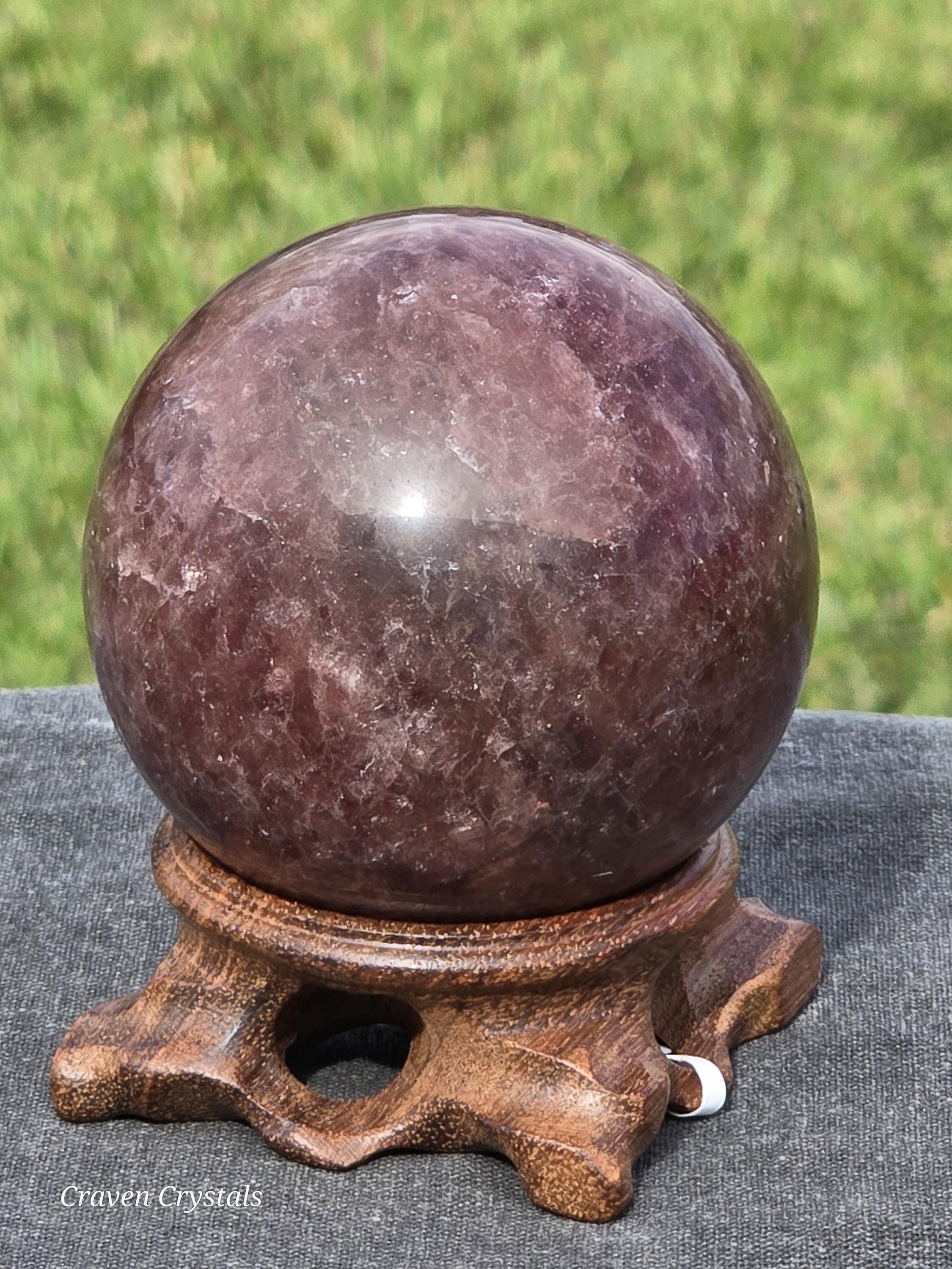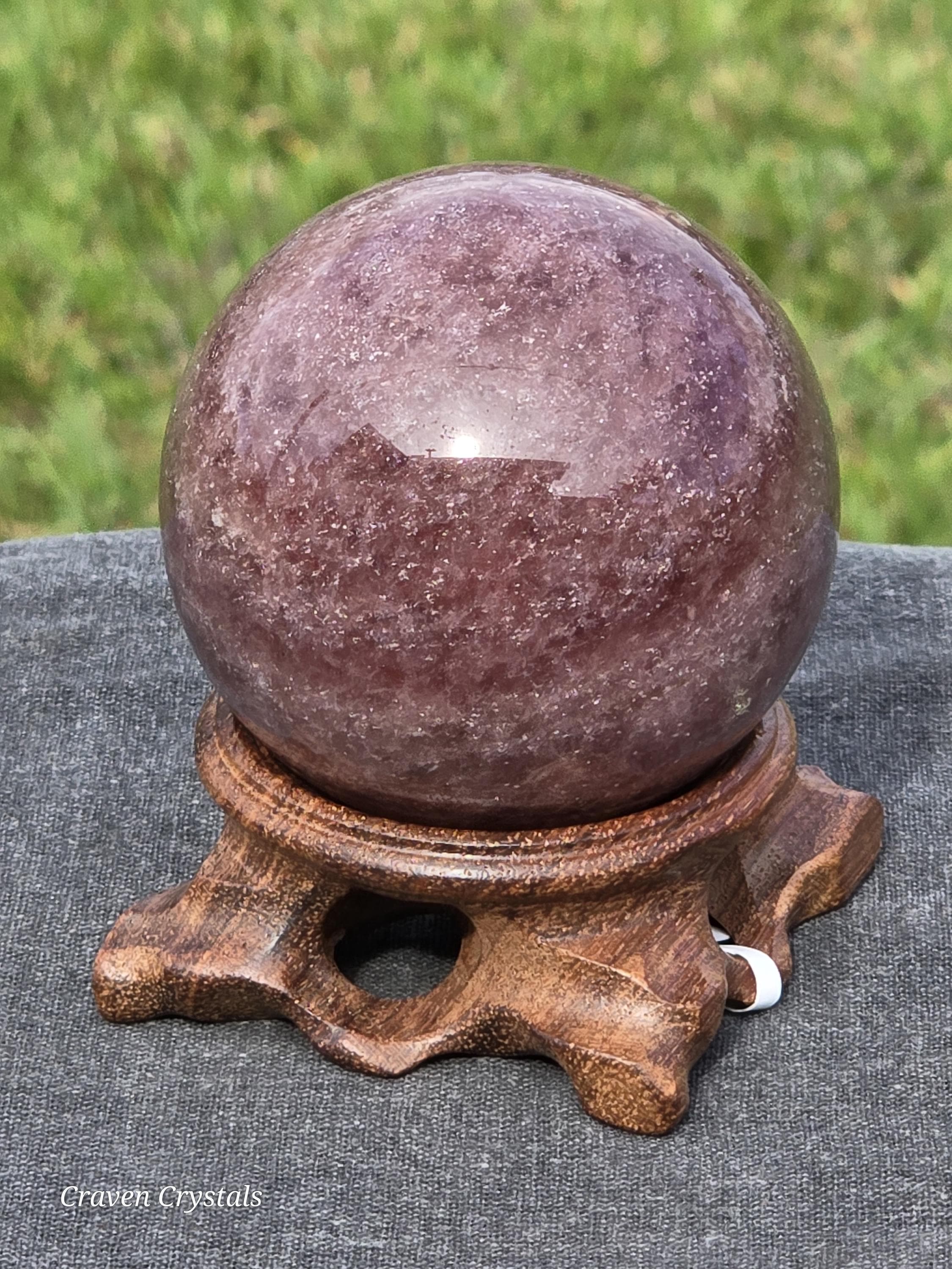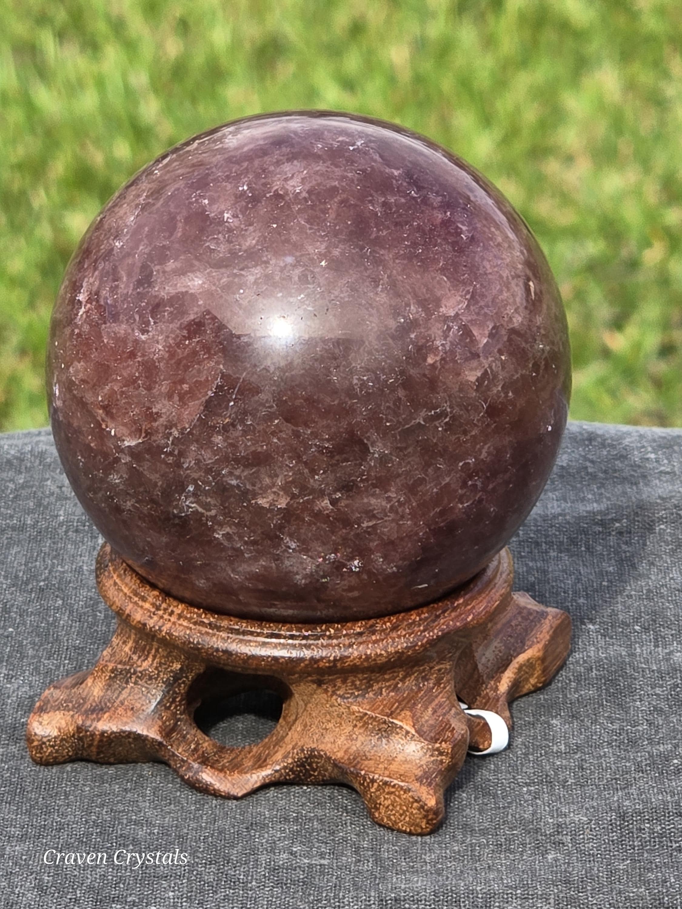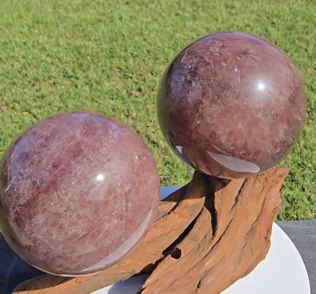 Strawberry Quartz Crystal Sphere a beautiful and unique variety of quartz that is known for its reddish-pink inclusions, which give it a distinct appearance resembling the color of ripe strawberries