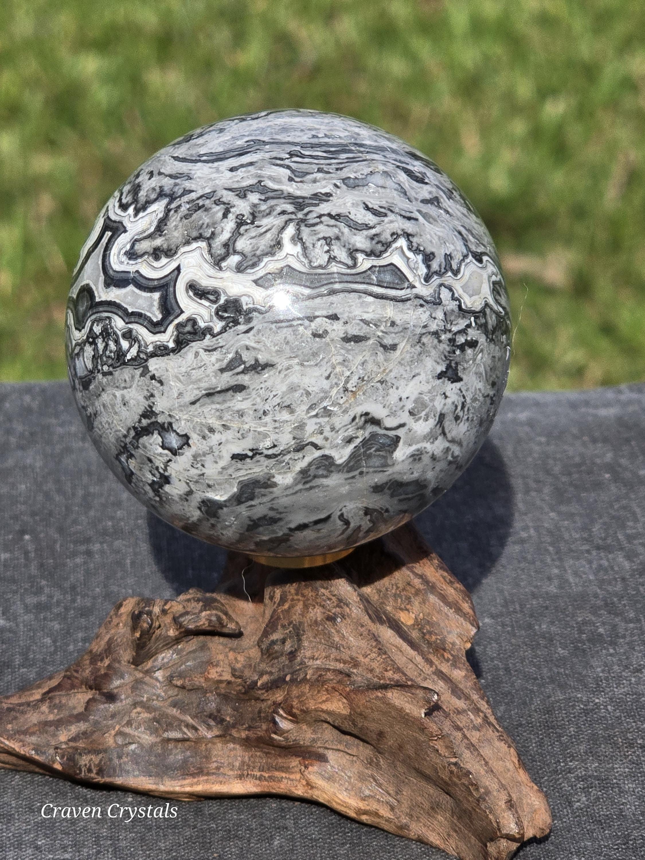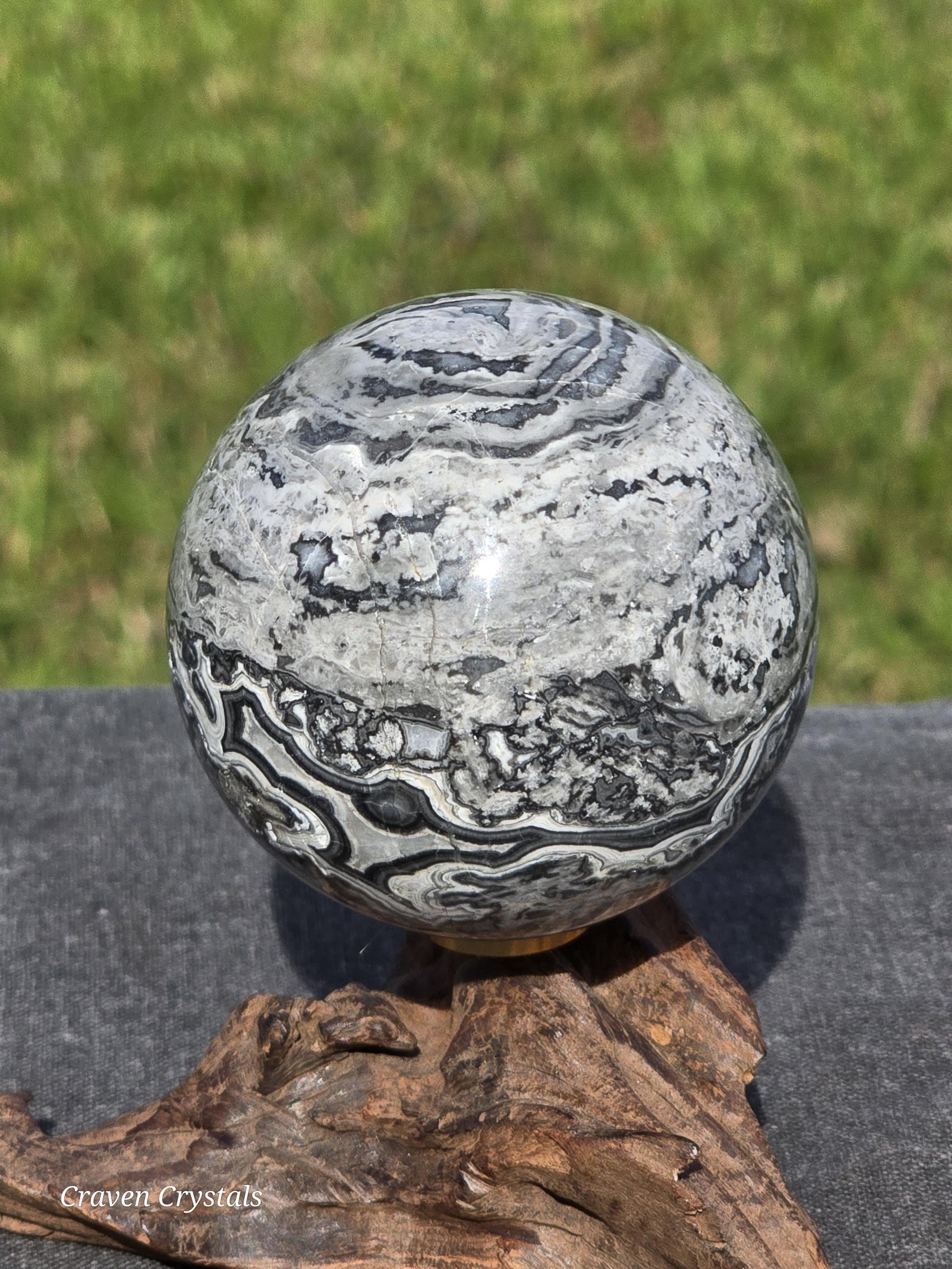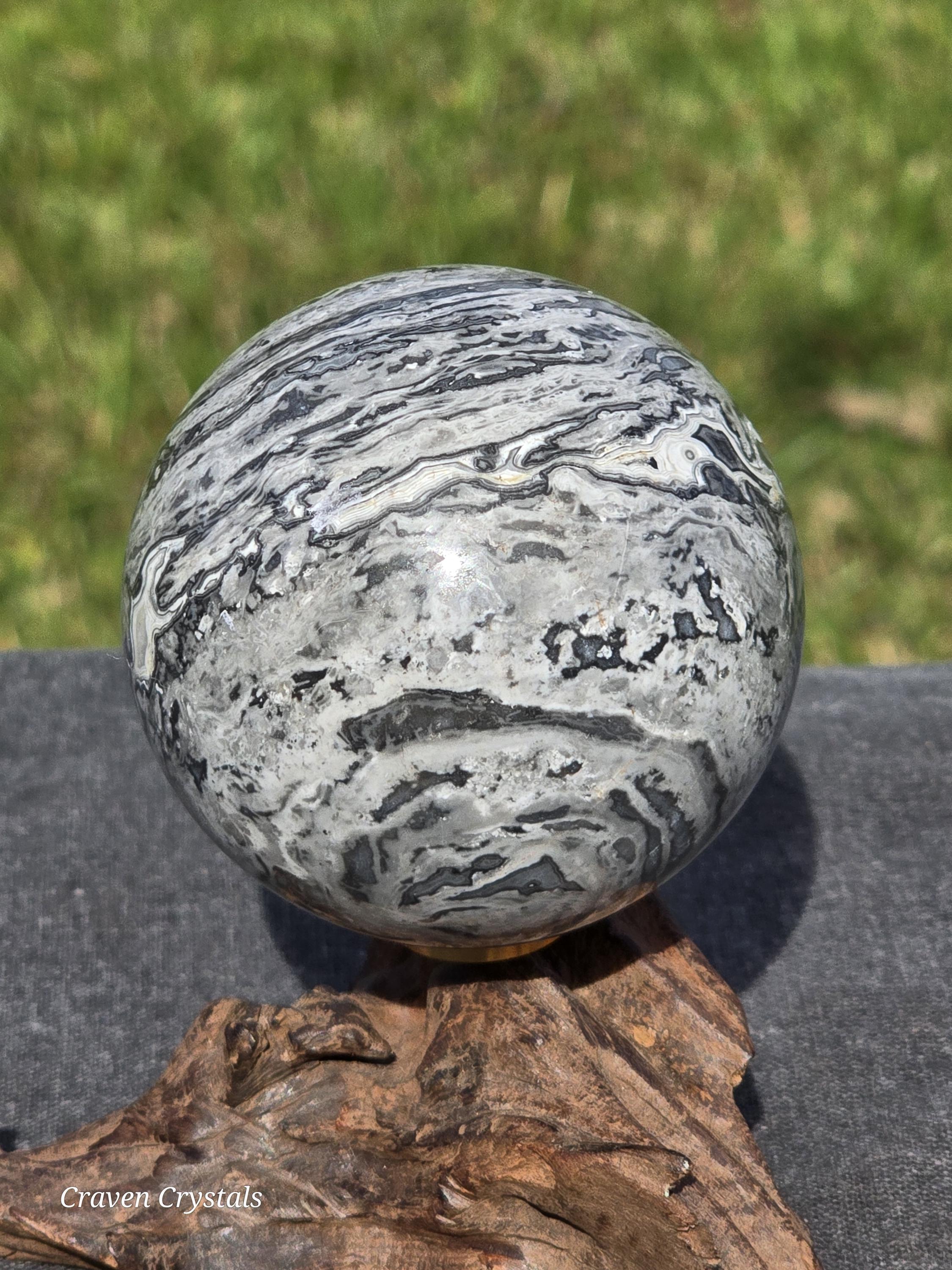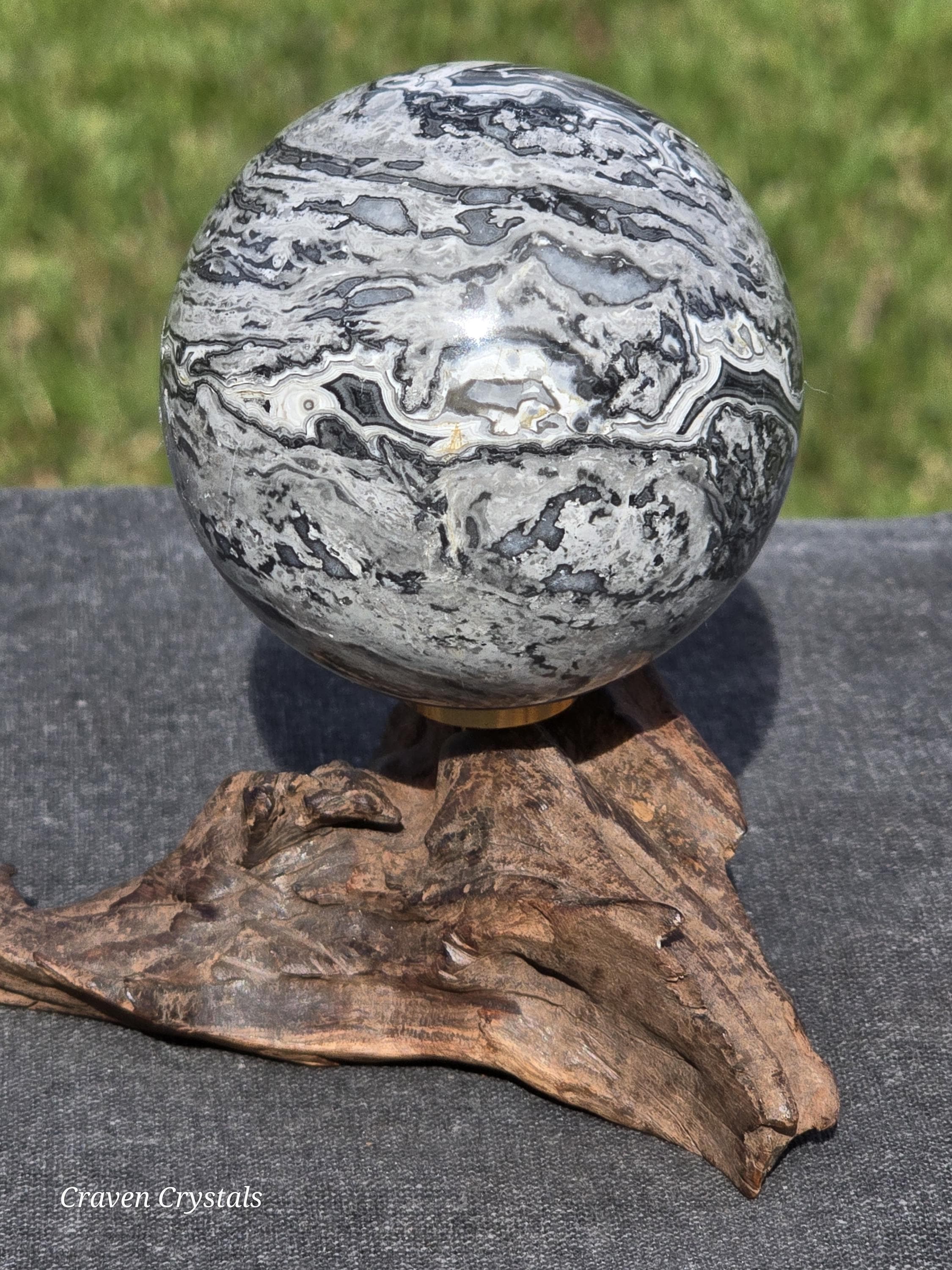 Amazing patterned, gray, Map Jasper Crystal Sphere