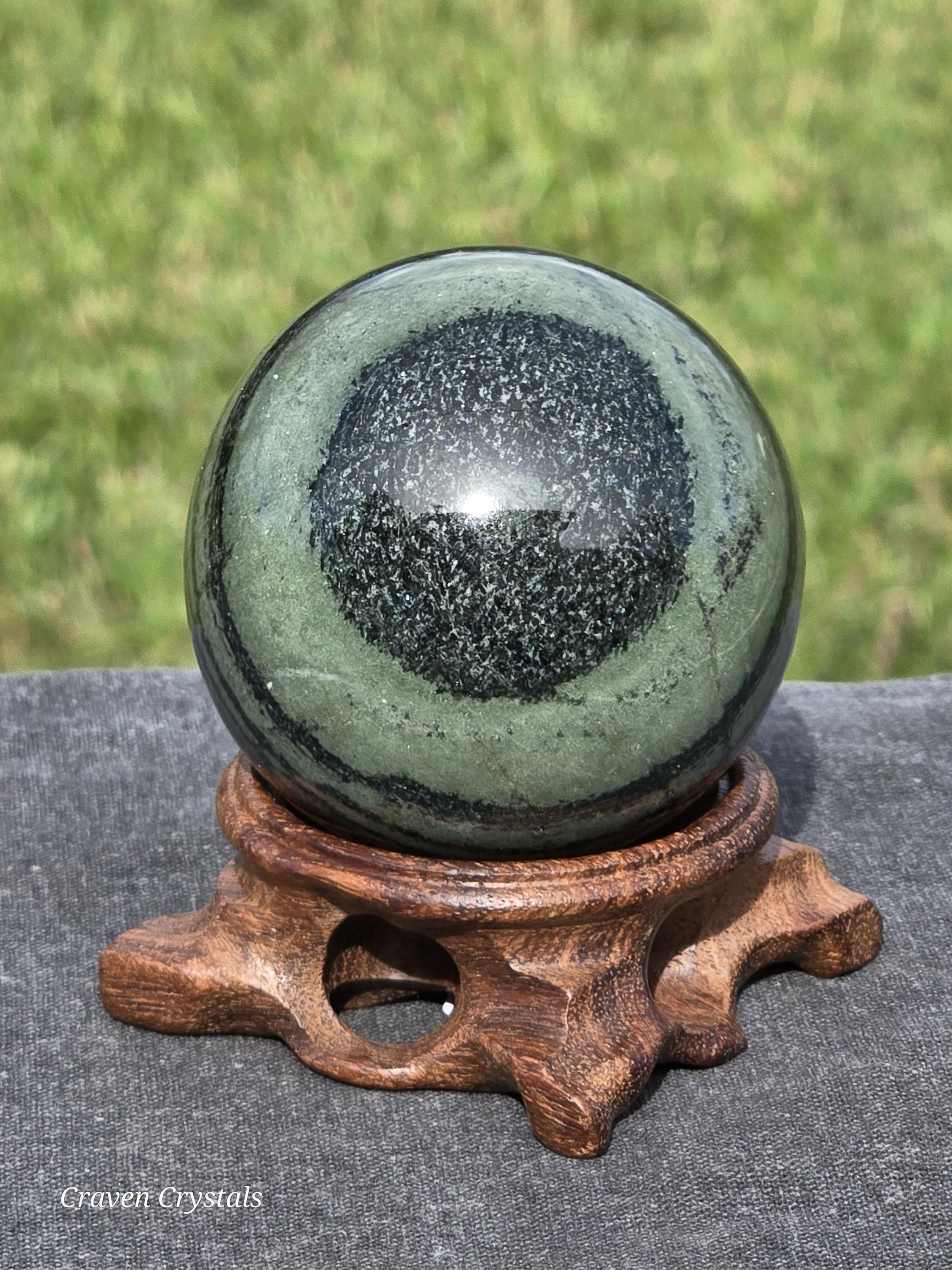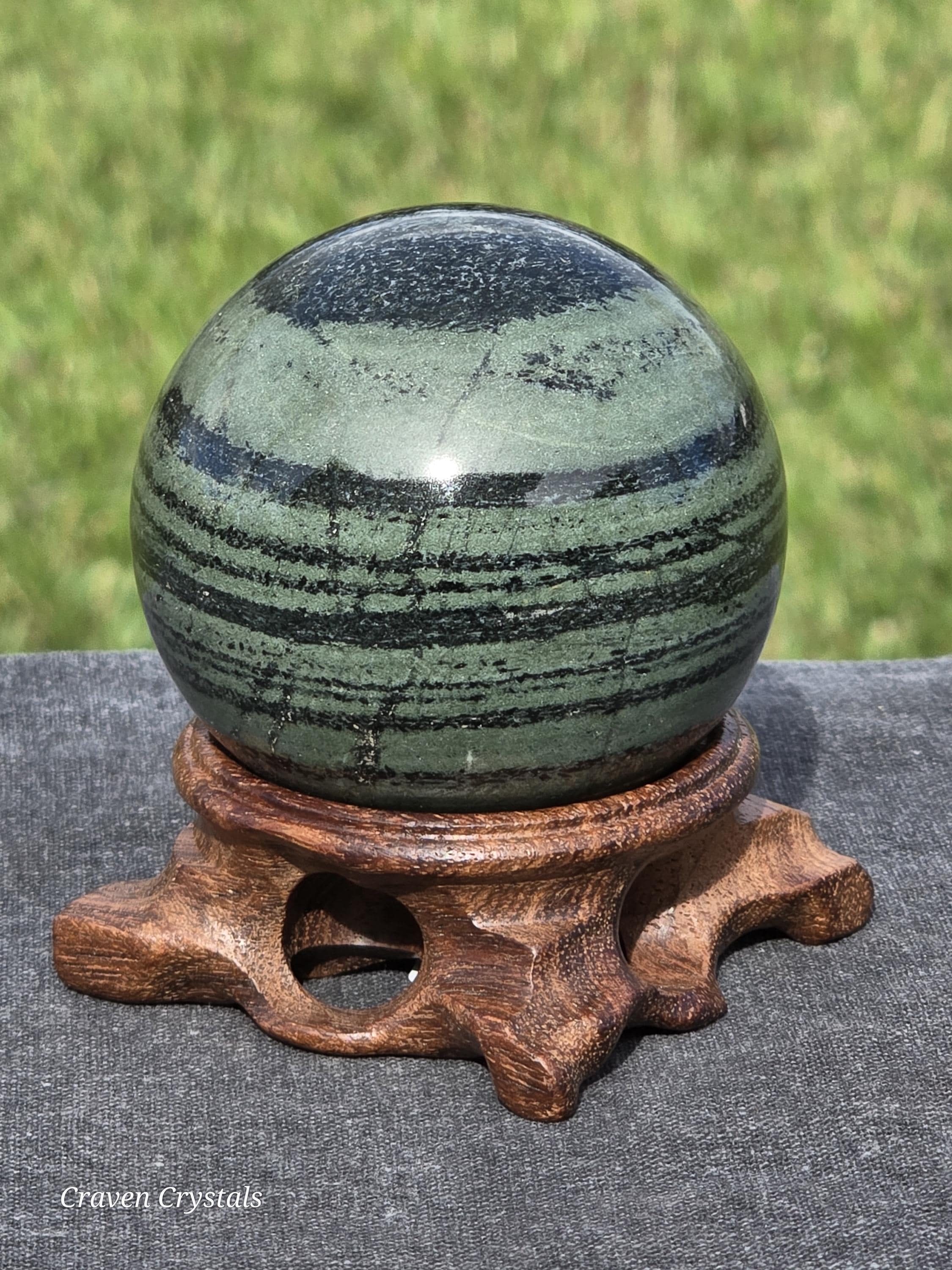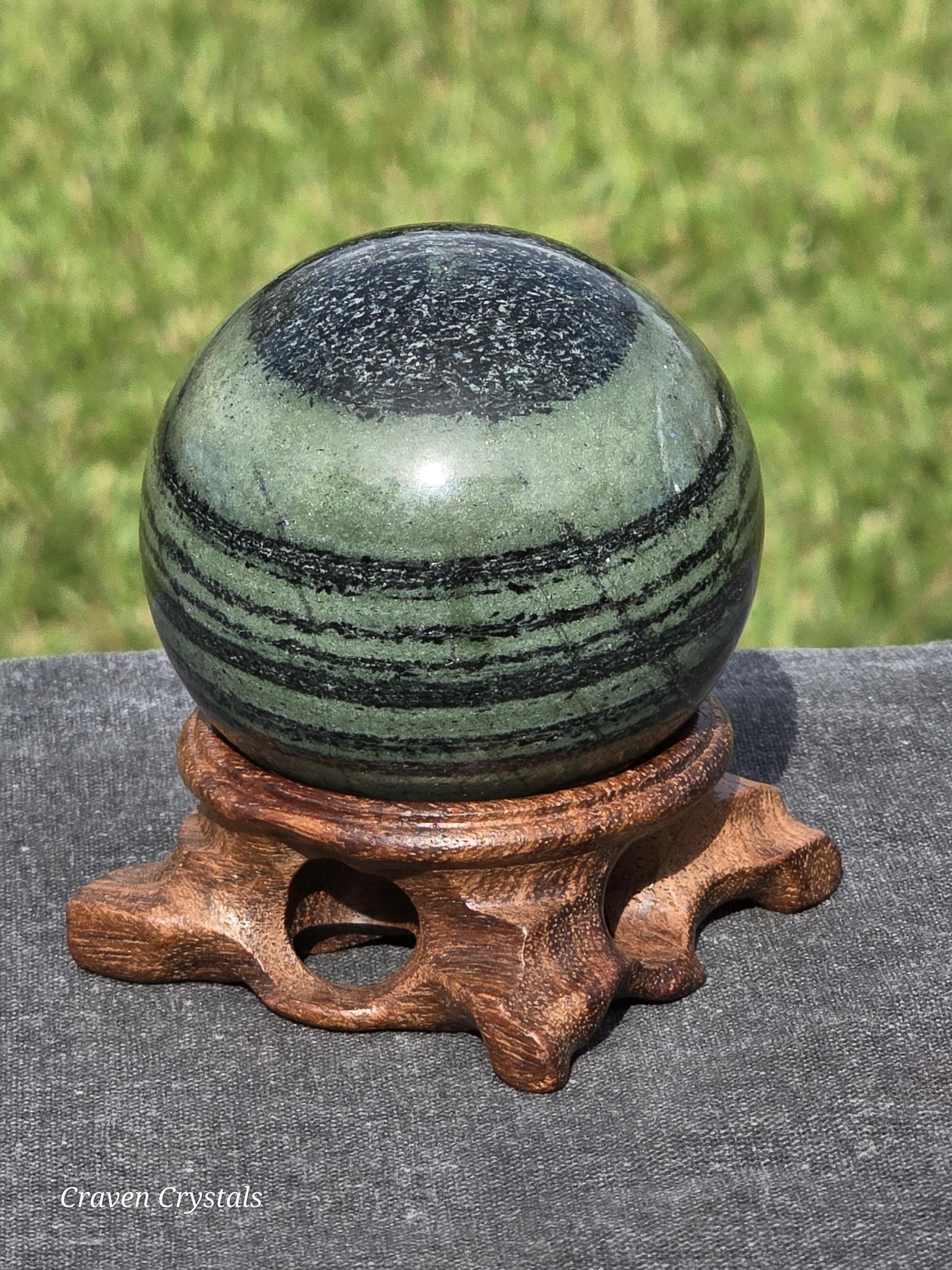 Gorgeous shades of Green are included in this Green Zebra Jasper Crystal Sphere with lovely banding.