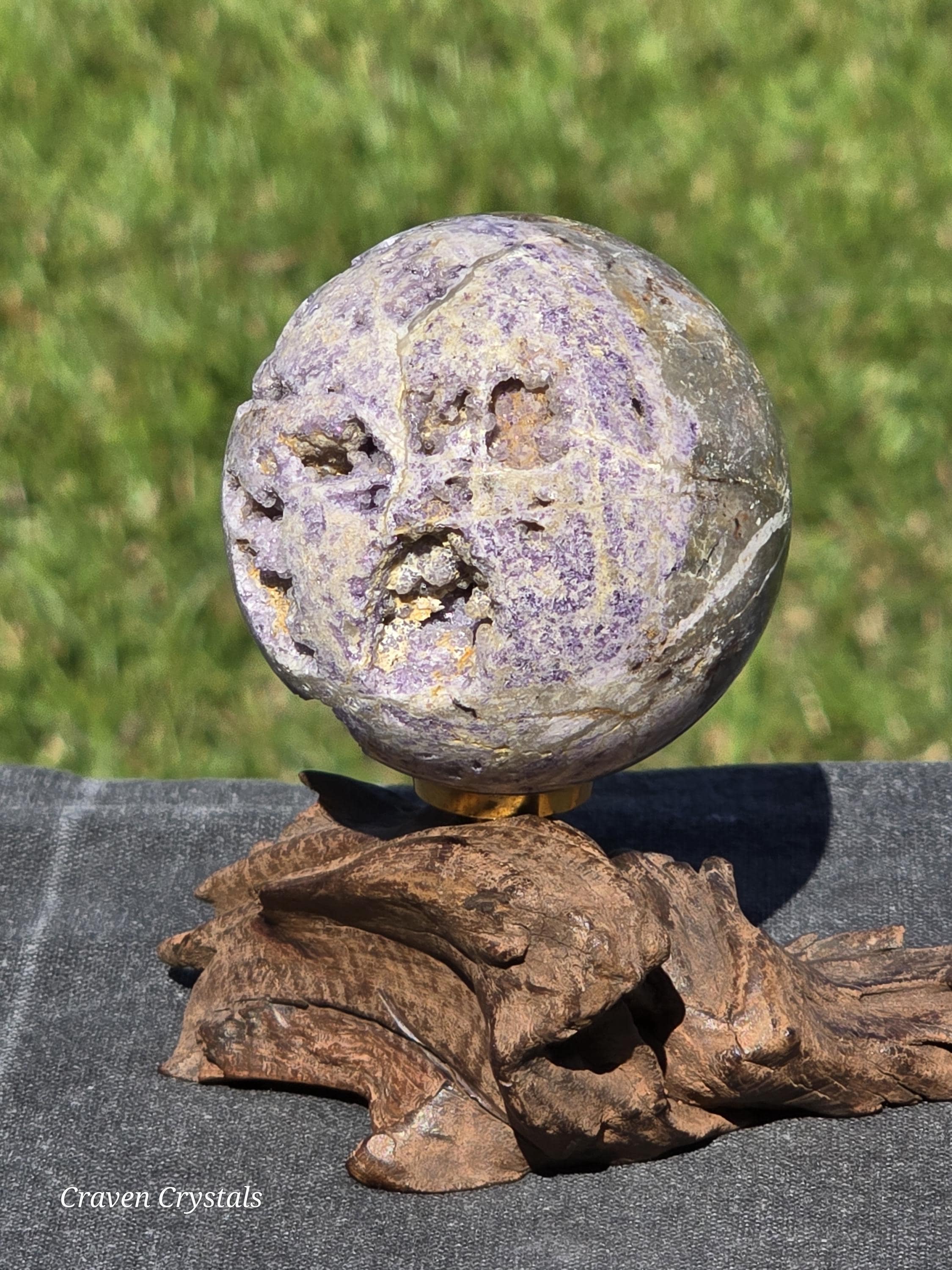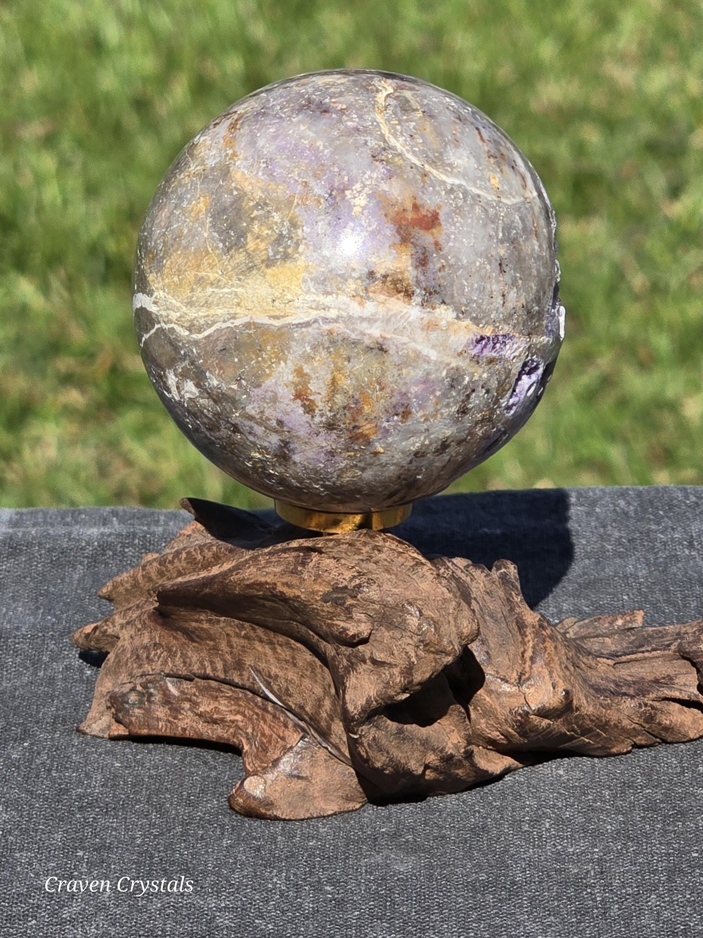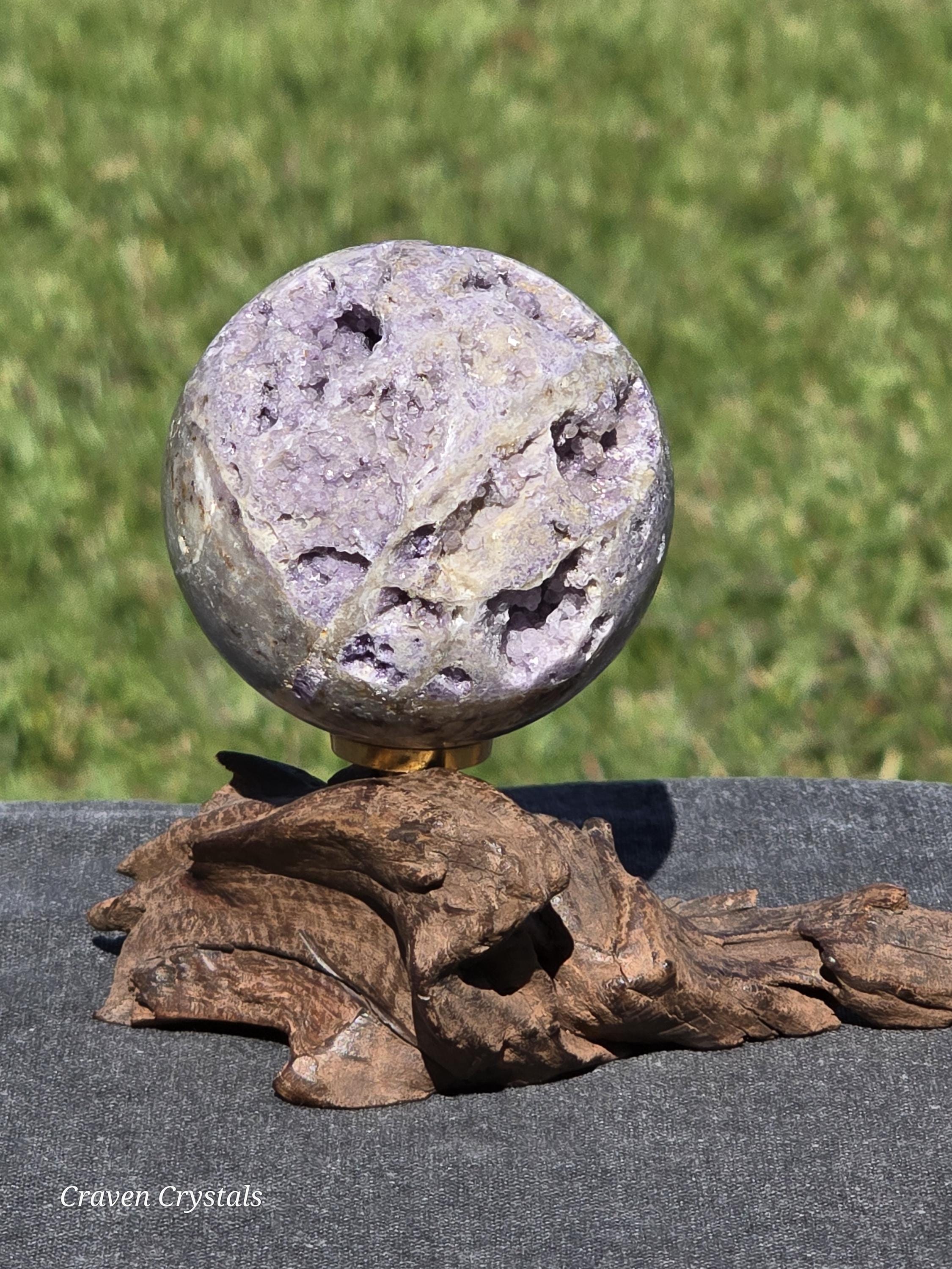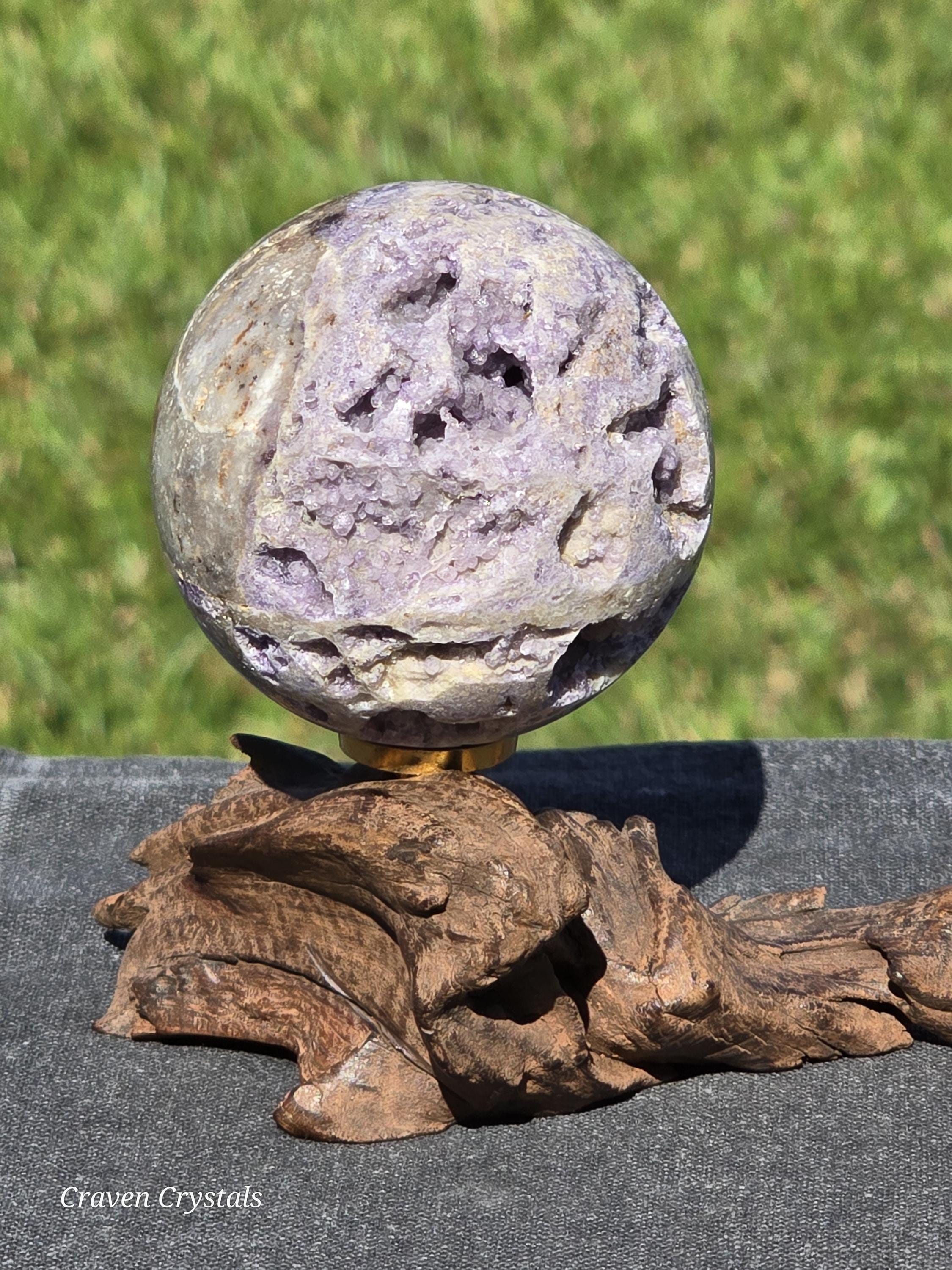 Grape Agate Crystal Sphere with it's distinctive grape-like formations in a light lavender purple