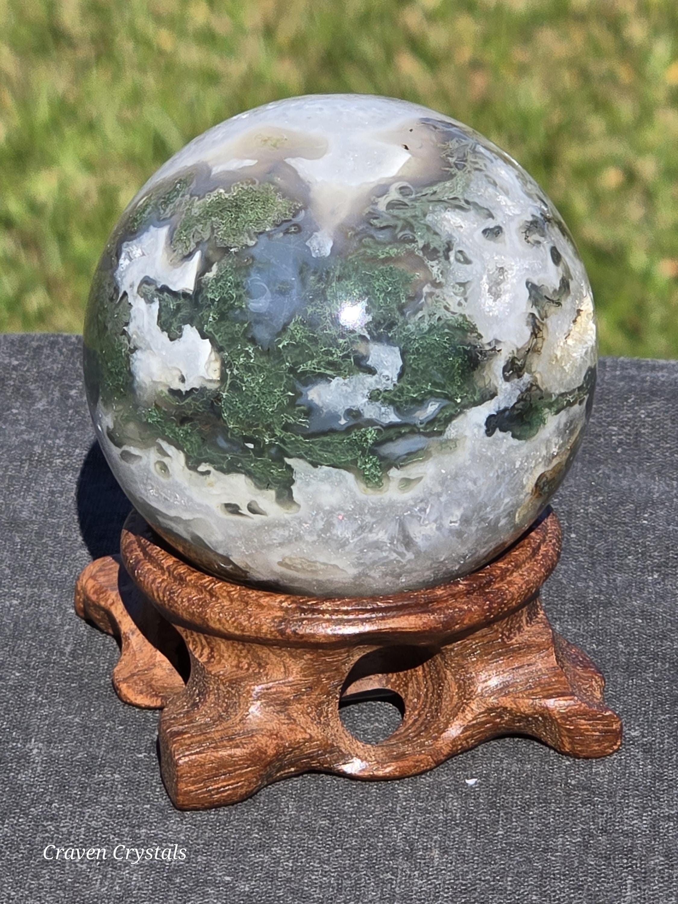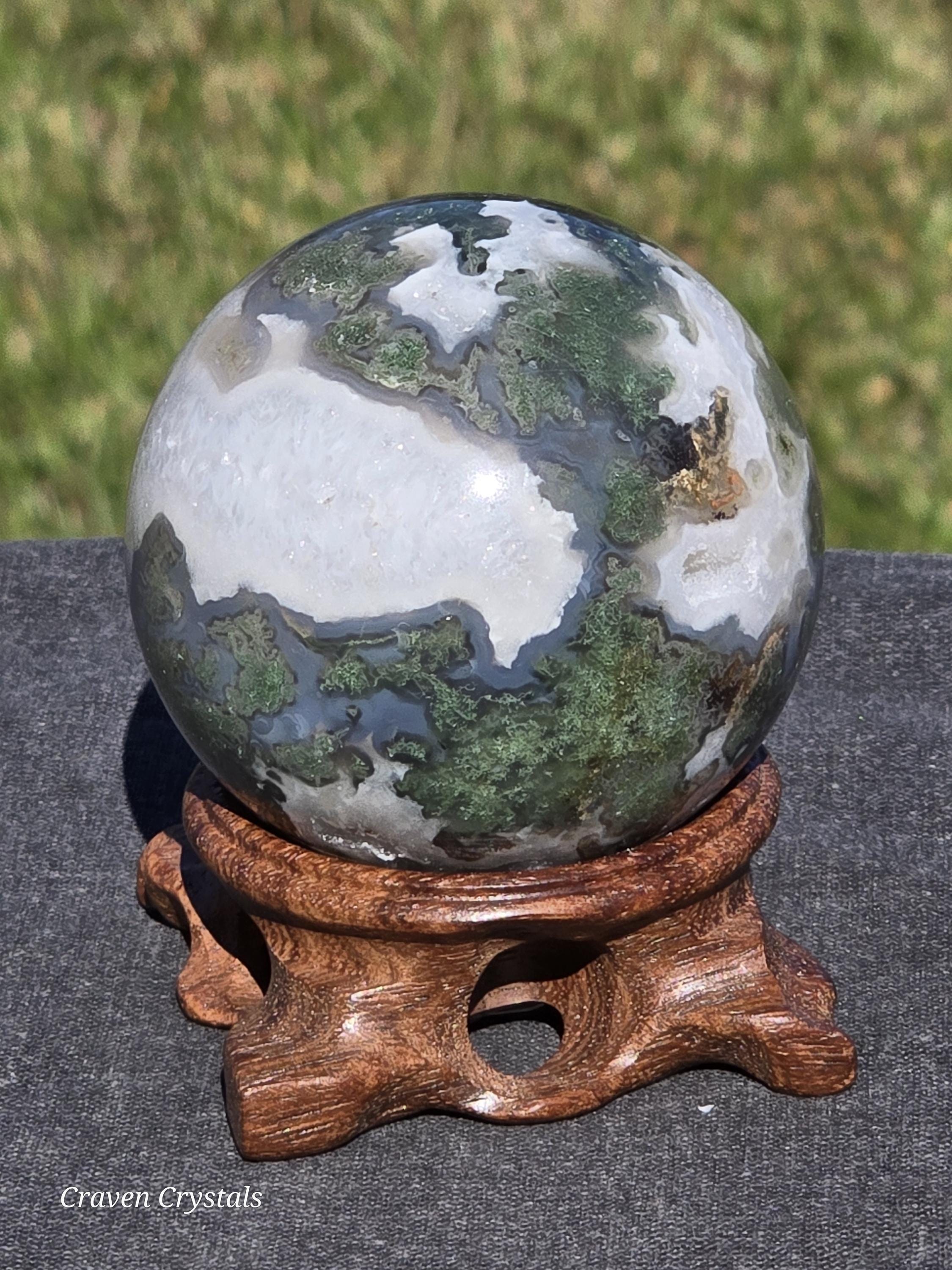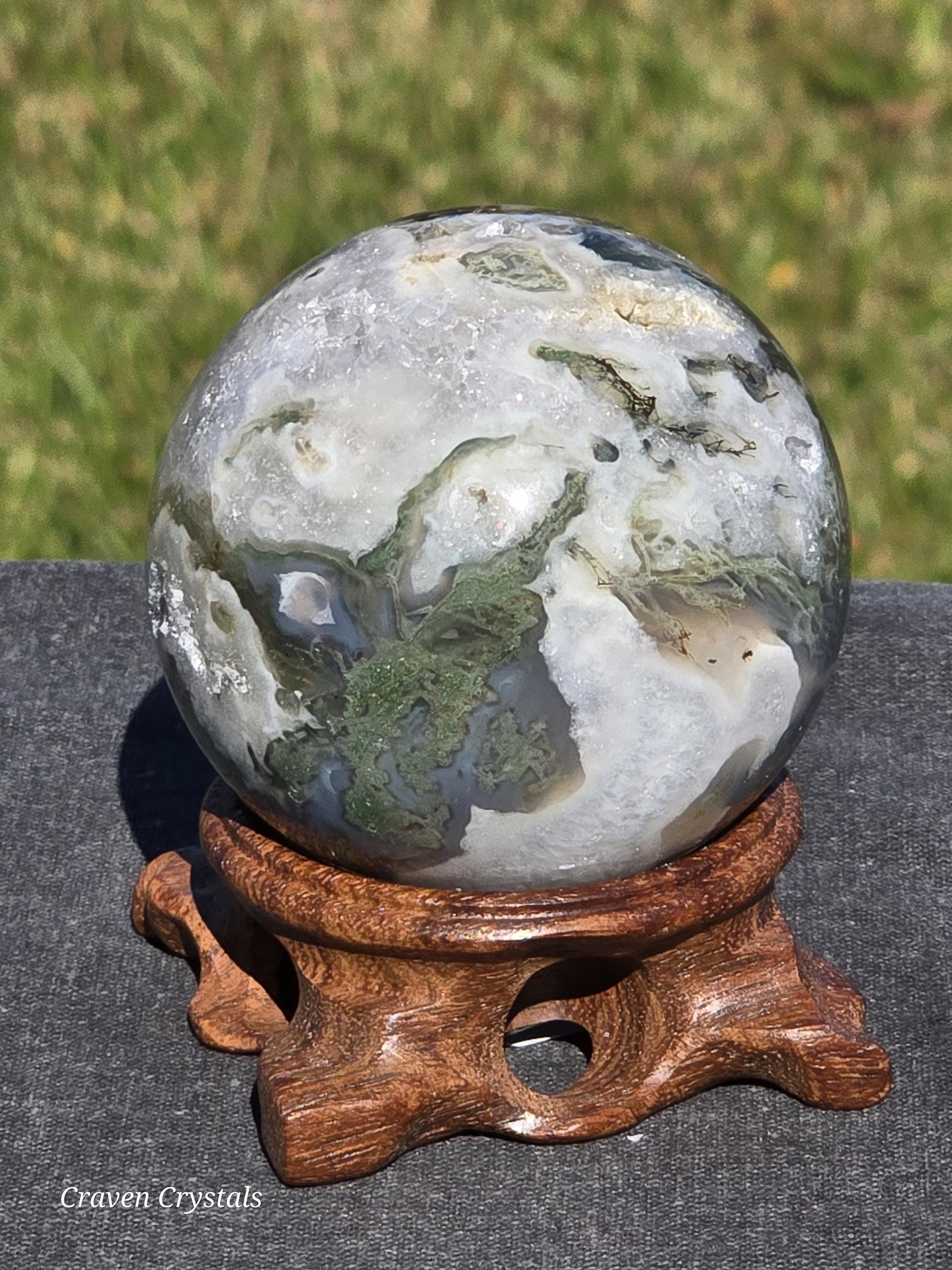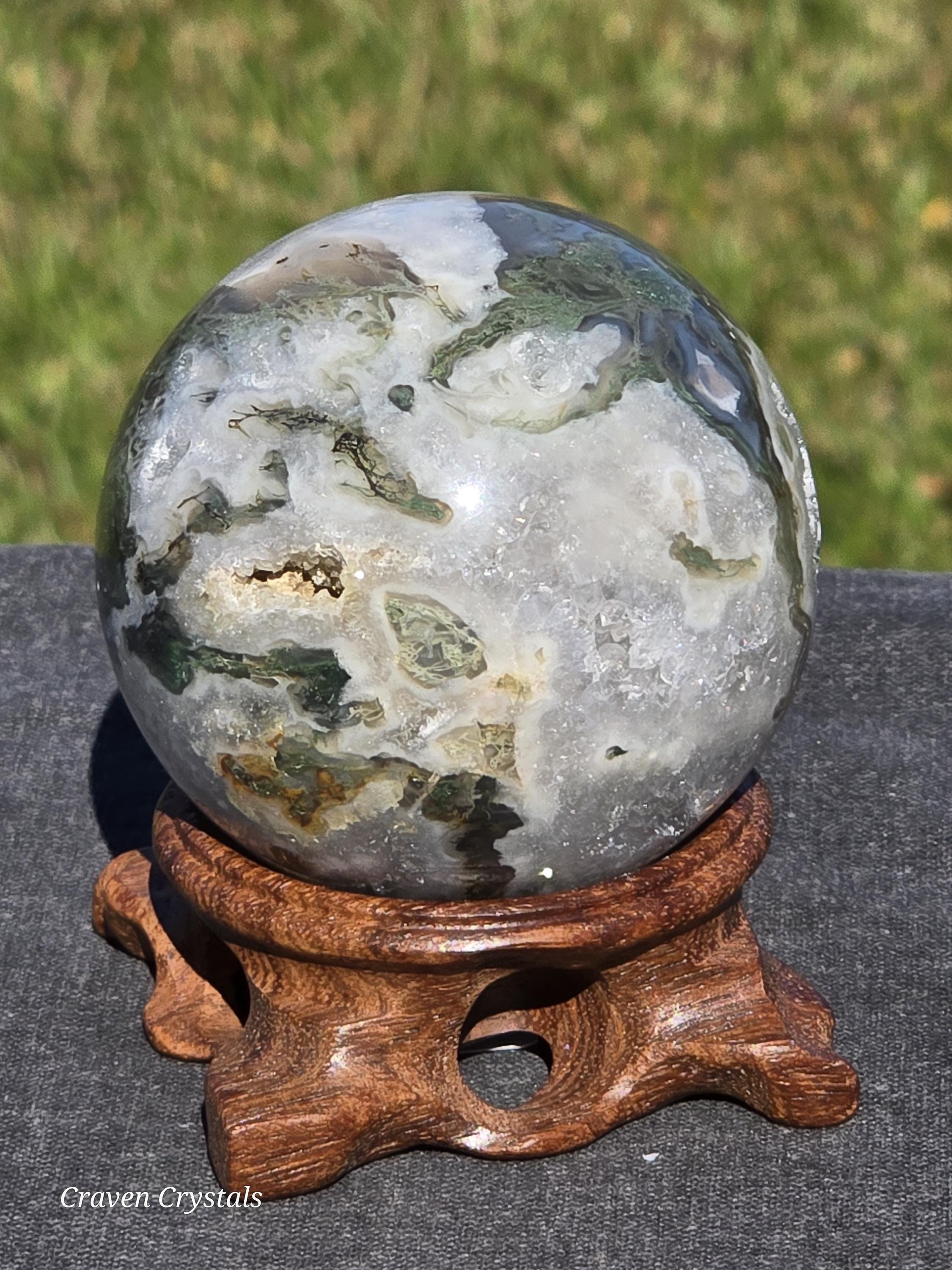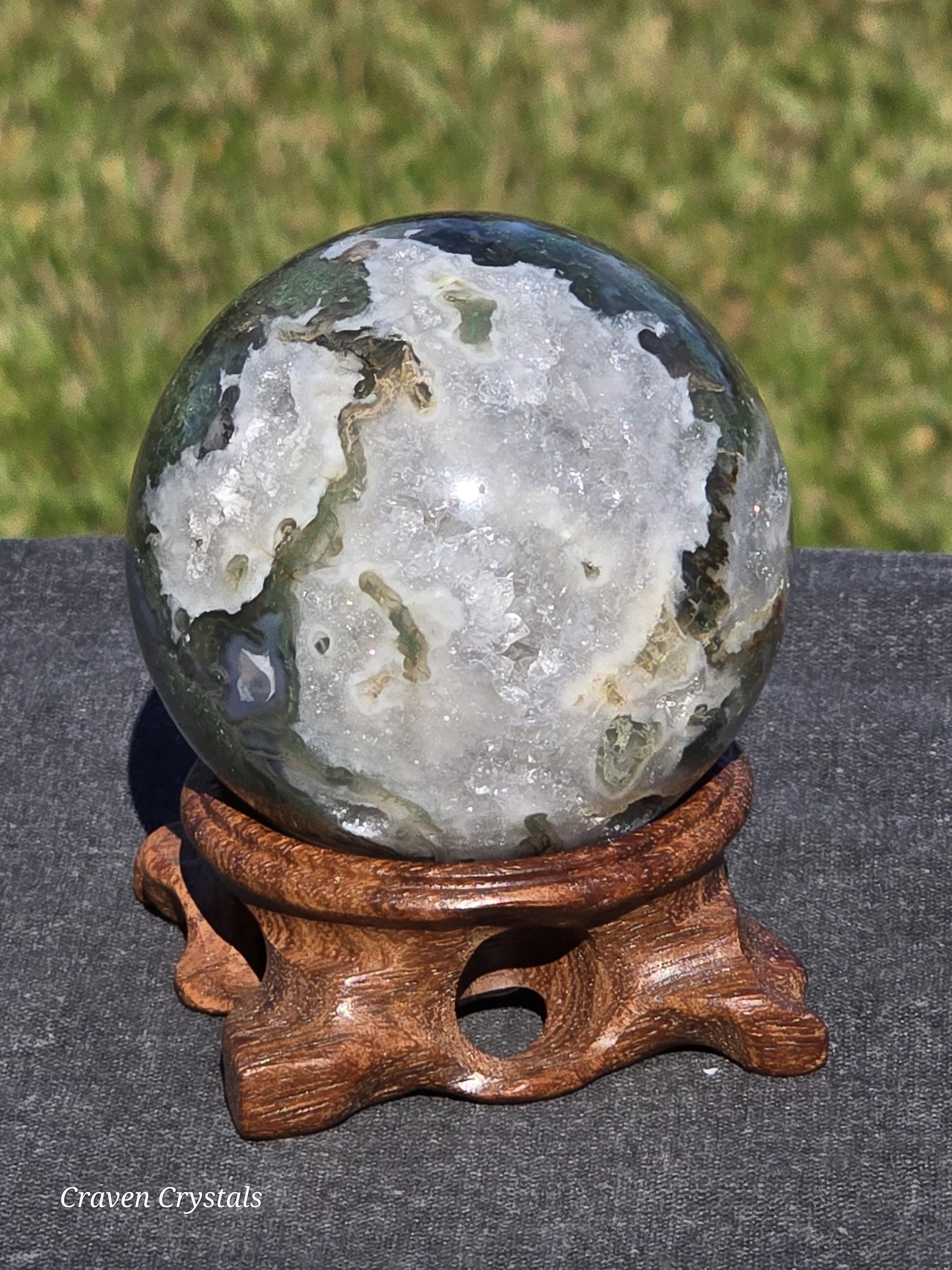 Beautiful sparkly drusy Moss Agate Crystal Sphere with Quartz