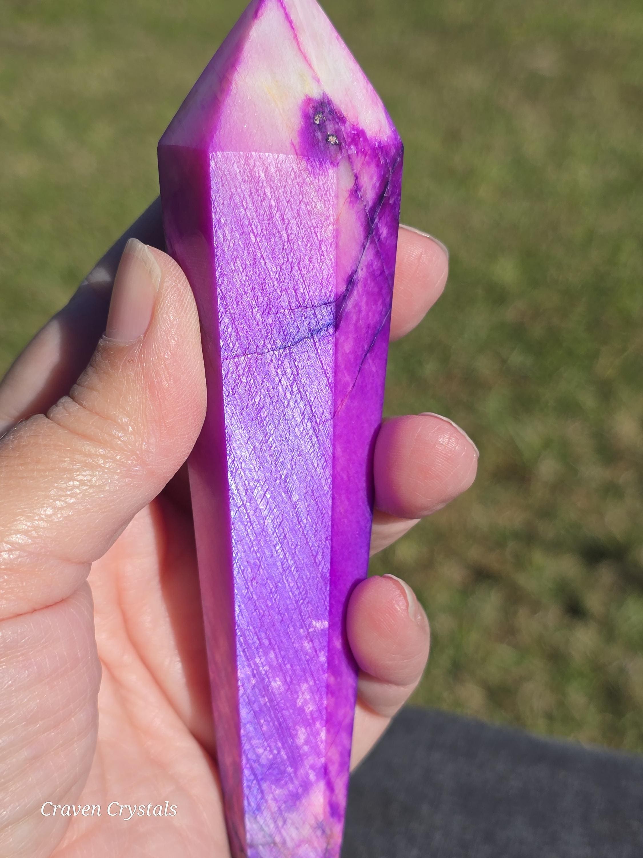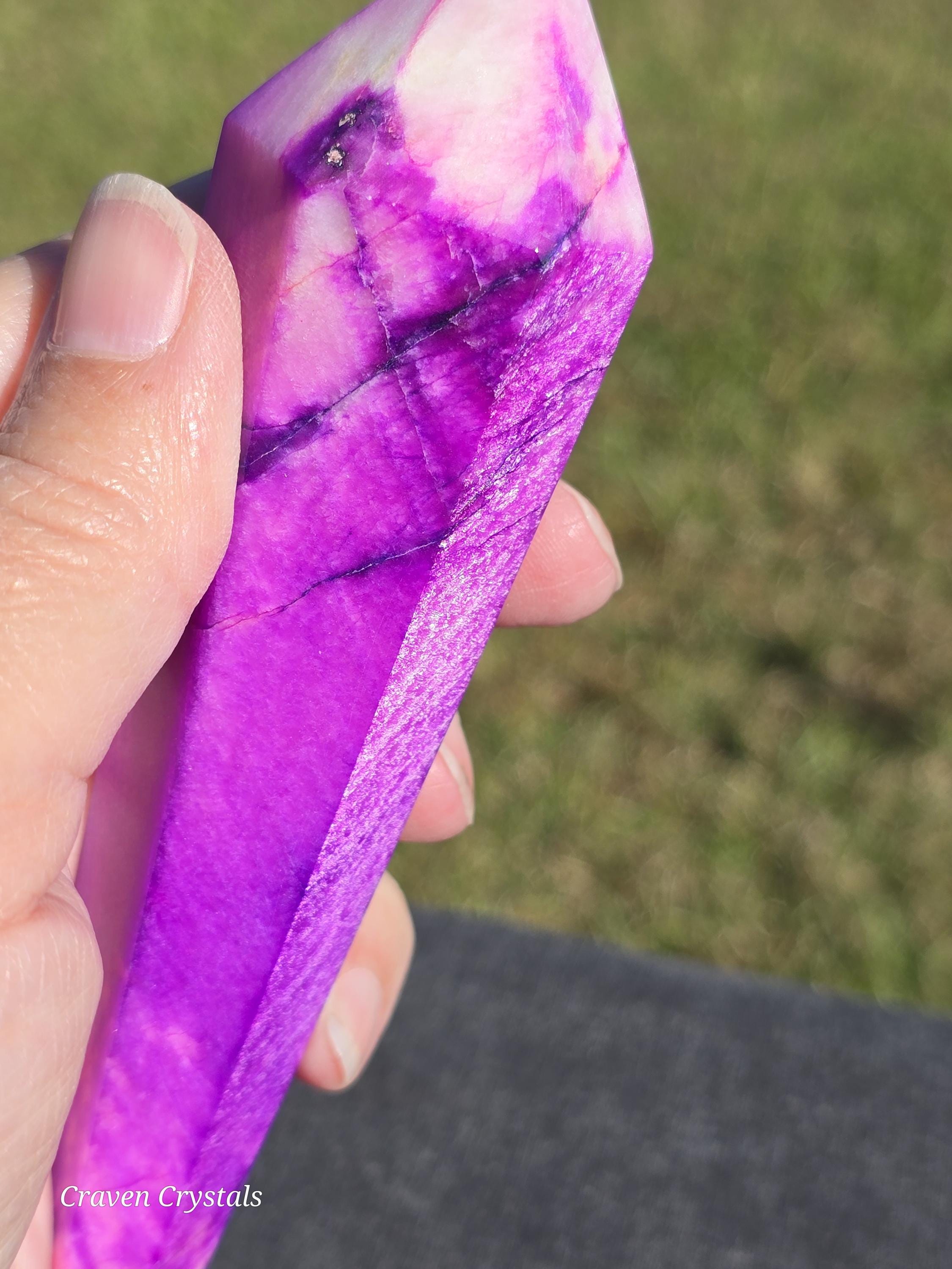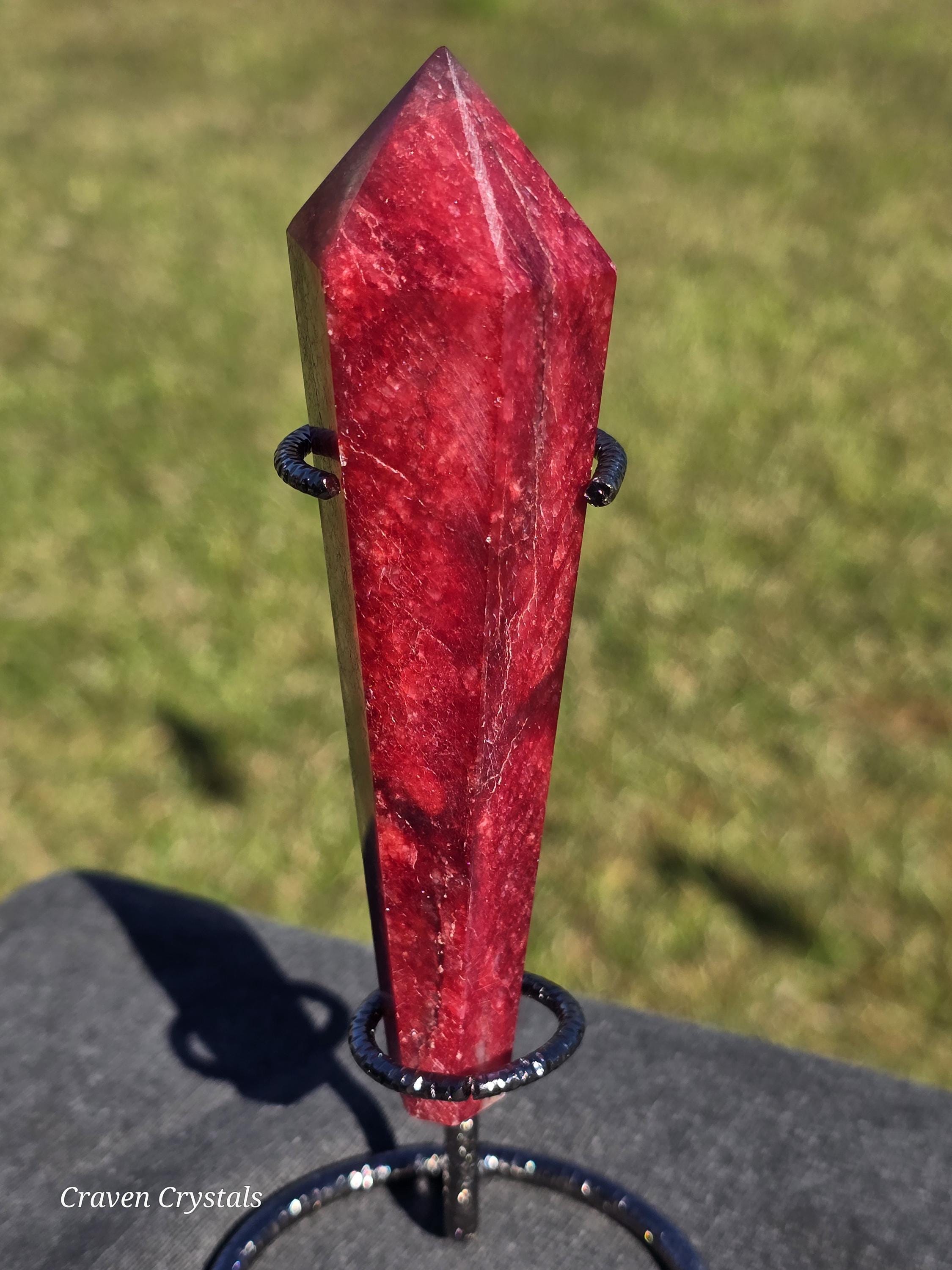 Crystal wands with a pointed base are believed to create a continuous flow of energy, channeling energy both upward and downward. This dual-ended design symbolizes balance between the physical and spiritual realms. The tapered or pointed base allows energy to move freely through the crystal, grounding excess energy while also drawing in and projecting light and intention through the tip.