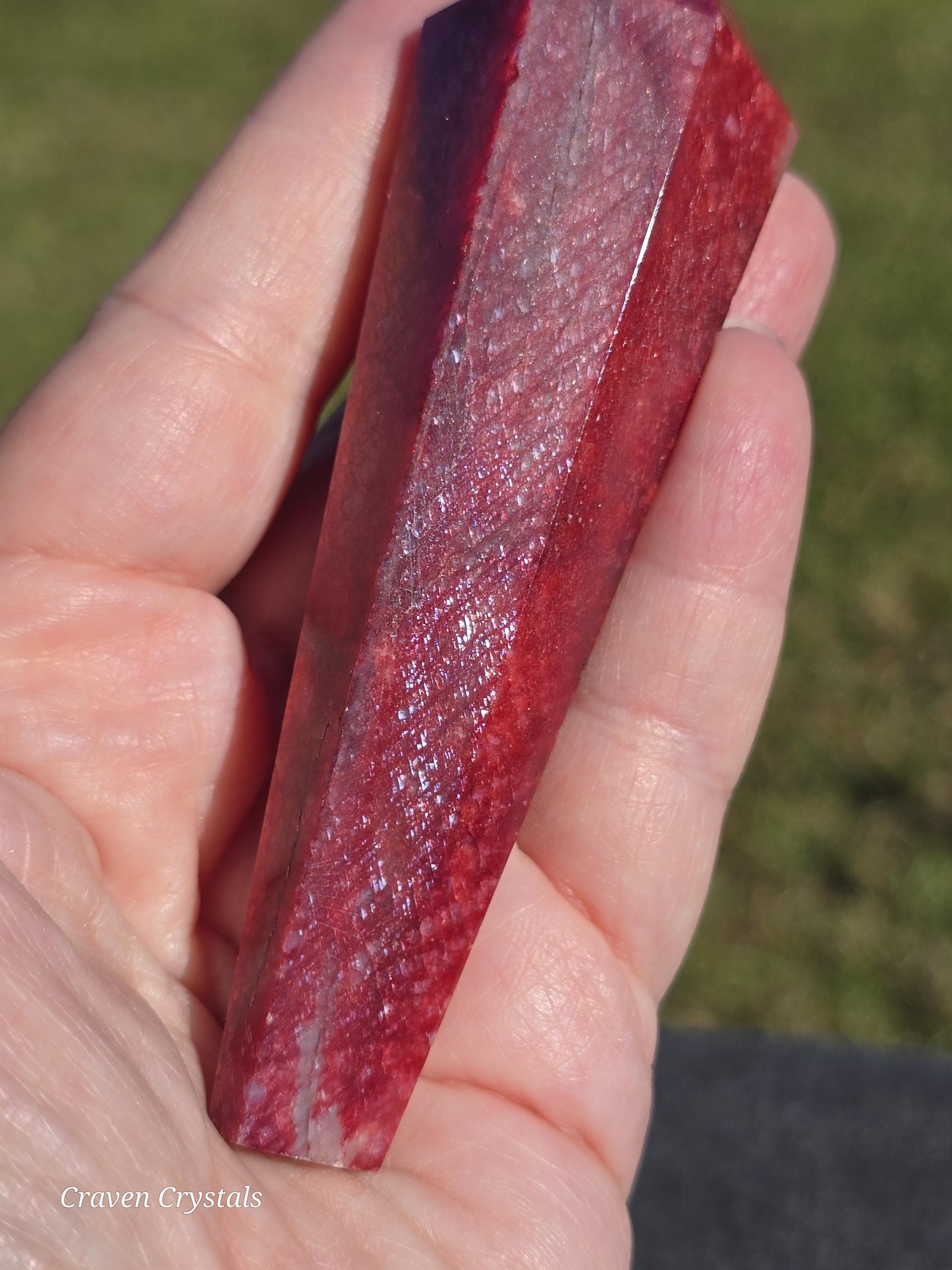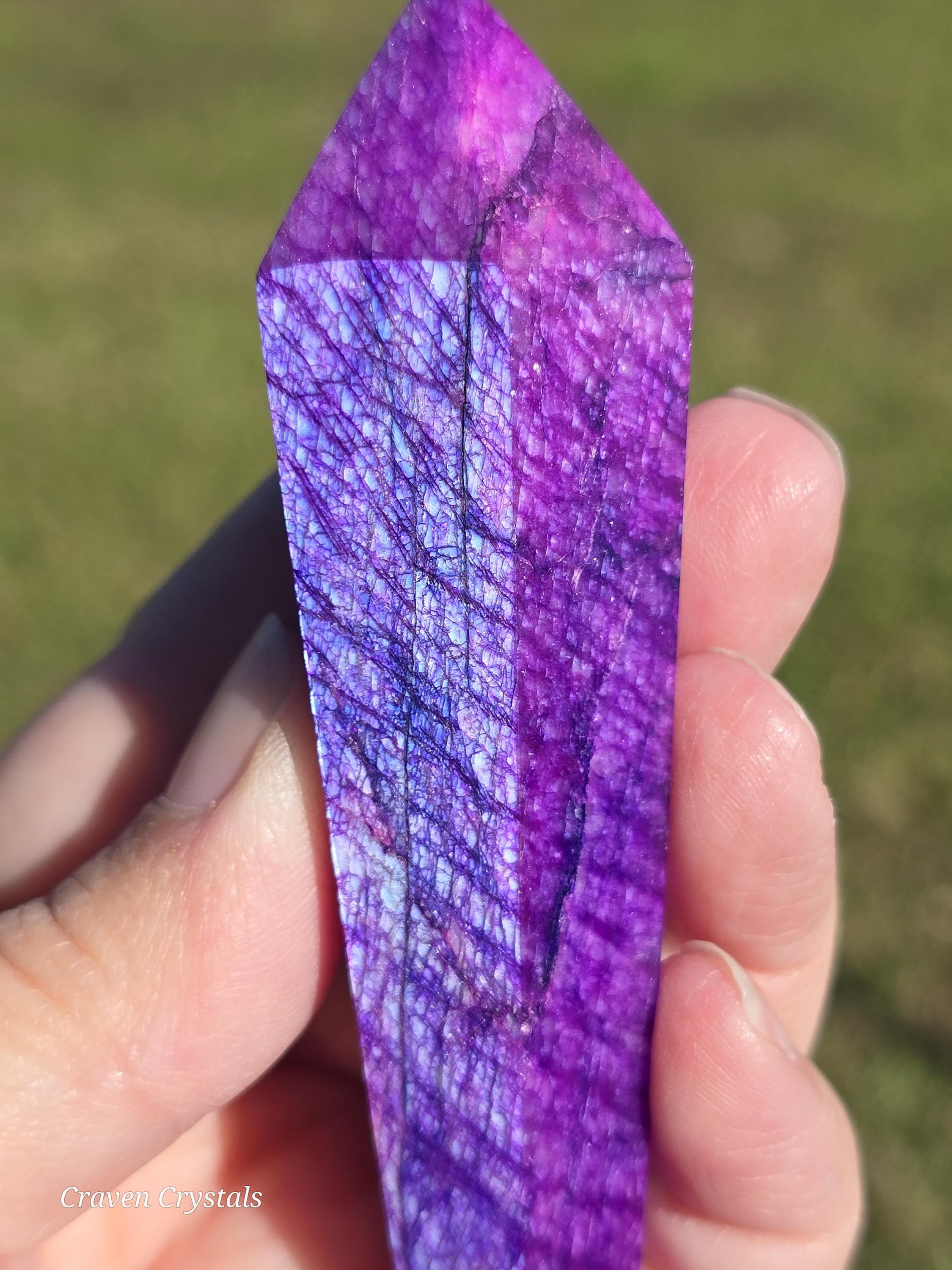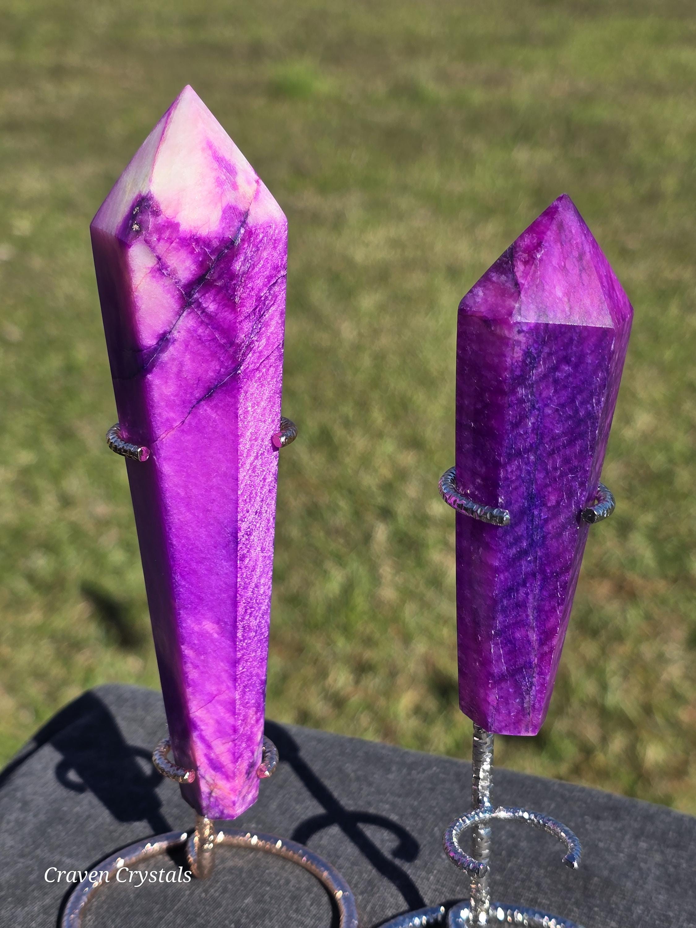 Crystal wands with a pointed base are believed to create a continuous flow of energy, channeling energy both upward and downward. This dual-ended design symbolizes balance between the physical and spiritual realms. The tapered or pointed base allows energy to move freely through the crystal, grounding excess energy while also drawing in and projecting light and intention through the tip.