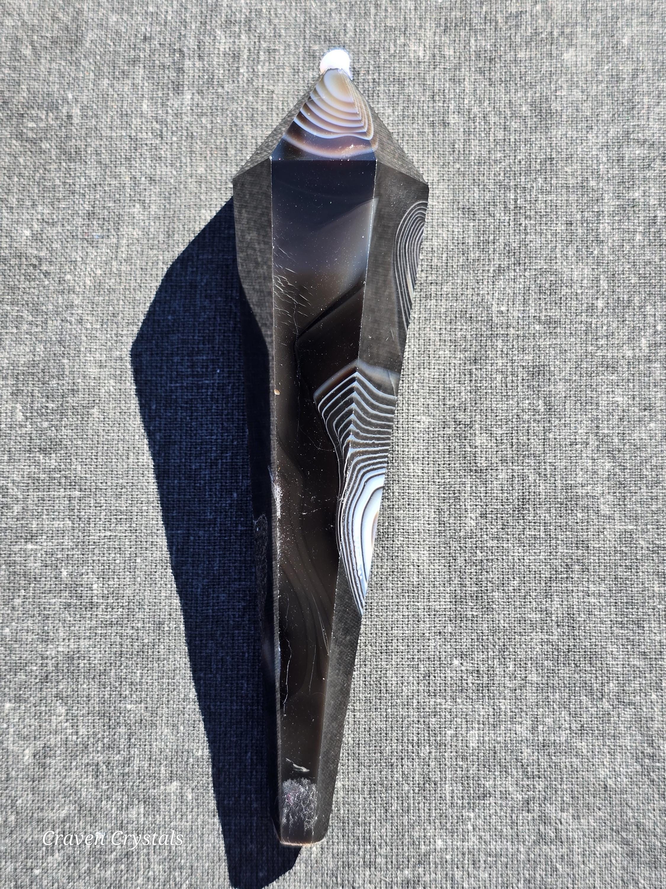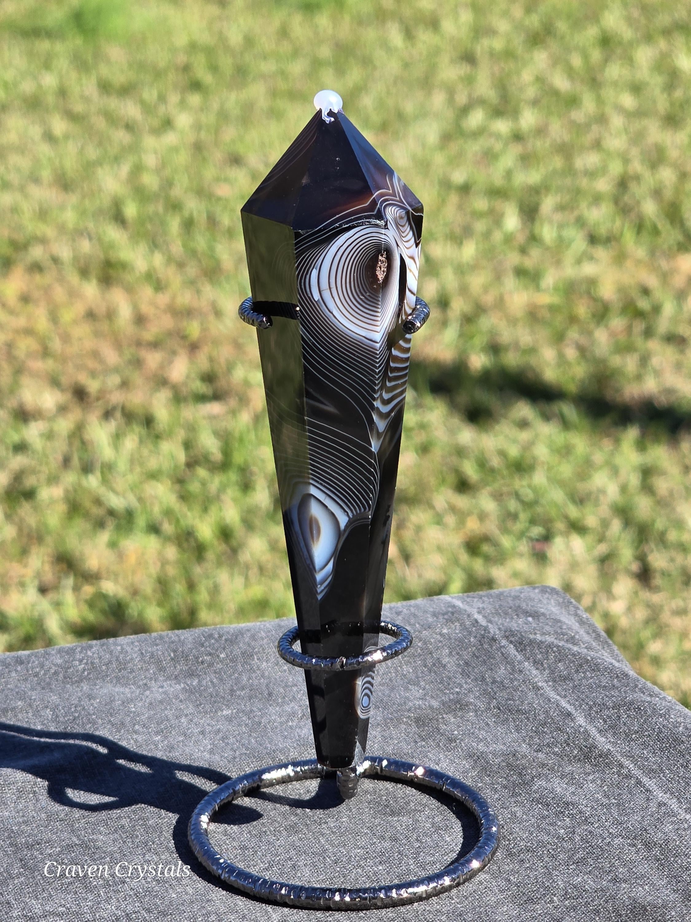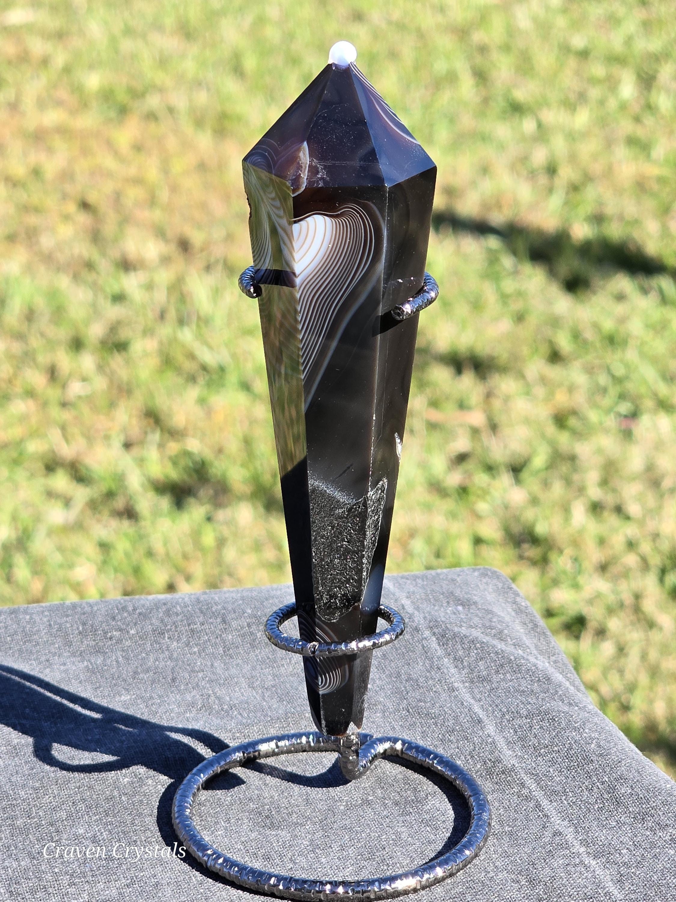 Black Agate, or Black Onyx, Crystal Wands with white banding and a spot of Tourmaline