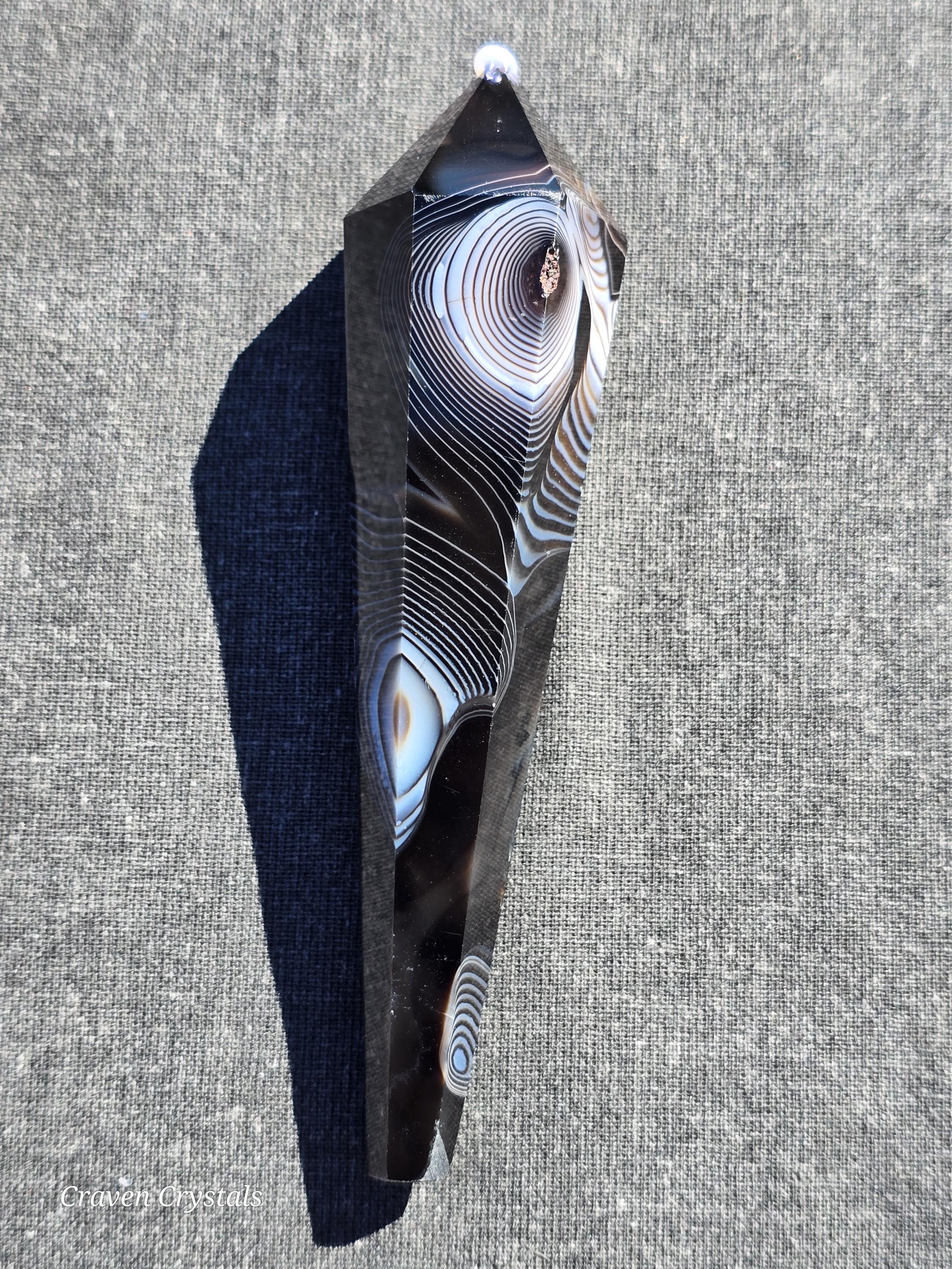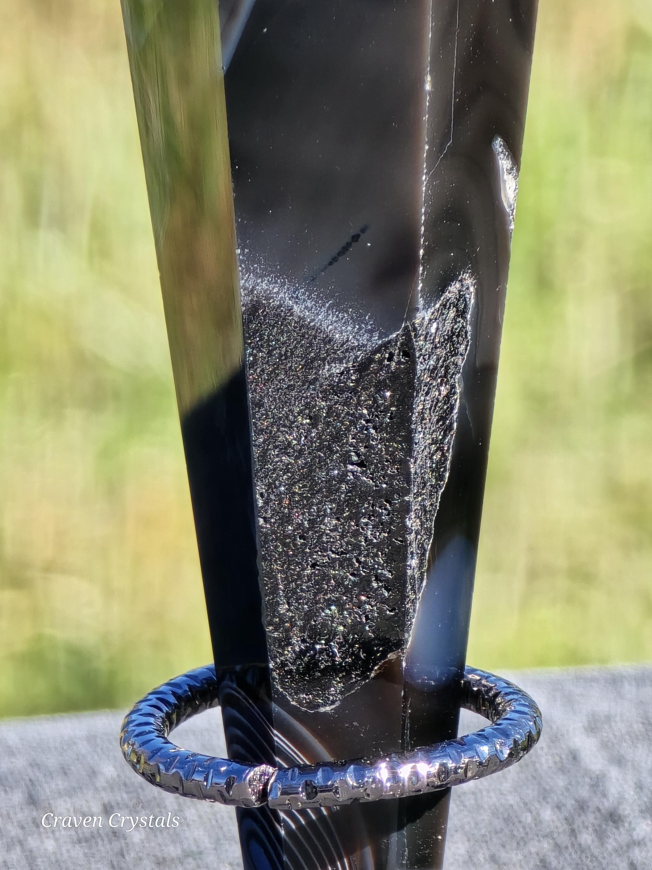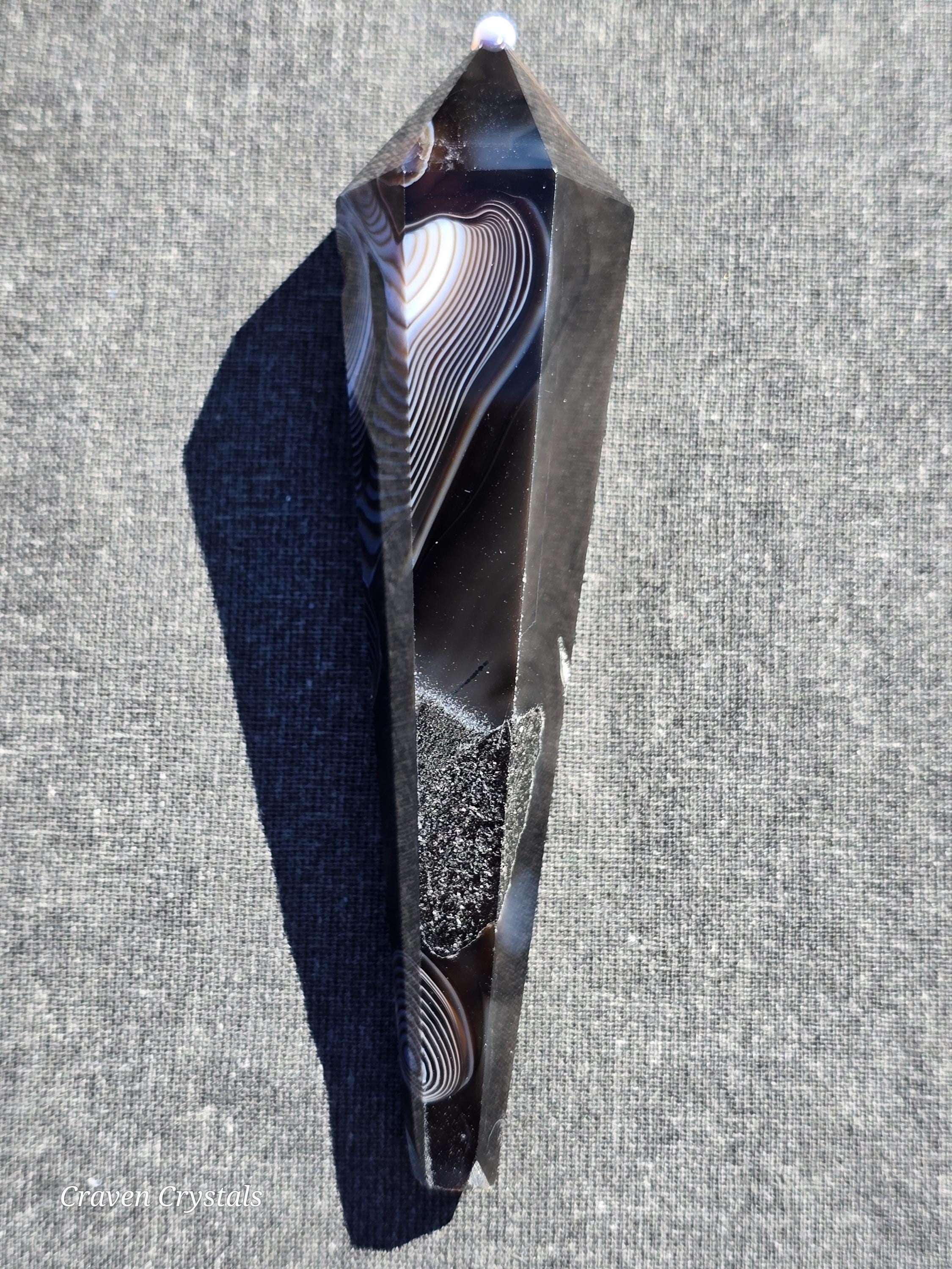 Black Agate, or Black Onyx, Crystal Wands with white banding and a spot of Tourmaline