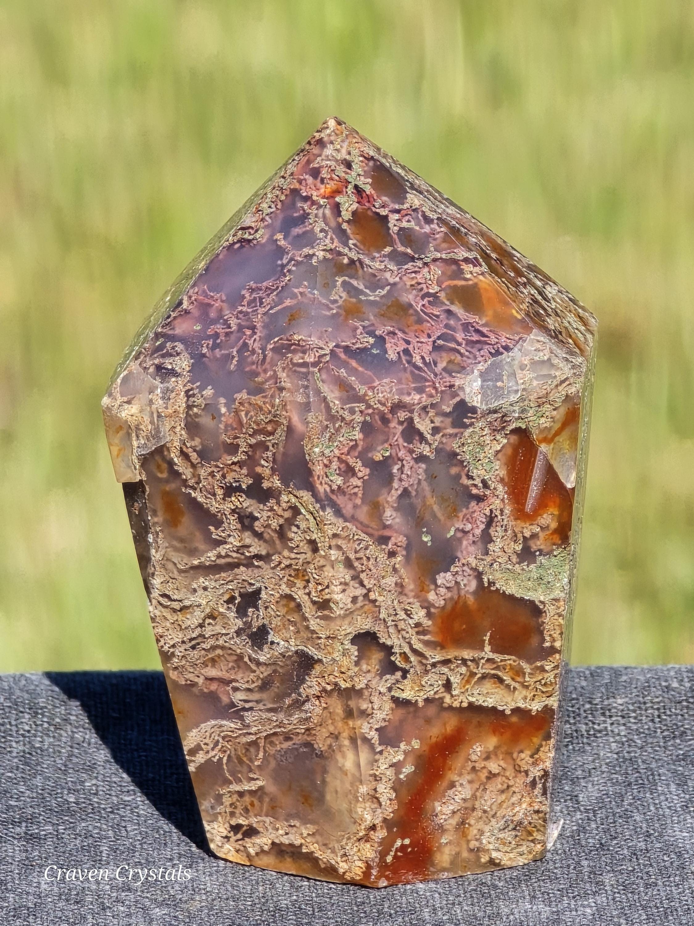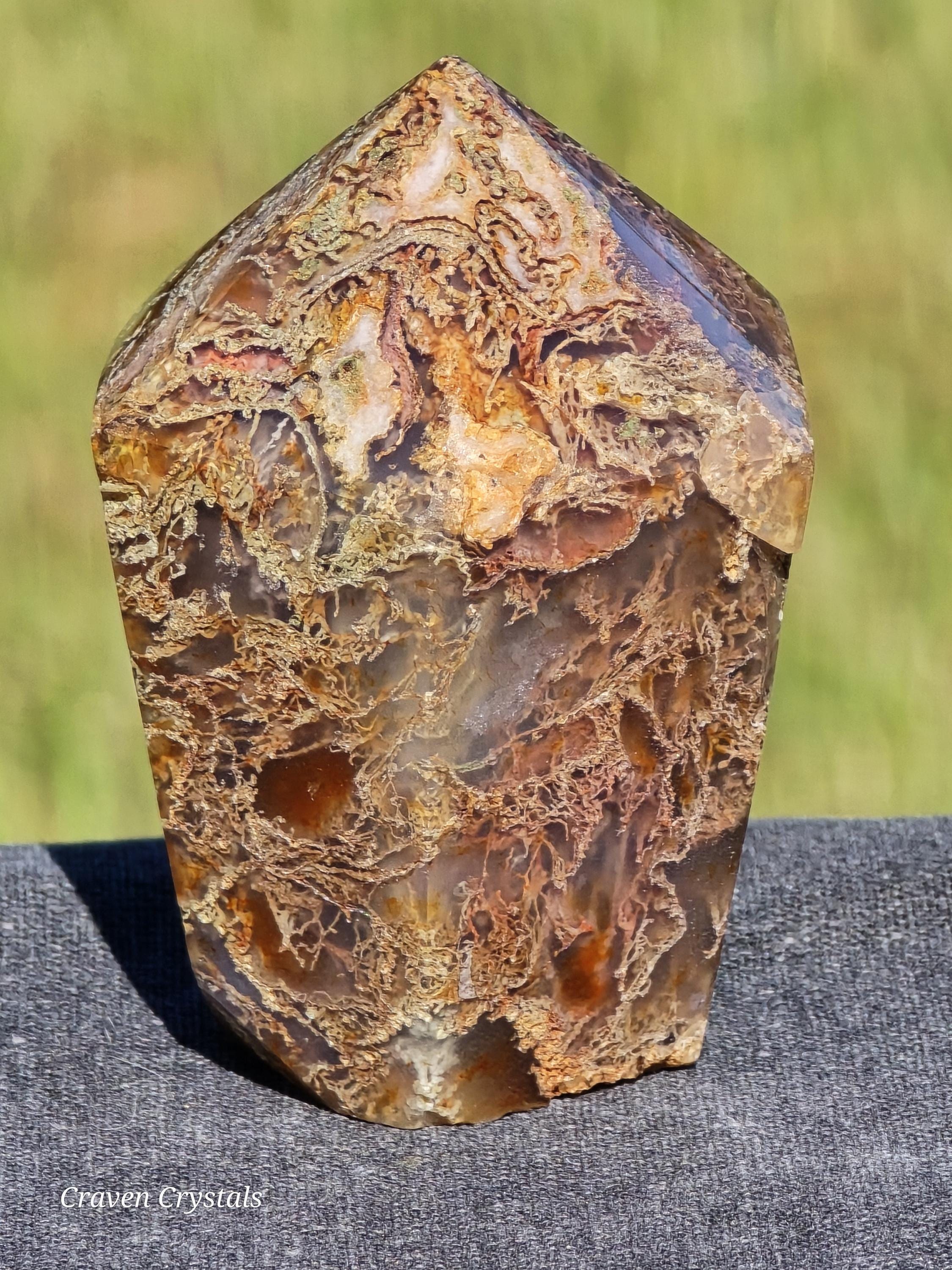 Red Moss Agate is associated with qualities such as grounding, stability, and vitality. It is believed to enhance physical energy, strength, and endurance, making it a popular stone for athletes, adventurers, and individuals seeking motivation and resilience. Red Moss Agate is also thought to promote emotional balance, courage, and confidence, helping to dispel fears and anxieties.