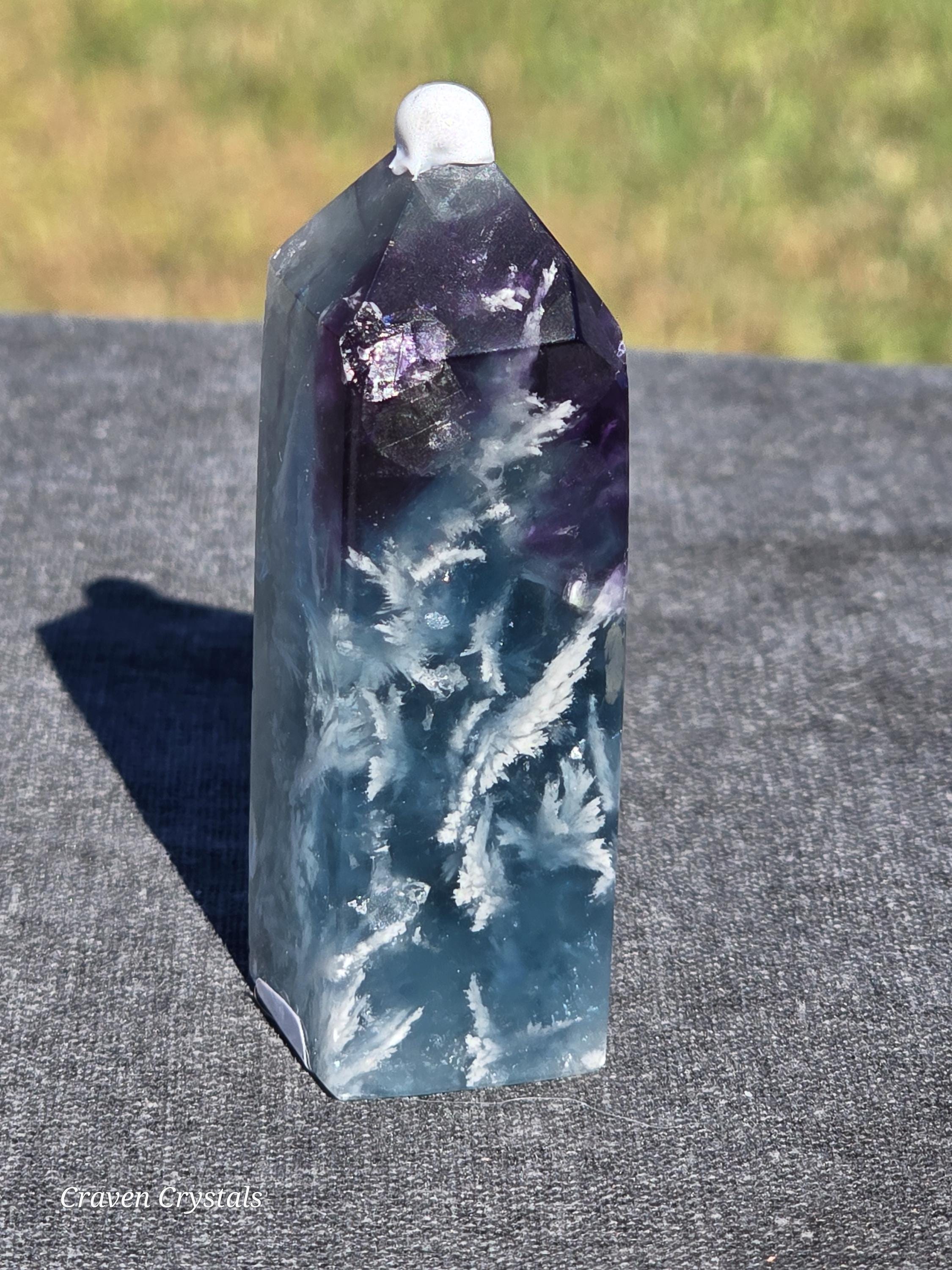 Feather Fluorite Crystal, also known as "snowflake", "angel wing" or "fairy wing" fluorite, is a unique and captivating variety of fluorite that gets its name from the appearance of its inclusions, which resemble feathery, ethereal, angelic, or wing-like formations or snowflakes.
