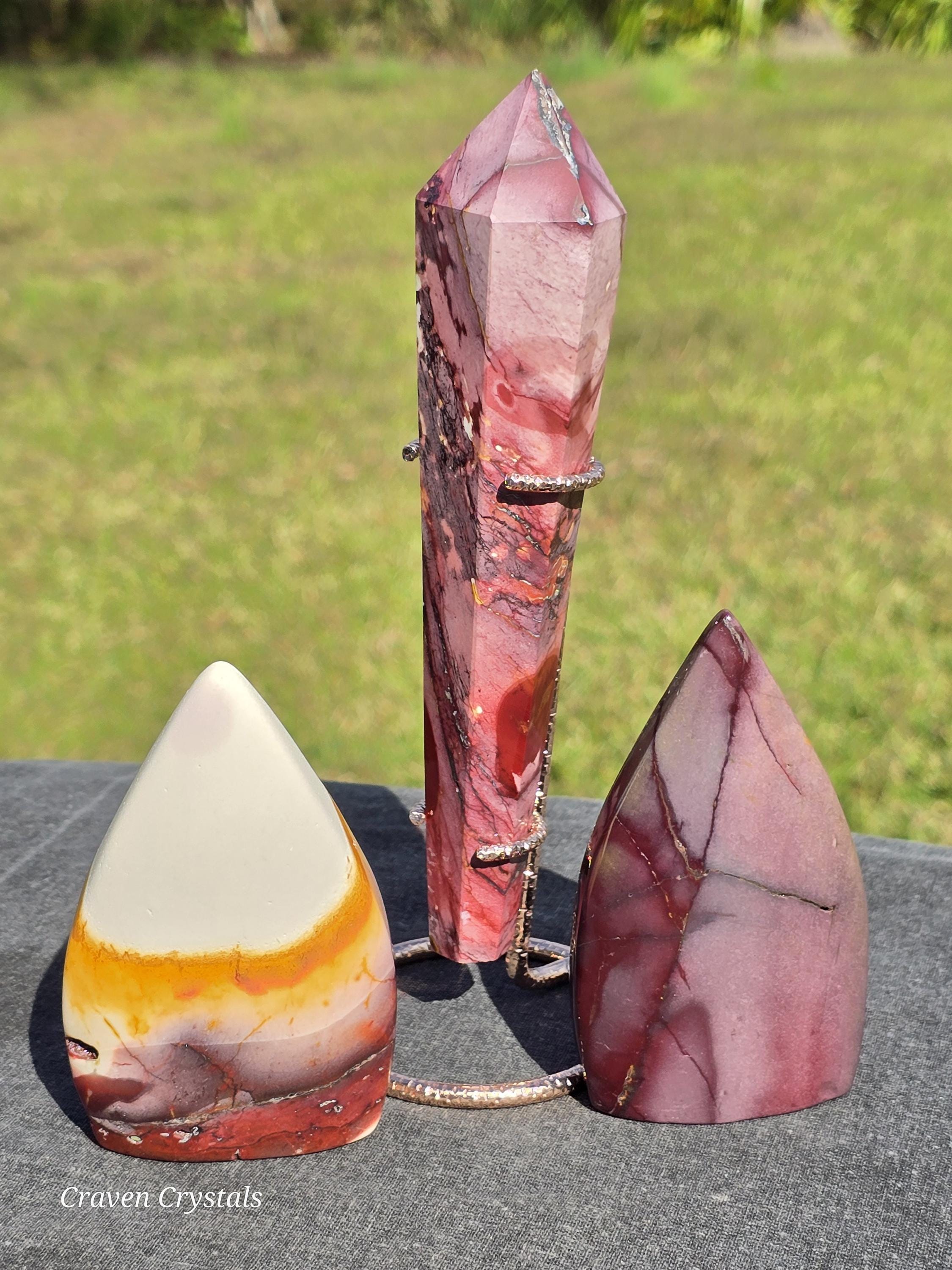 Mookaite is associated with a range of properties, including grounding, vitality, strength, and emotional balance. It is a grounding and stabilizing stone that can help you feel more rooted and secure in your physical existence. It's often believed to connect with the lower chakras, promoting stability and a sense of rootedness.