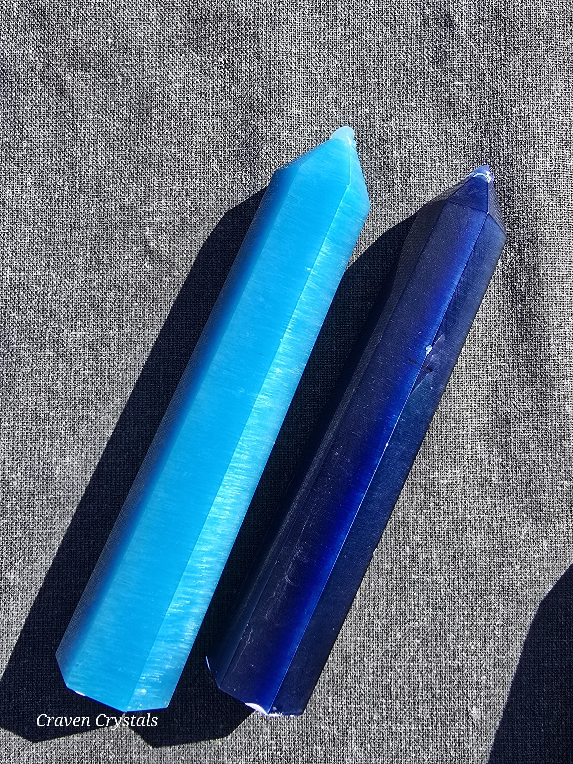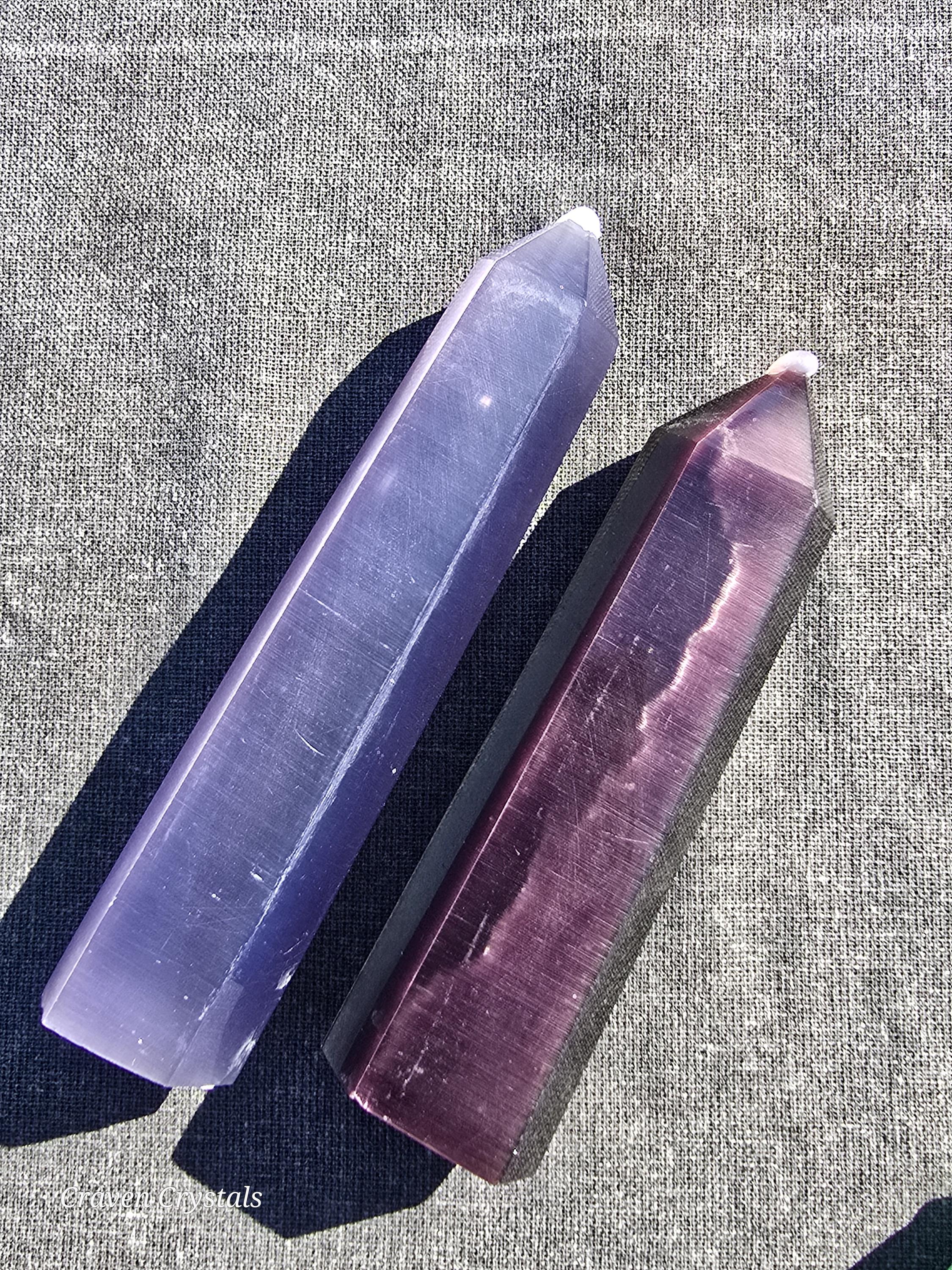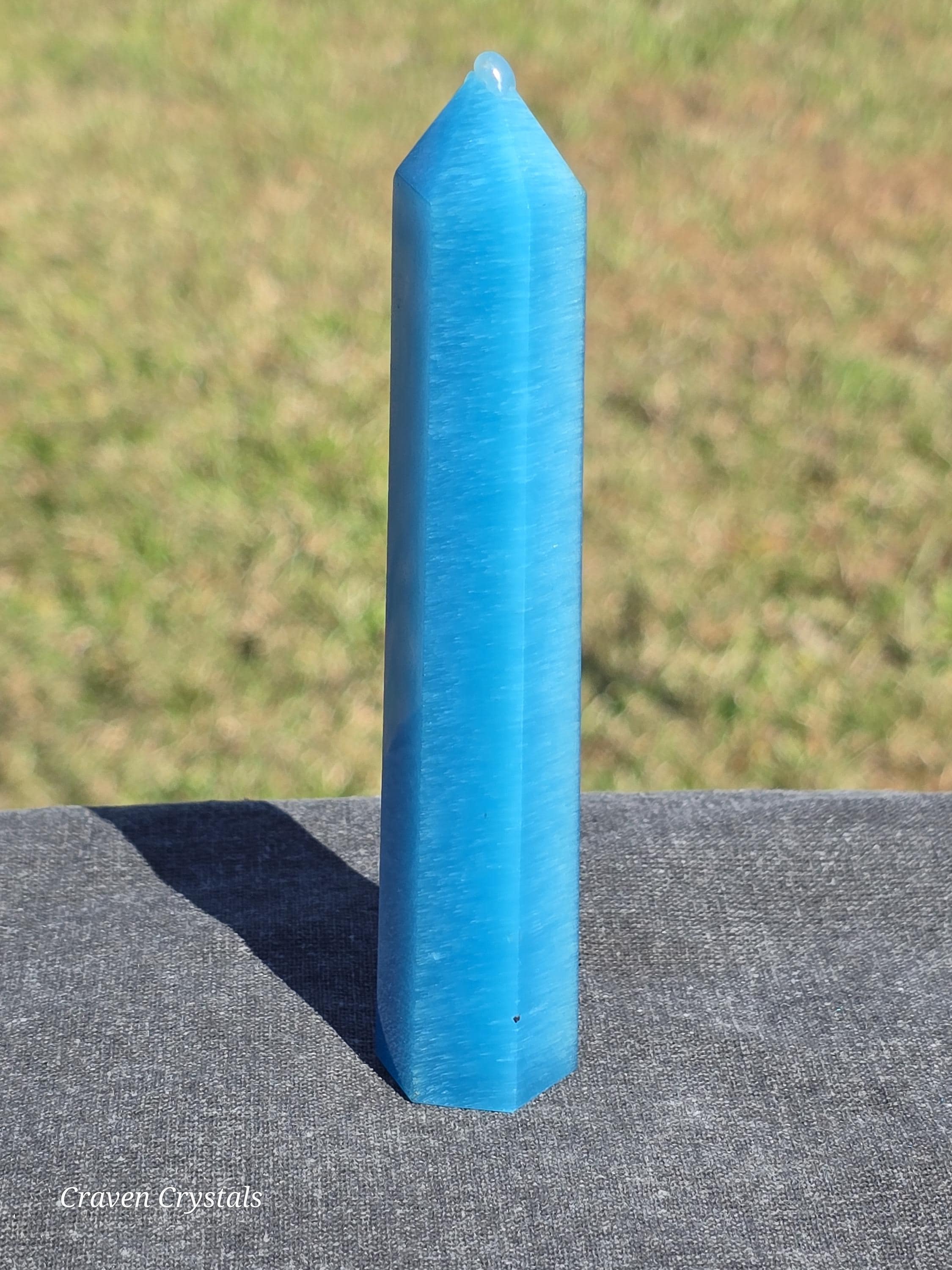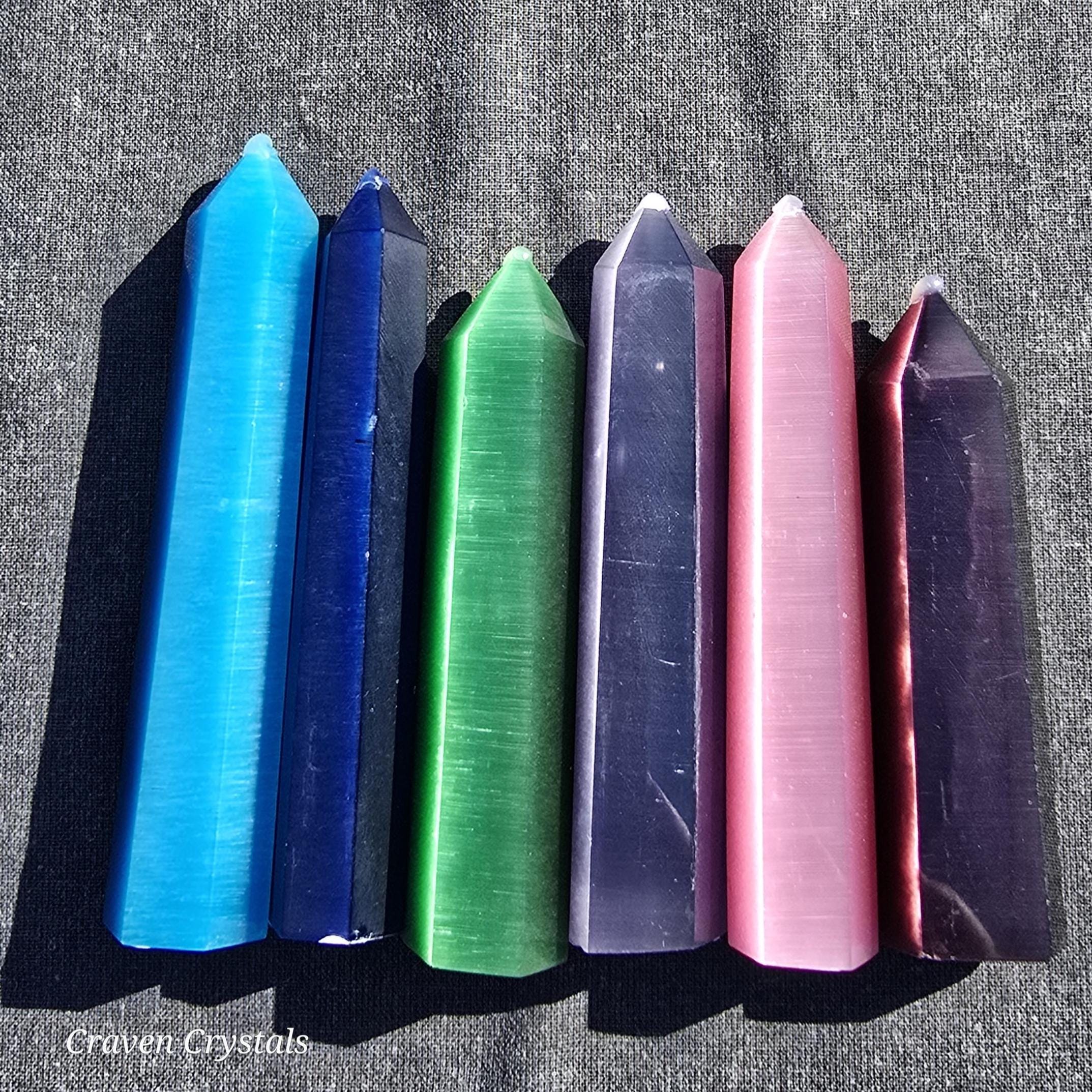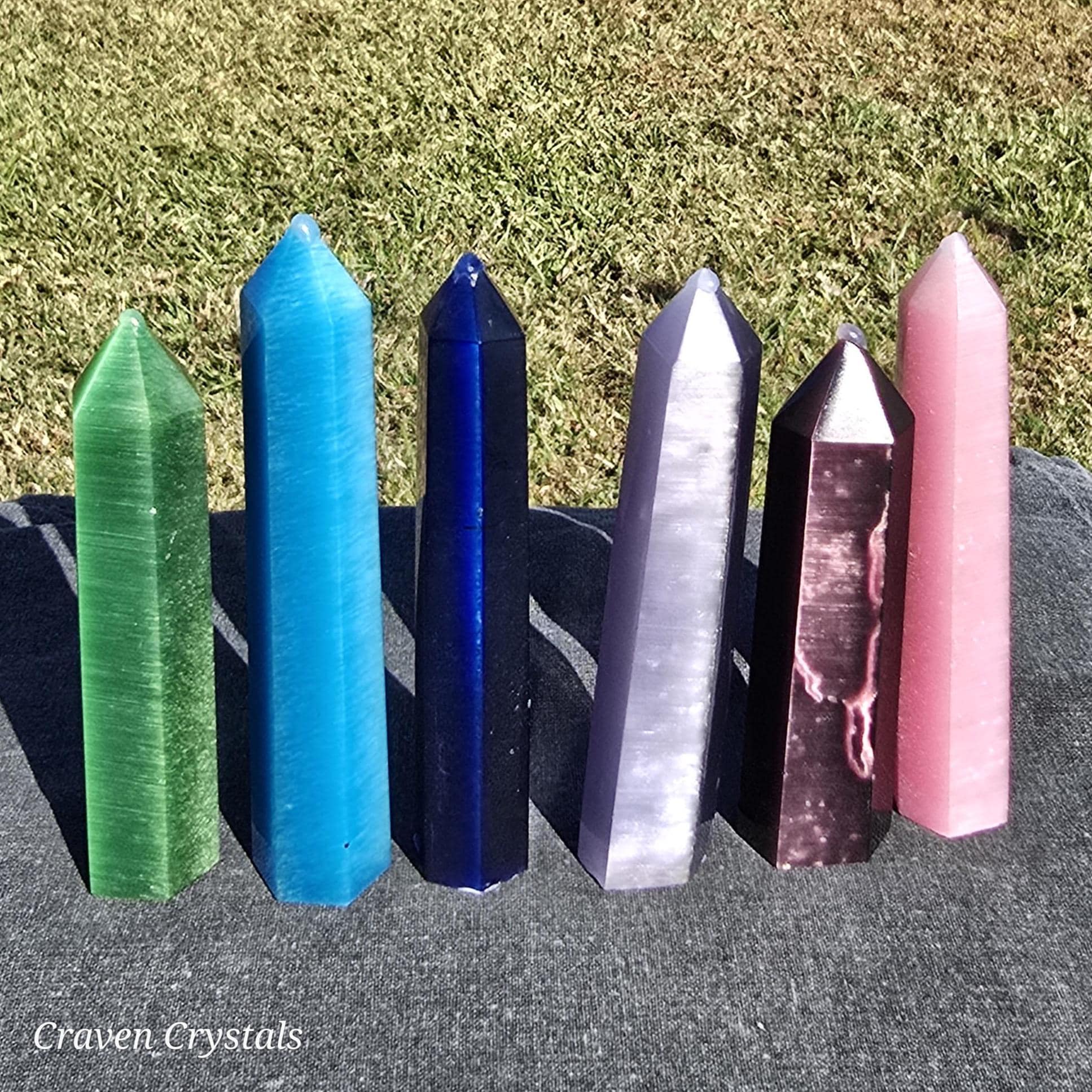Enhanced Cat Eye Selenite Crystal Towers available in multiple colors