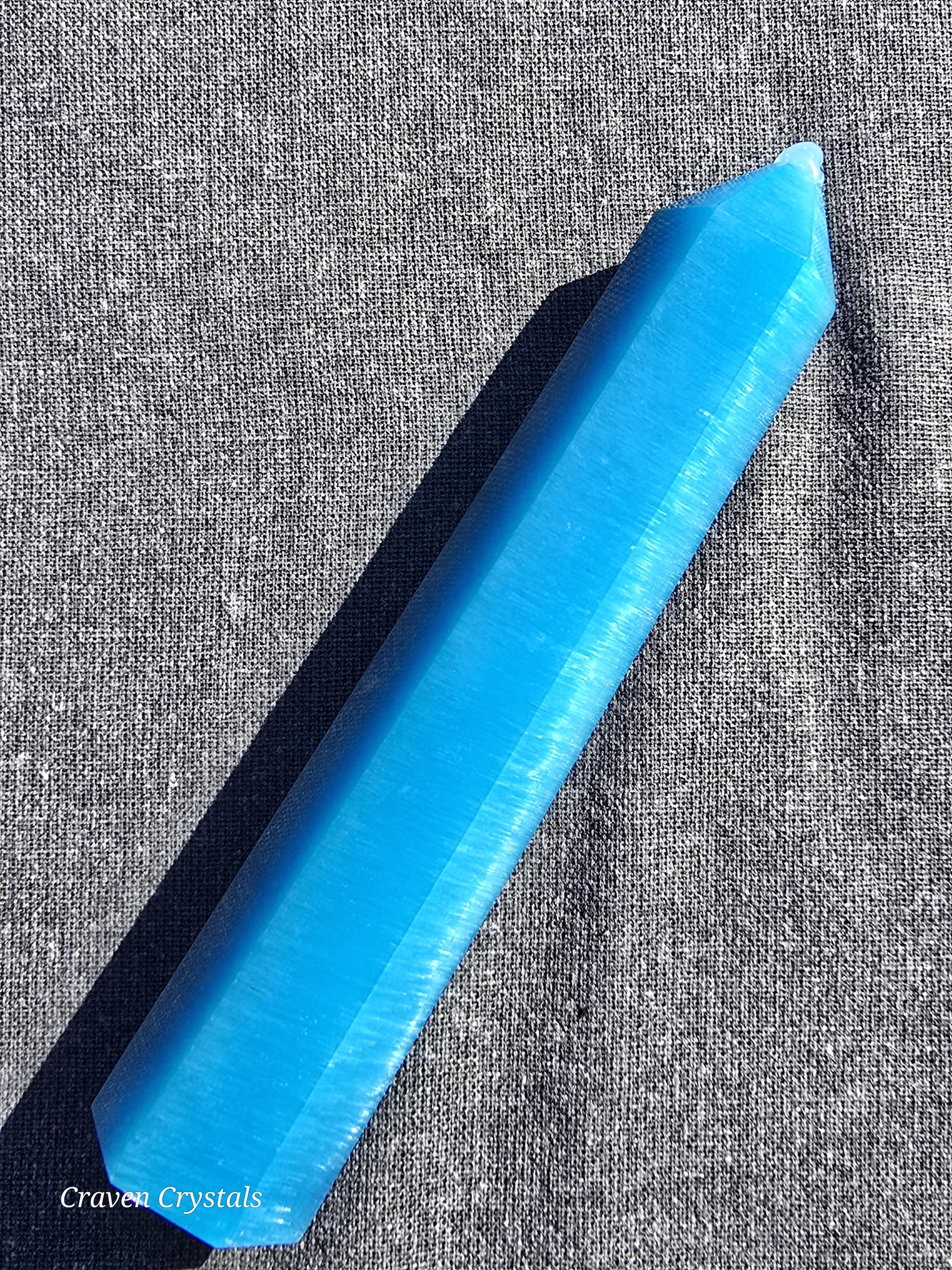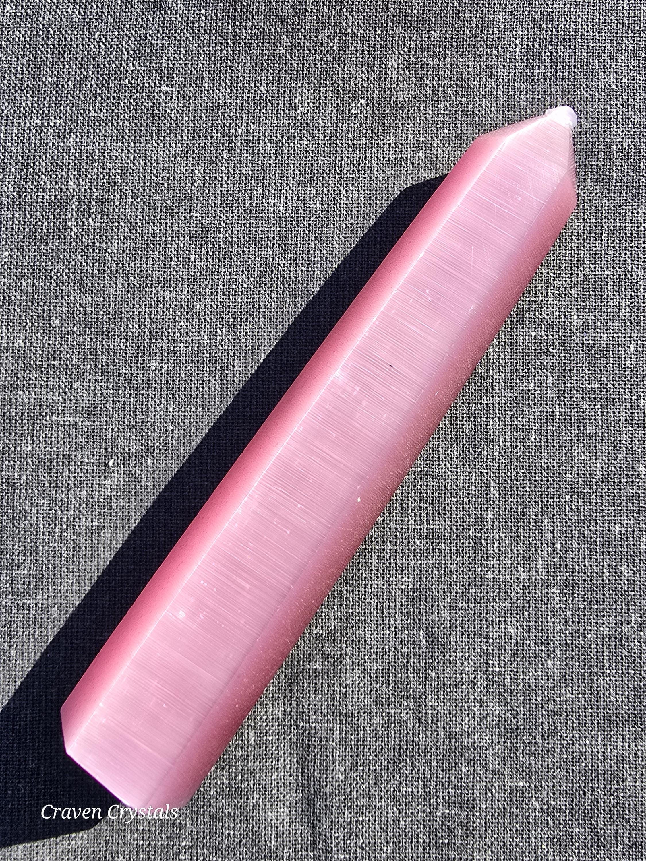 Cat's Eye Selenite is a mesmerizing and spiritually significant variety of selenite, distinguished by its chatoyant effect. This effect, combined with the inherent properties of selenite, makes it a powerful stone for enhancing mental clarity, protection, and spiritual connection. Though delicate, with proper care, cat's eye selenite can be a beautiful and beneficial addition to jewelry, decorative items, and healing practices, offering both aesthetic appeal and metaphysical benefits.