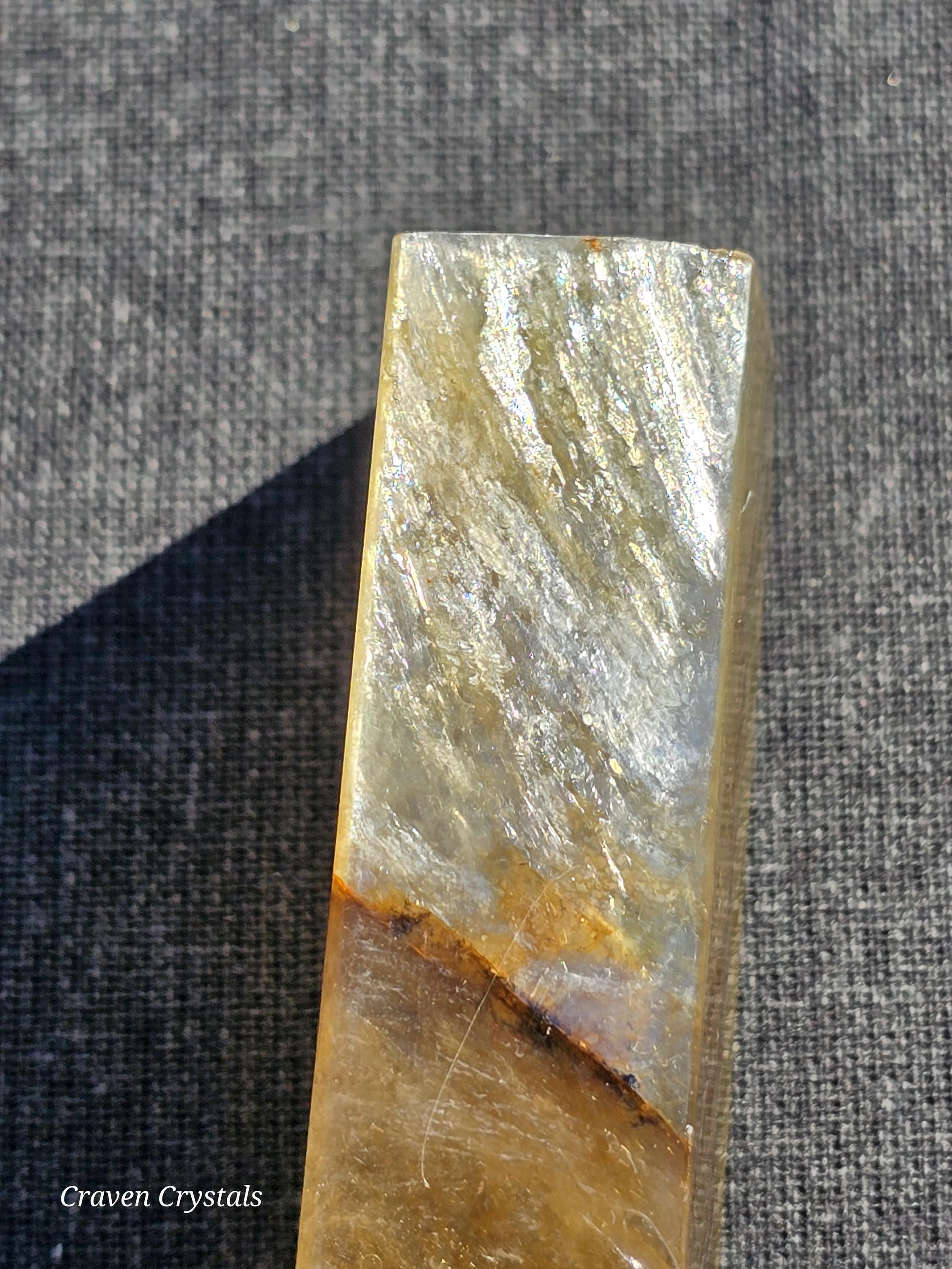 Gold mica is thought to enhance mental clarity, concentration, and focus. It is believed to help individuals organize their thoughts and improve problem-solving skills. Gold mica is associated with the throat chakra, which is linked to communication and self-expression. It is believed to assist in effectively expressing thoughts and ideas.