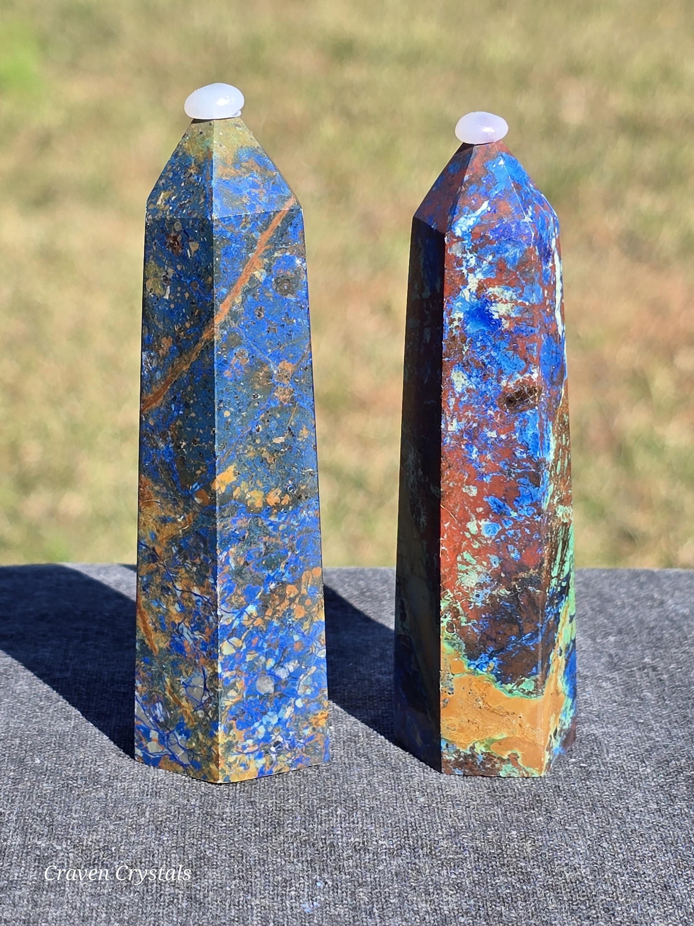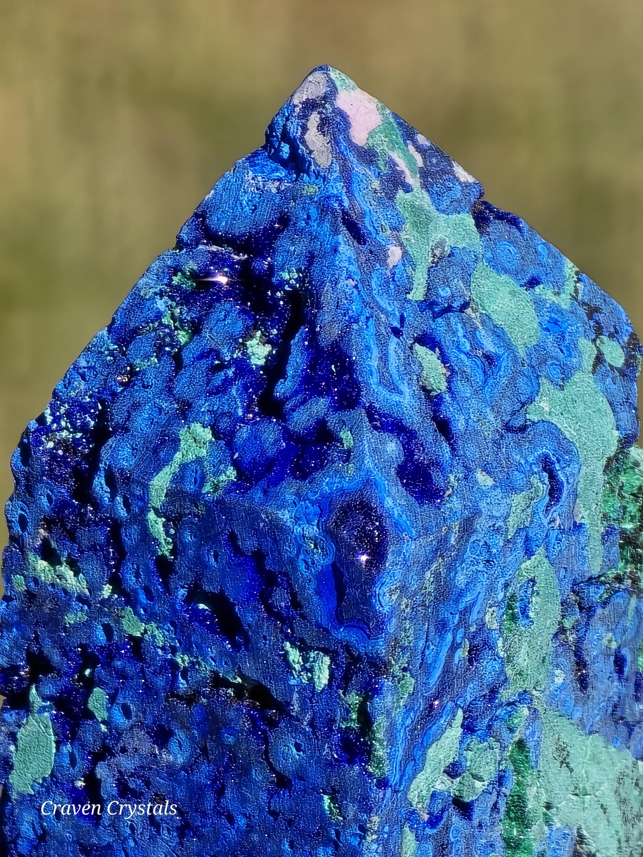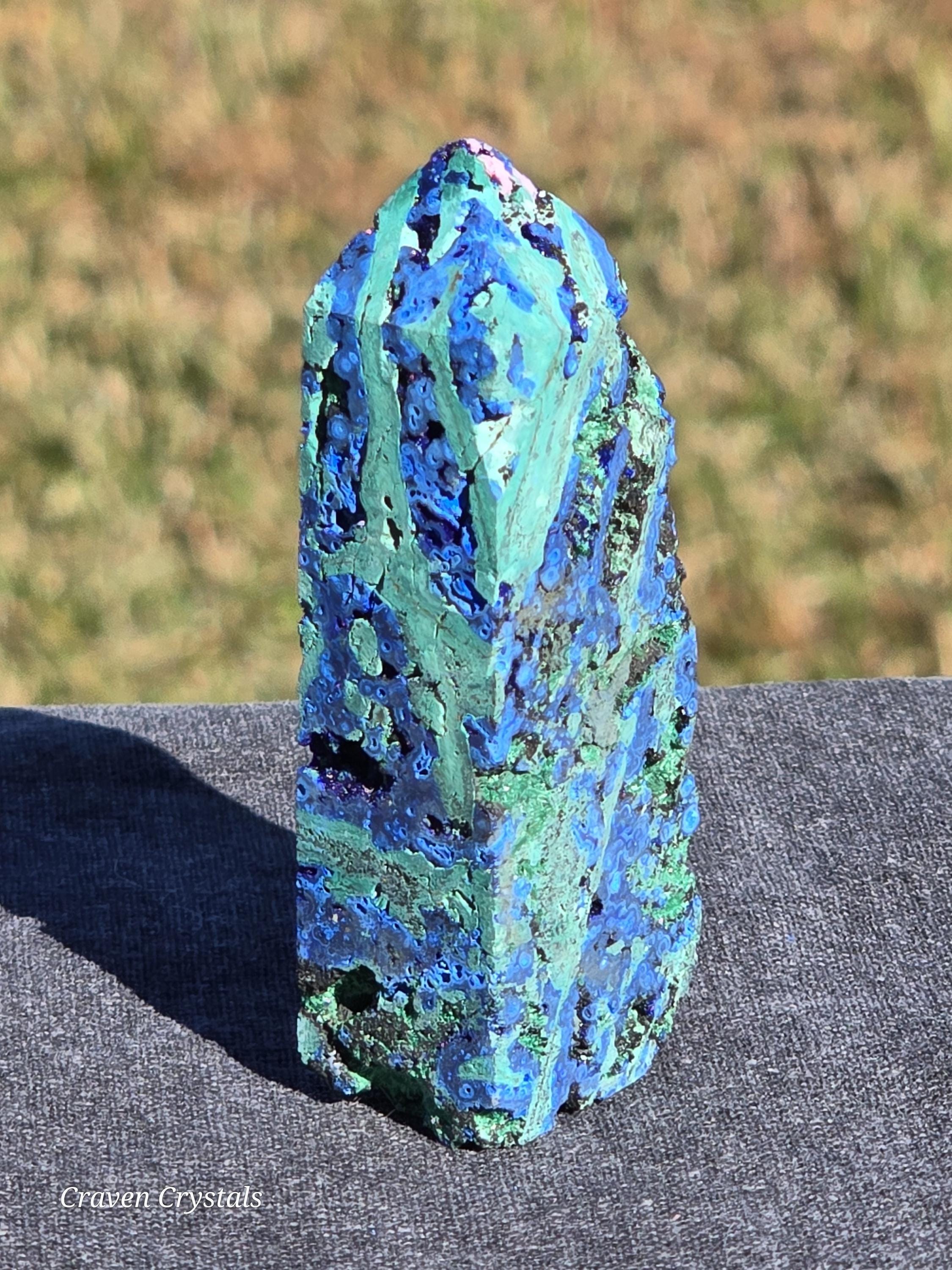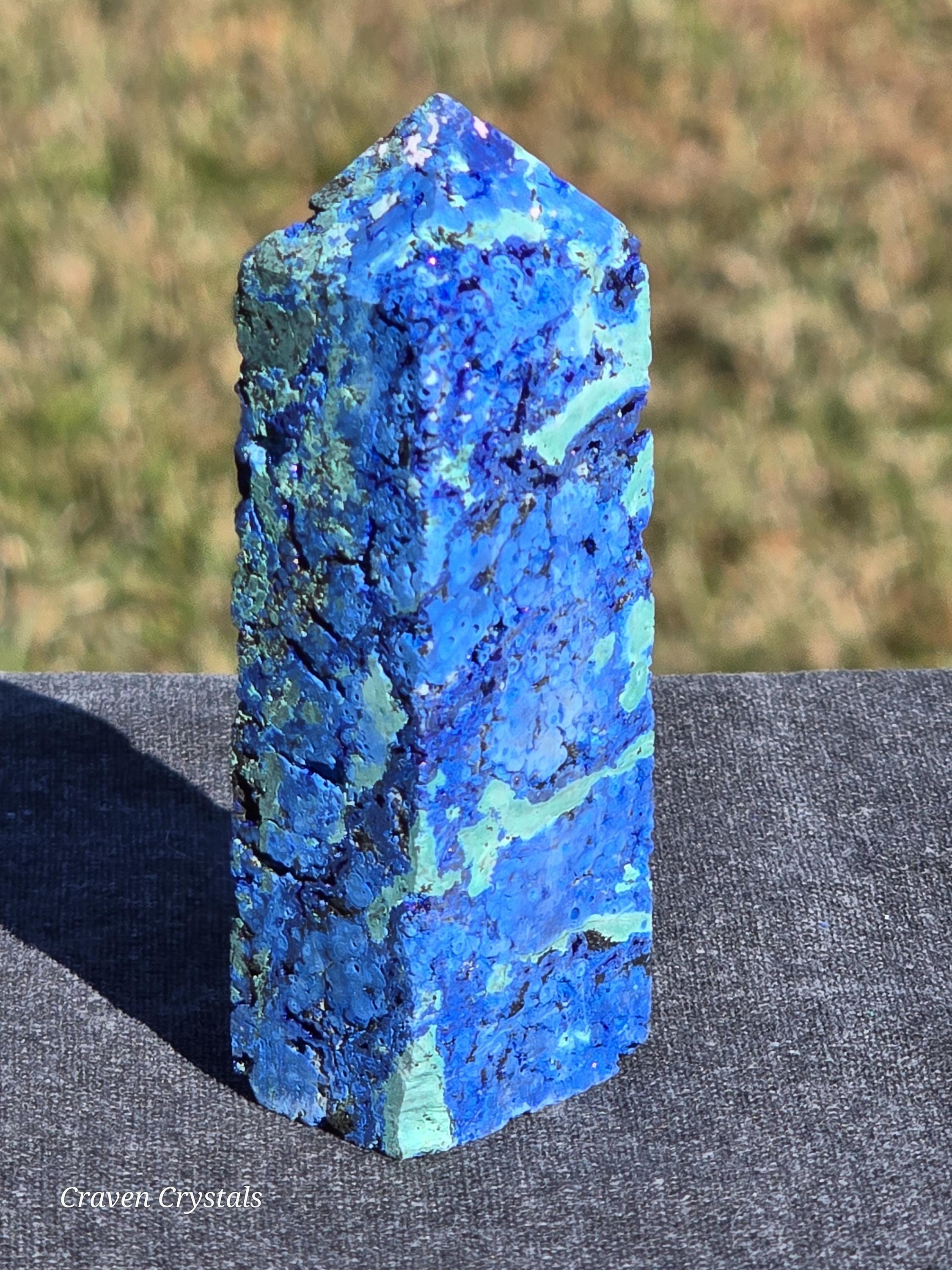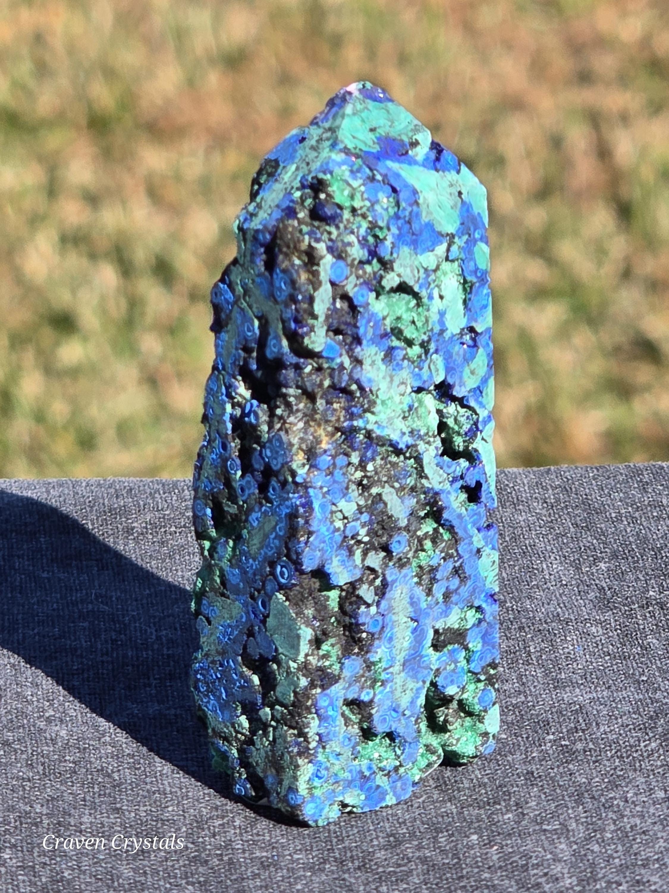 Azurite Crystal Towers, a visually stunning and energetically potent mineral combination that unites two closely related copper carbonates—Azurite and Malachite—in a naturally occurring fusion of deep royal blue and vibrant green.