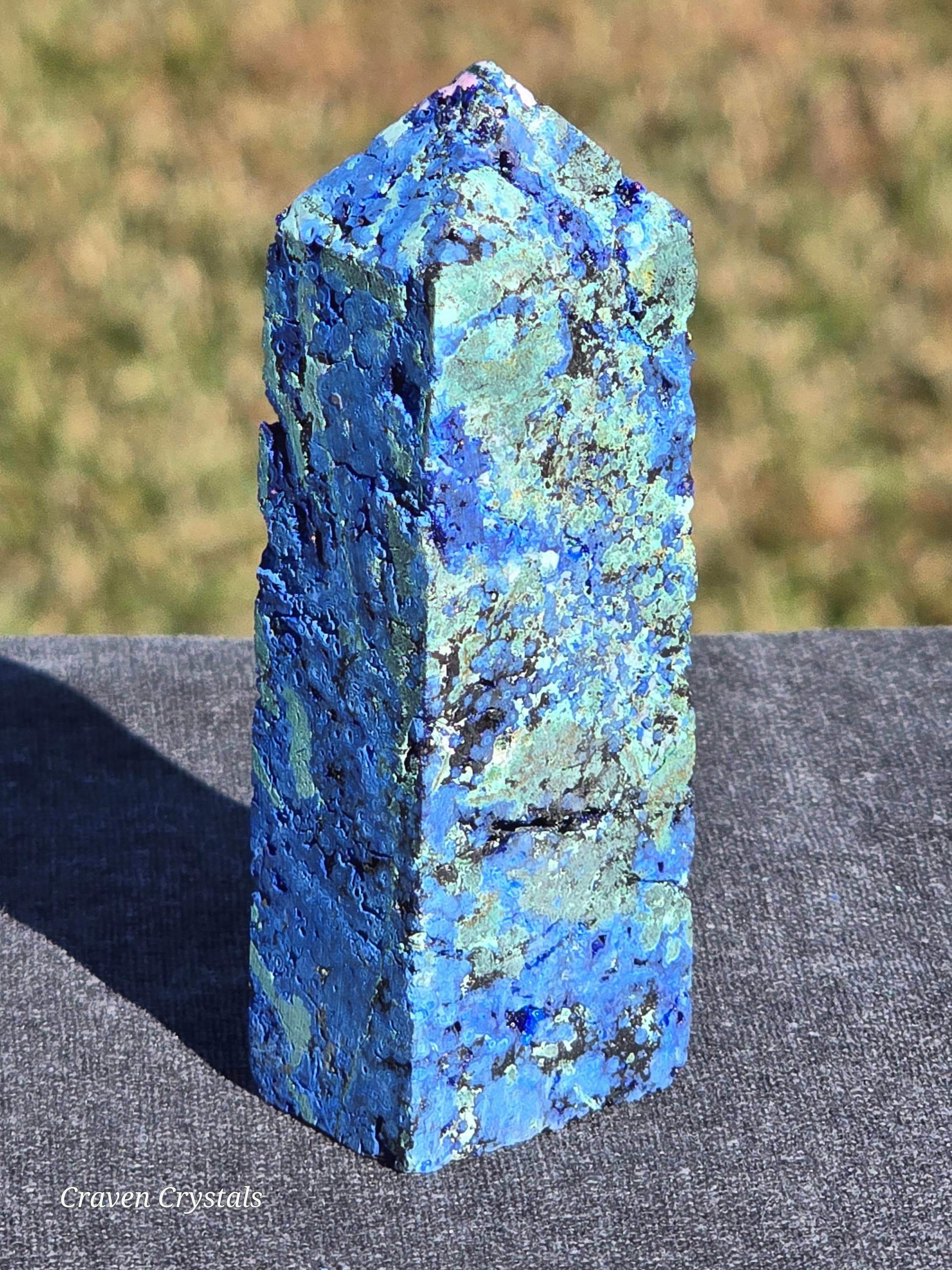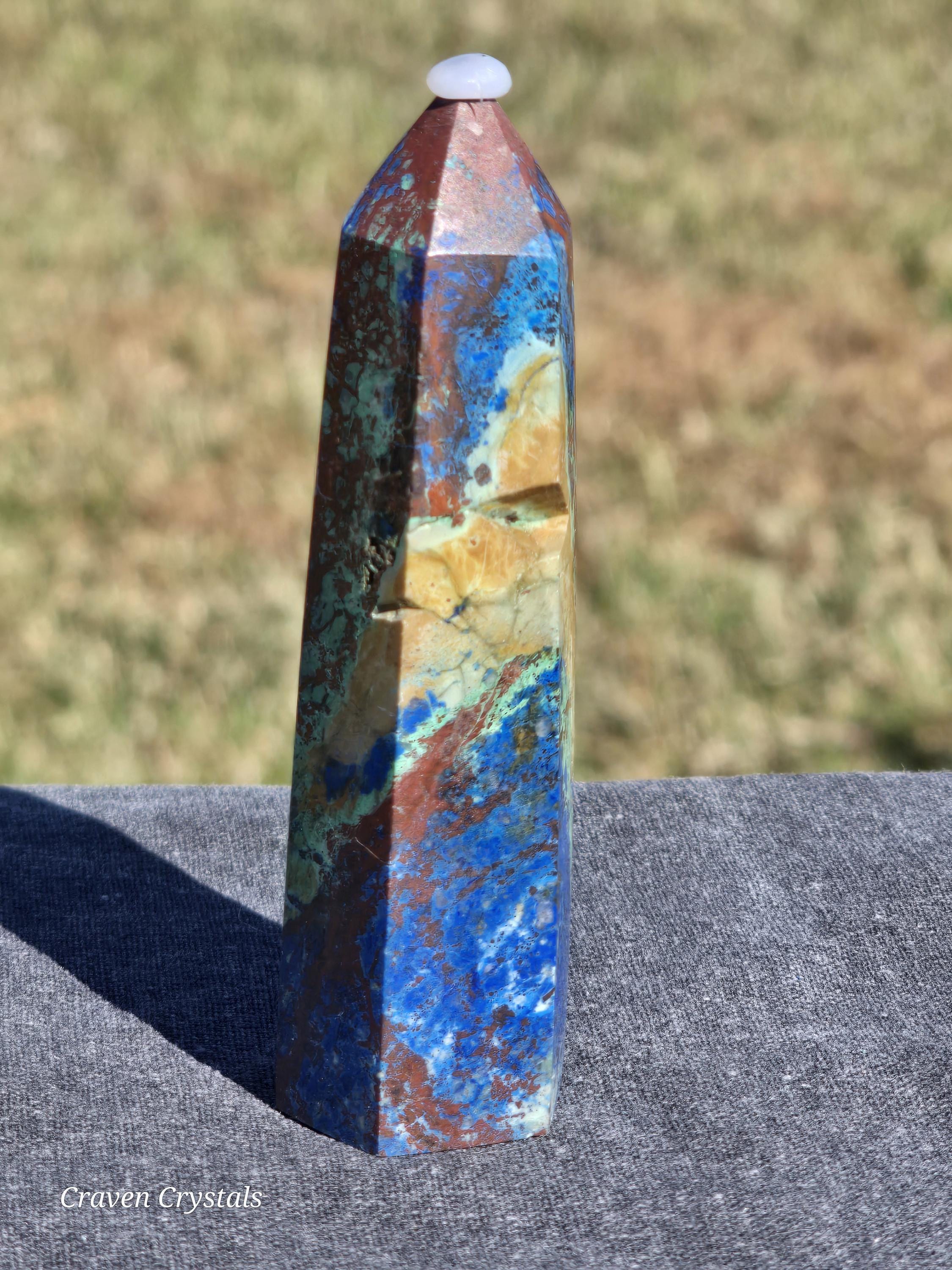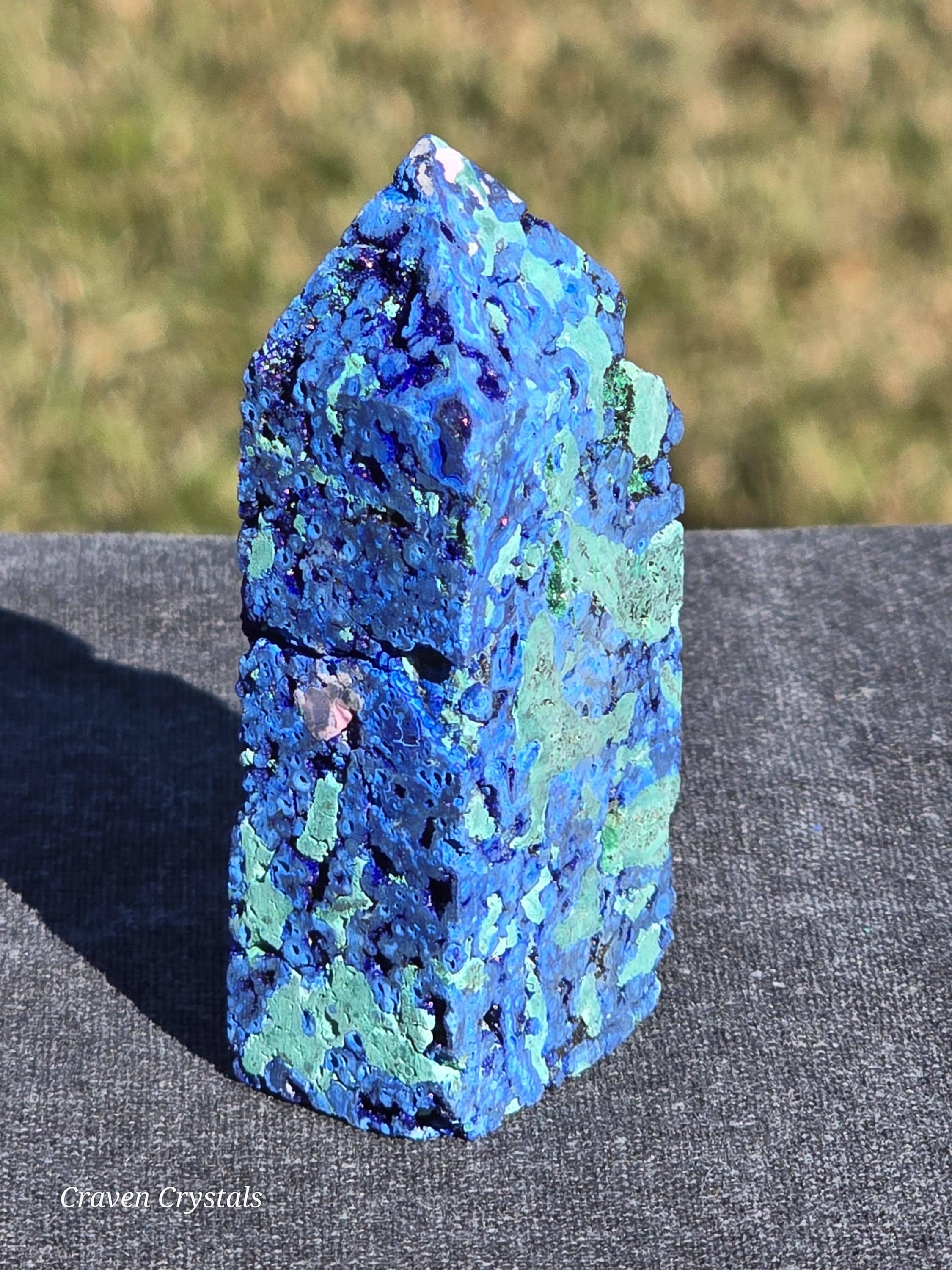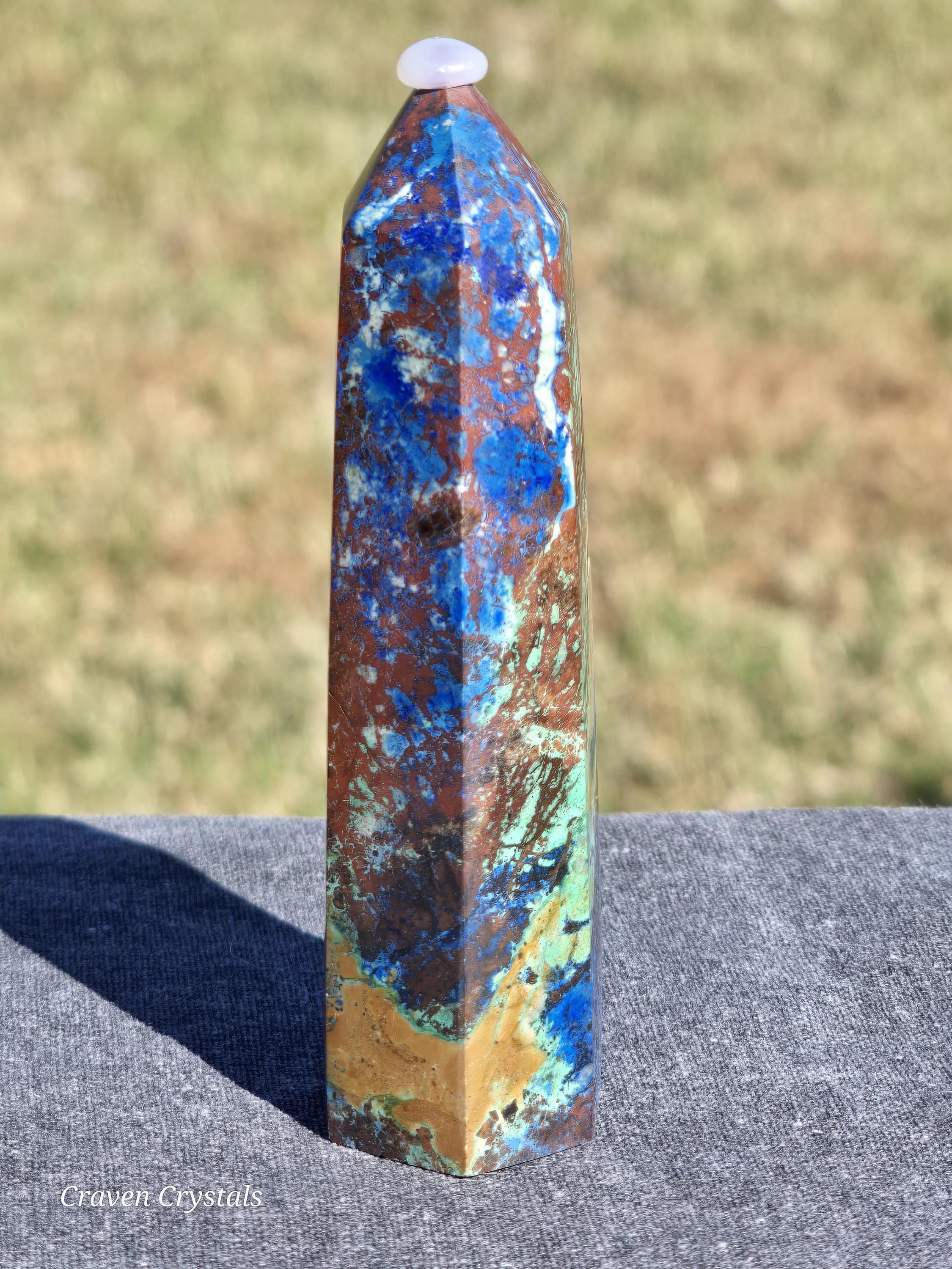 Azurite Crystal Towers, a visually stunning and energetically potent mineral combination that unites two closely related copper carbonates—Azurite and Malachite—in a naturally occurring fusion of deep royal blue and vibrant green.