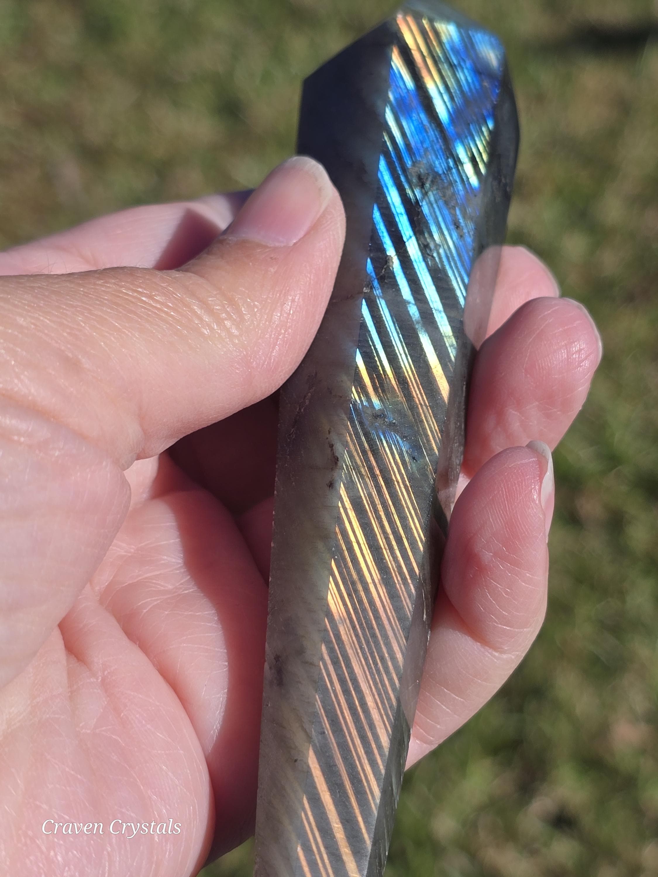 Labradorite is believed to promote spiritual growth, intuition, and protection. It's often used as a stone to enhance psychic abilities, balance energies, and shield against negative influences. Some people believe that labradorite has magical and spiritual properties, such as enhancing intuition, protection, and transformation.