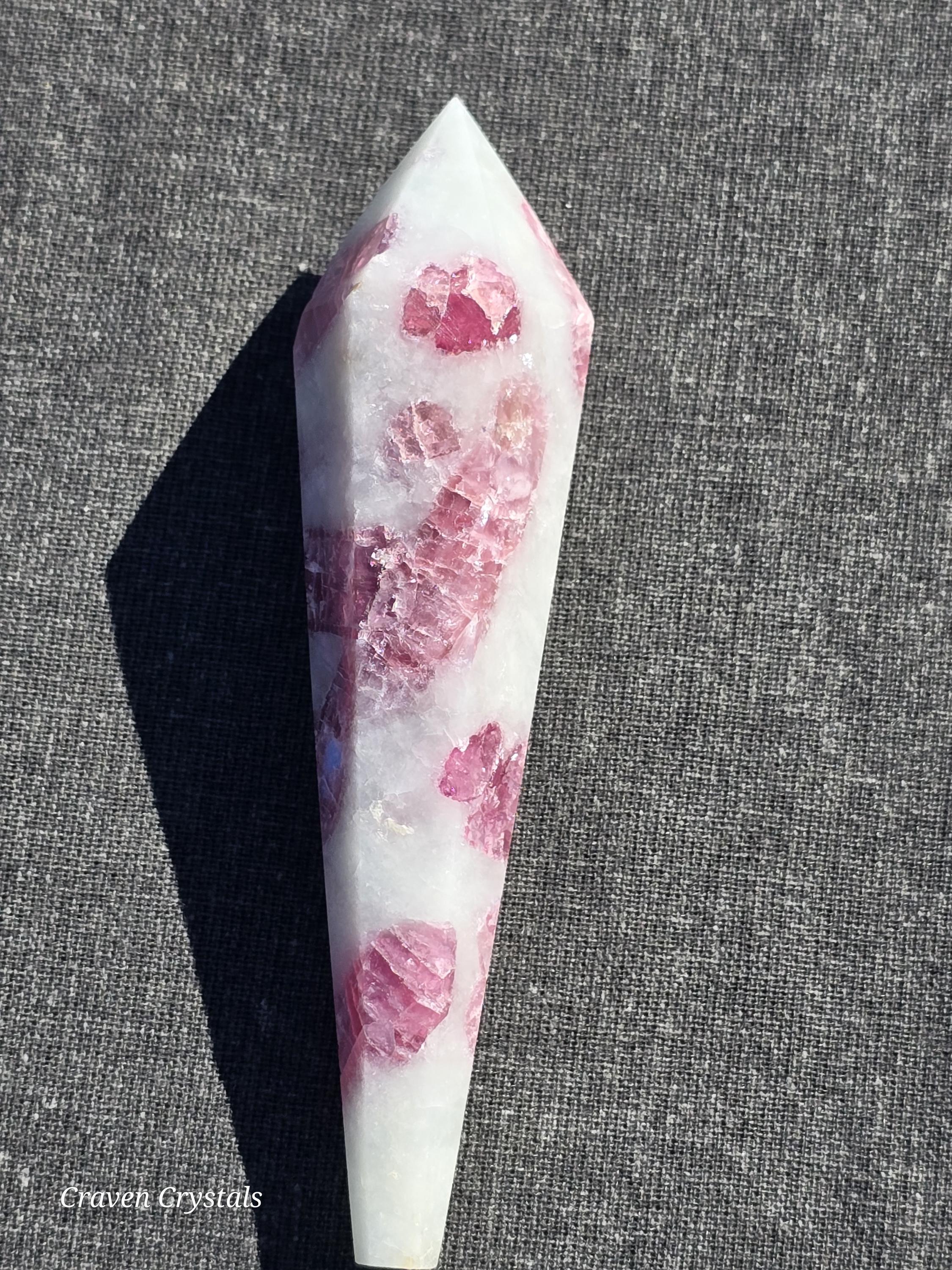 Elbaite Pink Tourmaline is believed to assist in releasing emotional wounds, promoting self-love, and enhancing emotional stability. It is thought to attract and support love and romance, making it a popular choice for relationship-related matters.