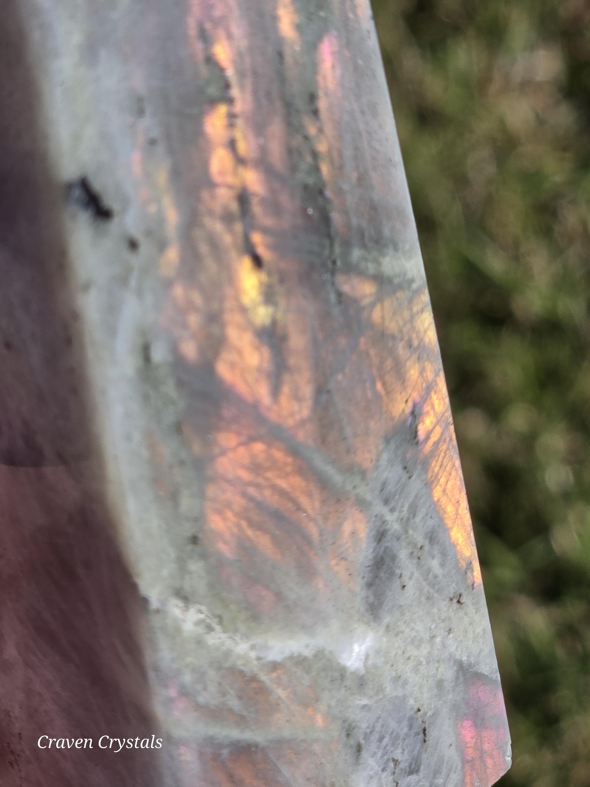 Labradorite is believed to promote spiritual growth, intuition, and protection. It's often used as a stone to enhance psychic abilities, balance energies, and shield against negative influences. Some people believe that labradorite has magical and spiritual properties, such as enhancing intuition, protection, and transformation.
