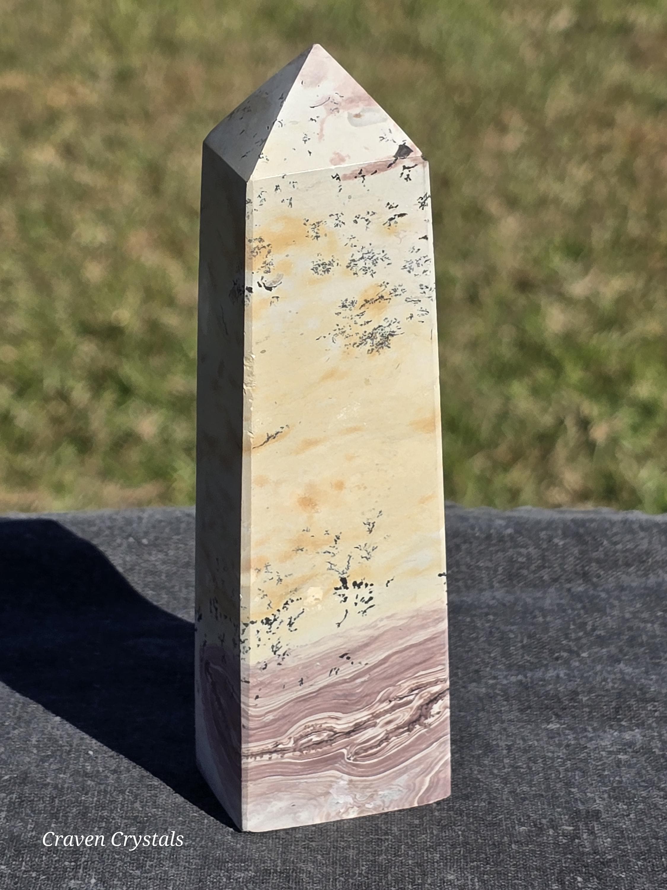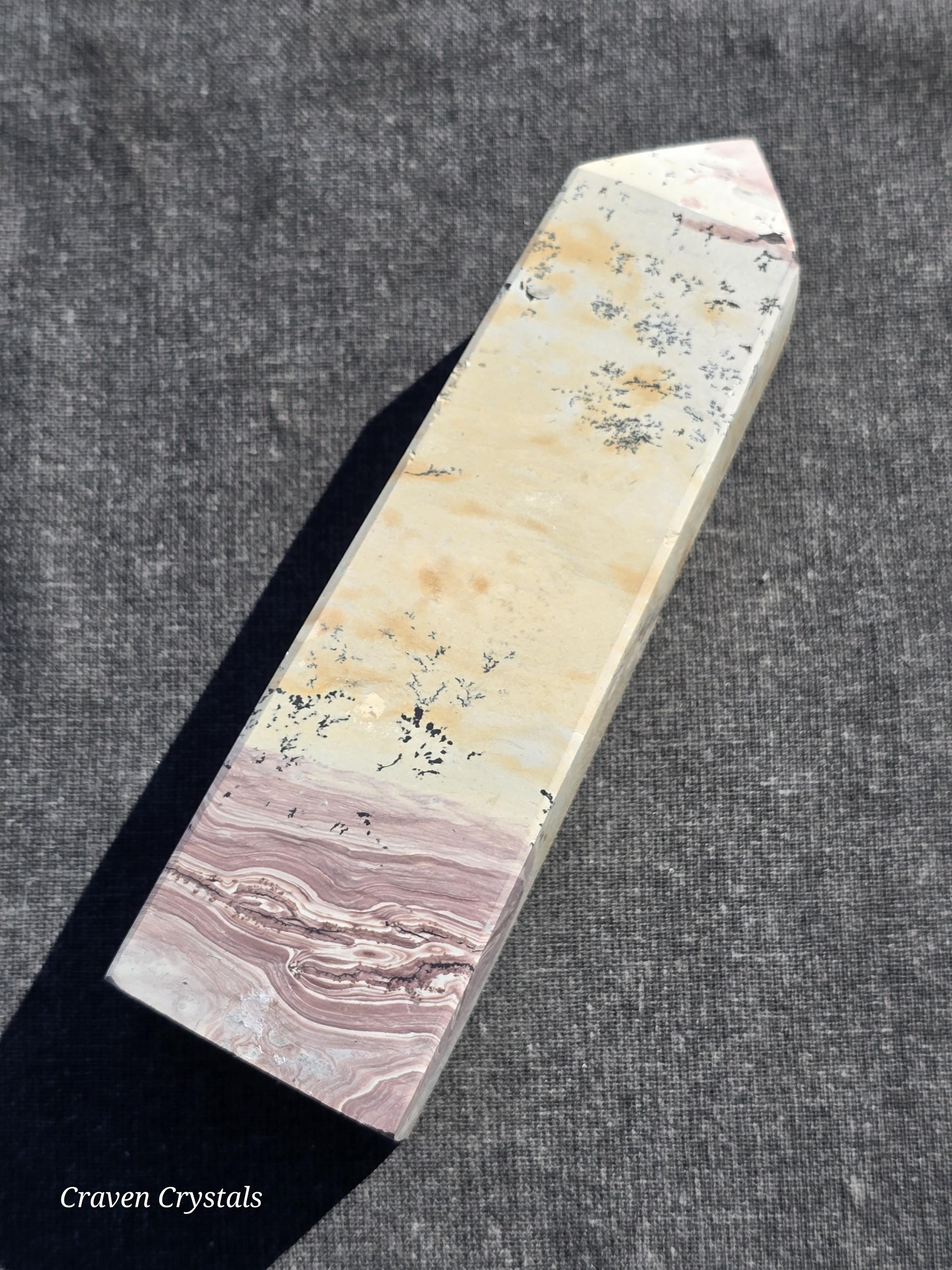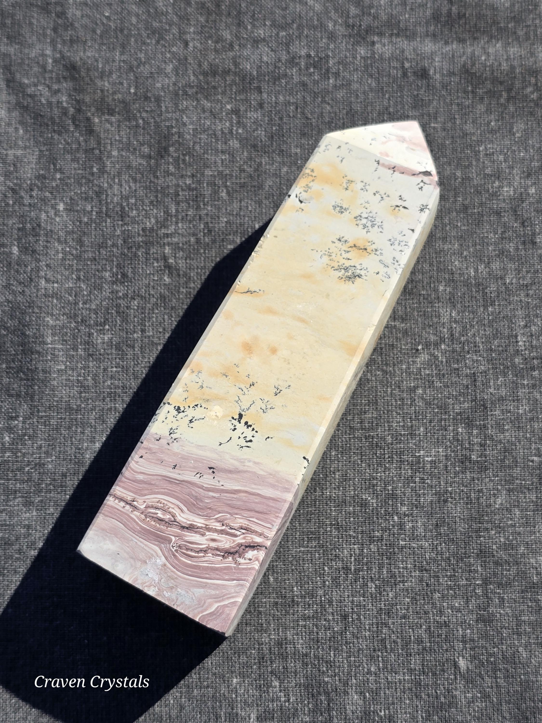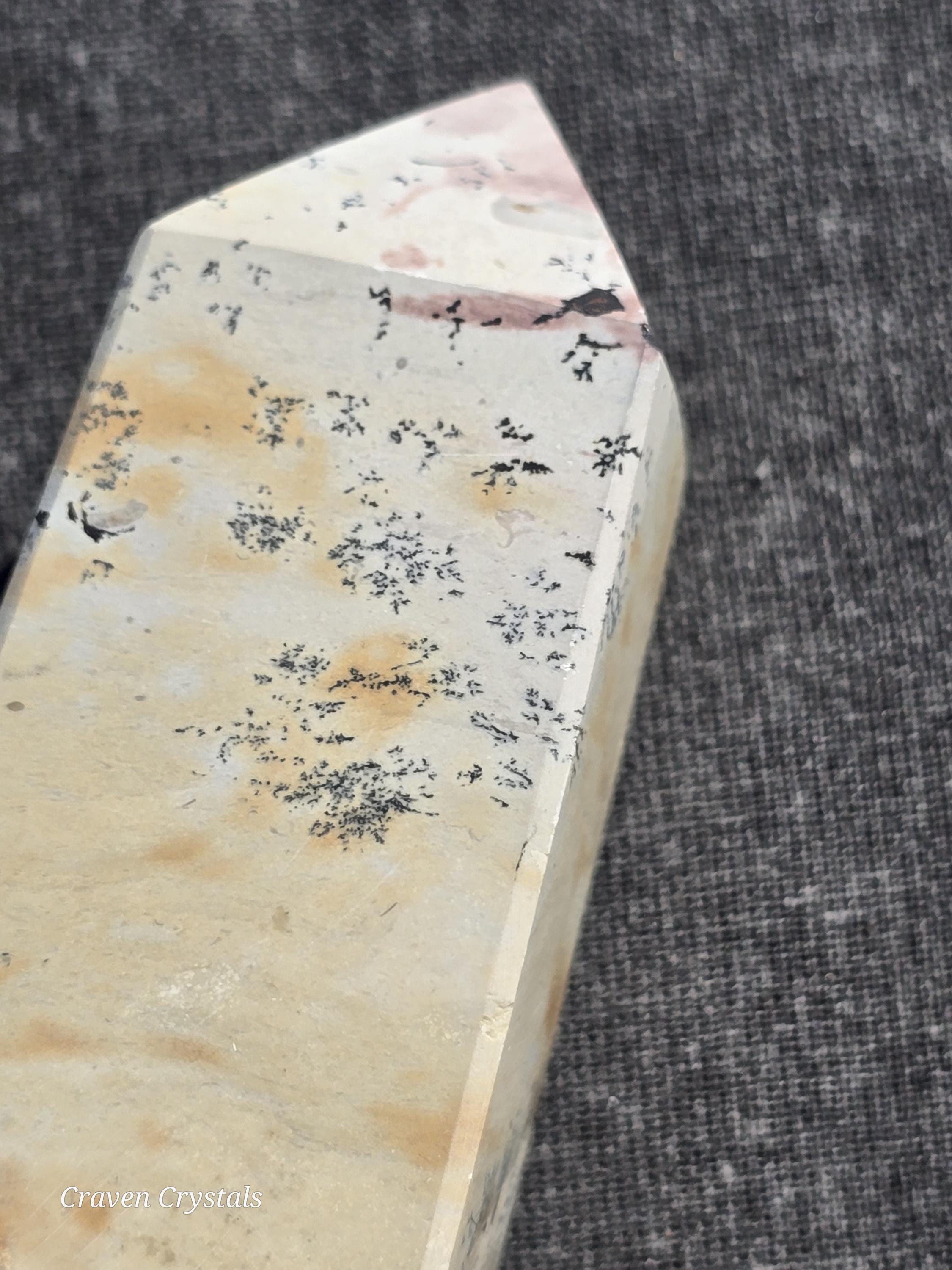 Picture Jasper Crystal Tower with beautiful pink waves and black dendritic like markings