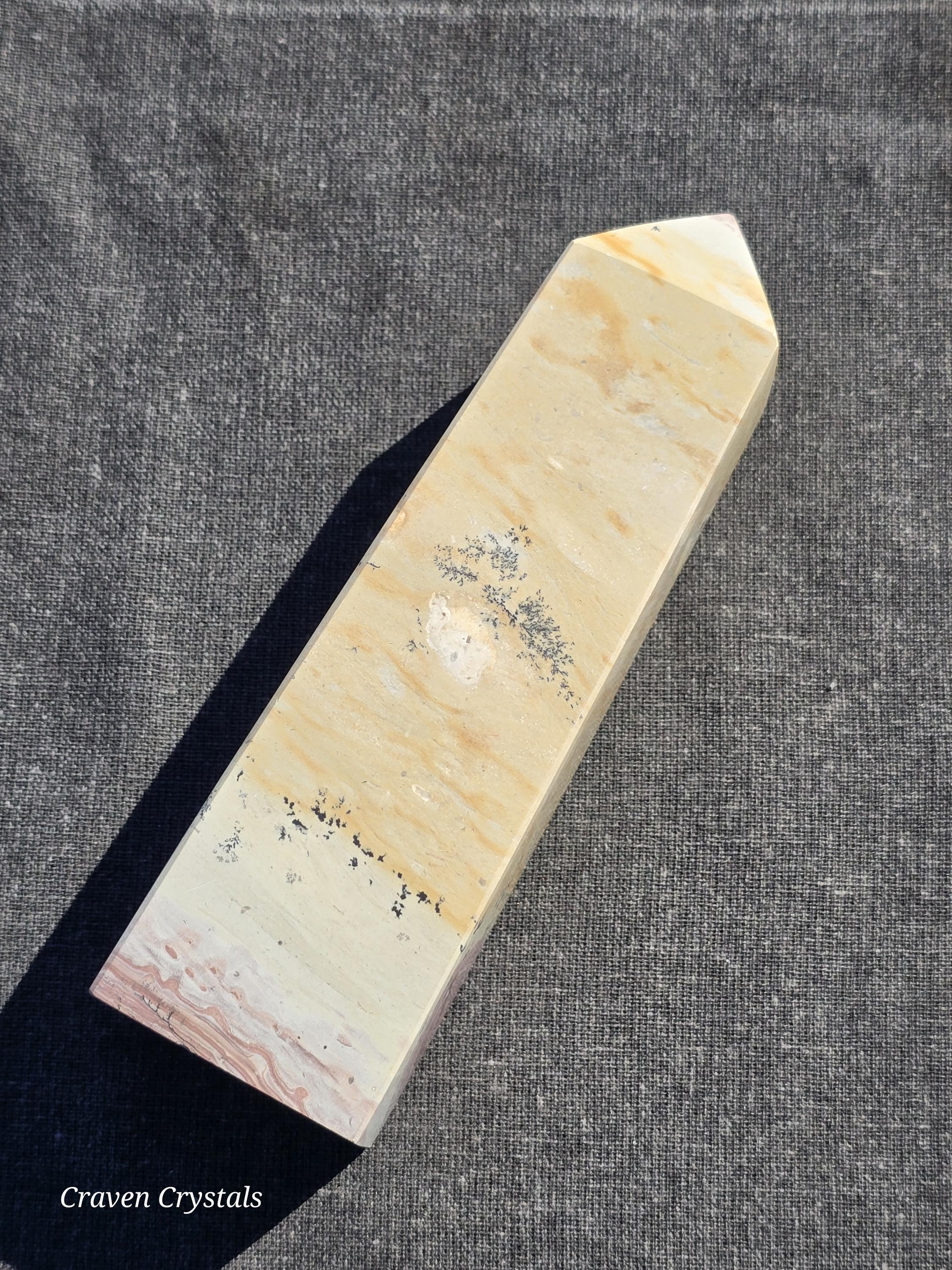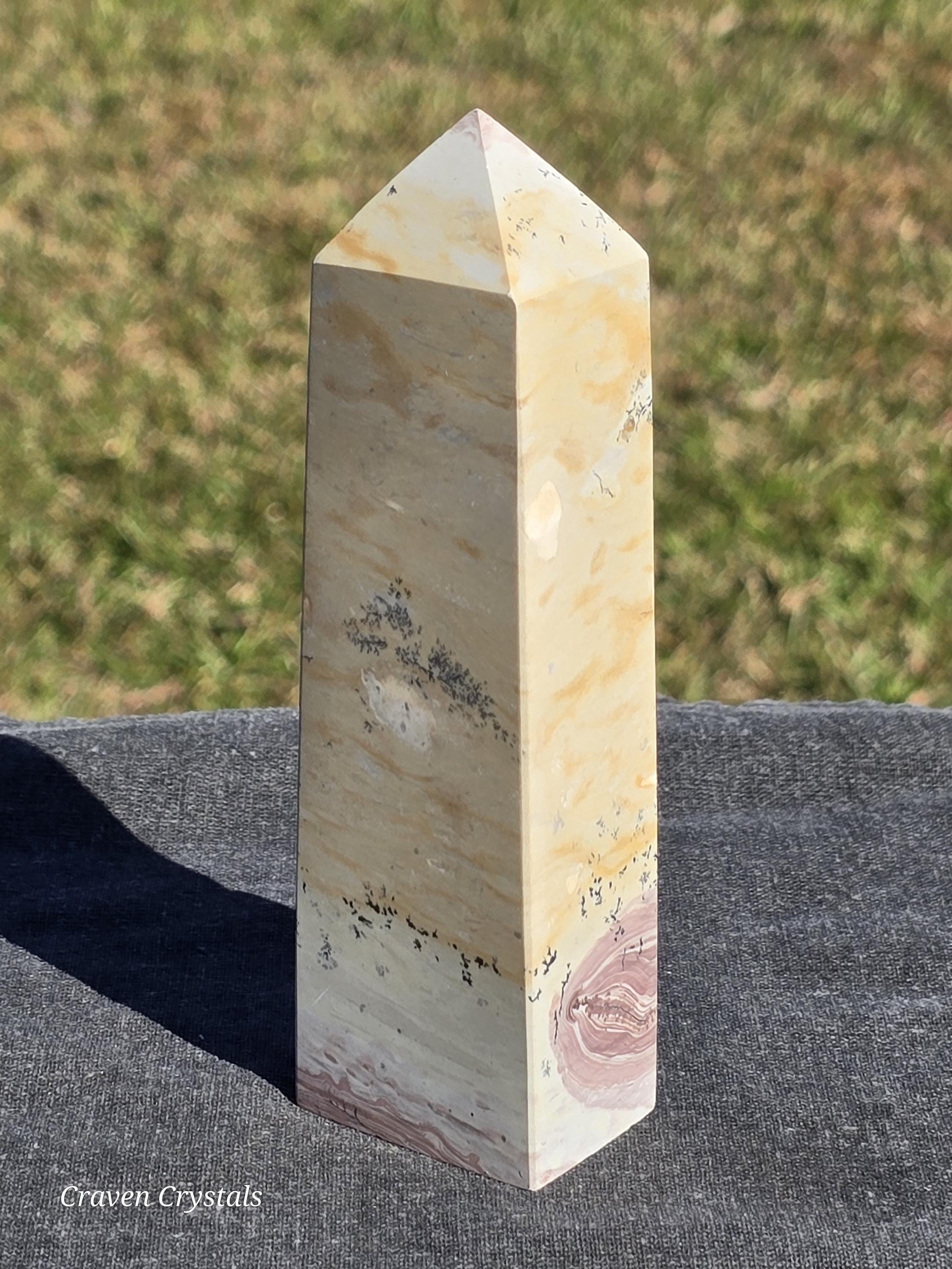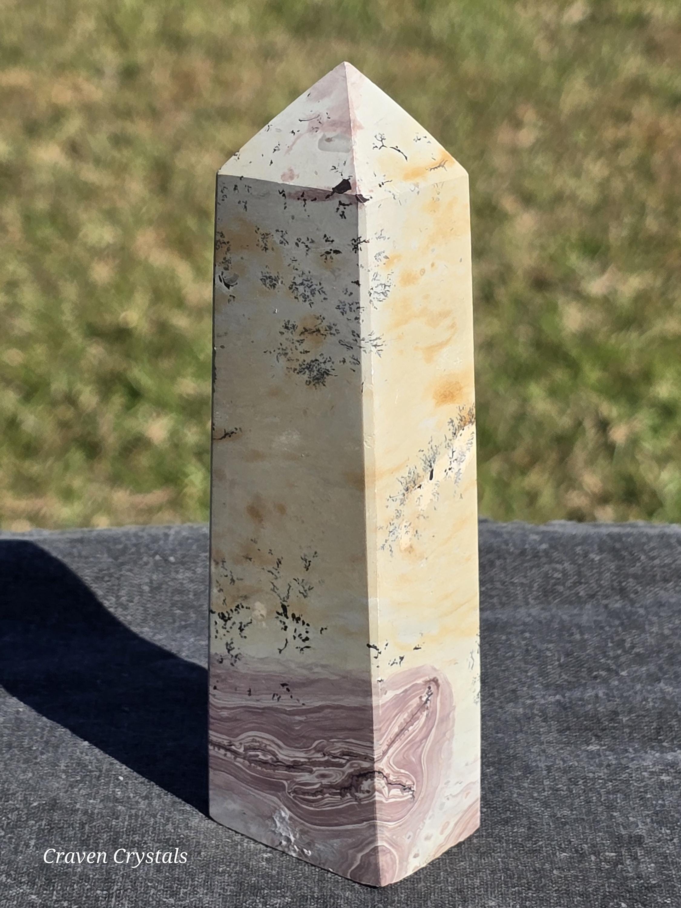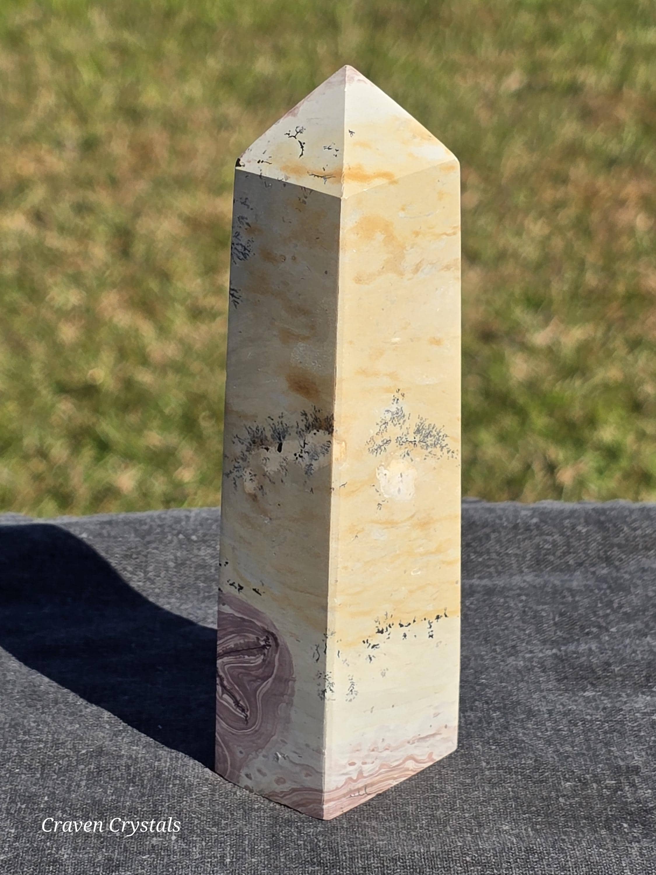 Picture Jasper Crystal Tower with beautiful pink waves and black dendritic like markings