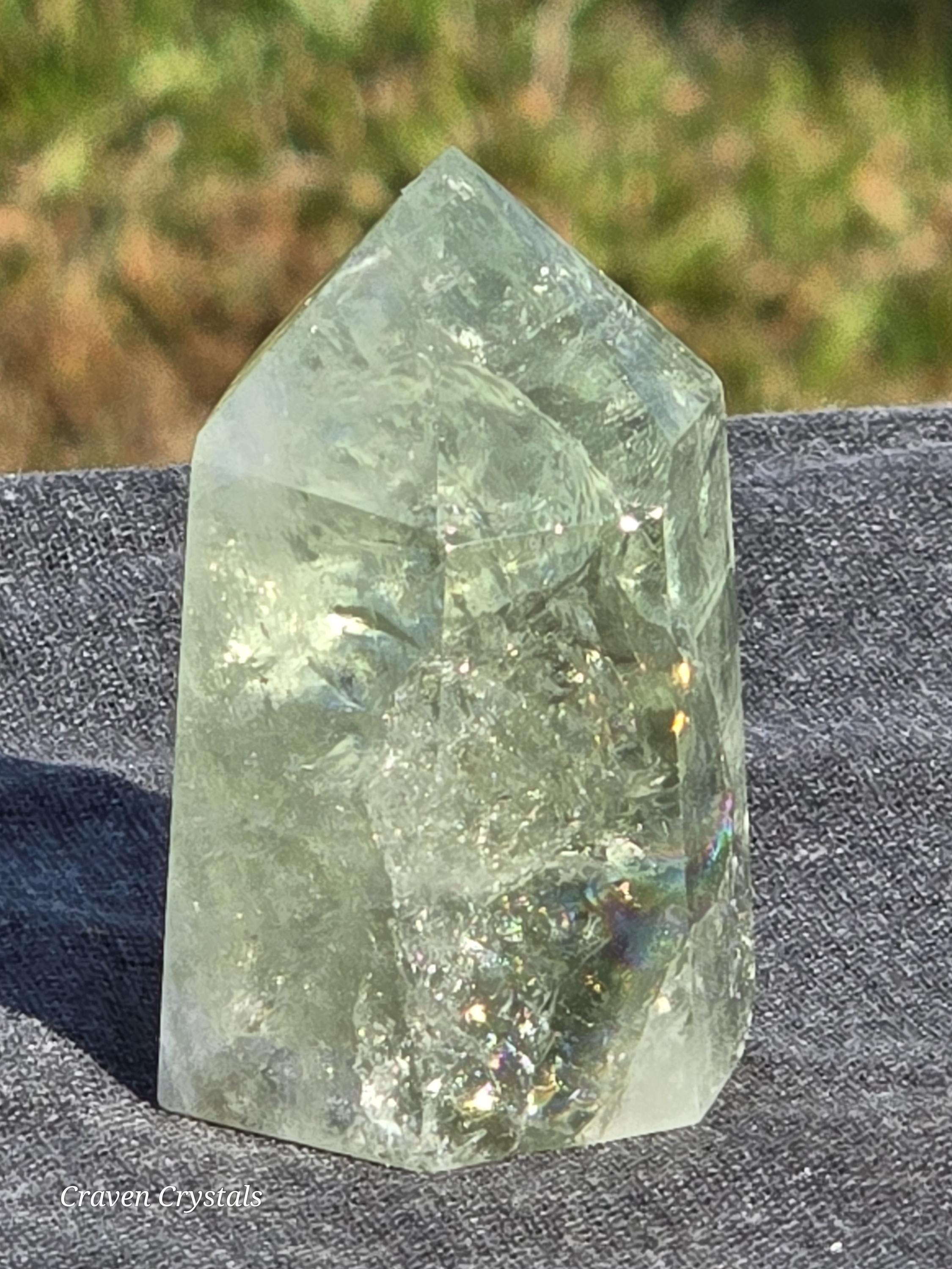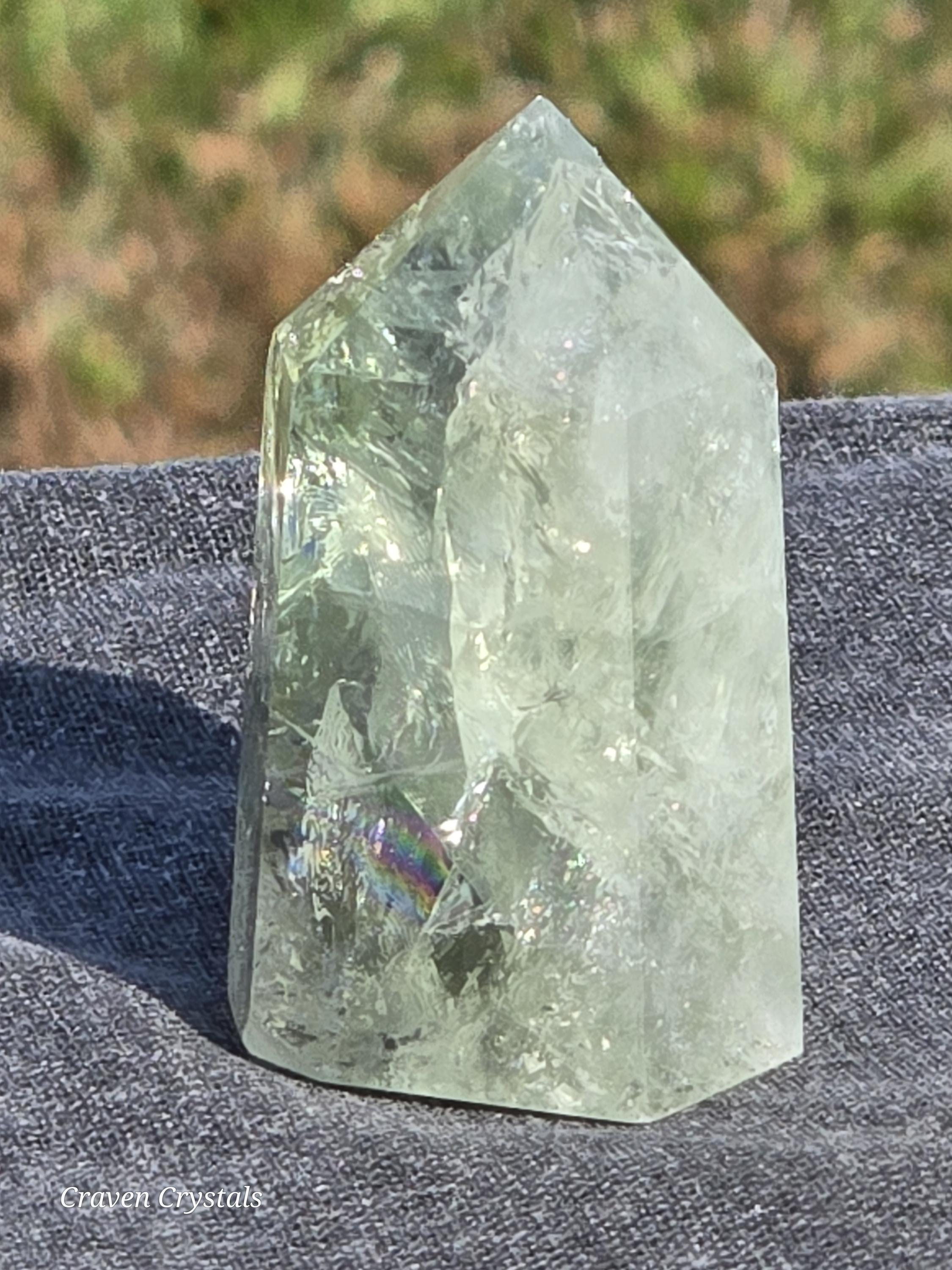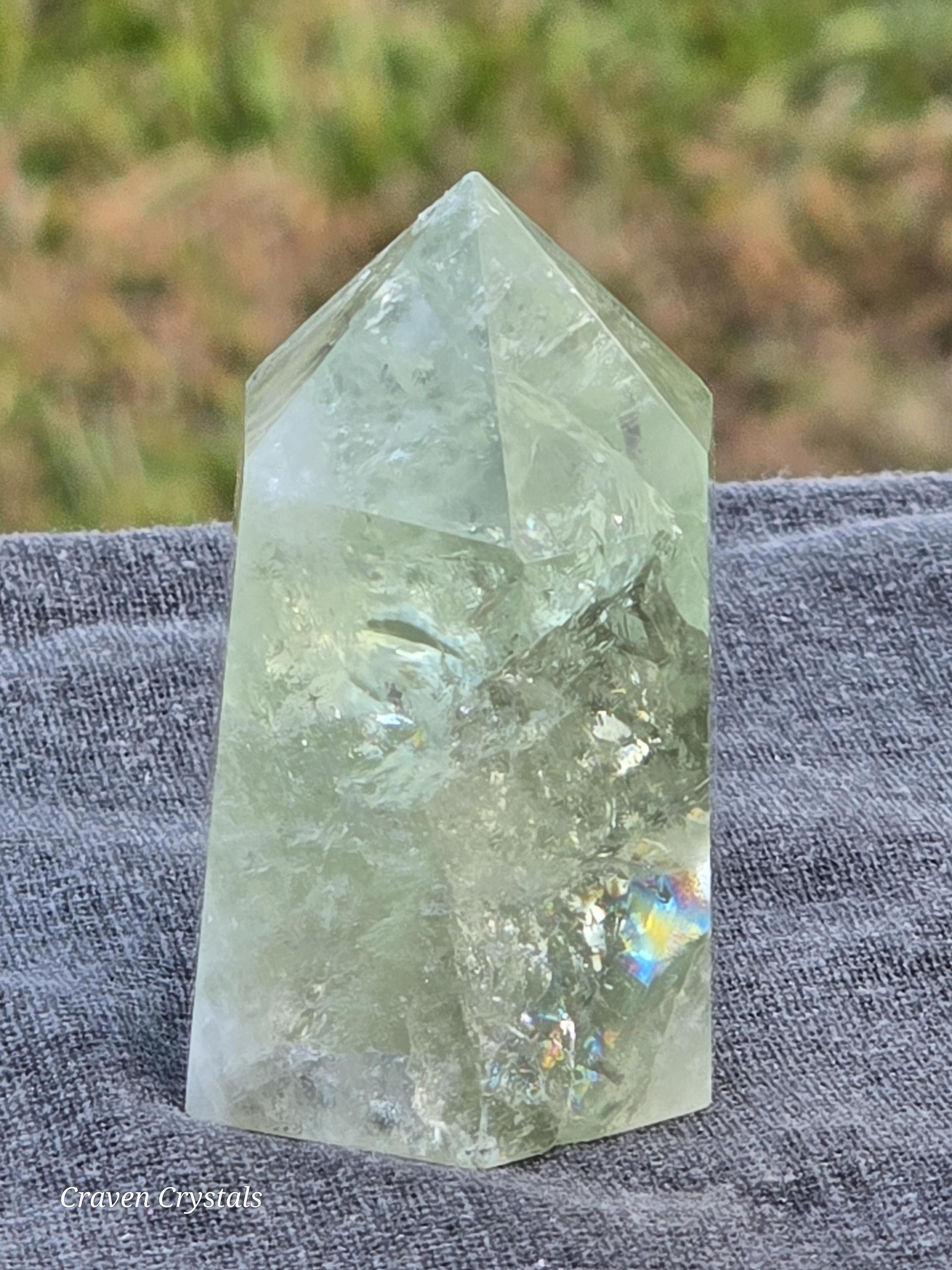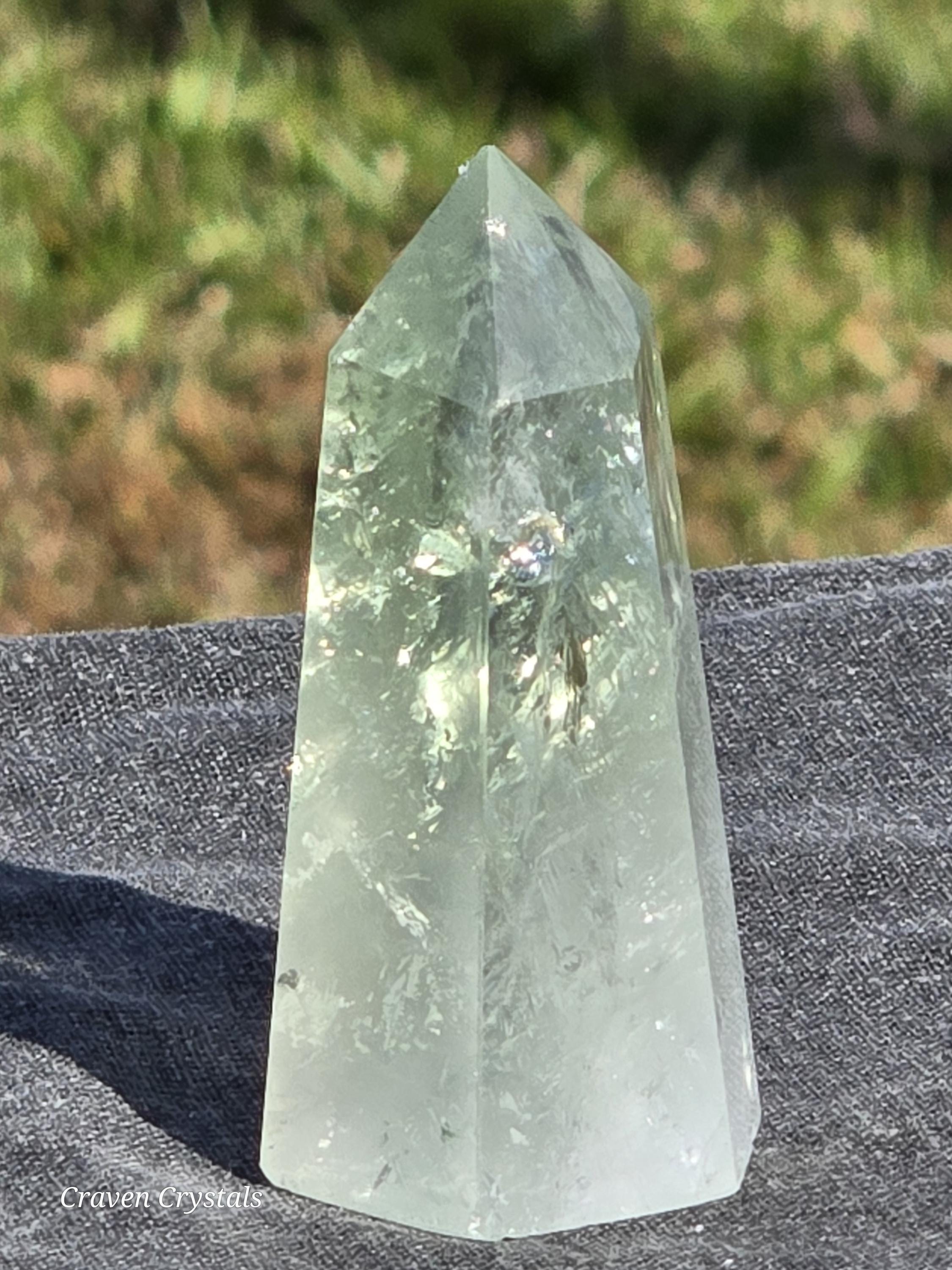 Prasiolite Crystal Towers, also known as Green Amethyst, a rare and elegant variety of quartz prized for its soft, mint-to-olive-green coloration and serene energy.