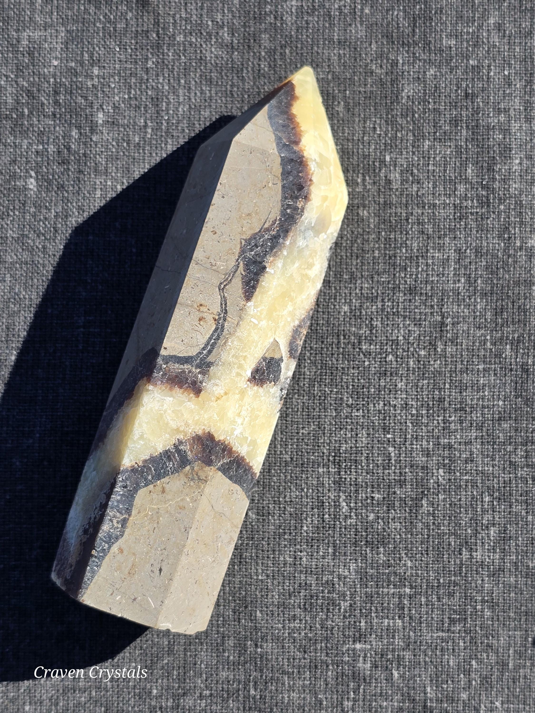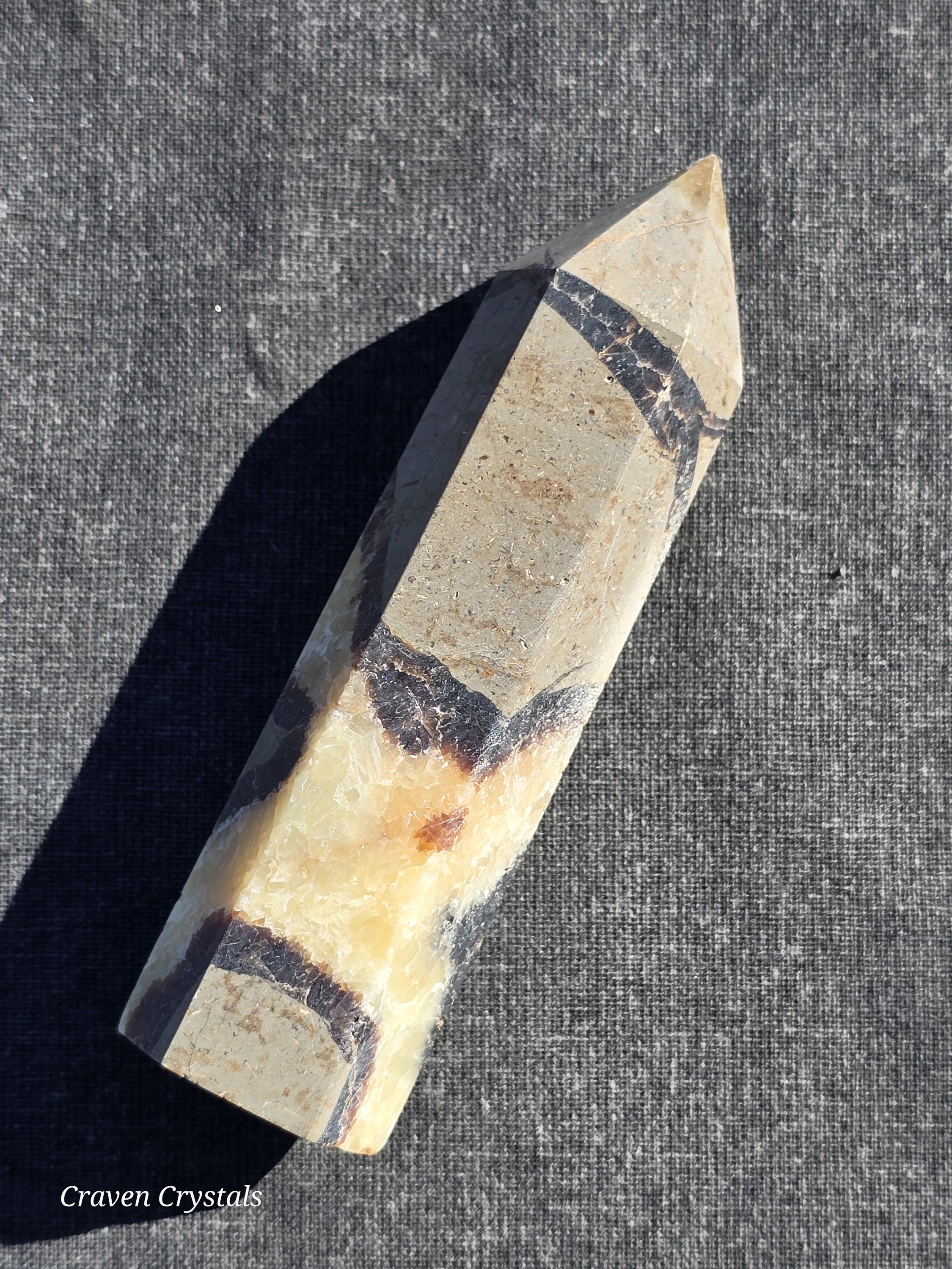 Septarian is believed to have grounding and protective properties, helping individuals feel more connected to the Earth and fostering a sense of stability and security. It is also associated with creativity and balance, providing protection from negative energies and emotional stress.