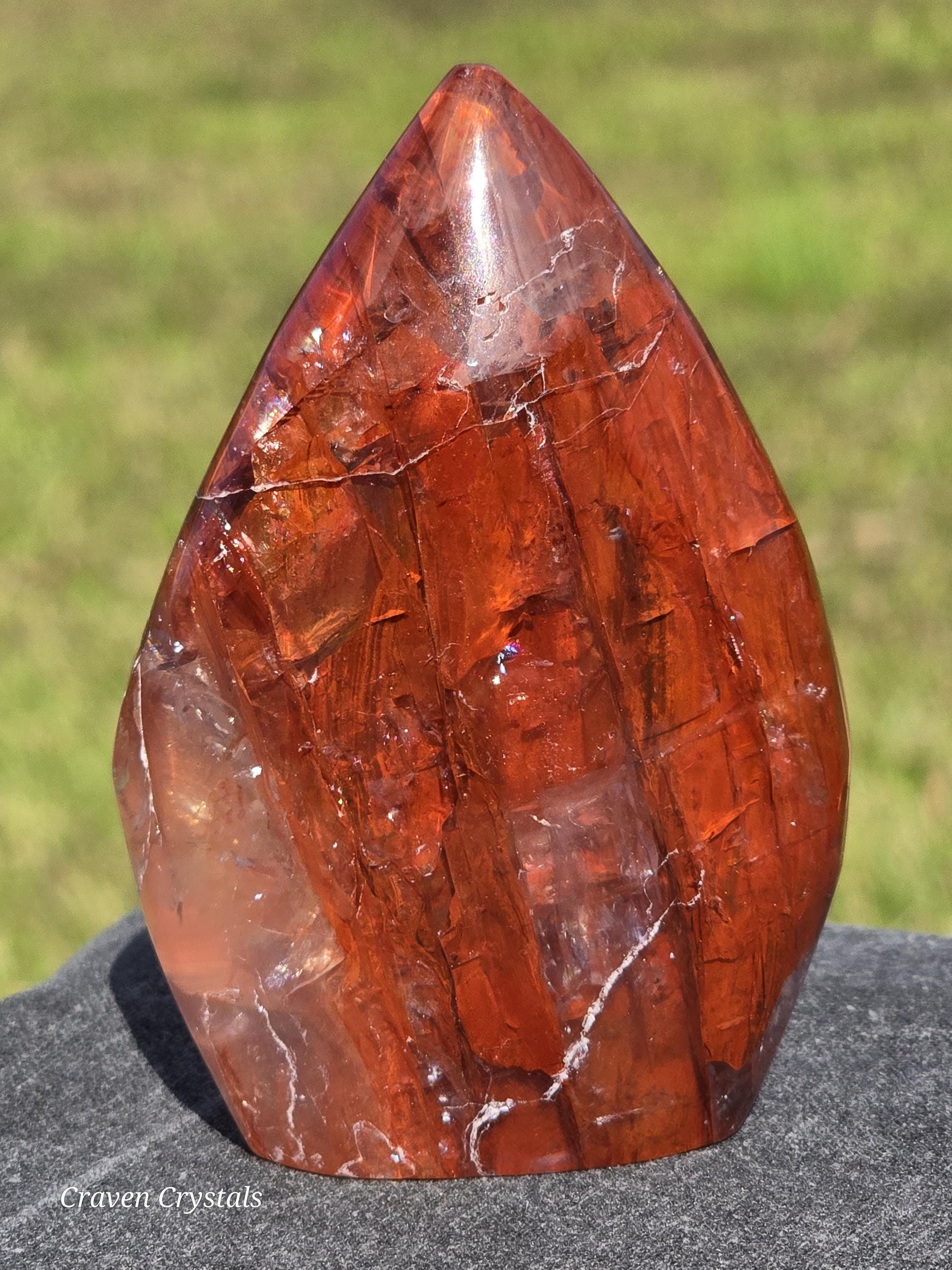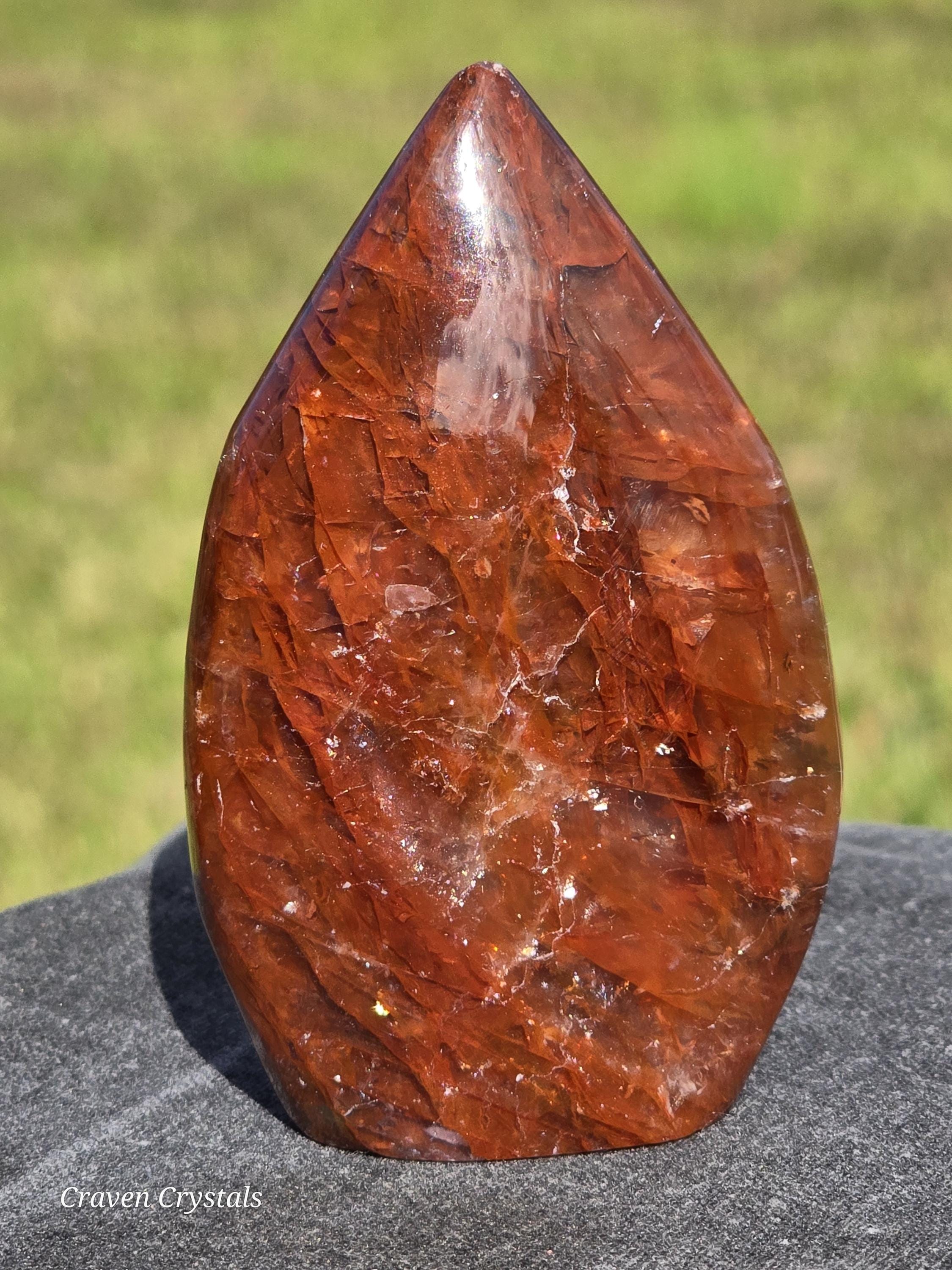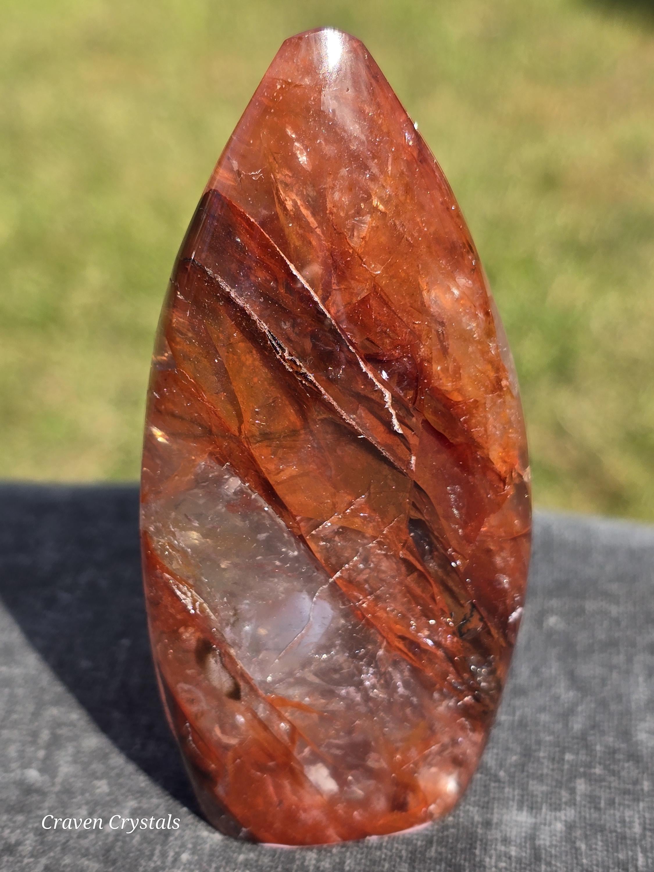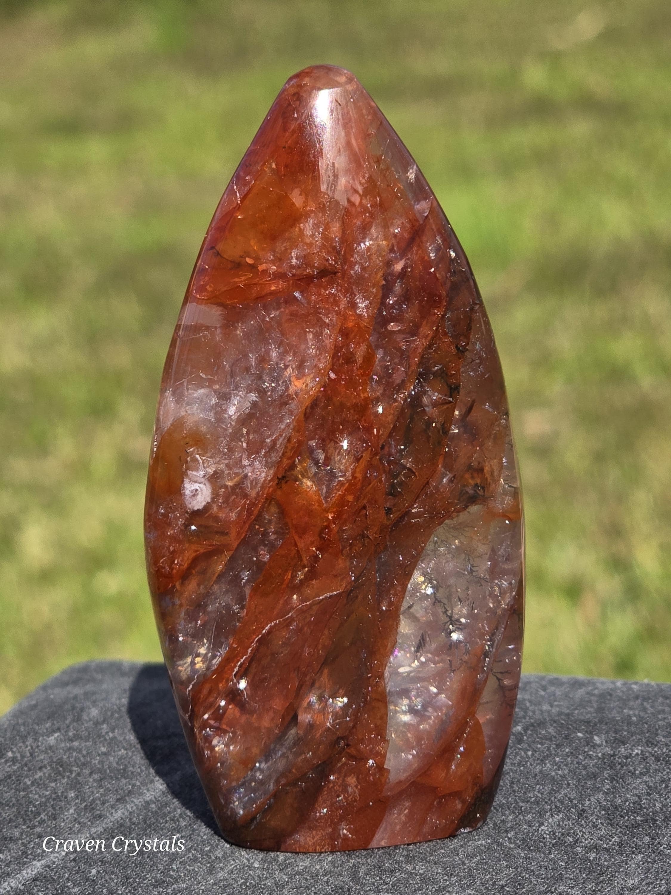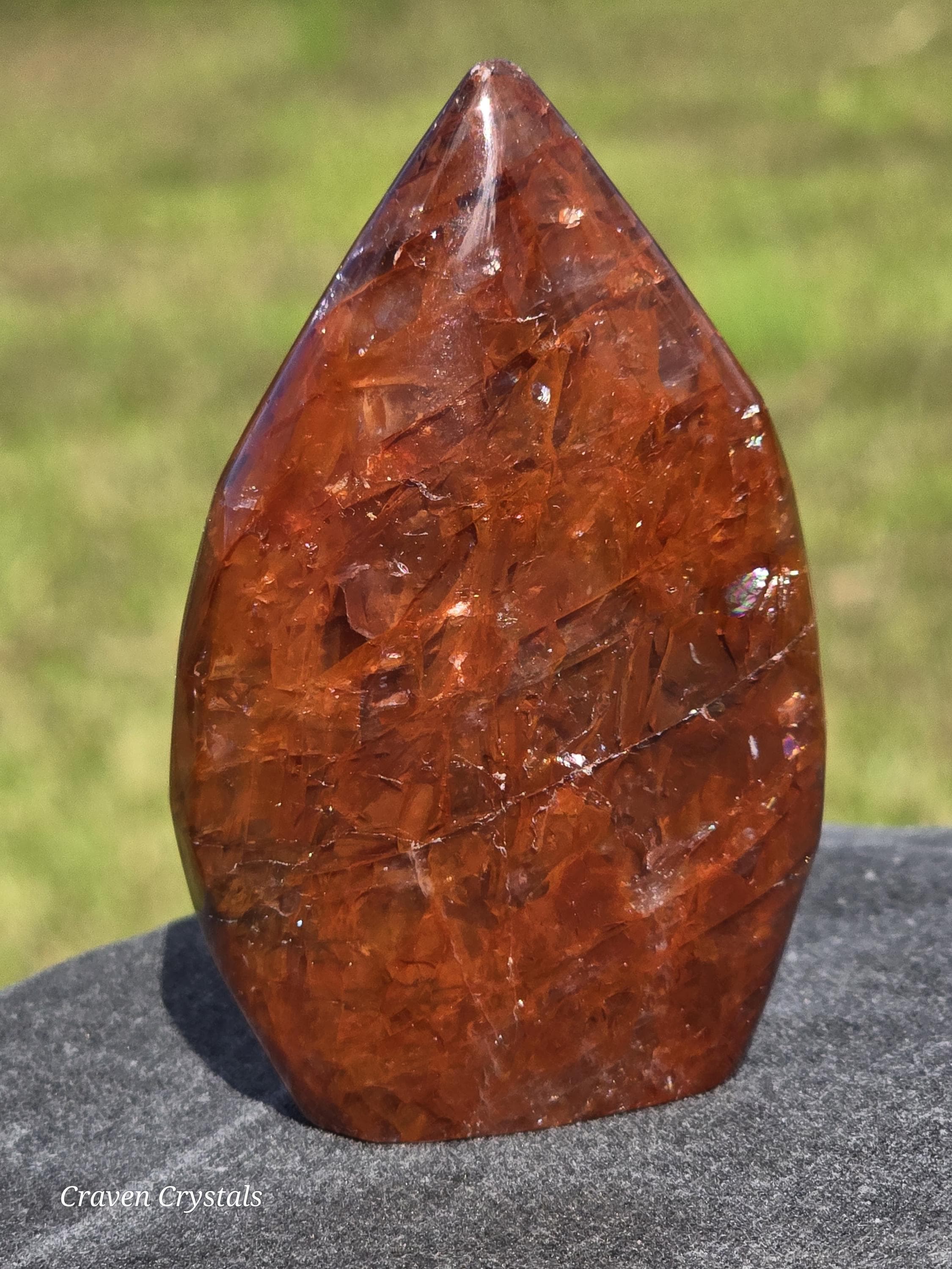 Fire Quartz Crystal Drop, also known as Hematoid Quartz, or Ferruginous Quartz, a captivating and unique variety of quartz that exhibits a combination of clear quartz and hematite.