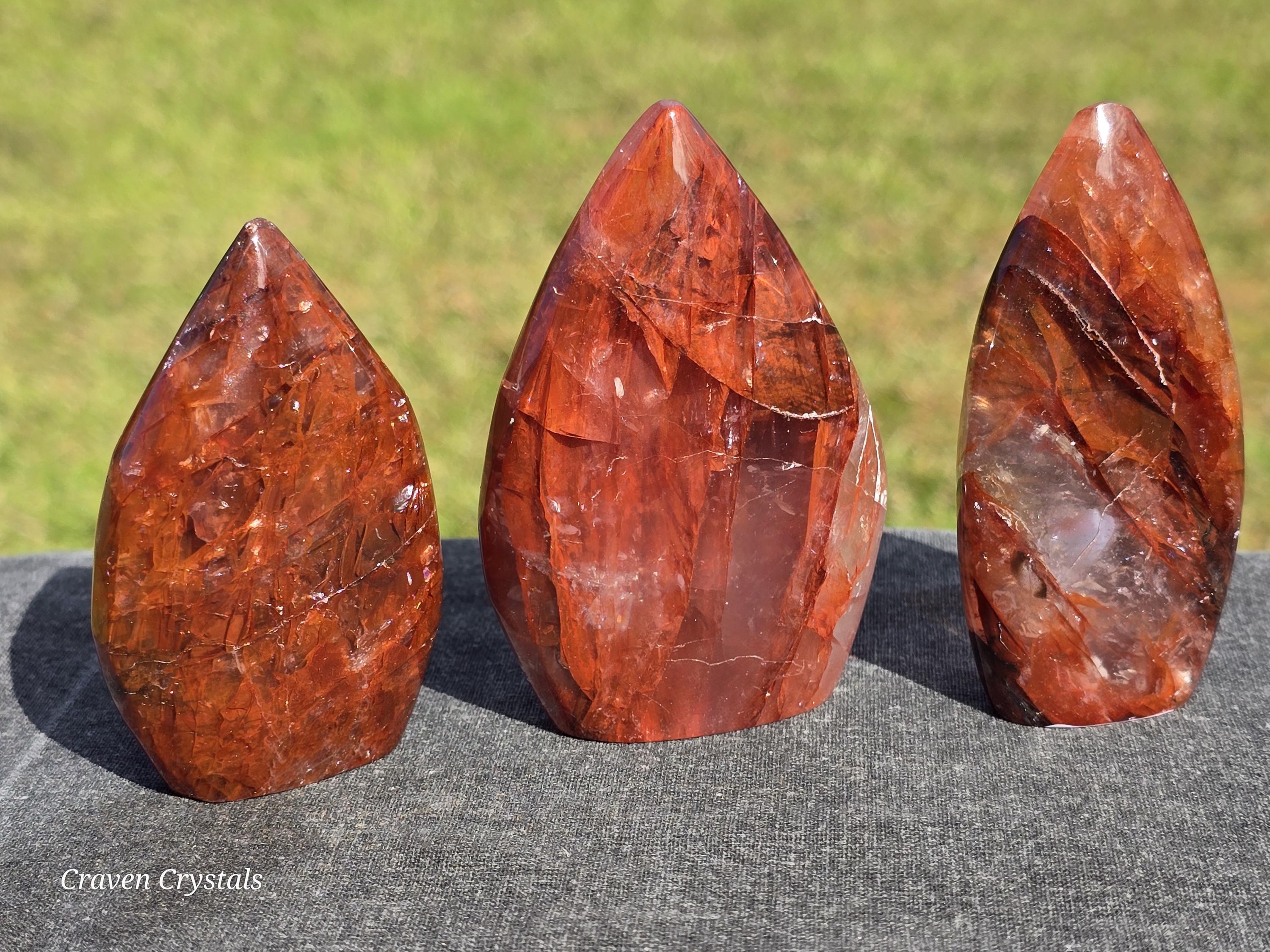 Quartz, being an amplifier of energy, is believed to enhance the intentions set in combination with hematite's focus and grounding qualities. Fire quartz may be used to increase energy levels, vitality, and motivation.