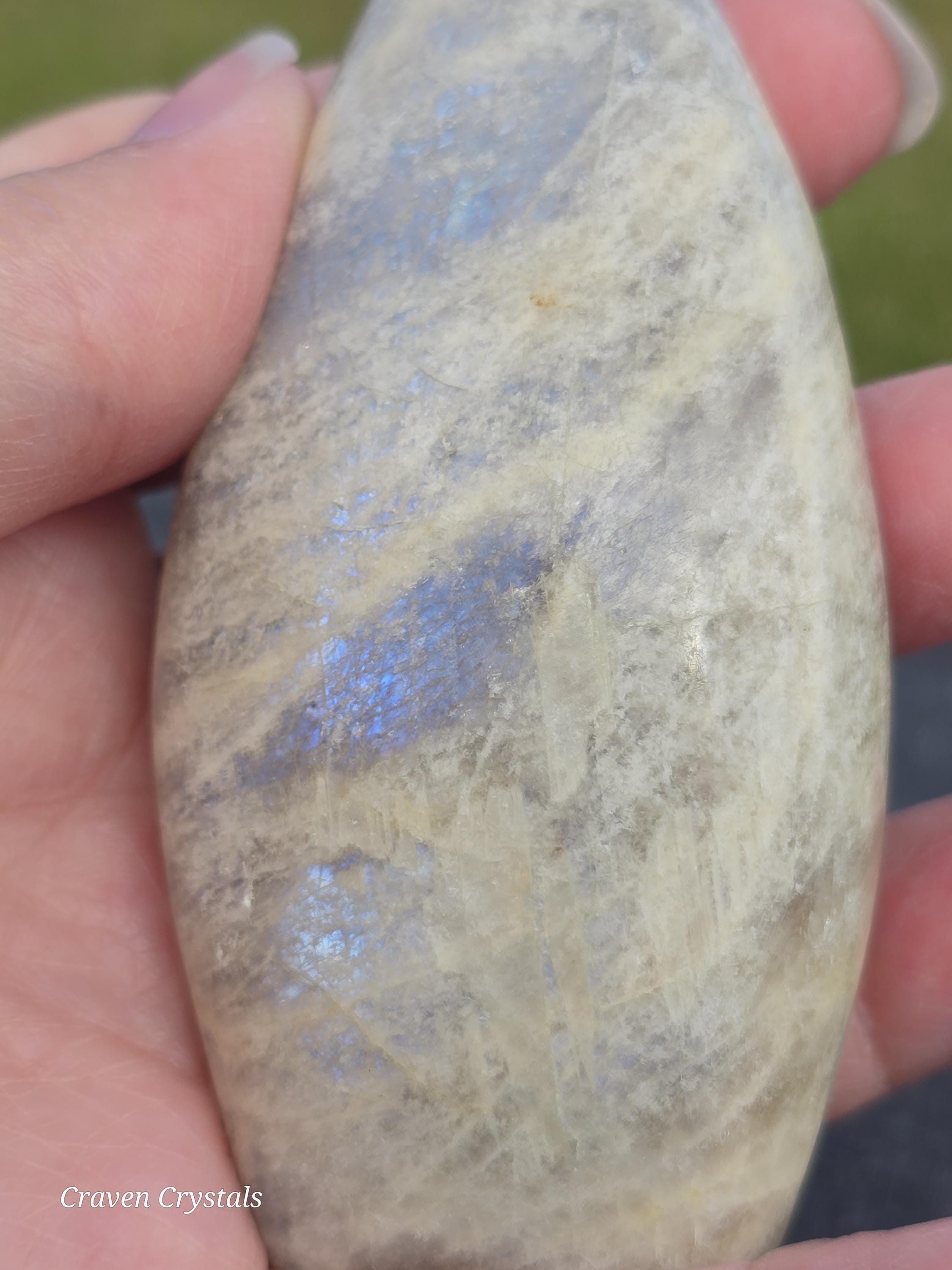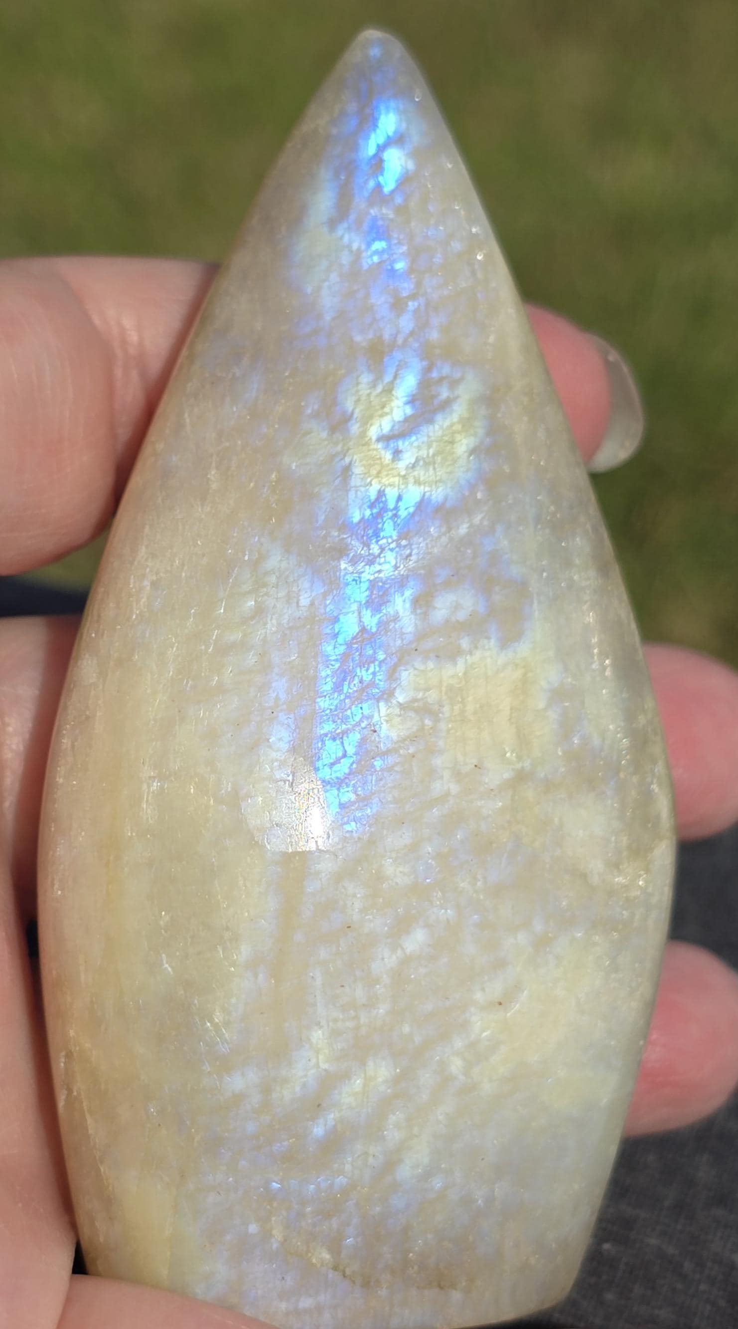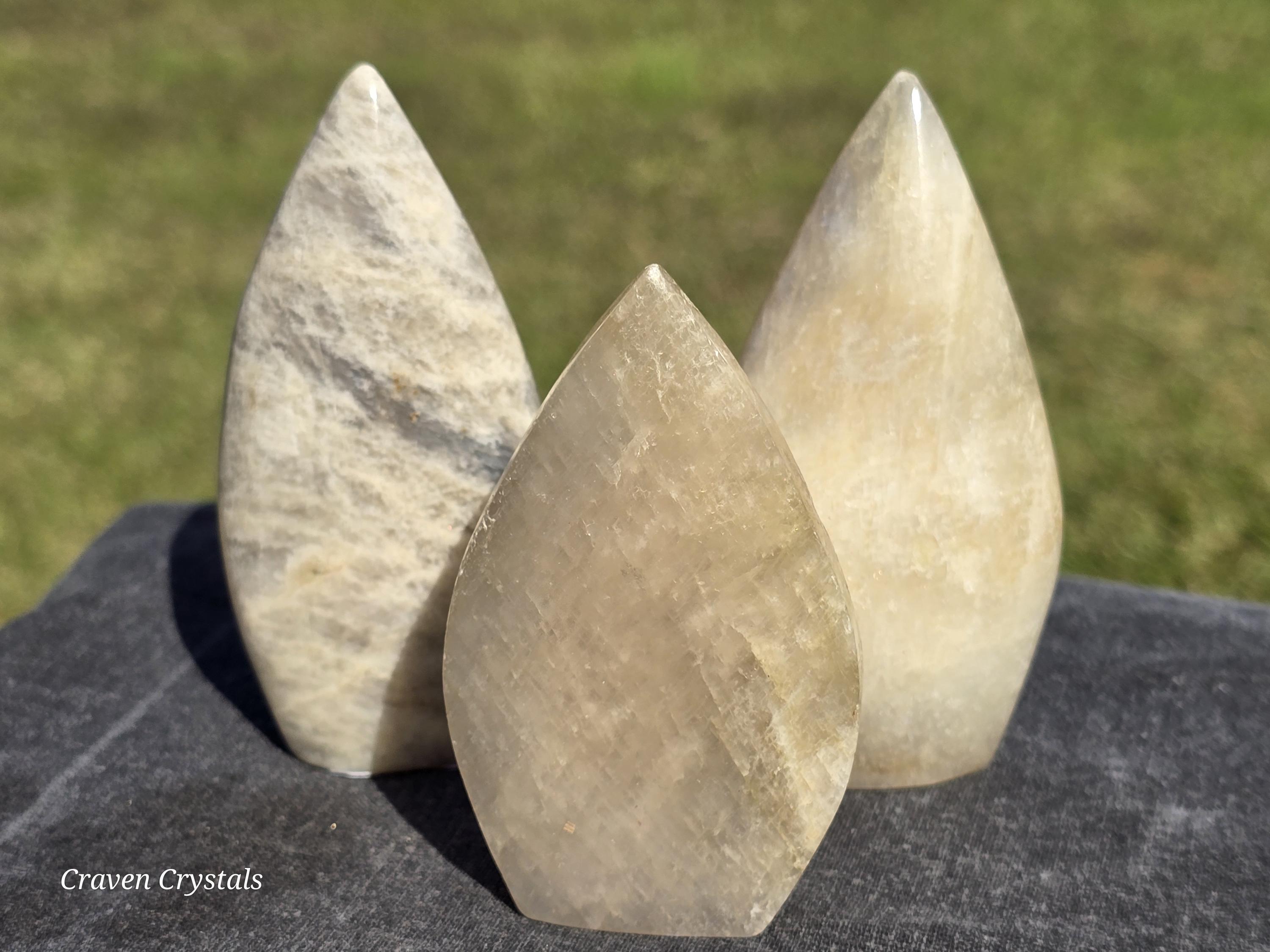 Moonstone is often linked to feminine energy and the divine feminine. It is associated with qualities such as intuition, emotional balance, and receptivity. Some people use moonstone for emotional healing and stress relief. It is believed to promote inner peace and harmony, helping to soothe turbulent emotions. Moonstone is believed to be connected to the cycles of the moon and is thought to enhance one's connection to lunar energy.