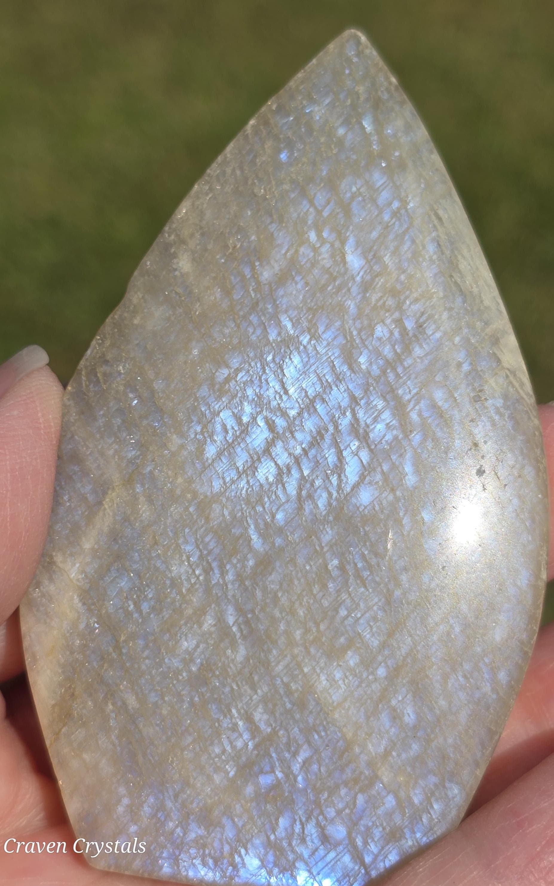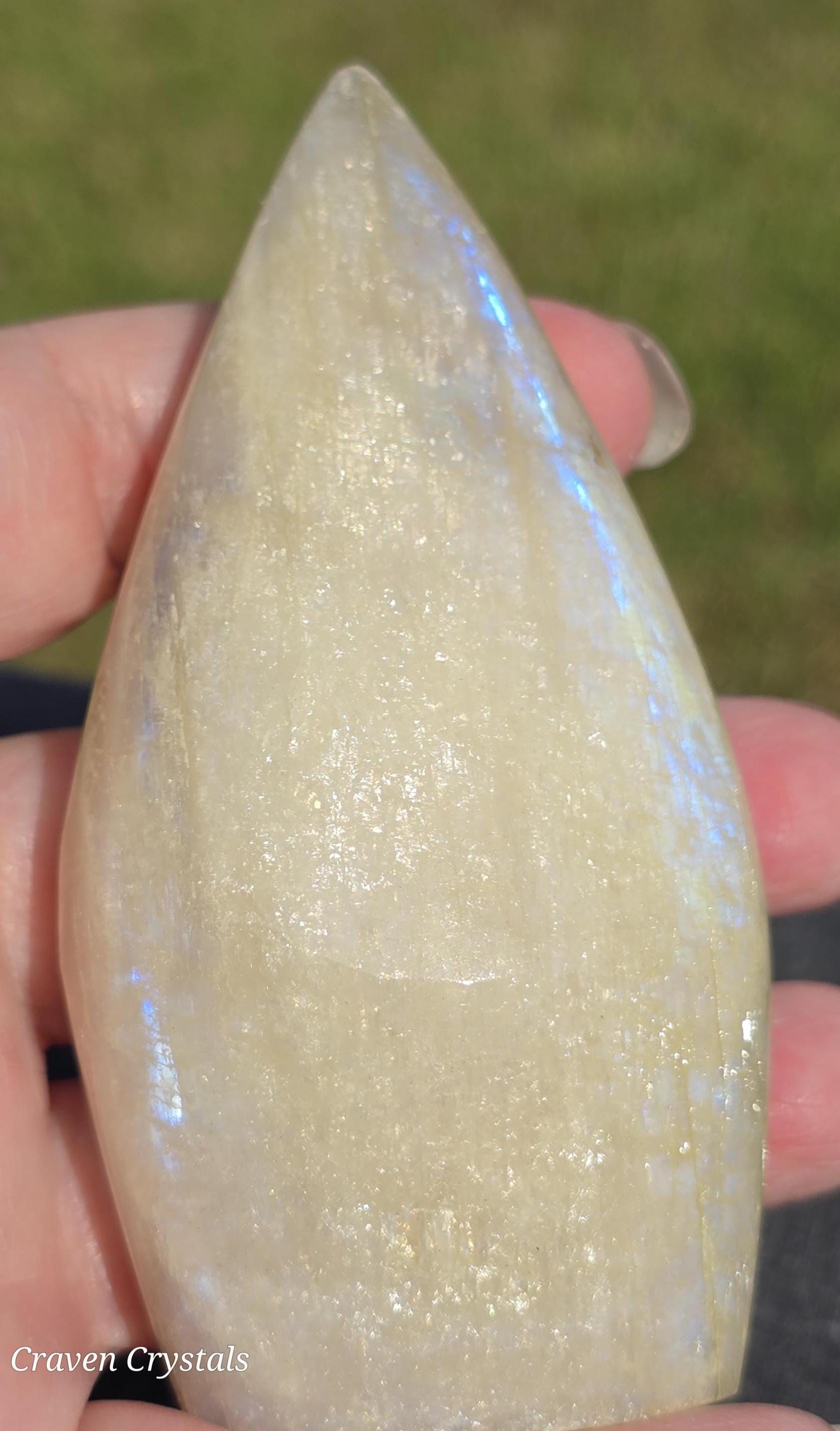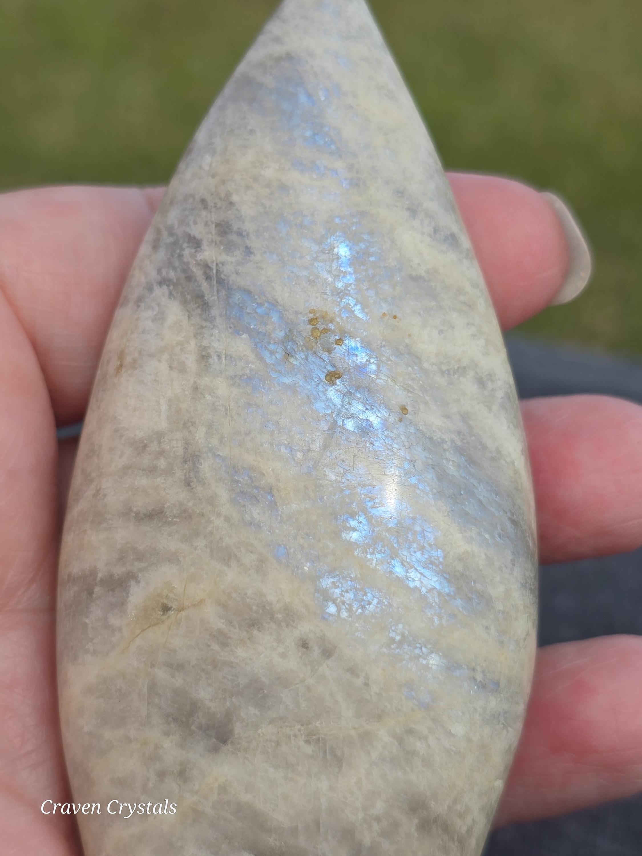 Moonstone is often linked to feminine energy and the divine feminine. It is associated with qualities such as intuition, emotional balance, and receptivity. Some people use moonstone for emotional healing and stress relief. It is believed to promote inner peace and harmony, helping to soothe turbulent emotions. Moonstone is believed to be connected to the cycles of the moon and is thought to enhance one's connection to lunar energy.