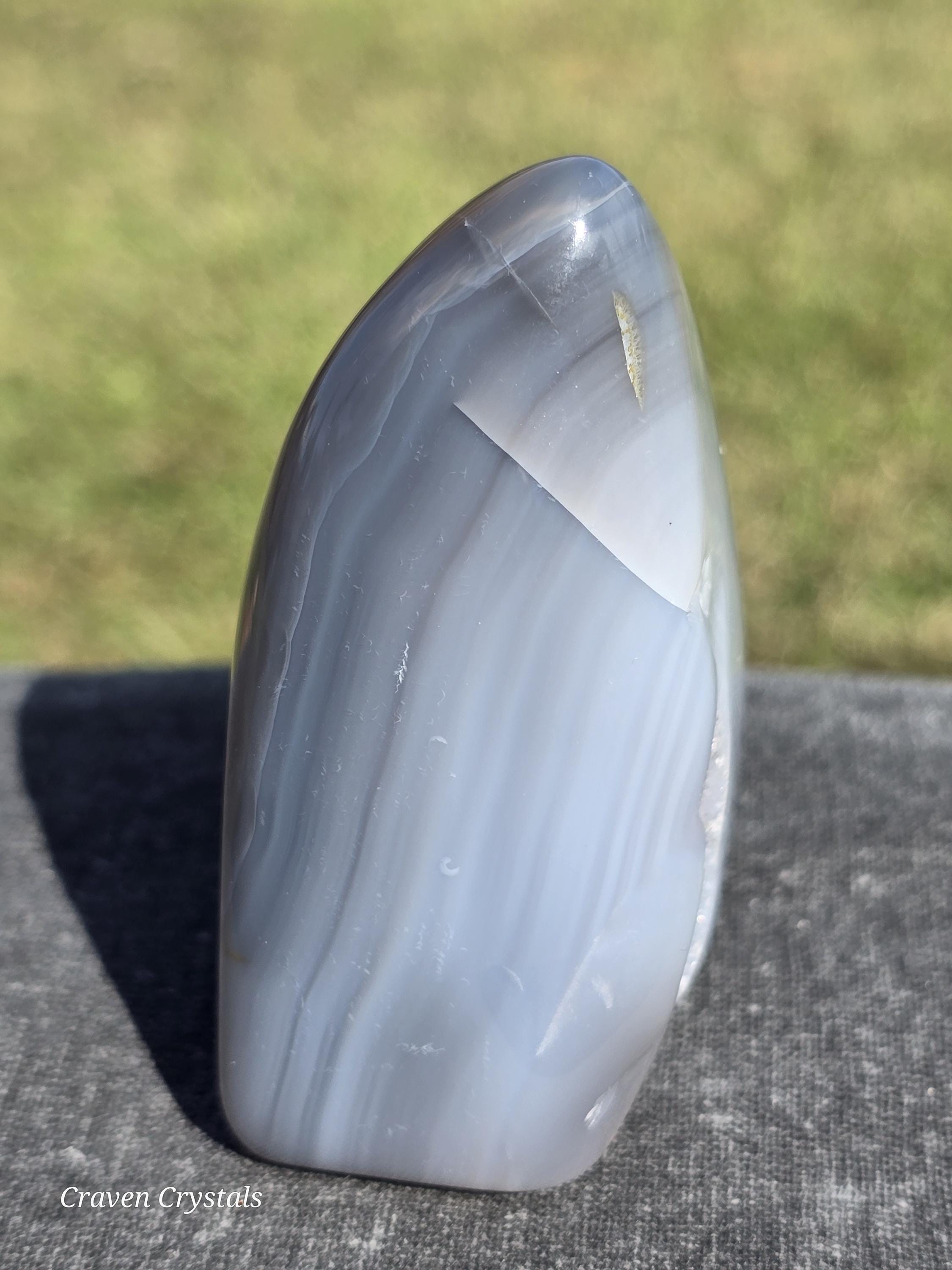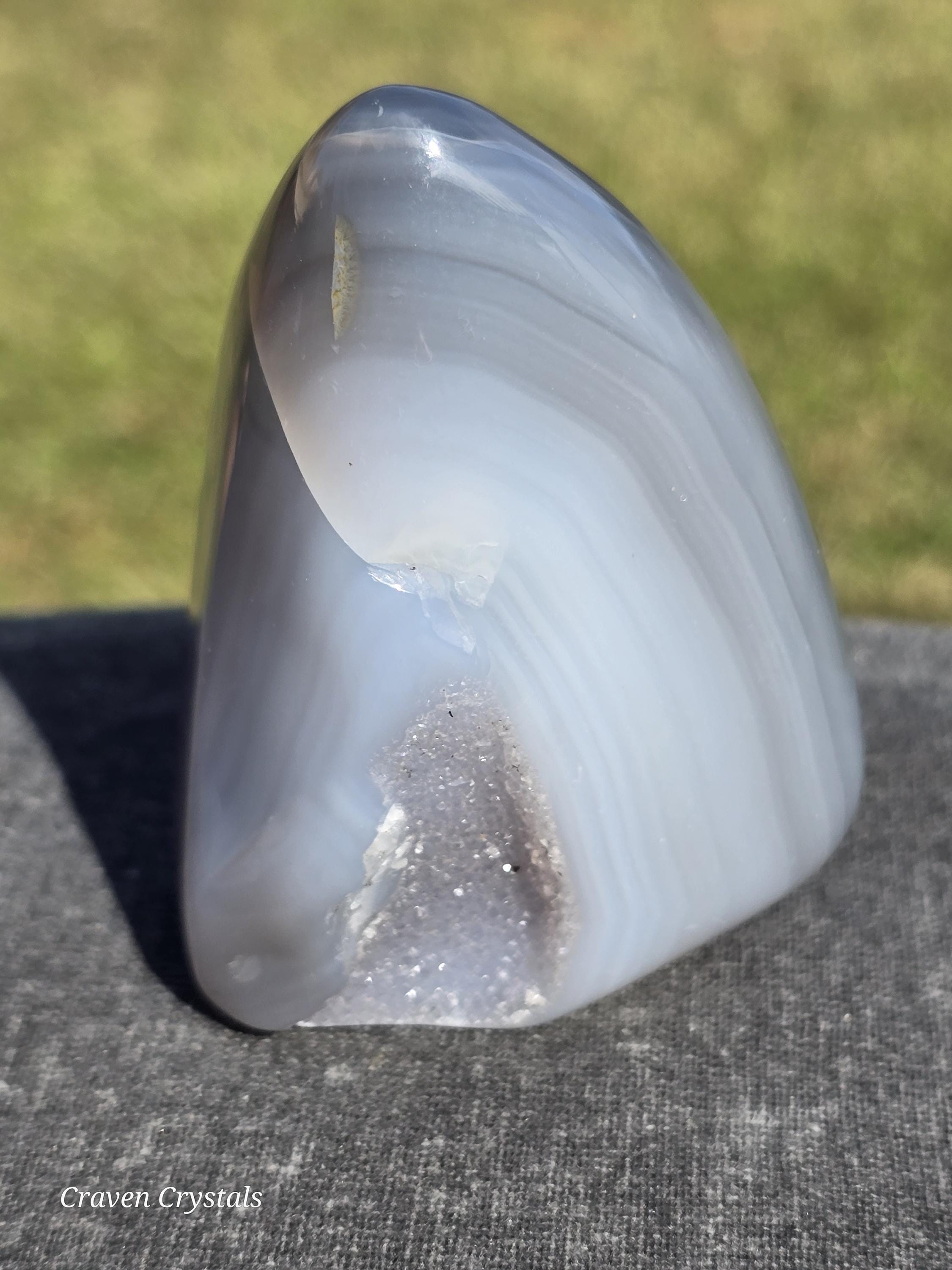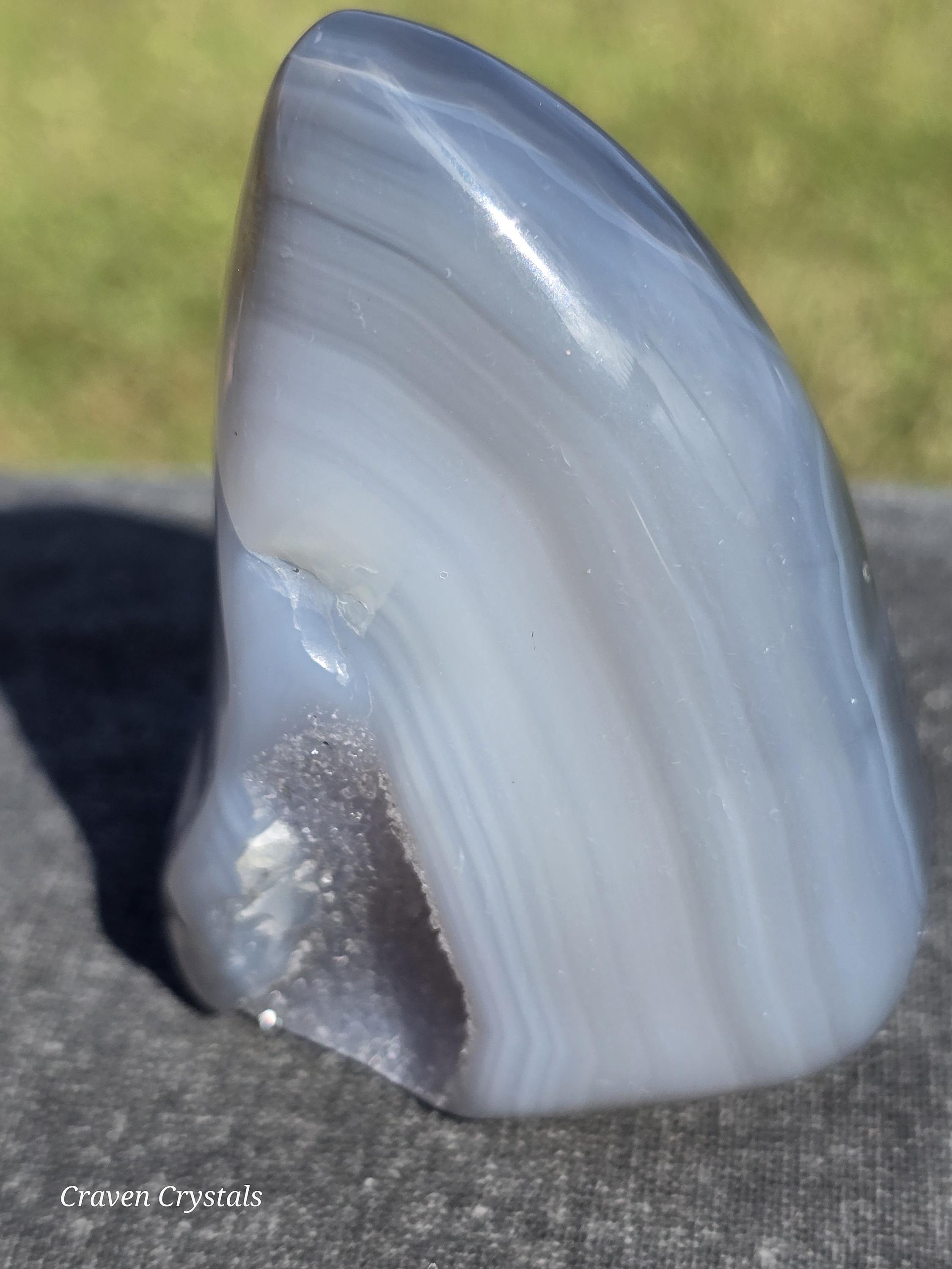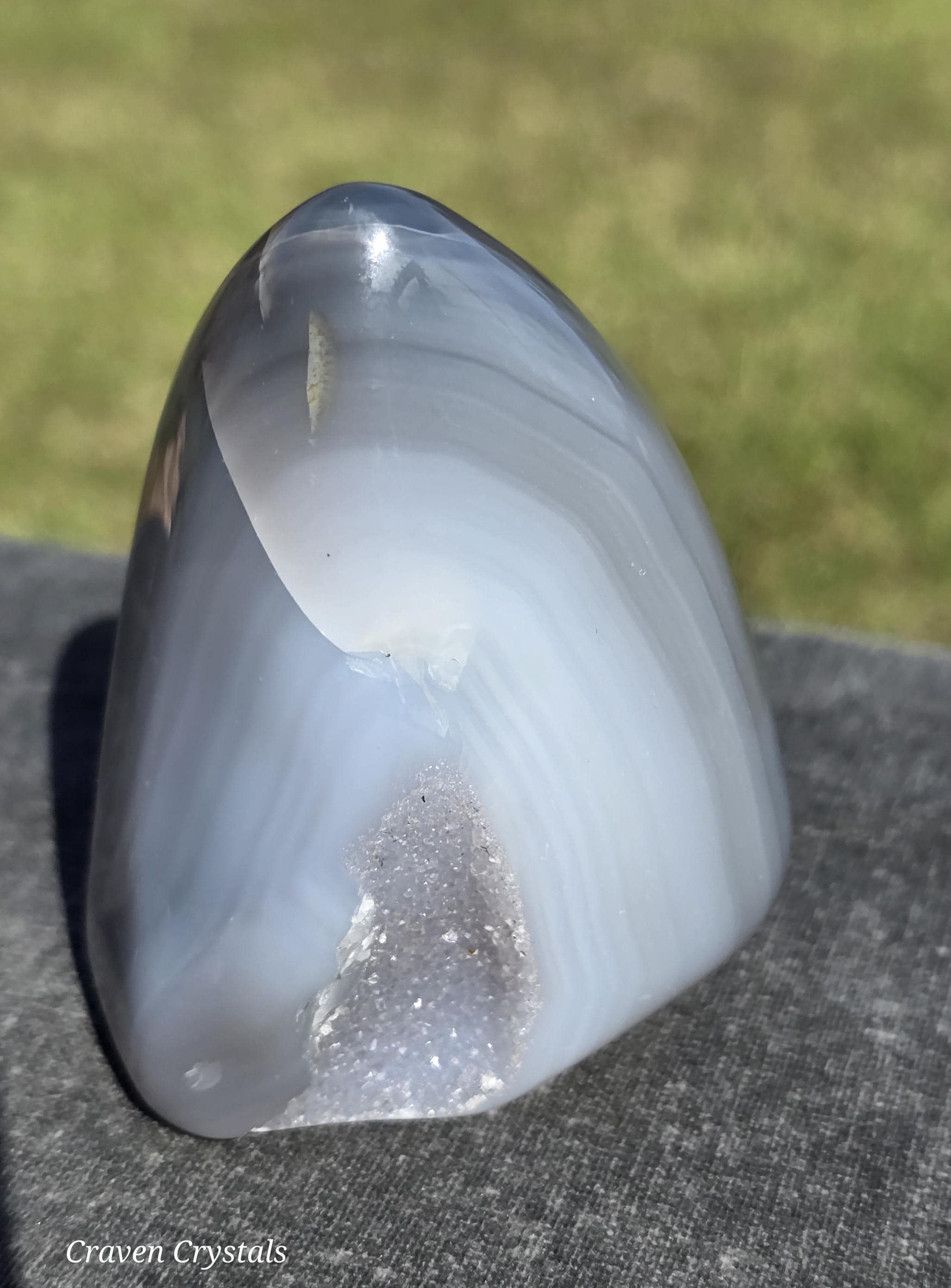 Orca Agate Crystal Freeform Drop with beautiful sparkly drusy and signature banding in shades of white to deep gray