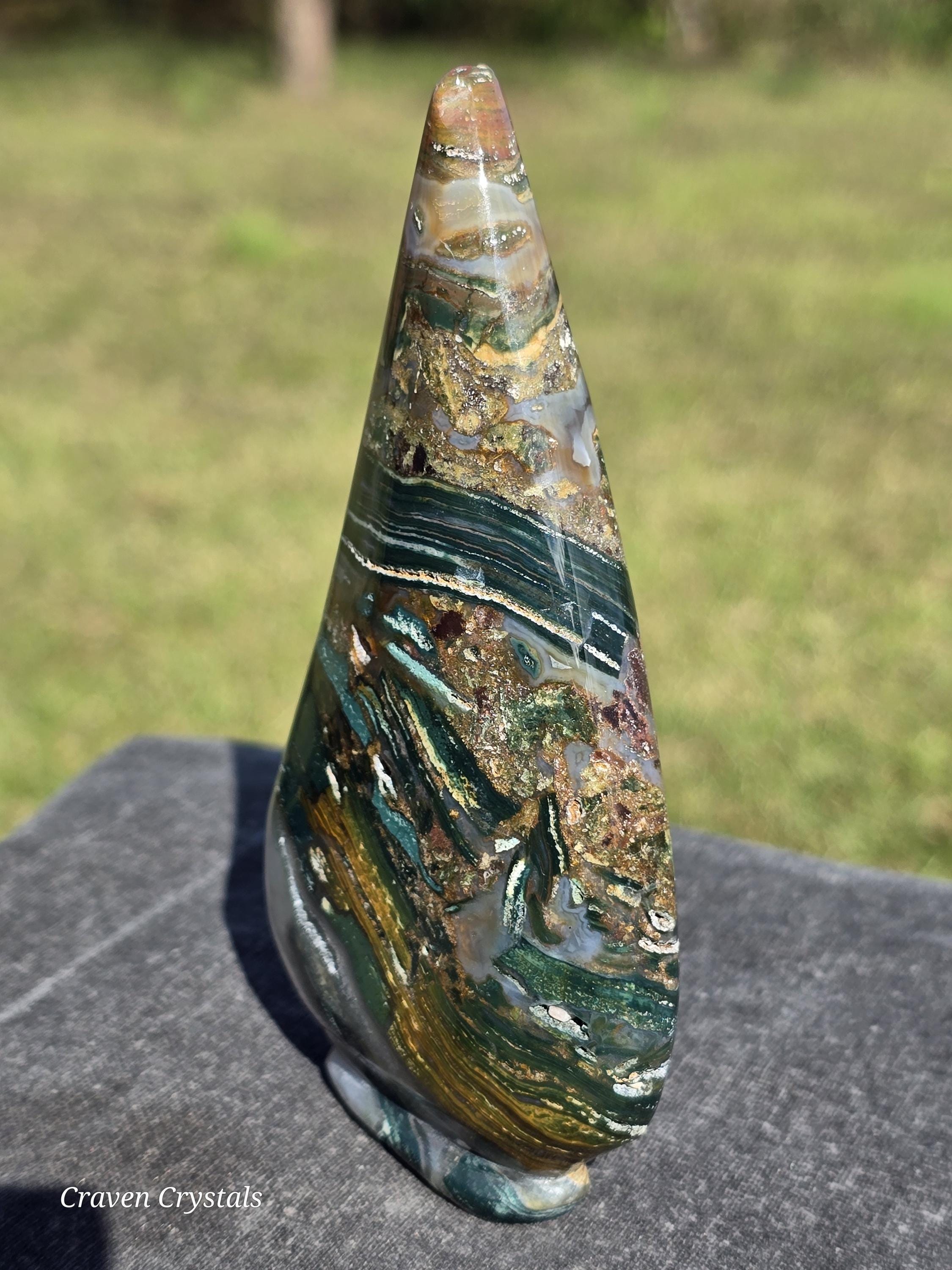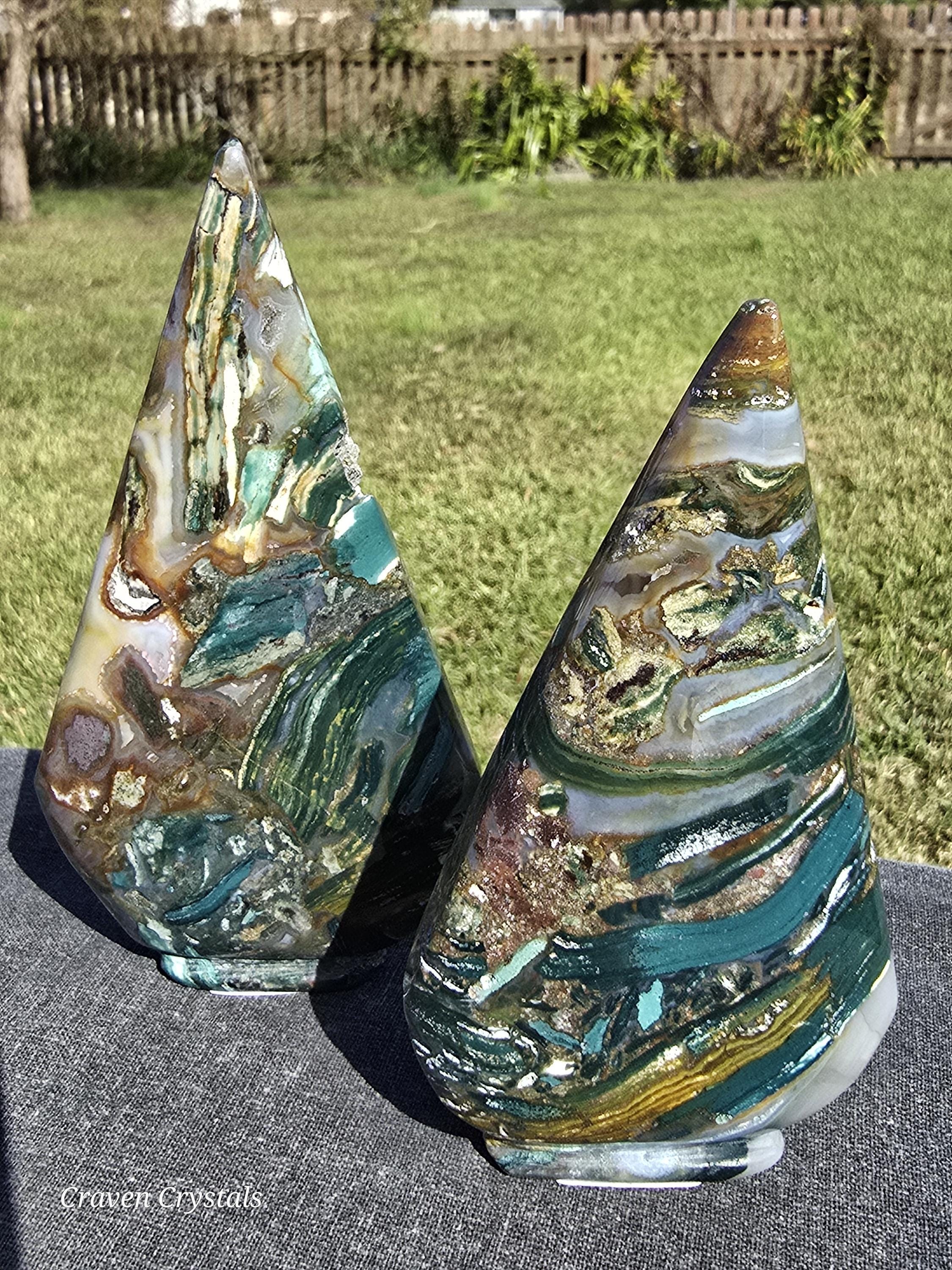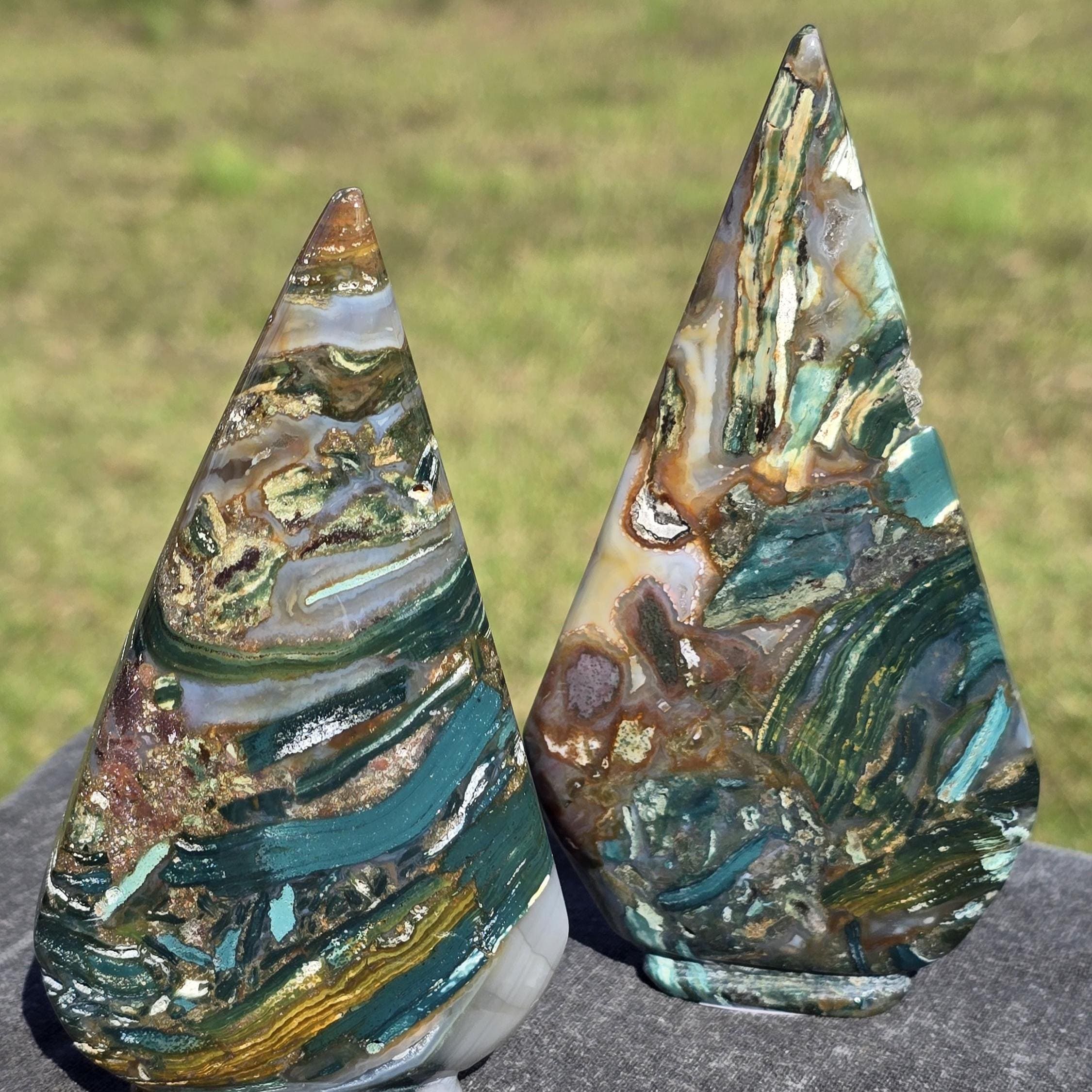 Fancy Jasper Crystal Towers, often called the “Stone of Tranquility”, a richly colored variety of the jasper family, celebrated for its soothing blend of earthy and jewel-toned hues.