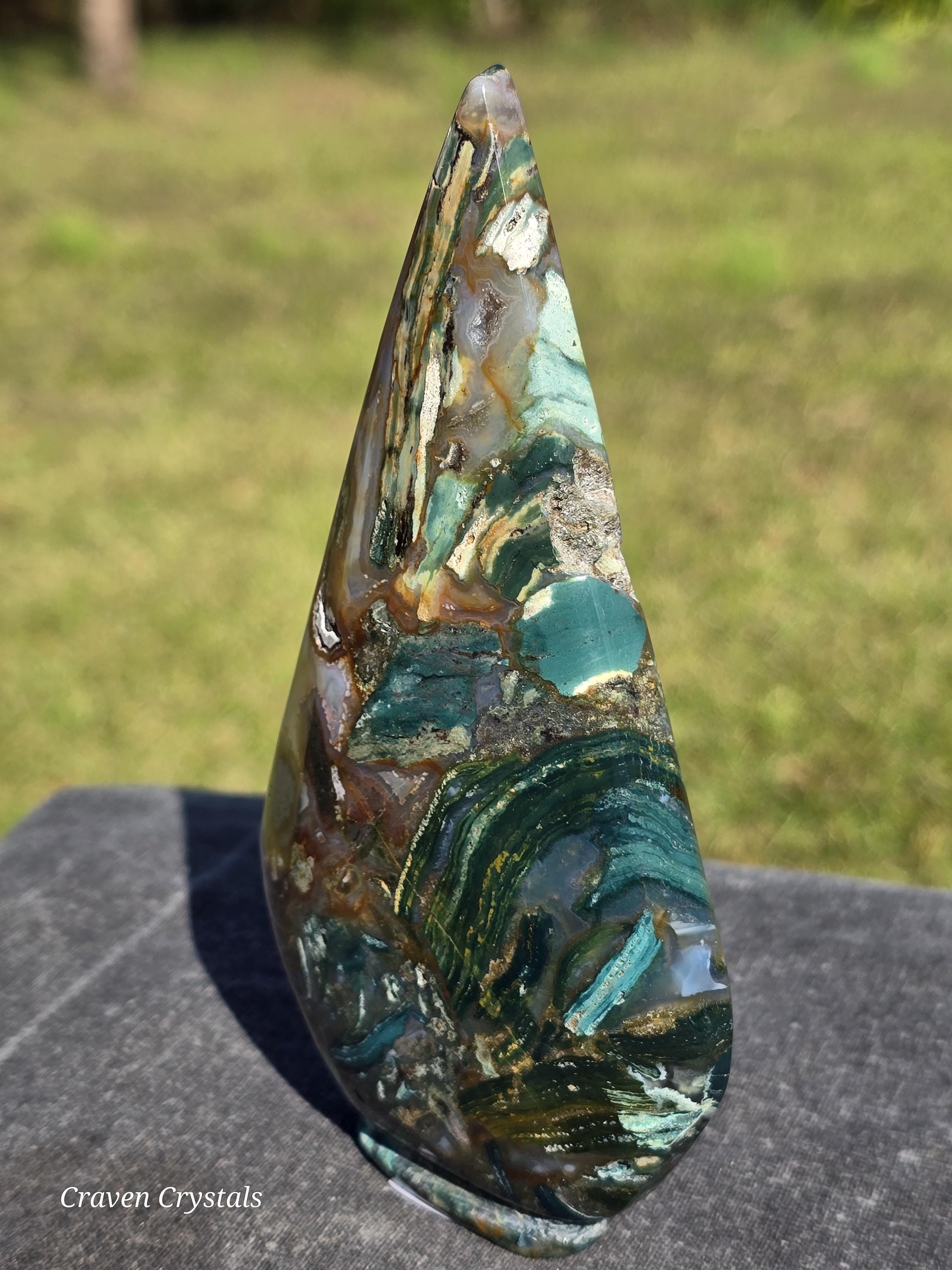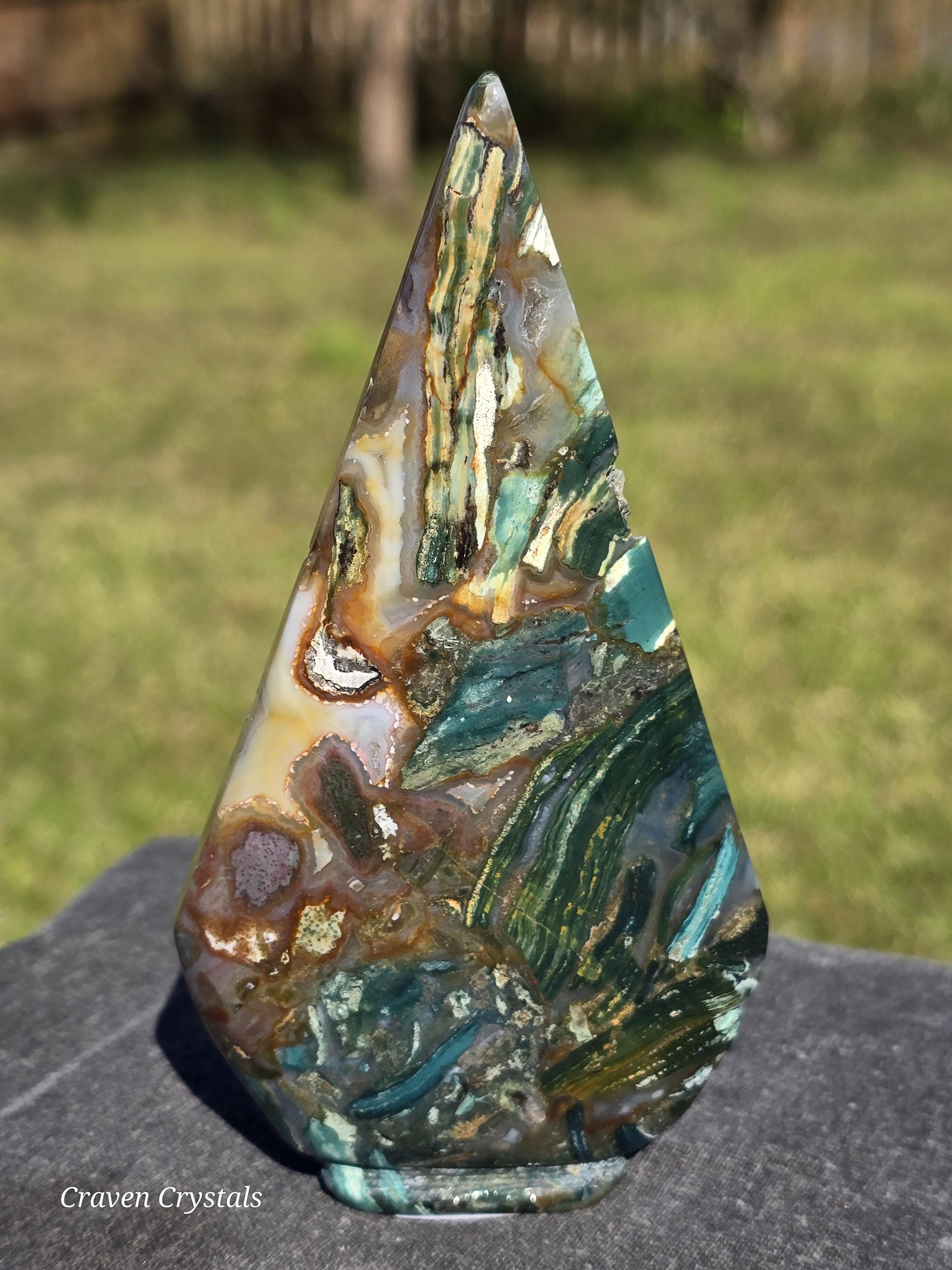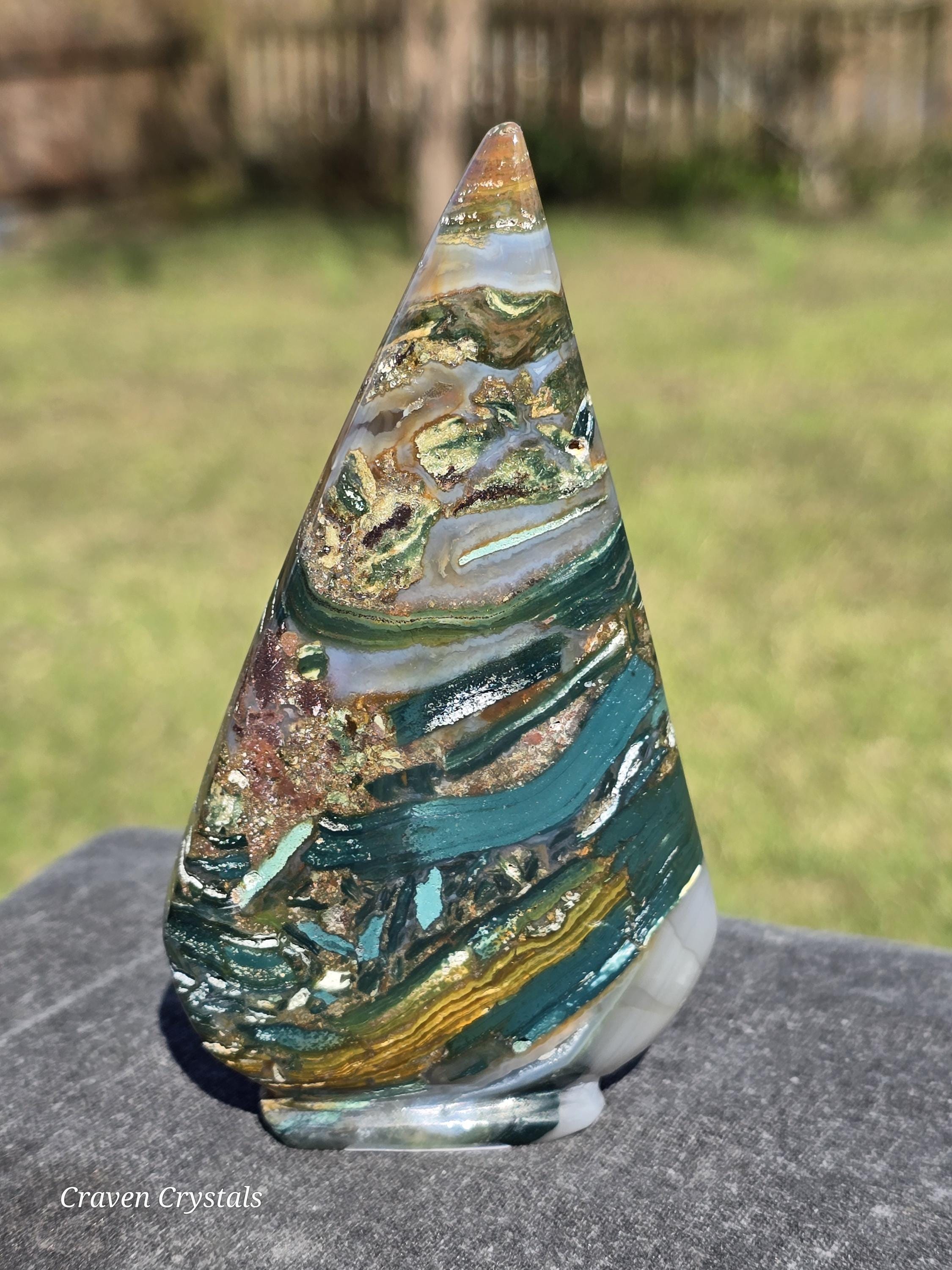 Fancy Jasper Crystal Towers, often called the “Stone of Tranquility”, a richly colored variety of the jasper family, celebrated for its soothing blend of earthy and jewel-toned hues.