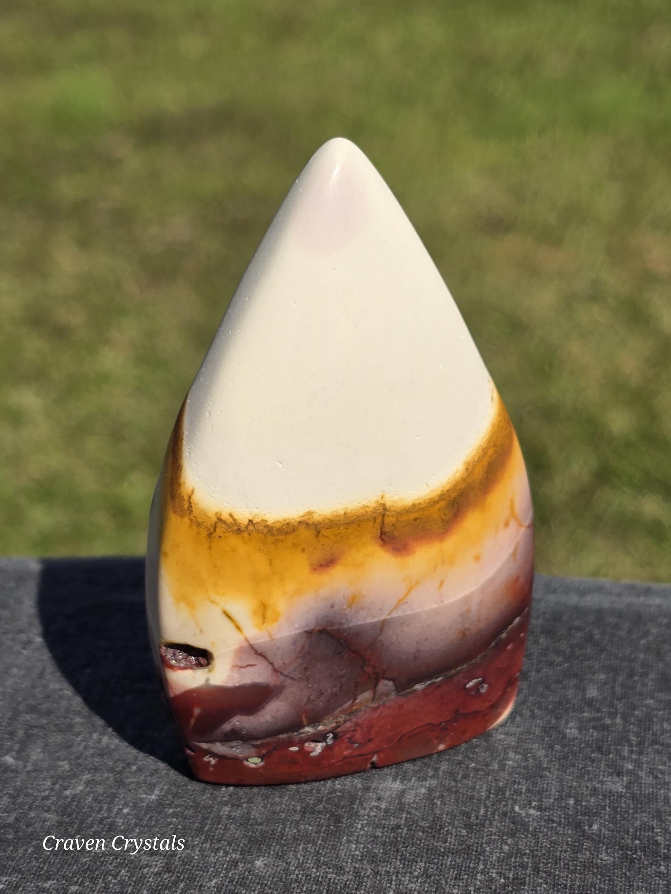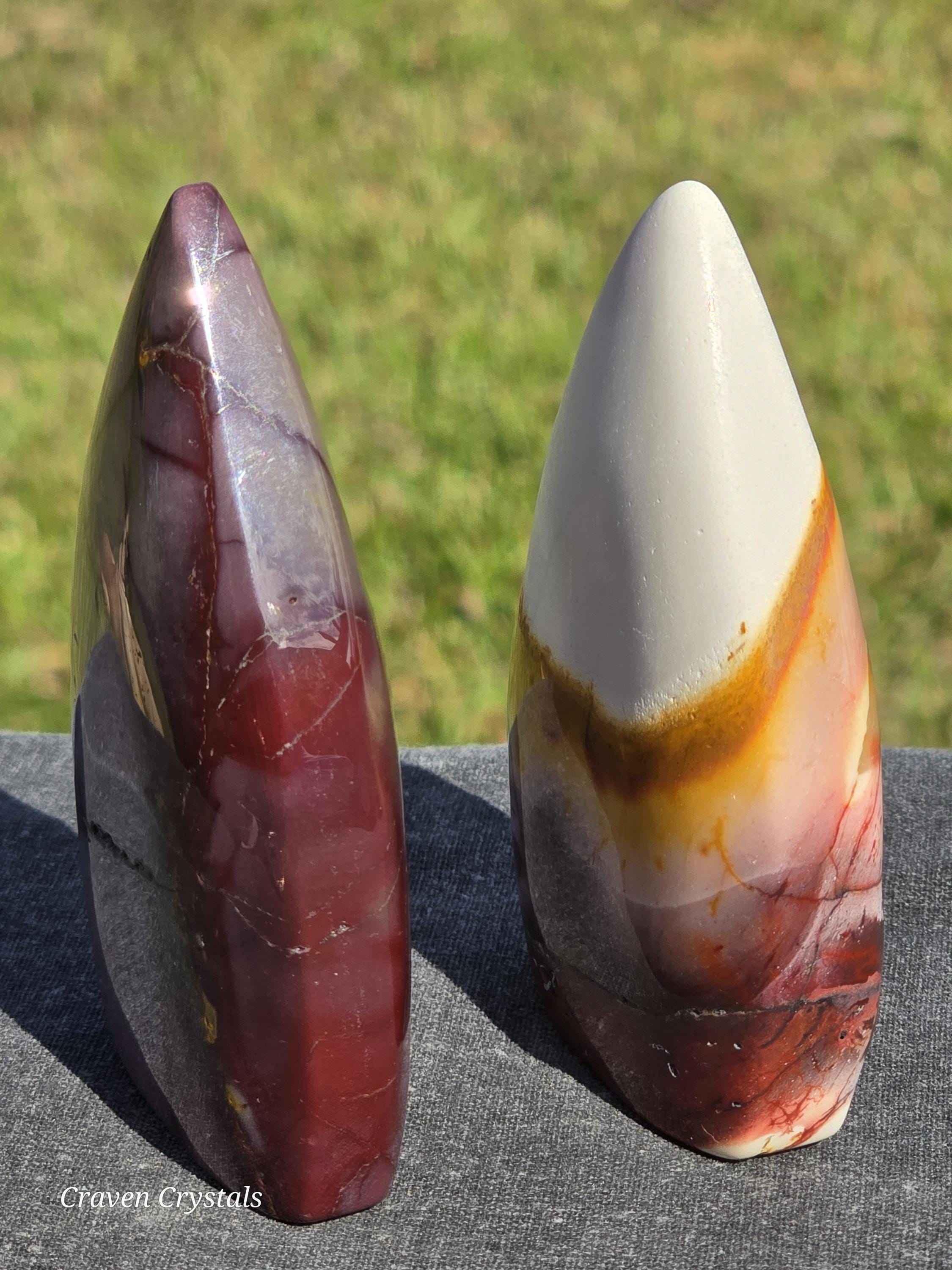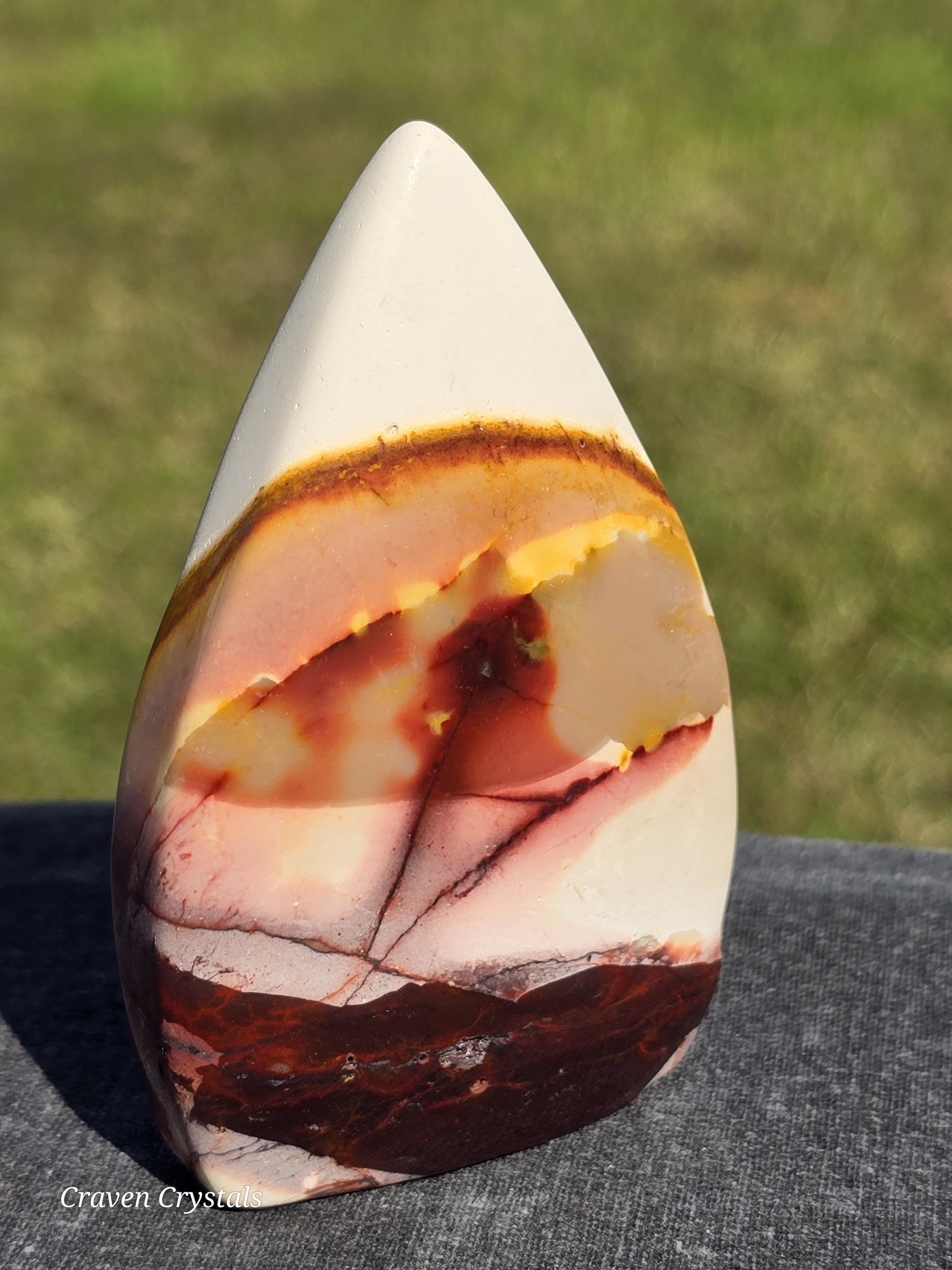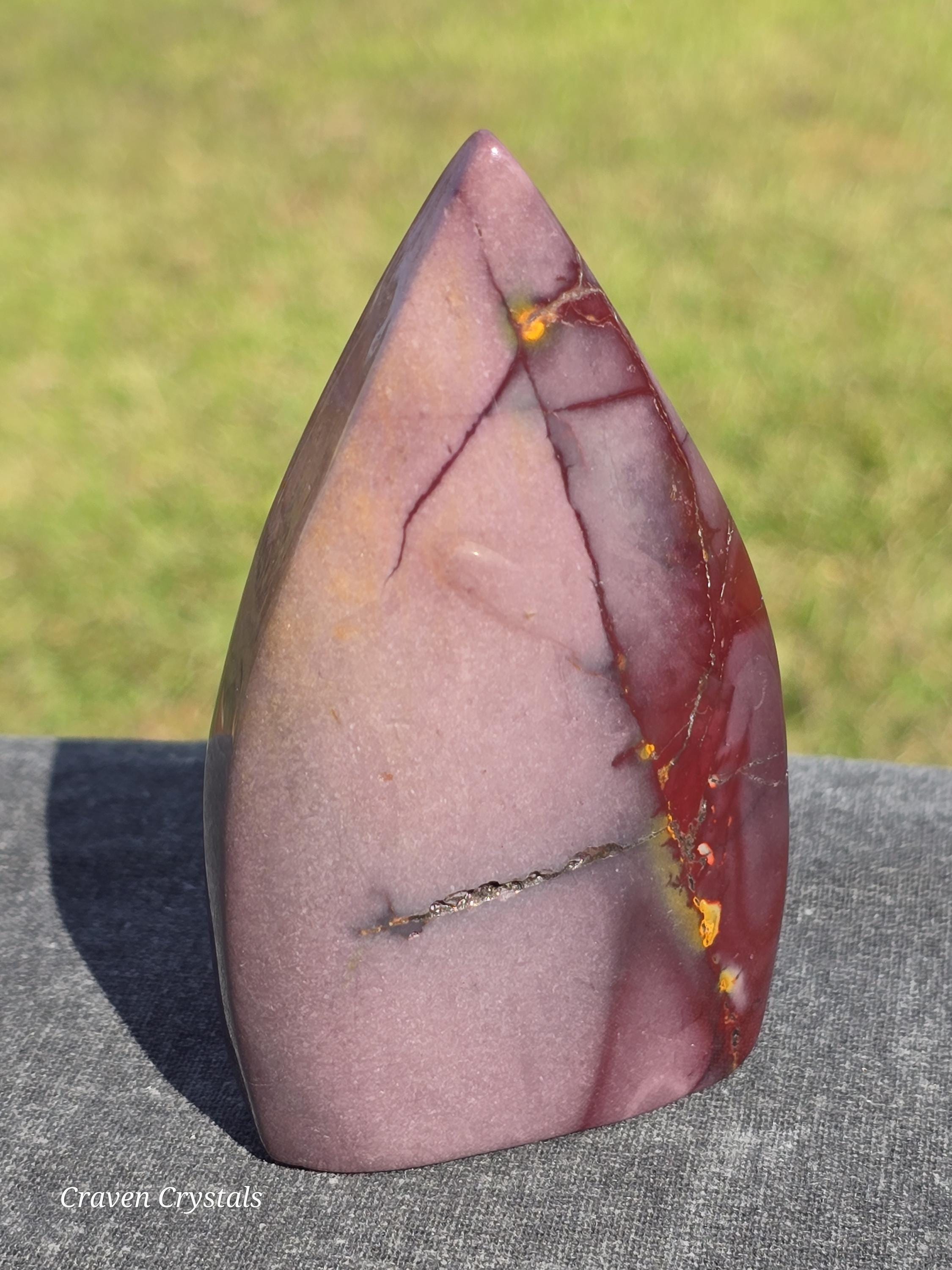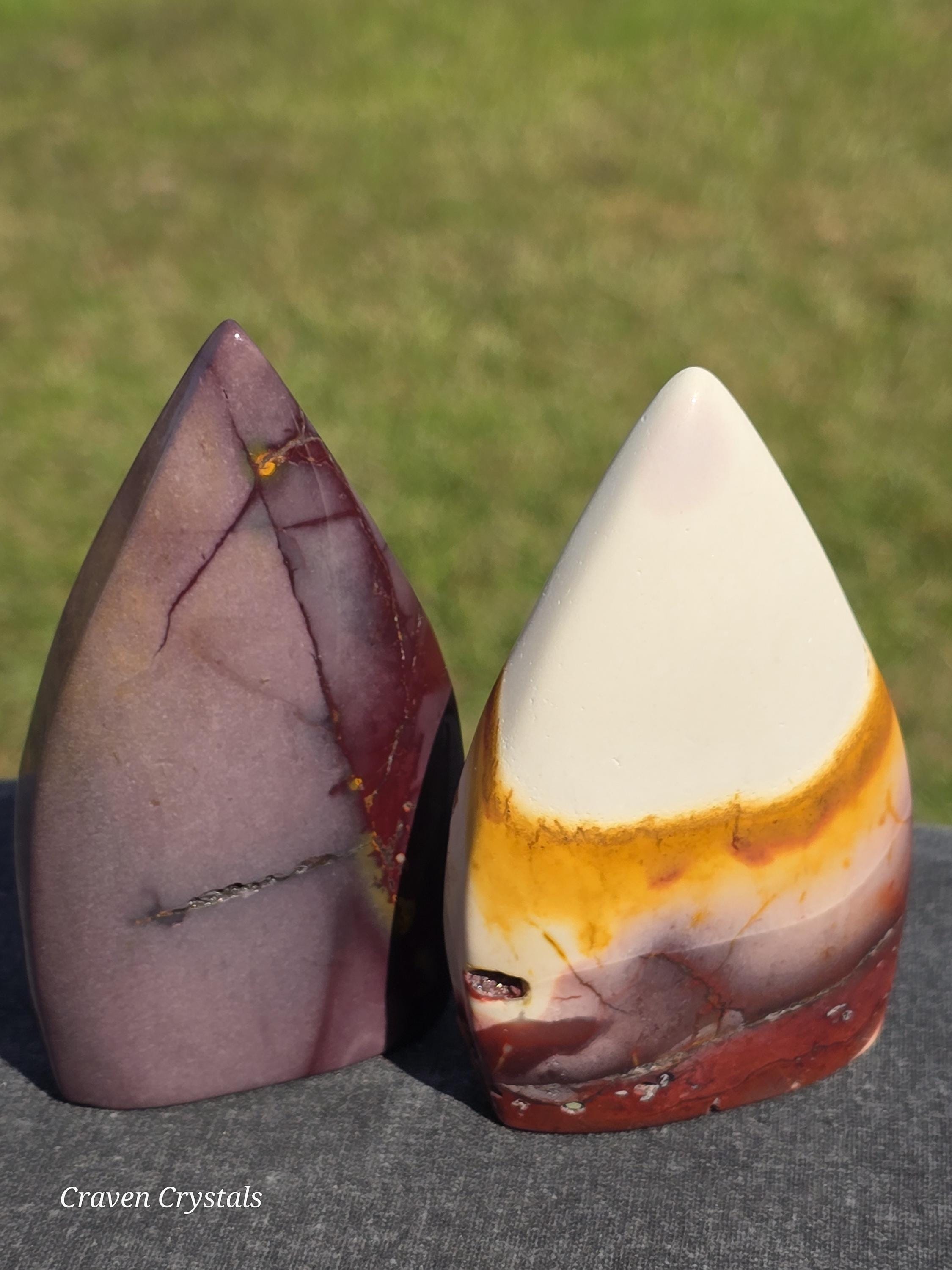 Mookaite is associated with a range of properties, including grounding, vitality, strength, and emotional balance. It is a grounding and stabilizing stone that can help you feel more rooted and secure in your physical existence. It's often believed to connect with the lower chakras, promoting stability and a sense of rootedness.