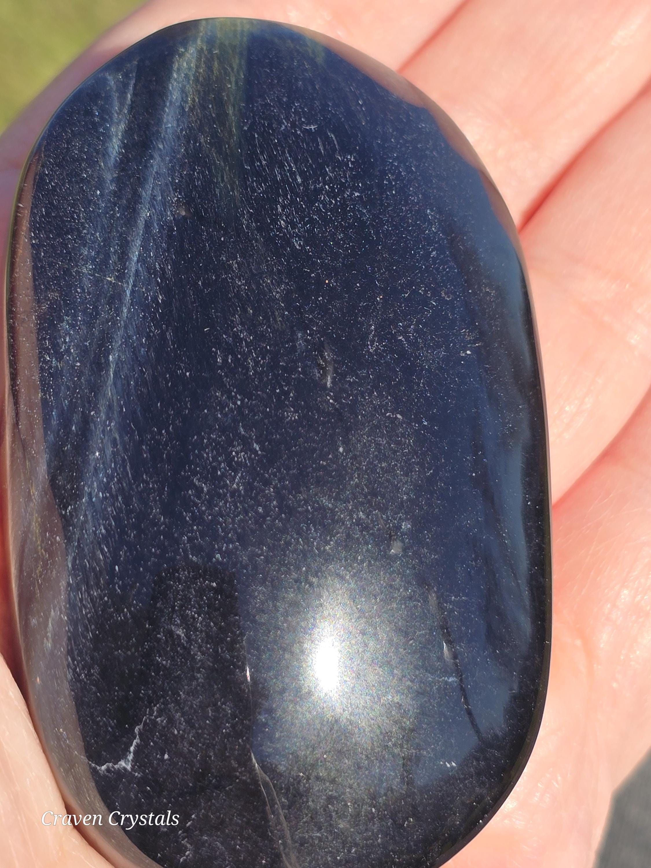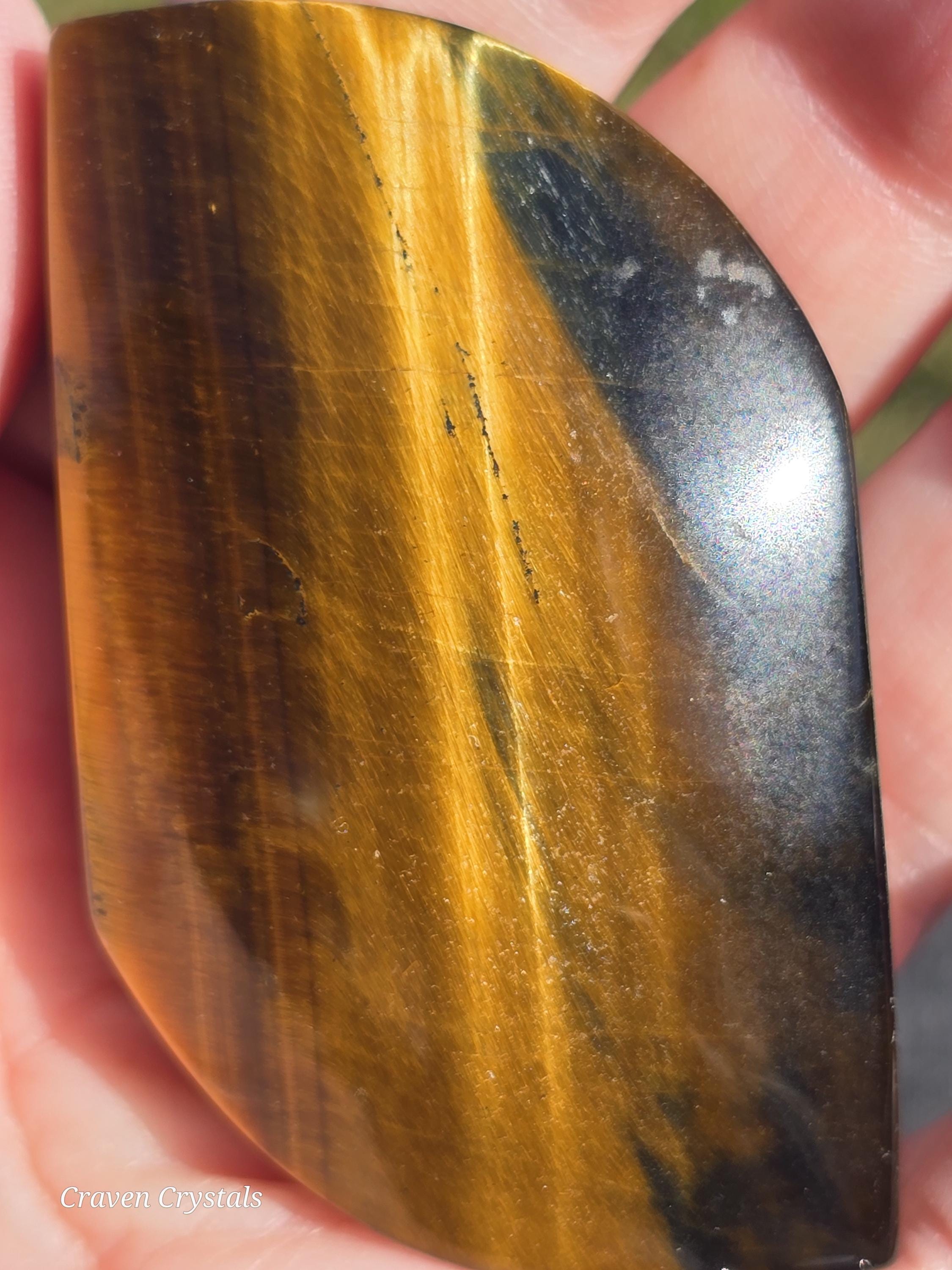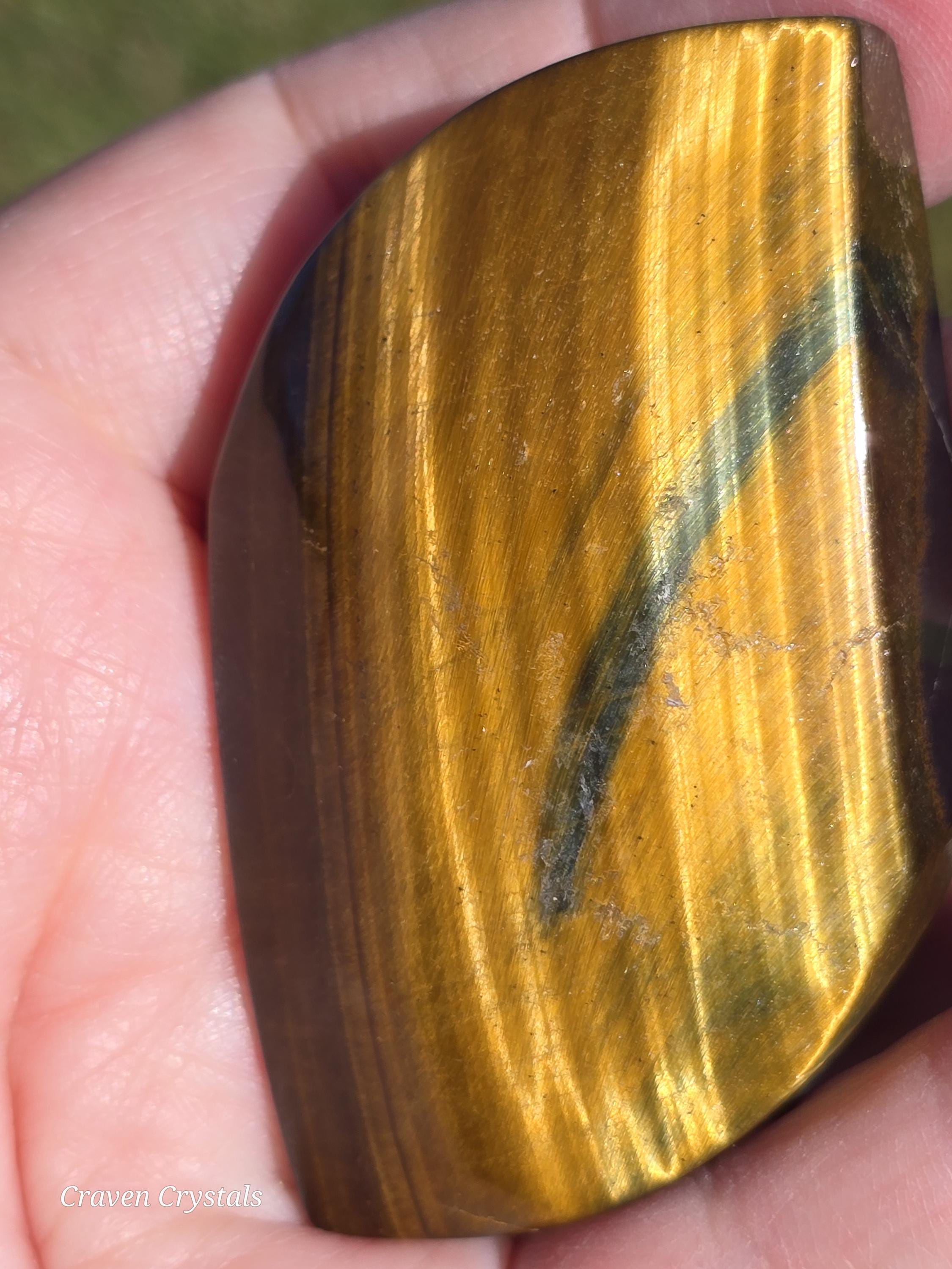 Tigers Eye and Blue Tigers Eye, also known as Falcons Eye, Crystal Palm Stones