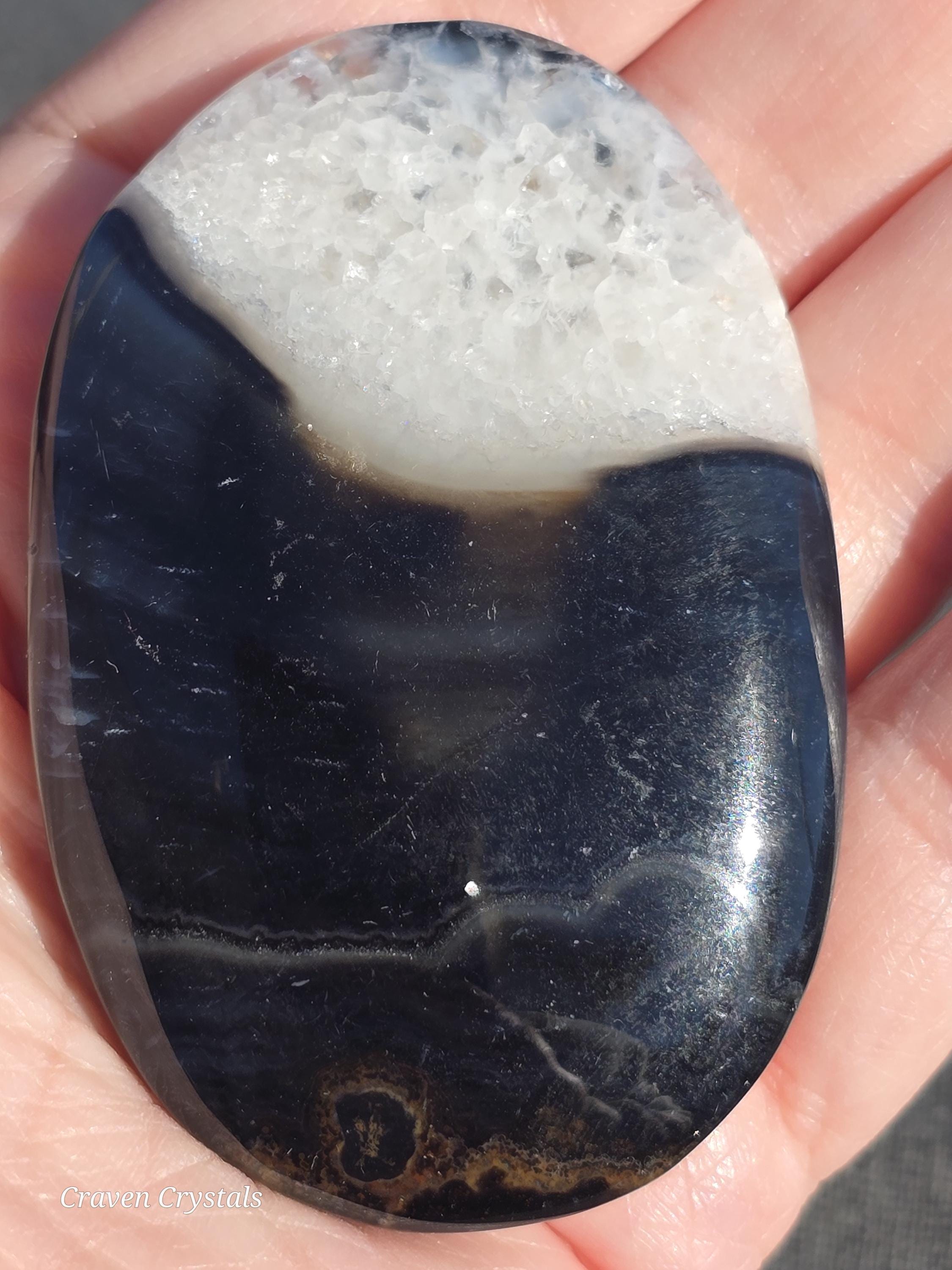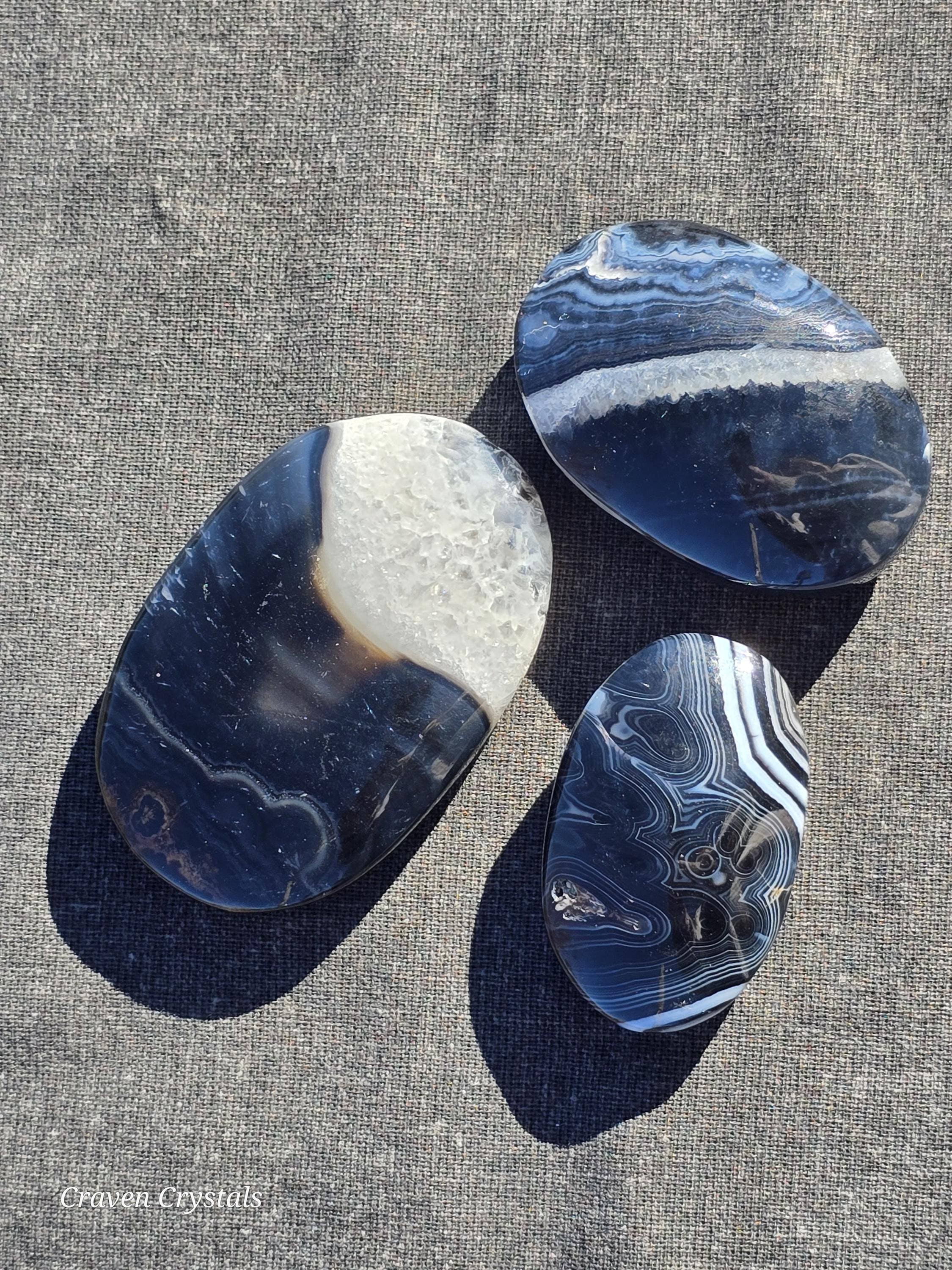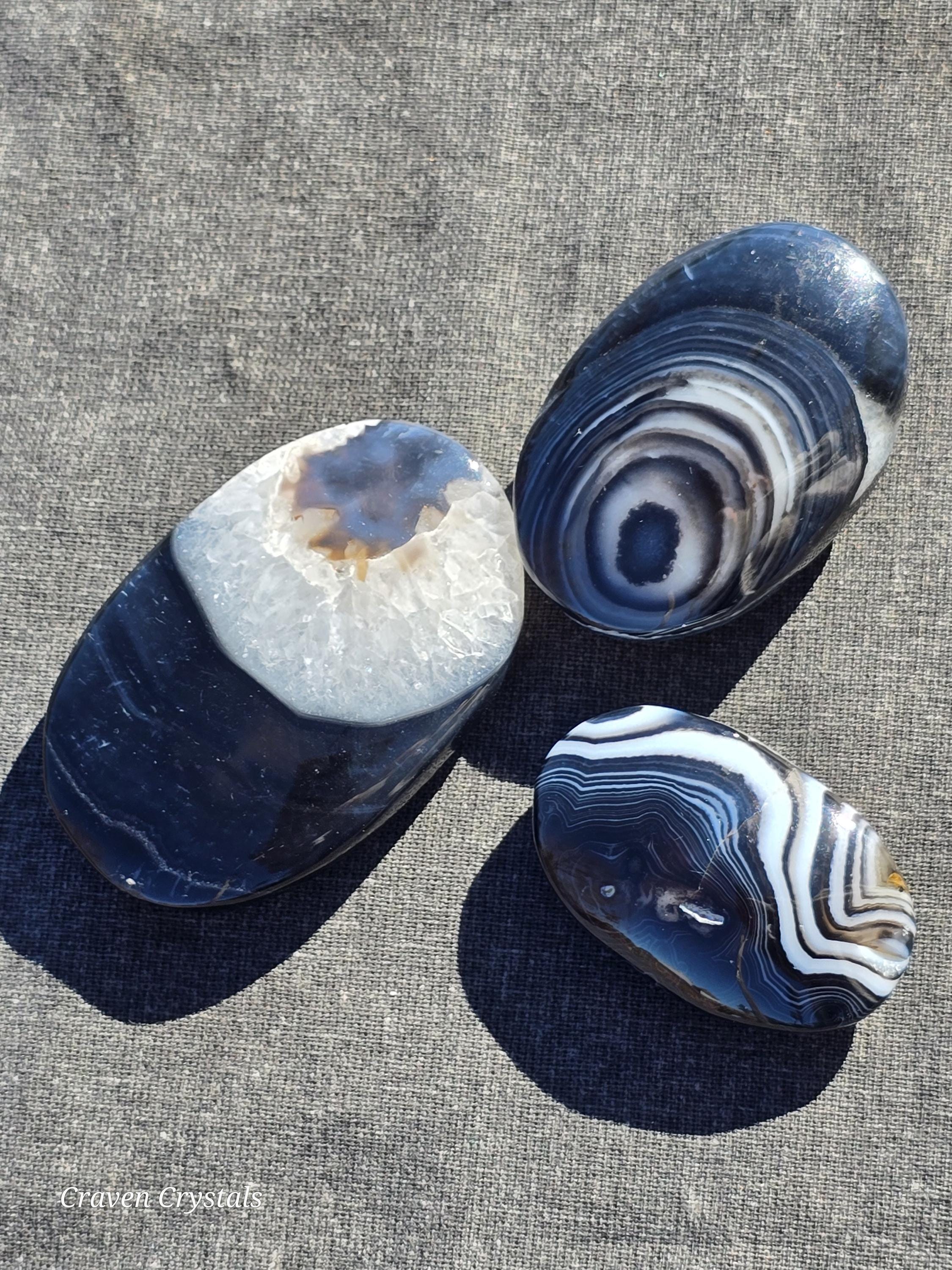Black Agate Crystal Palm Stones