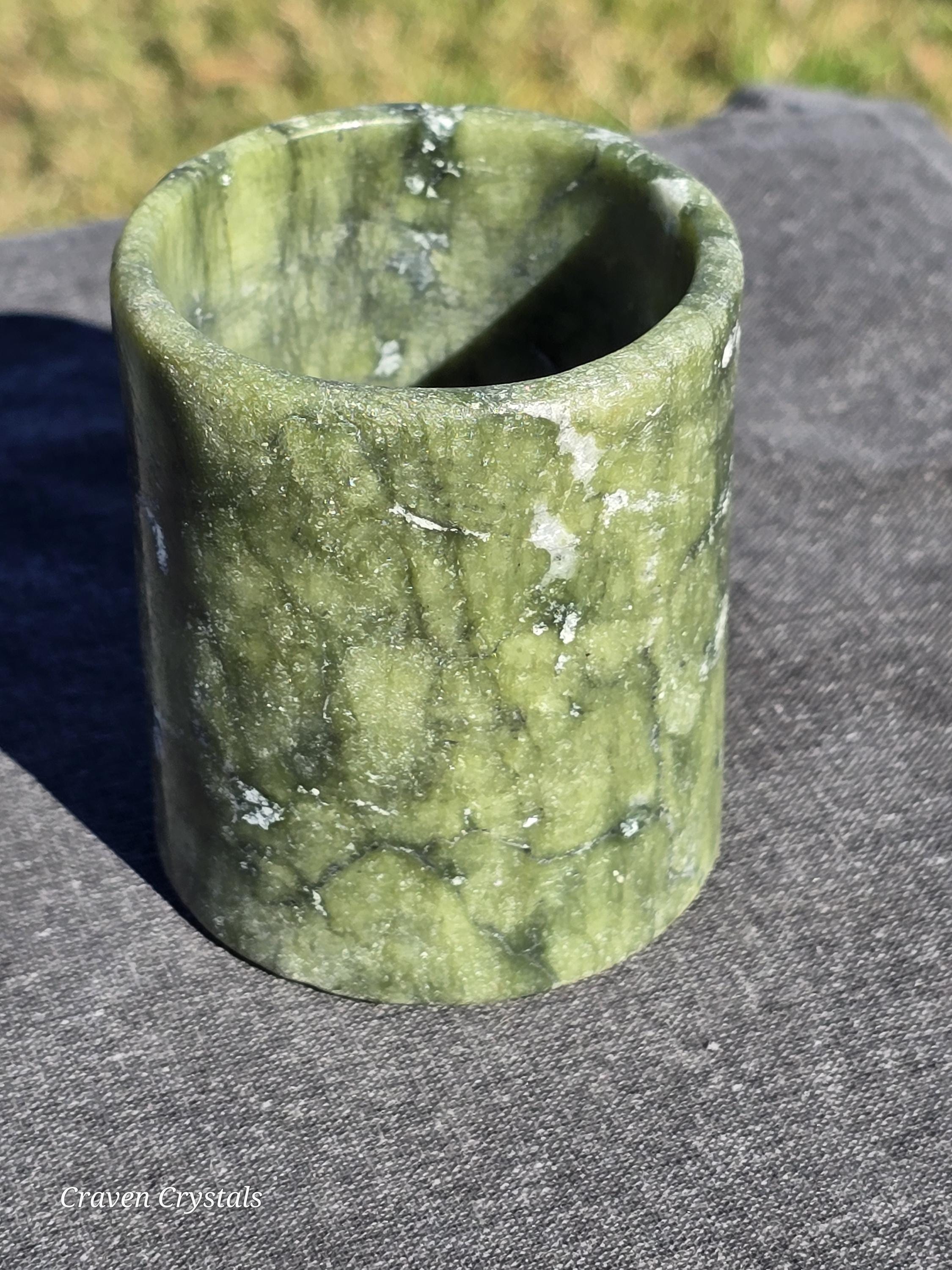 Serpentine jade is highly regarded for its grounding, healing, and spiritual properties. It is associated with renewal, transformation, and connection to earth energies. Known as a cleanser, serpentine jade is believed to clear stagnant energy and release blocked emotions. It promotes growth, encouraging users to shed old habits and embrace change.