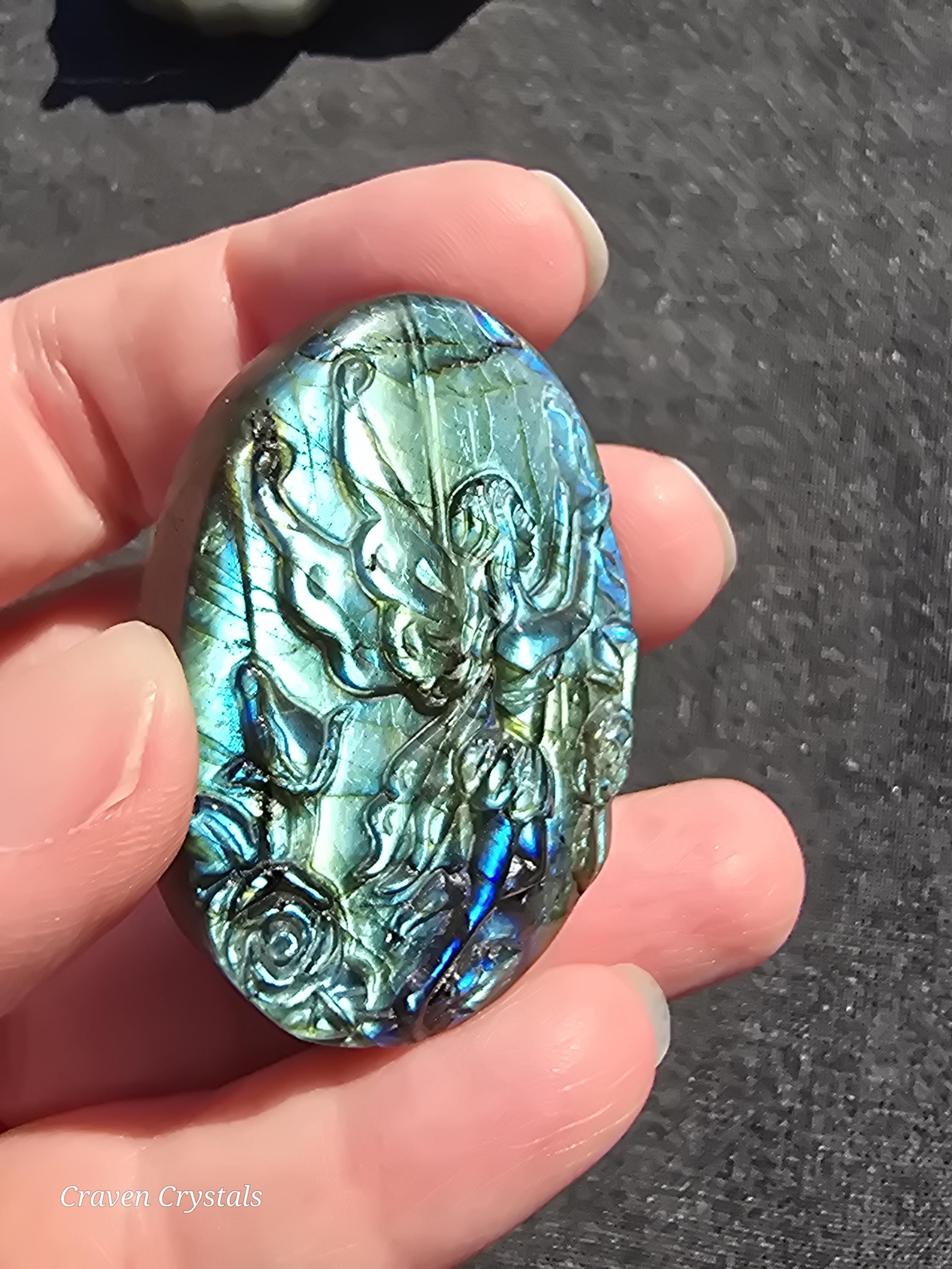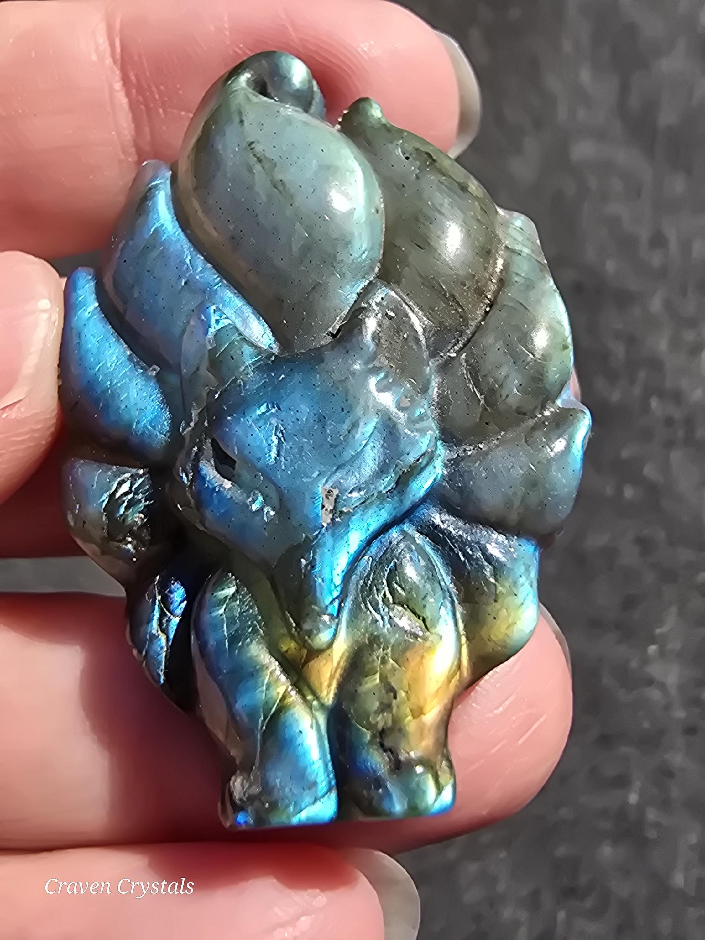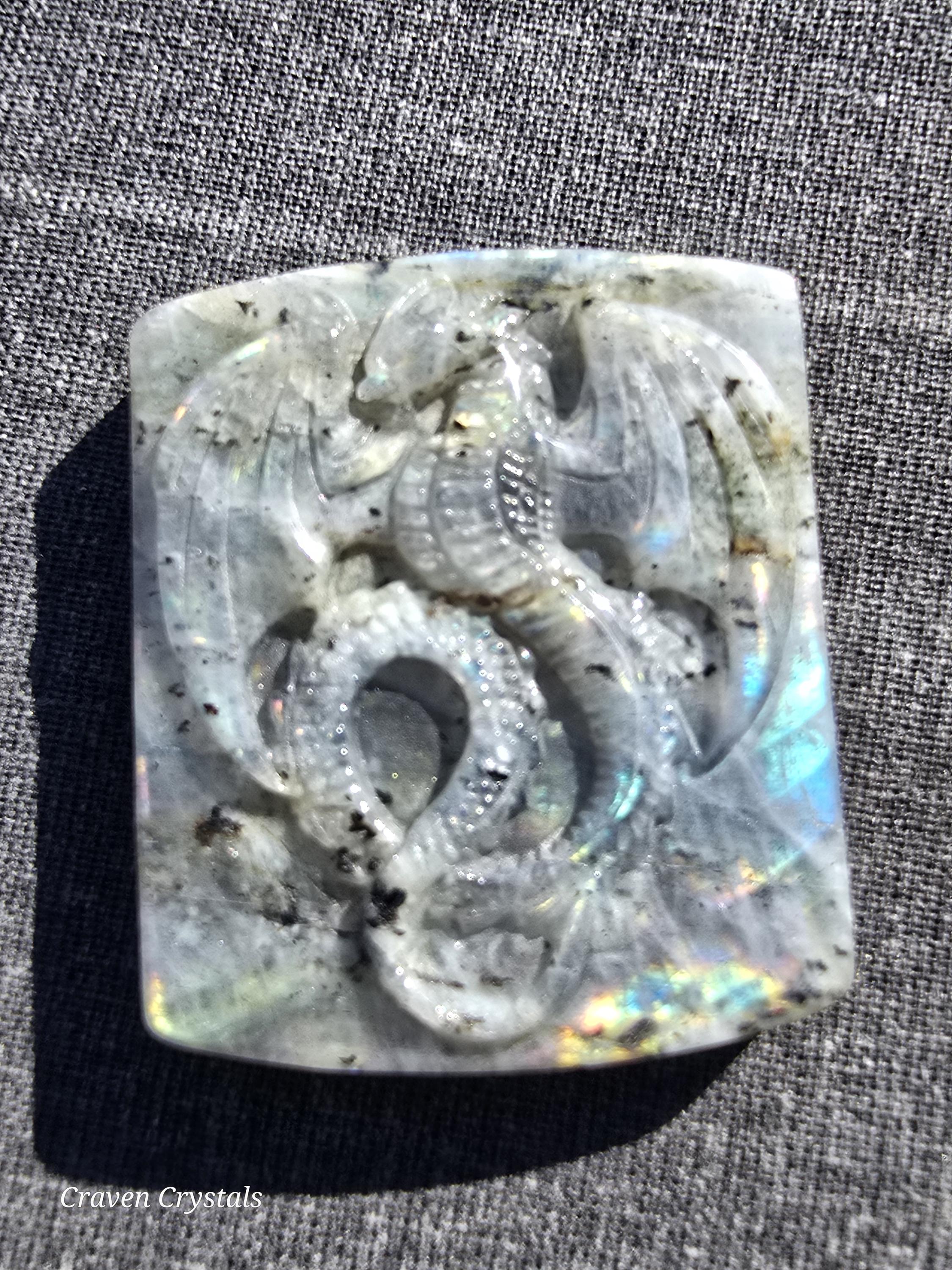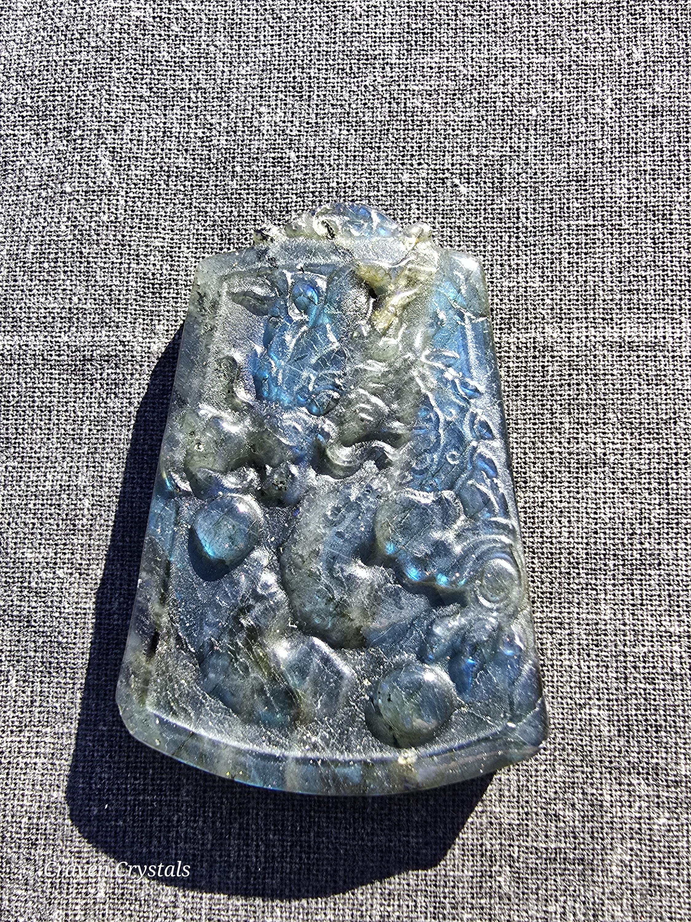 Labradorite mystical carvings ~ dragons, unicorns, pegasus, fairies, and 9-tail fox