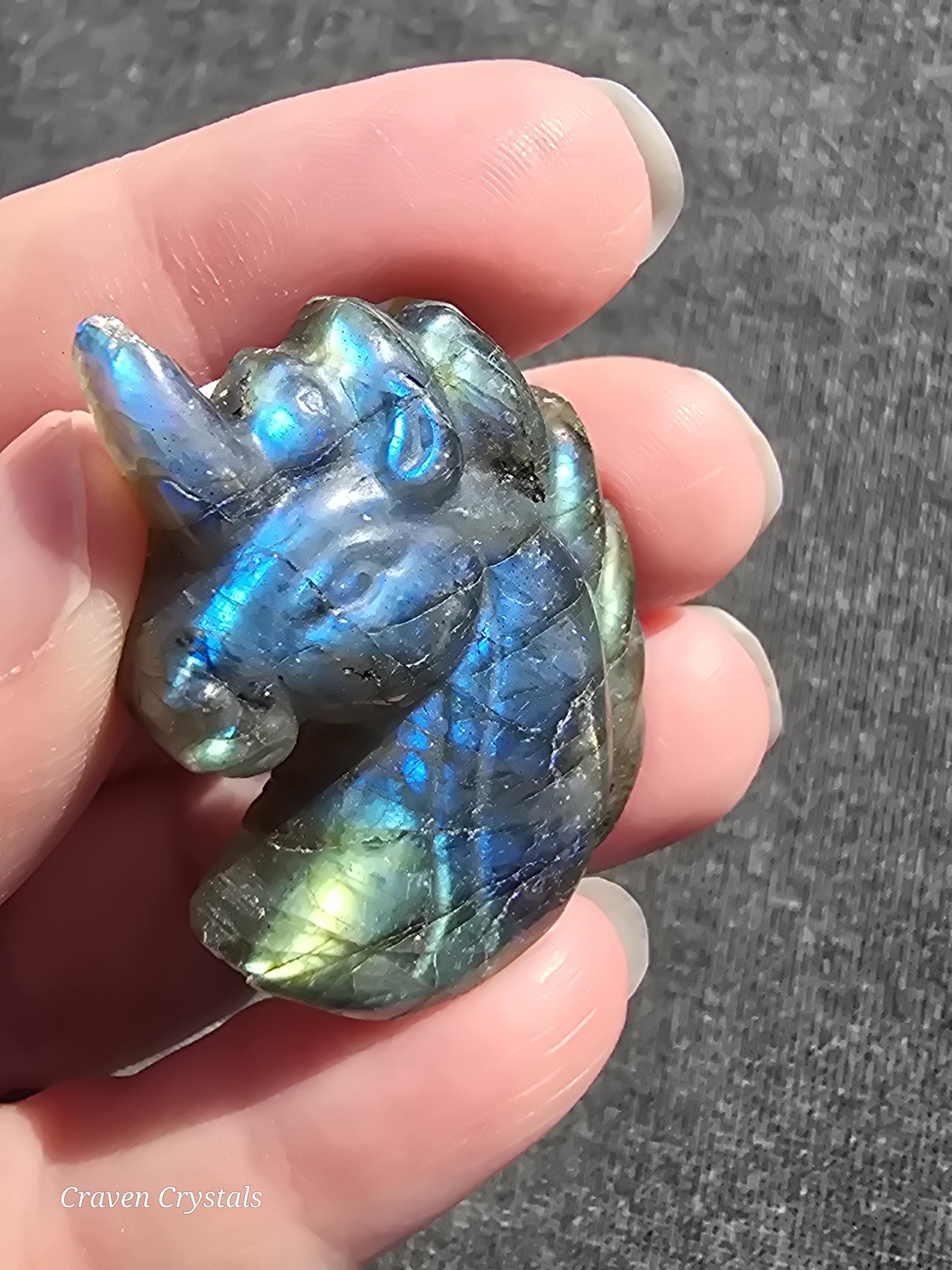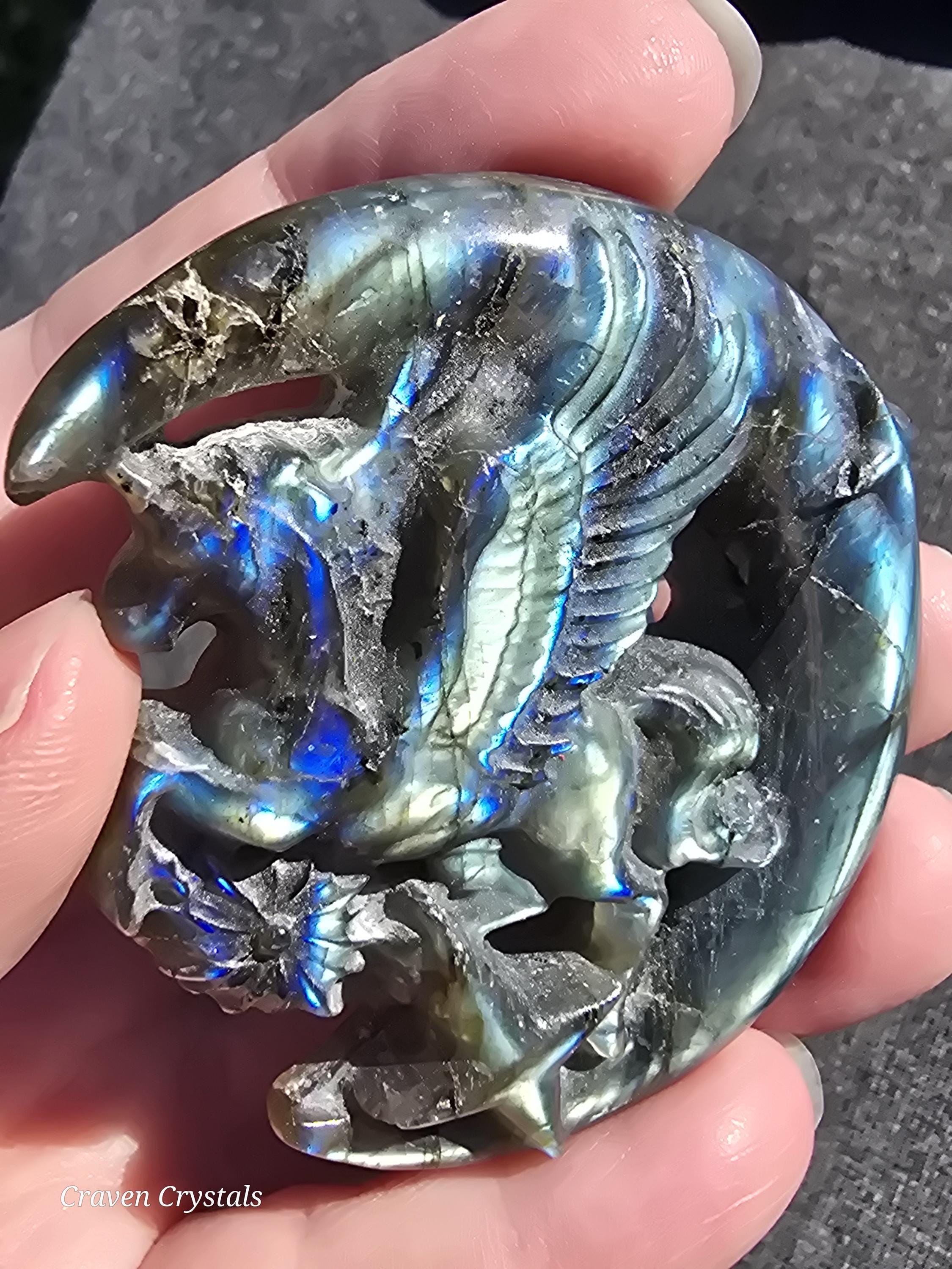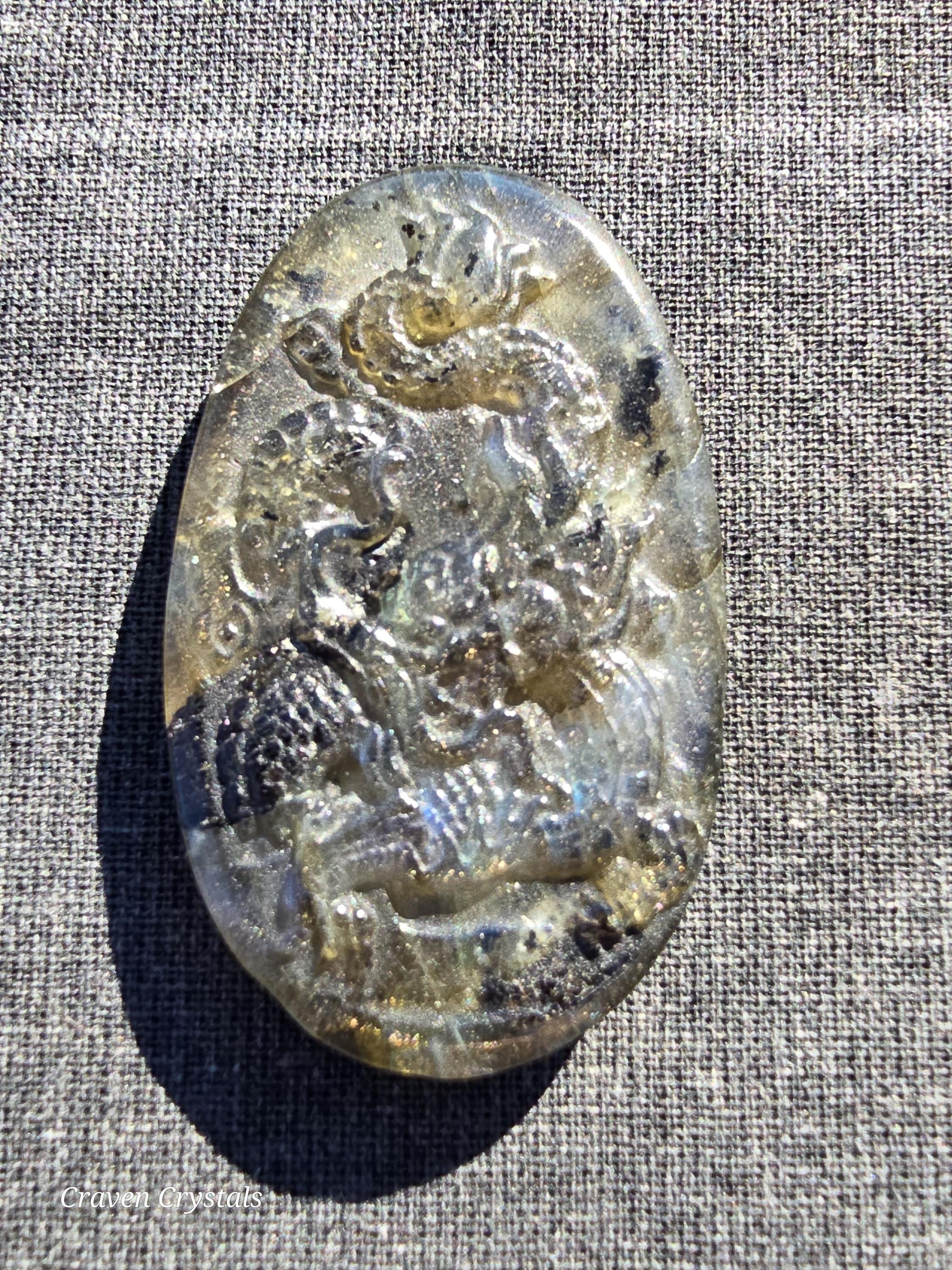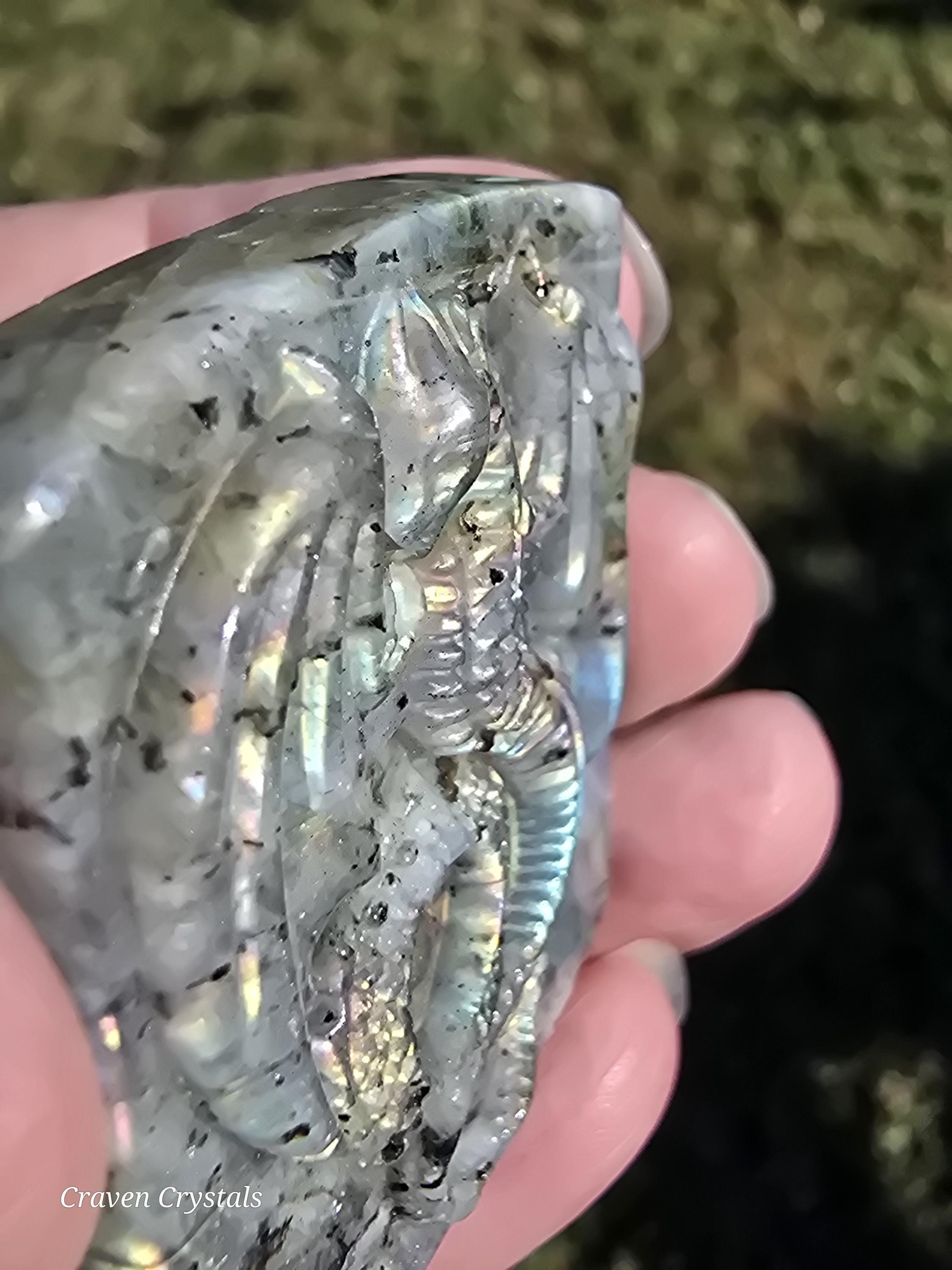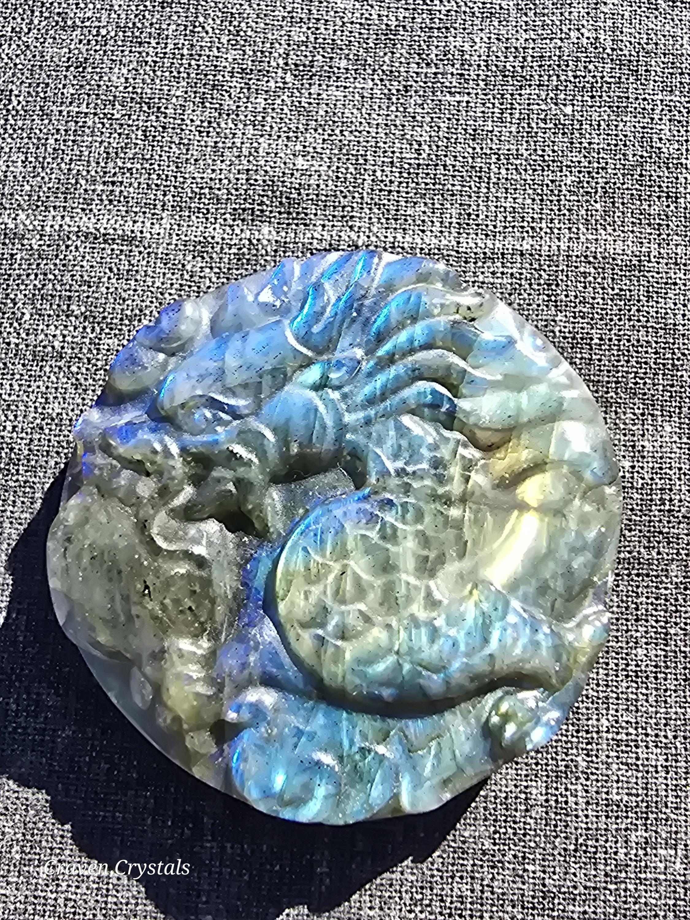 Labradorite mystical carvings ~ dragons, unicorns, pegasus, fairies, and 9-tail fox