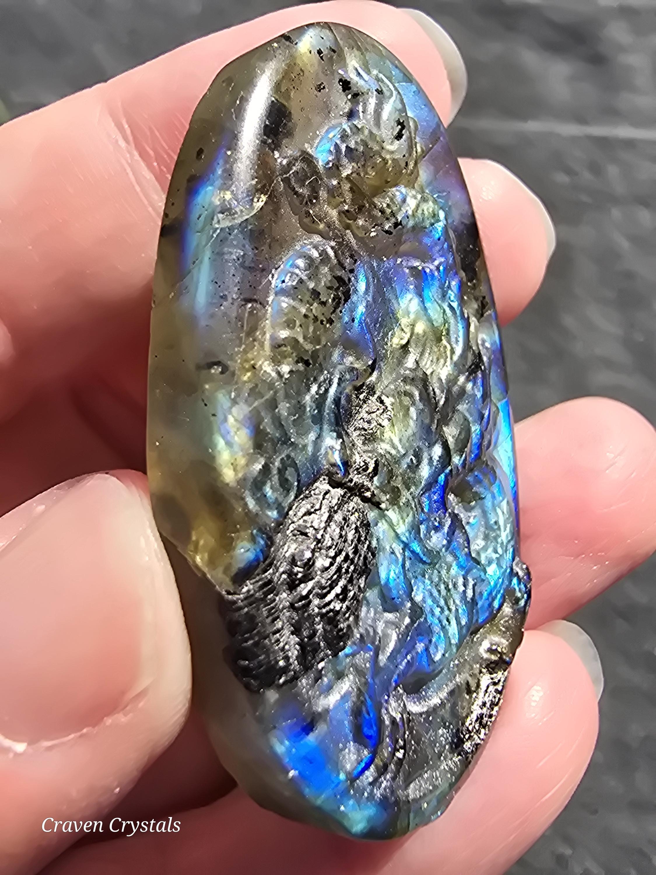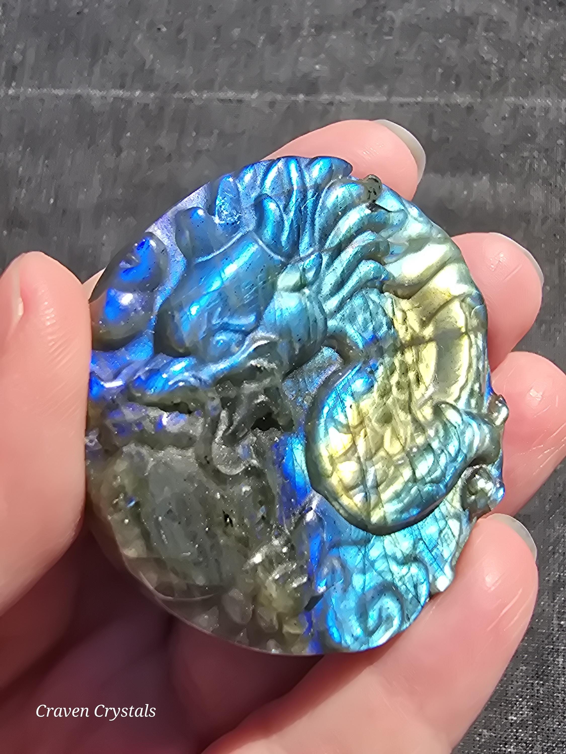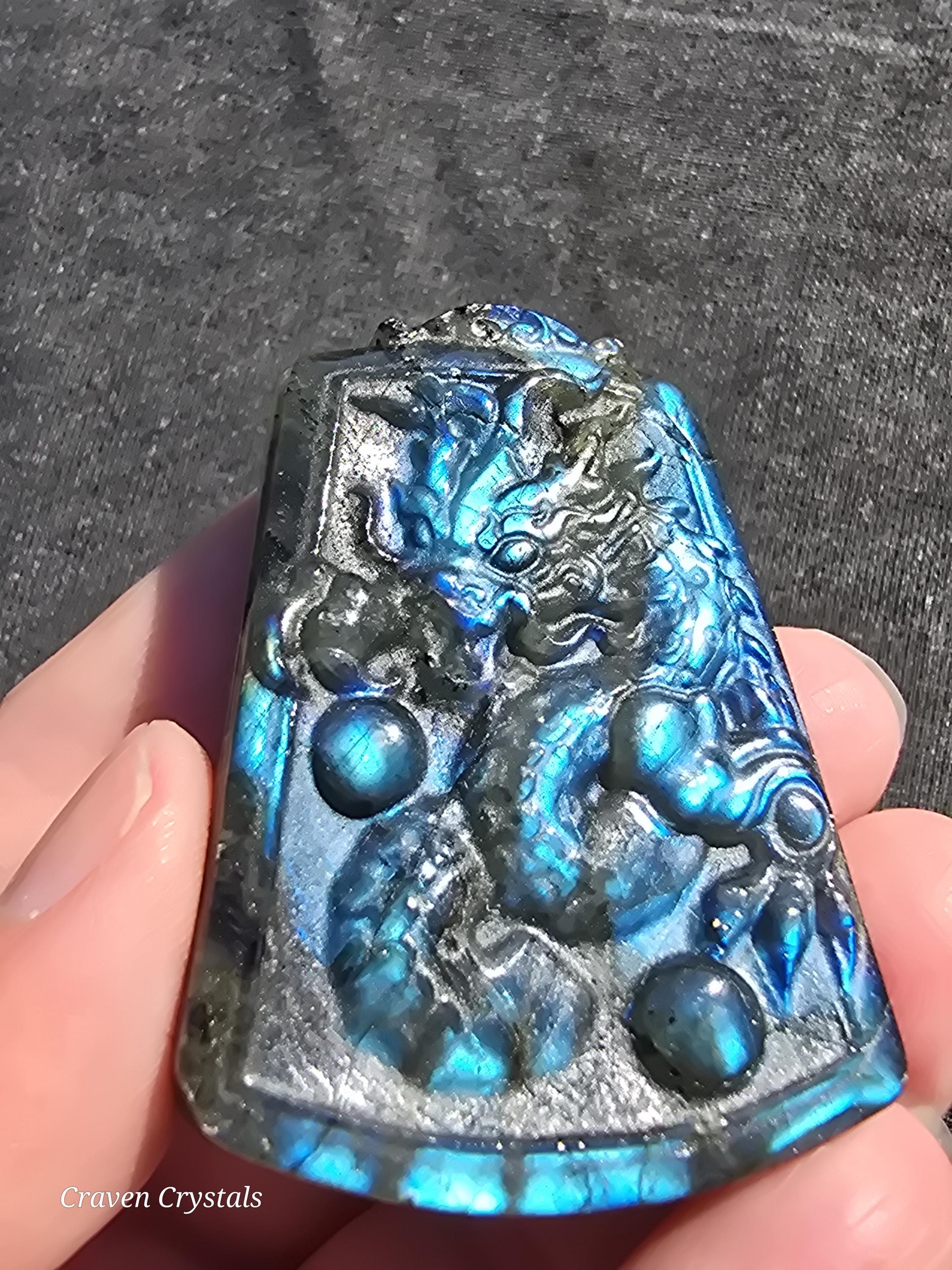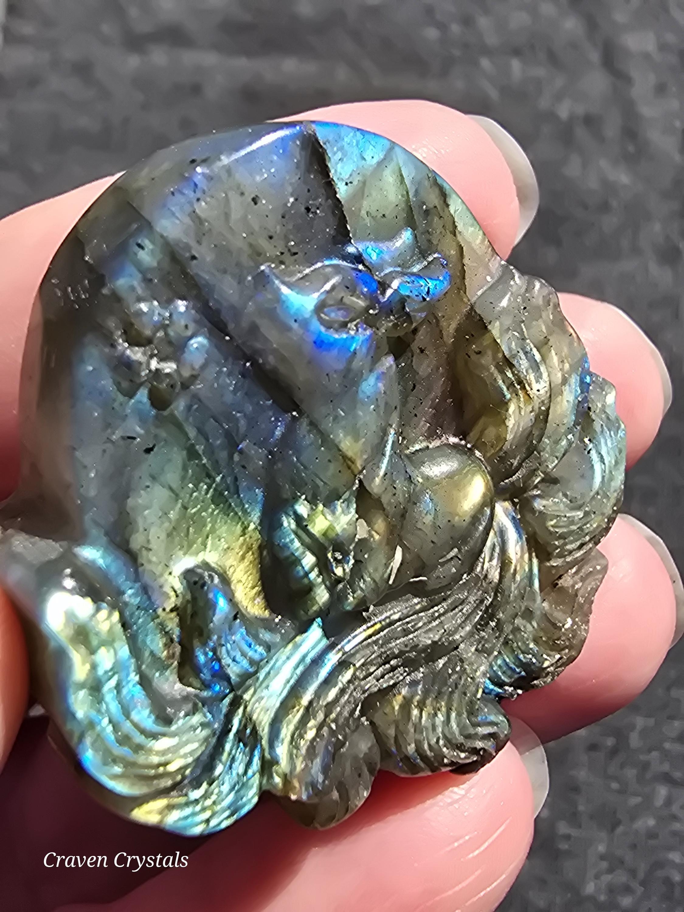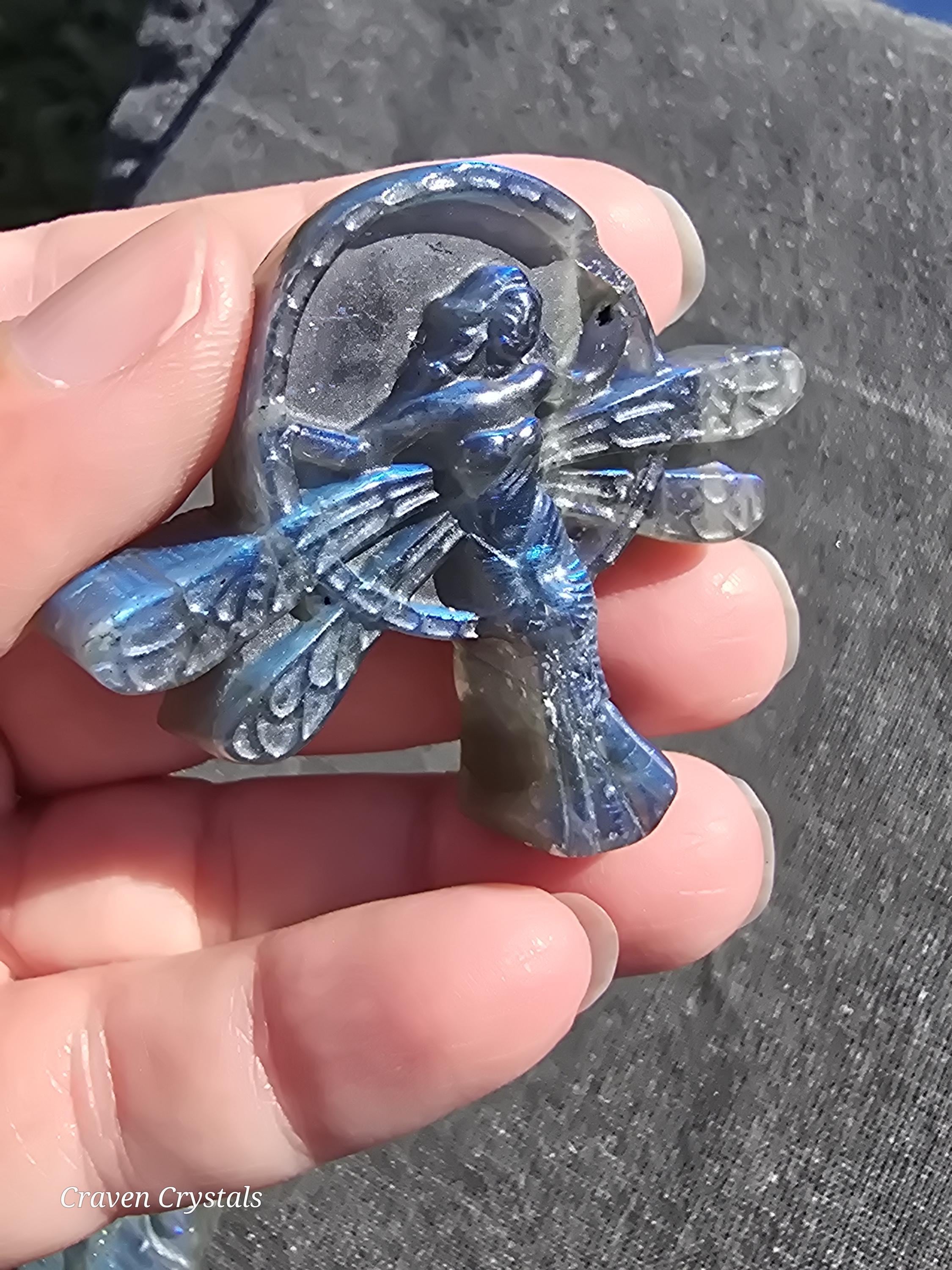 Labradorite mystical carvings ~ dragons, unicorns, pegasus, fairies, and 9-tail fox